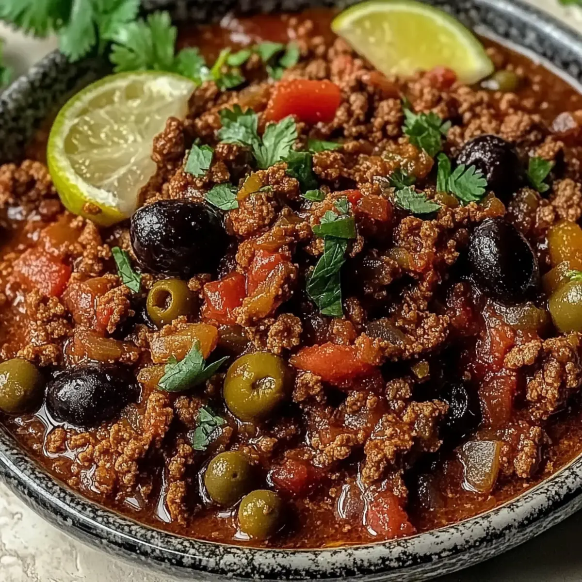 As I stood by the stove, a delightful aroma wafted through my kitchen, transporting me to the vibrant streets of Havana. The heartwarming recipe of Authentic Cuban Beef Picadillo beckoned, a dish that beautifully marries savory, sweet, and tangy flavors. Made with ground beef, olives, and raisins, this family-friendly meal is not only a comforting classic but also a crowd-pleaser—perfect for those cozy weeknight dinners or festive gatherings. In just a little under an hour, you’ll create a rich and soulful dish that truly embodies the essence of Cuban cuisine. Are you ready to embark on a culinary journey that will warm both your heart and your home? Why is Cuban Beef Picadillo a must-try? Rich, Unique Taste: This dish combines savory ground beef with the unexpected sweetness of raisins and the briny kick of olives, creating a flavor profile that surprises and delights. Easy to Make: You only need one skillet and about 45 minutes to whip up this hearty meal—perfect for busy weeknights or last-minute gatherings! Family-Friendly: Kids and adults alike will love this comforting dish, making it an ideal choice for family dinners or gatherings with friends. Endless Customization: Want to lighten it up? Try substituting ground turkey. Craving extra veggies? Toss in some diced potatoes or carrots. Make Ahead Wonder: It stores well, and the flavors deepen when reheated, so consider cooking it ahead of time for a ready-to-serve meal! For more great family-friendly recipes, check out our Slow Cooker Beef and Beef Broccoli Savory dishes! Cuban Beef Picadillo Ingredients For the Main Dish Ground Beef – This provides the hearty base of the dish; swap for ground turkey for a leaner option. Olives – Adds a delicious briny tang; green olives are recommended for an authentic flavor. Raisins – These bring a touch of sweetness that balances the savory elements beautifully. Onion – Provides a sweet and aromatic depth; shallots can be used for a milder taste. Bell Pepper – Adds a crunchy texture and sweetness; feel free to mix colors for more visual appeal. Garlic – Infuses pungent heat, elevating the overall flavor profile. Cumin – Contributes warm, earthy notes that are essential to Cuban culinary tradition. Oregano – Brings in the classic herbal essence that complements the dish. Tomato Sauce – Serves as the base for the sauce, providing moisture and richness. Bay Leaves – Adds aromatic depth while the dish simmers. For Serving White Rice – Perfect for soaking up the rich sauce; a classic side choice. Black Beans – A nutritious accompaniment that pairs well with the picadillo’s flavors. Fried Plantains – Their sweetness contrasts beautifully with the savory picadillo, creating a delightful balance. Now you’re all set to gather the ingredients and dive into making this delicious Cuban Beef Picadillo that’s sure to be a hit with your family! Step‑by‑Step Instructions for Cuban Beef Picadillo Step 1: Prepare Ingredients Start by finely chopping one onion, four cloves of garlic, and one bell pepper. Also, pit and slice about half a cup of green olives. This prep work sets the stage for your Cuban Beef Picadillo, ensuring everything is ready to go when you begin cooking. It should take around 10 minutes to prep all the ingredients. Step 2: Sauté Aromatics In a large skillet, heat two tablespoons of olive oil over medium heat. Once the oil is shimmering, add the chopped onion, bell pepper, and minced garlic. Sauté these aromatics for about 5-7 minutes, stirring occasionally, until they soften and the onion turns translucent. The fragrant aroma will fill your kitchen, signaling the start of something delicious. Step 3: Cook Beef Add one pound of ground beef to the skillet with your sautéed vegetables. Use a spatula to break up the meat and cook for about 8-10 minutes, stirring frequently until it’s nicely browned and no longer pink. The beef should have a deep brown color and begin to mingle with the vegetables, enhancing the flavors of your Cuban Beef Picadillo. Step 4: Add Flavorings Stir in one cup of tomato sauce, the sliced olives, half a cup of raisins, one teaspoon of cumin, one teaspoon of oregano, and two bay leaves. Mix everything thoroughly to combine all the ingredients. Let this flavorful mixture simmer for about 5 minutes over medium-low heat, allowing the flavors to blend harmoniously. Step 5: Simmer Reduce the heat to low and cover the skillet. Allow the Cuban Beef Picadillo to simmer for about 30 minutes, stirring occasionally. This step is crucial as it lets the sweet and savory flavors develop further while the sauce thickens. You’ll know it’s ready when the sauce is rich and the beef is tender. Step 6: Season & Serve After simmering, taste and adjust the seasoning with salt and pepper as needed. Serve your aromatic Cuban Beef Picadillo hot, ideally over a bed of fluffy white rice, and enjoy the comforting flavors that bring the essence of Cuba to your table. Expert Tips for Cuban Beef Picadillo Ingredient Prep: Always chop your vegetables before starting; this ensures even cooking and helps maintain the vibrant colors in your Cuban Beef Picadillo. Sauté Perfectly: Don’t rush the sautéing phase! Aim for translucent onions and softened peppers to build a solid flavor foundation. Avoid Overcooking: Keep an eye on the beef; overcooking can lead to a tough texture. Brown it just until no longer pink for a succulent result. Simmer for Flavor: Allowing the mixture to simmer for 30 minutes helps the flavors meld beautifully. Resist the urge to rush this part of the cooking process! Adjust Seasoning Last: Always taste and adjust your seasoning at the end; flavors develop as the dish cooks, and a pinch of salt can elevate your Cuban Beef Picadillo to perfection. Storing Leftovers: If you make extra, store it in an airtight container—Cuban Beef Picadillo often tastes even better the next day as the flavors deepen! Cuban Beef Picadillo Variations F