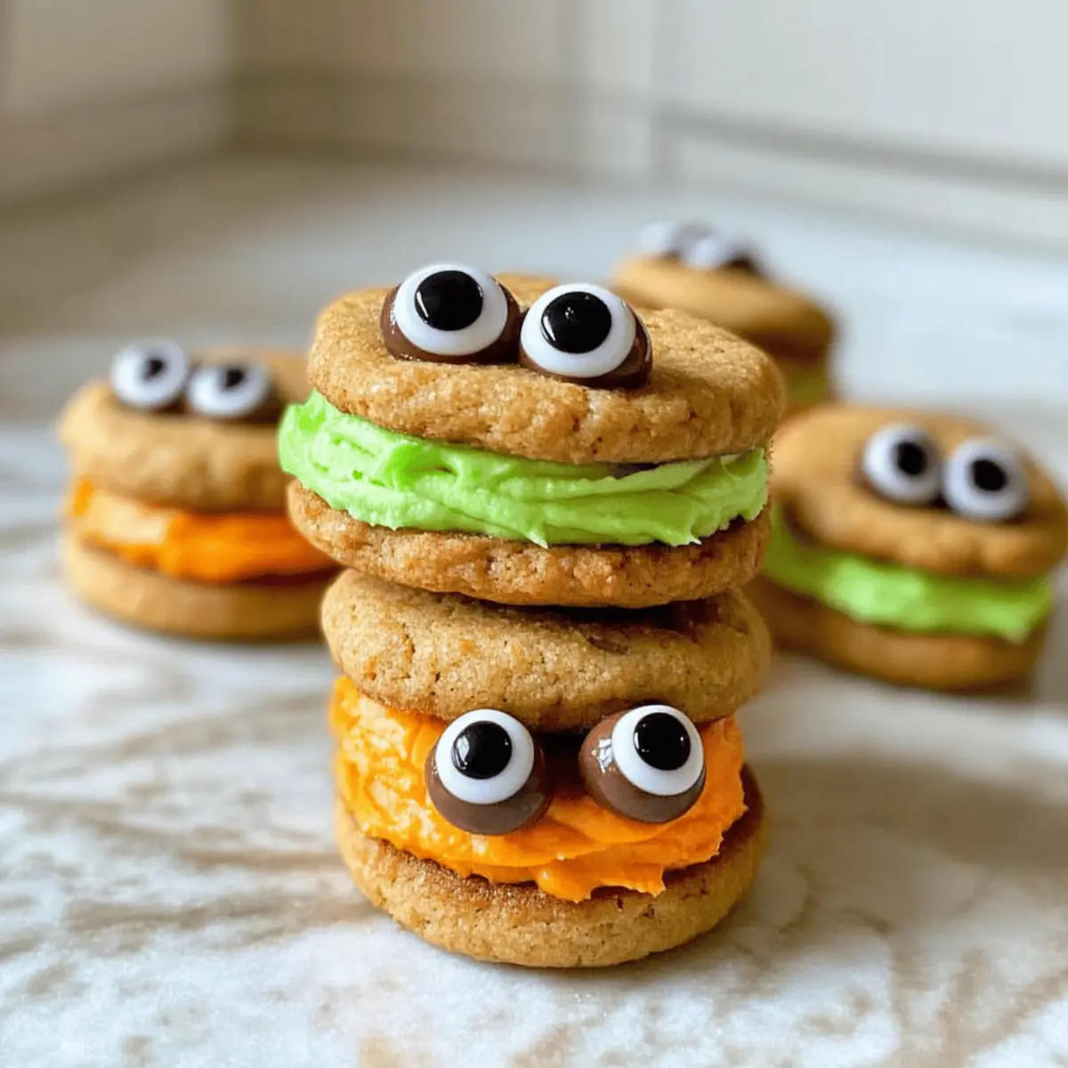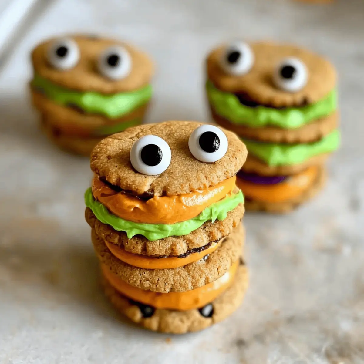 Can you hear the playful giggles of kids during Halloween? It’s that time of year when spooky fun and delicious treats collide! I’m excited to share my recipe for Cute No-Bake Monster Sandwich Cookies, an easy and whimsical dessert that your family will adore. With no baking required, these adorable cookies mash up store-bought Chips Ahoy, fluffy buttercream frosting, and vibrant candy eyes for a festive touch. Not only are they quick to whip up, making them perfect for jam-packed fall schedules, but they’re also a delightful way to get the kids involved in the kitchen. So, if you’re ready to bring some monster magic to your Halloween celebrations, keep scrolling—your next favorite treat is just a recipe away! Why Are These Cookies a Must-Make? Quick and Easy: You won’t need to heat up the oven or spend hours in the kitchen. Just whip up the frosting and assemble for a hassle-free treat! Kid-Friendly Fun: These Cute Monster Sandwich Cookies are perfect for little hands to help make, leading to giggles and creativity as they decorate! Versatile Treat: Feel free to swap out Chips Ahoy for Cinnamon Roll Cookies or mini cookies for a unique twist—perfect for personalized snacks! Colorful and Festive: Vibrant food coloring adds a spooky touch that brings joy to any Halloween table, making them a hit at parties or as homemade school treats. Deliciously Indulgent: With buttery frosting and cookie crunch, these delightful bites combine sweetness with playfulness, ensuring smiles all around! Make Ahead: These cookies can easily be prepared a day or two in advance, making them stress-free for busy schedules. Enjoy! Cute Monster Sandwich Cookies Ingredients For the Cookies • Chips Ahoy Cookies – The star of our treat, these cookies provide the perfect crunch and structure for your monster sandwich experience. For the Frosting • Unsalted Butter – Ensure it’s softened to achieve a rich and creamy frosting that’s easy to spread. • Powdered Sugar – This sweetens the frosting and gives it that delightful fluffy texture to complement the cookies. • Milk or Heavy Cream – Use it to adjust the frosting’s consistency; any non-dairy milk works great too! • Vanilla Extract – A splash enhances the flavor, making the frosting even more delectable; feel free to skip for a more unique taste. • Food Coloring (in Halloween colors) – Bright colors will make your frosting pop, perfect for capturing the Halloween spirit! For Decorating • Candy Eyes – The fun finishing touch that brings your Cute Monster Sandwich Cookies to life, available easily at most stores. Step‑by‑Step Instructions for Cute Monster Sandwich Cookies Step 1: Prepare the Frosting In a medium bowl, beat 1/2 cup of softened unsalted butter with 2 cups of powdered sugar using an electric mixer. Mix on medium speed for about 2-3 minutes until the mixture is light and fluffy. Gradually add 2 tablespoons of milk and 1 teaspoon of vanilla extract, mixing until smooth. This creamy frosting will be the perfect filling for your Cute Monster Sandwich Cookies. Step 2: Color the Frosting Divide the frosting into small bowls, depending on how many colors you want to make. Use gel food coloring in vibrant Halloween hues—think bright greens, oranges, and purples! Add a small amount of food coloring to each bowl and mix well with a spatula until you achieve a vivid and festive color. This colorful frosting will make your monster cookies extra fun! Step 3: Assemble the Cookies Take the Chips Ahoy cookies and sort them into pairs based on size for even sandwiches. Flip one cookie upside down and pipe or spread a generous layer of your colorful frosting on top. Then, place the second cookie on top, gently pressing down to create a delicious sandwich. Continue this process until all your Cute Monster Sandwich Cookies are assembled and looking delightful. Step 4: Decorate With your frosting still soft, it’s time to add the fun touch! Grab the candy eyes and gently press them into the frosting on top of each cookie, arranging them however you like for a whimsical effect. Use different amounts of eyes for varied appearances, making each cookie uniquely monster-like. This step brings your adorable creations to life! Step 5: Set and Store Allow the frosting on your Cute Monster Sandwich Cookies to set for about 30 minutes at room temperature. This helps firm up the frosting before serving. Once set, store the cookies in an airtight container, either at room temperature or in the fridge to keep them fresh. Enjoy your festive and easy treats whenever you’re ready! Expert Tips for Cute Monster Sandwich Cookies Cookie Selection: Choose Chips Ahoy for a classic crunch, or opt for homemade cookies to customize textures and flavors. Avoid overly soft cookies that may not hold the frosting well. Frosting Consistency: If your frosting is too thick, gradually add more milk until it’s smooth and pipeable. Thin frosting can lead to messy assemblies, so find the right balance! Colorful Creations: Feel free to mix food coloring for unique shades, but remember that darker colors can require more frosting to achieve vibrancy. Plan ahead to use the right amounts! Decoration Fun: Press candy eyes while frosting is soft for better adhesion. If you let it set first, they may not stick well, leading to sad-looking monsters! Storage Savvy: Keep cookies in an airtight container to prevent them from becoming stale. If you’re in a humid area, consider refrigerating them to maintain the texture of the Cute Monster Sandwich Cookies. Cute Monster Sandwich Cookies Variations Feel free to unleash your creativity and customize these cookies to fit your taste and dietary needs. Homemade Cookies: Swap Chips Ahoy for your favorite homemade cookie recipe for a personal touch. It’s a great way to experiment with flavors that your family loves. Mini Cookies: Use mini cookies instead of regular ones for bite-sized treats that are perfect for little f