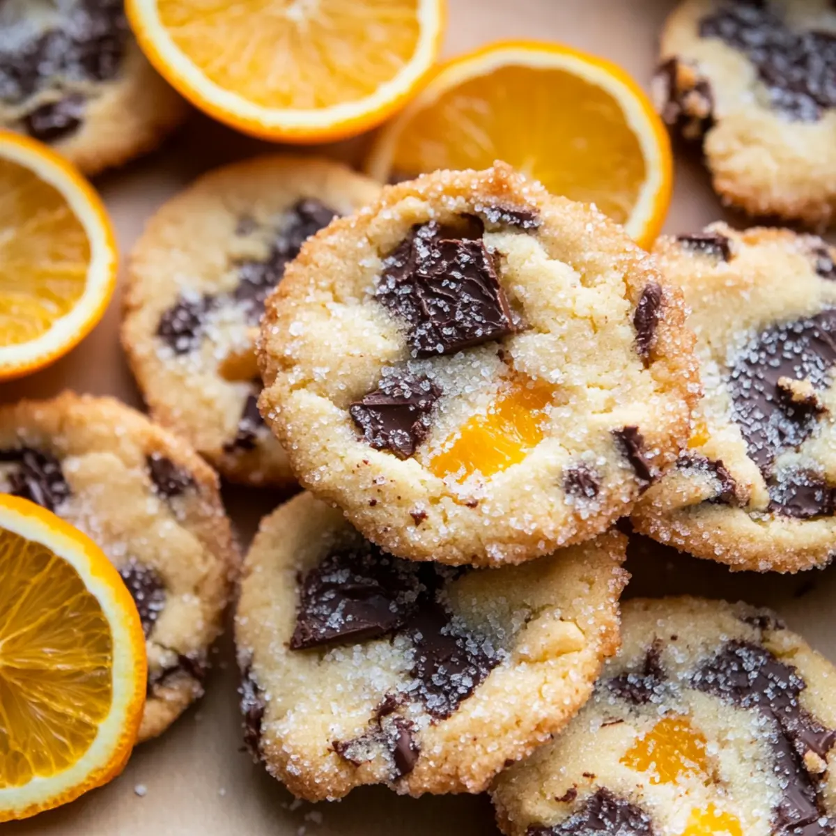 A delightful aroma wafts through my kitchen as I slice into the rich, buttery dough, revealing the magic within these Dark Chocolate Orange Shortbread Cookies. This recipe blends luscious dark chocolate with the vibrant zing of fresh orange zest, creating holiday cookies that are as beautiful as they are delicious. Perfect for sharing at festive gatherings, they are not only a fantastic twist on traditional shortbread but also easy to whip up. With a simple dough that chills beautifully, you can prepare these treats ahead of time, making them a stress-free addition to your holiday baking lineup. Who can resist a cookie that marries the comforting embrace of butter and sugar with the bright pop of citrus? Ready to elevate your cookie game and impress friends and family? Let’s dive into this scrumptious recipe! Why are these cookies so special? Buttery Perfection: These Dark Chocolate Orange Shortbread Cookies melt in your mouth, featuring a delightful combination of creamy butter and rich chocolate. Vibrant Flavor: The addition of fresh orange zest elevates the flavor profile, giving a refreshing twist that’s hard to resist. Simple Preparation: With a straightforward dough that gets better after chilling, these cookies are perfect for holiday baking without the stress. Versatile Treats: Enjoy them as a standalone dessert, or pair with a cup of hot coffee for a cozy afternoon snack. For more delightful cookie inspiration, check out my Brown Butter Chocolate cookies! Crowd-Pleasing Delight: Whether for a Christmas gathering or a potluck, these cookies are sure to impress—everyone loves the classic combination of chocolate and orange! Dark Chocolate Orange Shortbread Ingredients For the Cookies • Salted Butter – provides richness and flavor; use unsalted for a milder taste. • Granulated Sugar – adds sweetness that balances the butter; substitute with coconut sugar for a healthier choice. • Light Brown Sugar – contributes moisture and a slight caramel flavor; dark brown sugar can deepen the taste. • Vanilla Extract – enhances sweetness and depth; try orange extract for an extra citrus punch. • All-Purpose Flour – the base structure of the cookie; for gluten-free, a gluten-free all-purpose blend works beautifully. • Dark Chocolate Chips – delivers a rich chocolate experience; semi-sweet chocolate can be used as a swap. • Fresh Orange Zest – the star of the show, providing bright flavor; feel free to add more for a stronger citrus kick. • Egg (for wash) – helps sugar adhere to the cookie surface; omit for a vegan-friendly option. • Turbinado Sugar – offers a crunchy exterior; demerara sugar stands in well if needed. These Dark Chocolate Orange Shortbread Cookies are a delightful addition to your holiday baking repertoire—ensuring joy in every bite! Step‑by‑Step Instructions for Dark Chocolate Orange Shortbread Step 1: Cream the Butter and Sugars In a large mixing bowl, use an electric mixer to beat 1 cup of softened salted butter with ½ cup of granulated sugar and ½ cup of light brown sugar. Continue to beat on medium speed for about 5 minutes, until the mixture is light and fluffy, and a pale yellow color. This step breaks down the butter, ensuring a creamy base for the Dark Chocolate Orange Shortbread. Step 2: Incorporate the Vanilla Add 1 teaspoon of vanilla extract to the creamed butter and sugars. Mix briefly on low speed just until combined. This will deepen the flavor profile of the cookies, preparing them for the next enriching ingredients. Step 3: Mix in the Dry Ingredients Slowly add 2 cups of all-purpose flour to the butter mixture, continuing on low speed until the dough begins to come together. Be cautious not to overmix; the goal is a crumbly, buttery texture typical of shortbread. Once the flour is just incorporated, fold in 1 cup of dark chocolate chips and the zest of 1 orange, mixing gently with a spatula. Step 4: Shape the Dough Divide the dough into two equal halves, placing each part onto a sheet of plastic wrap. Roll each half into a log, approximately 2 inches in diameter, tucking the ends of the wrap securely. Refrigerate for at least 2 hours. This chilling time allows the flavors to meld and helps the Dark Chocolate Orange Shortbread maintain its shape while baking. Step 5: Preheat the Oven When ready to bake, preheat your oven to 350°F (175°C). As the oven heats, take the chilled cookie logs out of the fridge. Brush the exterior of each log with an egg wash (1 beaten egg) to help the turbinado sugar adhere for a delightful crunch. Step 6: Roll in Sugar and Slice Roll the logs in turbinado sugar, pressing gently to coat the outside evenly. Slice the logs into ½ inch thick rounds using a sharp knife. Arrange the slices on lined baking sheets, leaving space between each cookie to ensure even baking. The sugary exterior will give your Dark Chocolate Orange Shortbread a delightful finish. Step 7: Bake the Cookies Place the baking sheets in the preheated oven and bake for 12-14 minutes, or until the edges are golden-brown. Keep an eye on the cookies towards the end to prevent overbaking, as they should retain a soft, buttery center. The aroma of dark chocolate and orange will fill your kitchen, making waiting worthwhile! Step 8: Cool and Garnish Once baked, remove the cookies from the oven and let them cool on the pan for about 10 minutes. This allows them to set properly before transferring to a wire rack. As a finishing touch, garnish with a sprinkle of extra orange zest and a pinch of flaky sea salt for an extra burst of flavor. Dark Chocolate Orange Shortbread Variations Feel free to let your creativity shine and customize these cookies to match your taste and dietary preferences! White Chocolate: Swap dark chocolate for white chocolate for a sweeter, creamier cookie experience. Adding white chocolate creates a delightful contrast with the zesty orange and makes for a perfect holiday treat. Nutty Delight: Fold in chopp