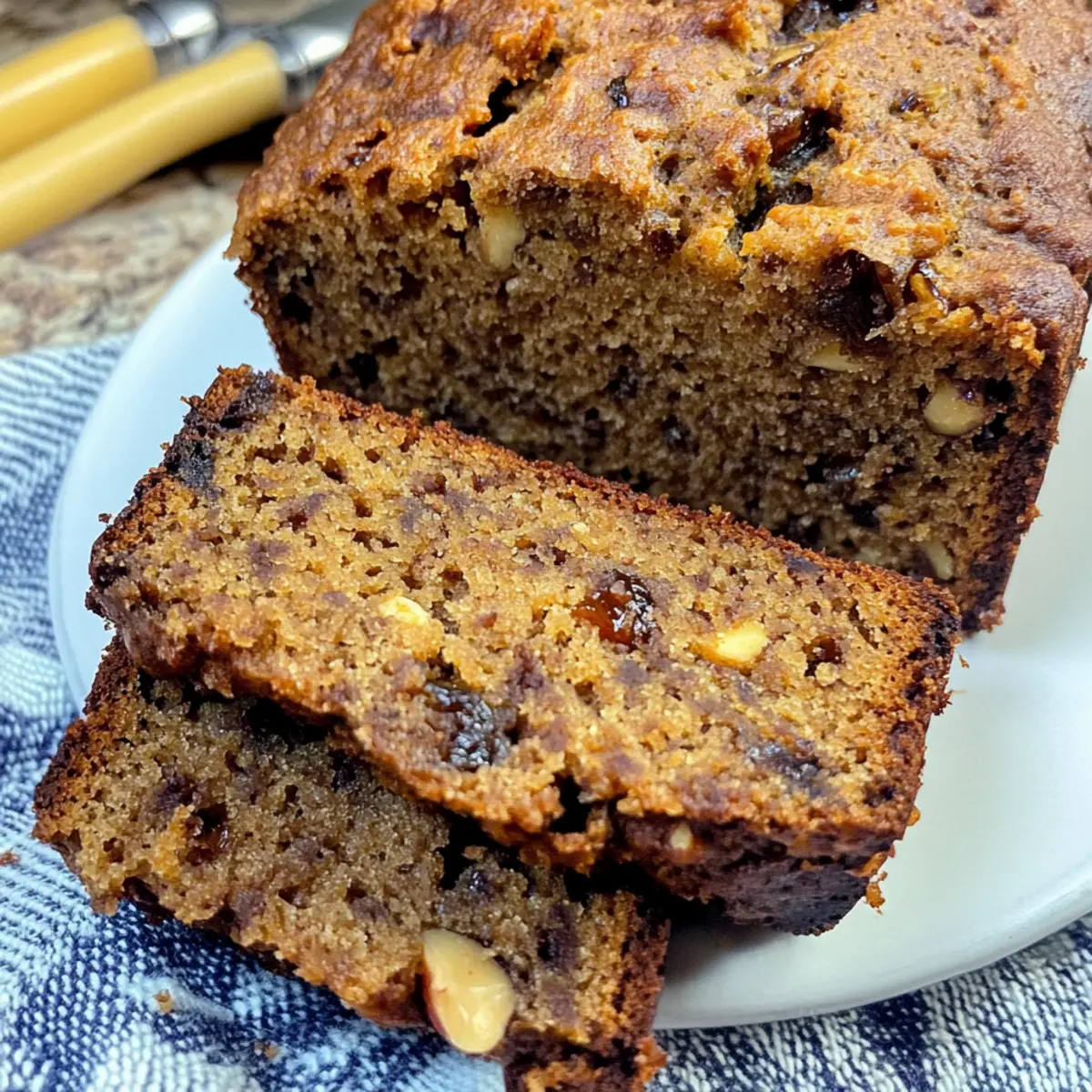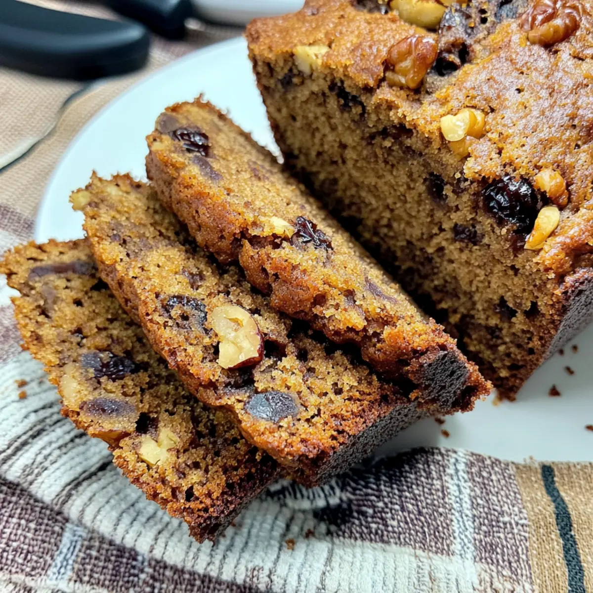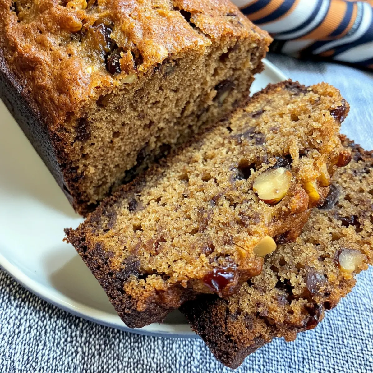 As I scrolled through my recipe box, a forgotten gem caught my eye: Date Nut Bread. The mere thought of it conjures memories of warm, cozy mornings filled with the inviting aroma of freshly baked bread wafting through the house. This delightful recipe is a celebration of home-cooked comfort food, effortlessly marrying the sweet, caramel notes of dates with the satisfying crunch of nuts. One of the best perks? It’s a hassle-free bake that’s perfect for lazy weekends or a seasonal treat to share during holiday gatherings. Plus, this Date Nut Bread freezes beautifully, ensuring you can indulge in its goodness whenever the craving strikes. Are you ready to bring this nostalgic favorite back into your kitchen? Why Is Date Nut Bread So Irresistible? Moisture: This bread is incredibly moist, thanks to the chopped dates, which infuse a rich sweetness into every slice. Texture: Enjoy the perfect contrast of chewy dates and crunchy nuts, creating a delightful eating experience. Versatile: Whether served for breakfast, as a snack, or a dessert, it fits seamlessly into any meal. Easy to Make: With minimal prep and straightforward steps, even novice bakers can whip up this tasty treat! Freezable: Make it ahead of time! Simply store it in your freezer for future enjoyment. For more great bread ideas, check out my Roasted Apple Bread or consider trying this Air Fryer Bread for a quick alternative. Date Nut Bread Ingredients For the Batter • Chopped Dates – Adds sweetness and a chewy texture; they’re the star of this Date Nut Bread! • Baking Soda – Provides leavening and contributes to the bread’s soft texture. • Boiling Water – Softens the dates and activates the baking soda for ultimate fluffiness. • Melted Butter – Adds rich flavor and moisture; you can substitute with margarine if desired. • Granulated Sugar – Sweetens the bread; brown sugar can be used for a deeper flavor. • Large Egg – Acts as a binder and helps the bread rise beautifully. • All-Purpose Flour – Forms the main structure; a gluten-free flour can be an alternative if needed. • Chopped Walnuts or Pecans – Adds a delightful crunch and flavor; feel free to mix and match based on preference. Optional Add-ins • Ground Cinnamon – A warm spice that enhances the sweetness; perfect for cozy vibes! • Chopped Dried Apricots or Cranberries – For a fruity twist, consider swapping out some dates. Embrace the joy of homemade cooking with this comforting and inviting Date Nut Bread recipe! Step‑by‑Step Instructions for Date Nut Bread Step 1: Preheat and Prepare the Pan Begin by preheating your oven to 325°F (165°C). While the oven is heating, take a 4×8 inch loaf pan and generously grease it with butter or non-stick spray. This will ensure your moist and flavorful Date Nut Bread releases easily after baking. Set the pan aside as you prepare the bread batter. Step 2: Soak the Dates In a mixing bowl, sprinkle 1 teaspoon of baking soda over 1 cup of chopped dates. Carefully pour 1 cup of boiling water over the dates, allowing them to soak and soften for approximately 15 minutes. Once the dates have cooled, ensure not to discard any of the water, as it will enhance the flavor and moisture of the Date Nut Bread. Step 3: Make the Batter In a separate mixing bowl, whisk together ½ cup of melted butter and 1 cup of granulated sugar. Once well combined, beat in 1 large egg until the mixture appears smooth and creamy. This step is crucial for providing structure and richness to your Date Nut Bread. Step 4: Combine the Mixtures After the date mixture has cooled, strain it to separate the dates from the soaking water. Gradually add the reserved date water to the butter-sugar-egg mixture, stirring until thoroughly incorporated. This will create a sweet, moist base that enhances the overall flavor profile of the bread. Step 5: Add the Dry Ingredients Gently add 1 ½ cups of all-purpose flour to the wet mixture, stirring just until no dry flour is visible. Be careful not to overmix, as this will help maintain the soft texture of the Date Nut Bread. Once combined, gently fold in the strained dates and ½ cup of chopped walnuts or pecans for added crunch. Step 6: Bake the Bread Pour the batter into the prepared loaf pan, using a spatula to smooth the top. Place the pan in the preheated oven and bake for 55–60 minutes. You’ll know it’s done when a toothpick inserted into the center comes out clean, with a beautifully golden top indicating the bread is ready. Step 7: Cool Before Serving Once baked, remove the Date Nut Bread from the oven and let it cool in the pan for about 10 minutes. This cooling period allows the bread to set and makes it easier to transfer. Carefully turn it out onto a wire rack to cool completely, which enhances the flavor and texture for that perfect slice. Date Nut Bread Variations & Substitutions Feel free to get creative and personalize the Date Nut Bread to match your taste buds and dietary needs! Gluten-Free: Substitute all-purpose flour with a 1:1 gluten-free flour blend for a gluten-free version. Nut-Free: Omit the nuts or replace them with seeds such as pumpkin or sunflower seeds for a crunchy texture. Vegan: Replace the egg with 1/4 cup of unsweetened applesauce or a flaxseed egg, using 1 tablespoon of ground flaxseed mixed with 2.5 tablespoons of water. Spiced Up: Add 1 teaspoon of cinnamon or a pinch of nutmeg for extra warmth and flavor, infusing cozy holiday vibes into every bite. Dried Fruit Blend: Exchange some dates for chopped dried apricots or cranberries, offering a delightful sweet-tart contrast. Lower Sugar: Cut the sugar by half or use a natural sweetener like maple syrup or honey, balancing sweetness without sacrificing flavor. Chocolate Lovers: Stir in 1/2 cup of chocolate chips for a rich, indulgent twist that pairs beautifully with the dates. Every slice will feel like a special treat! If you’re finding yourself in need of more delightful bread recipes, con