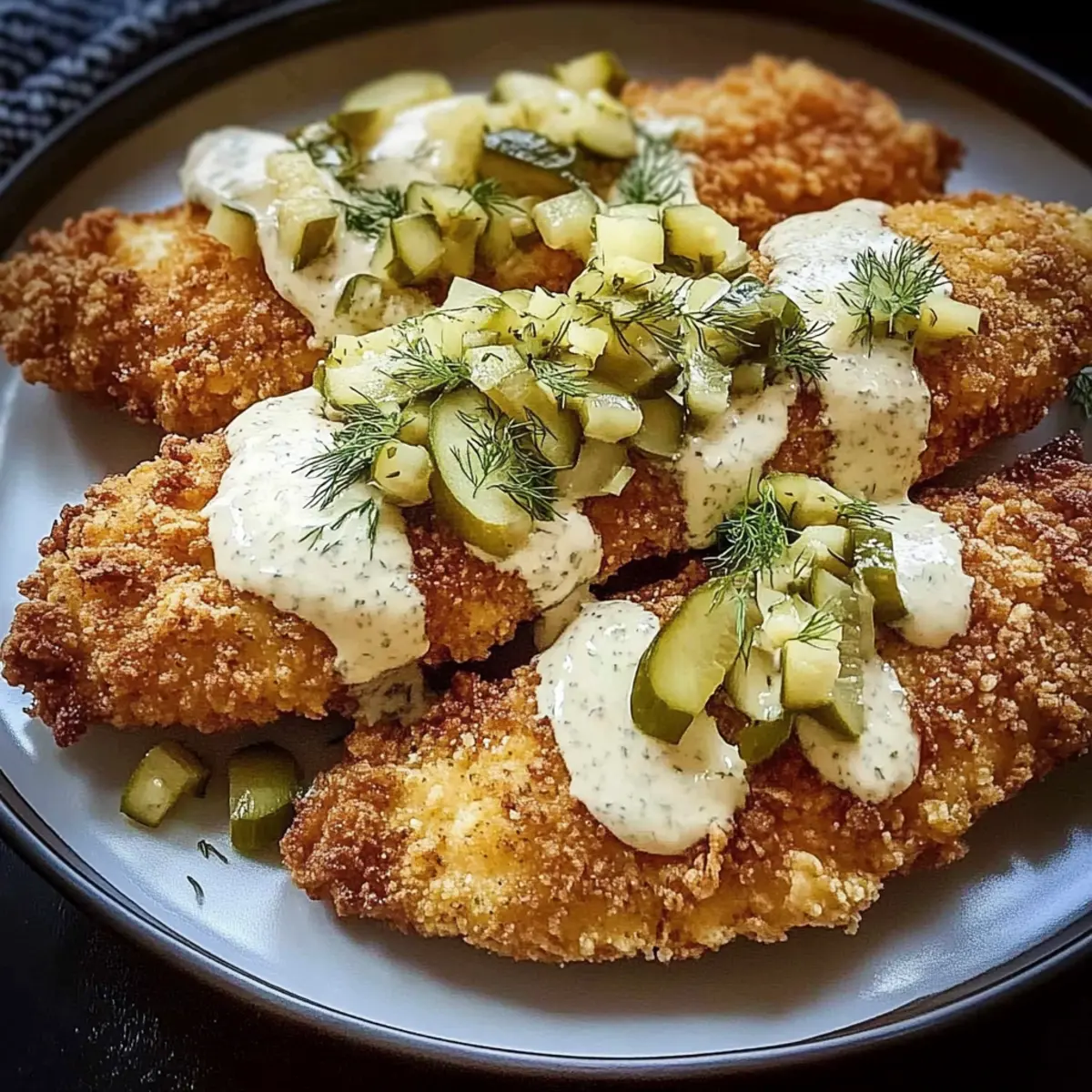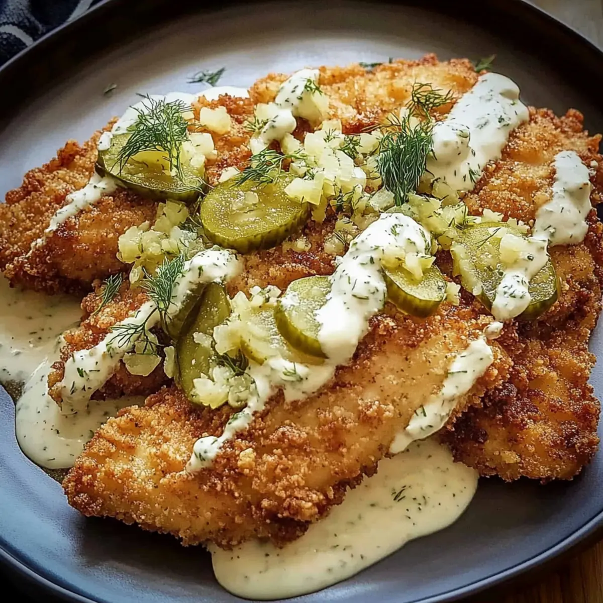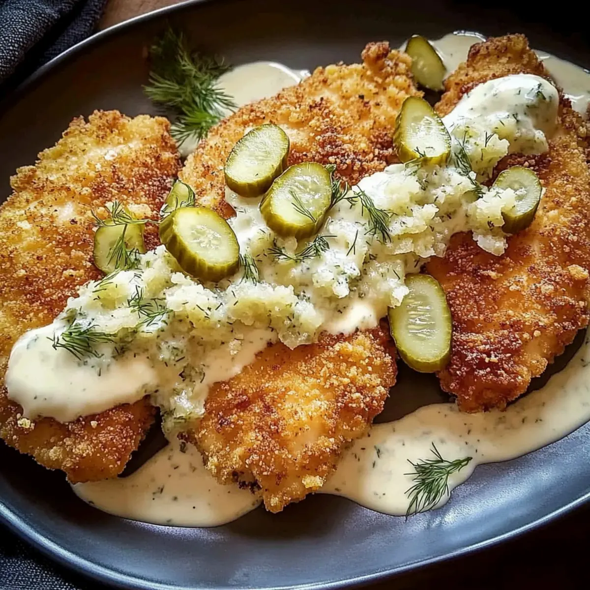 • Creamy Mushroom Sauce: Swap the dill sauce for a creamy mushroom sauce for a rich twist that pairs beautifully with the crispy chicken.