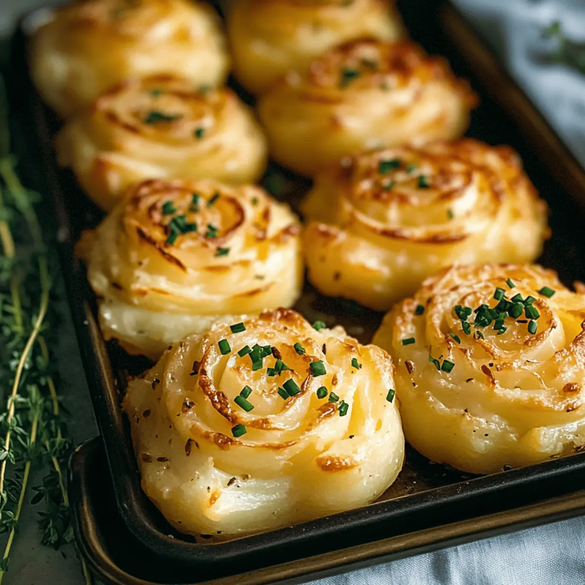 As I opened my kitchen door to the comforting aroma of baking potatoes, I couldn’t help but be transported to a charming French bistro. Duchess Potatoes are far from your regular mash; they’re the luxurious, sophisticated side dish that elevates any meal into a feast. Piped into swirls of creamy goodness and baked to a perfect golden crunch, these spuds are bound to dazzle your dinner guests. Plus, with just a bit of prep and the option to make-ahead, they bring elegance to your table without a hefty workload. Ready to impress? Let’s dive into crafting these delicious Duchess Potatoes that will have everyone coming back for seconds! Why Are Duchess Potatoes So Special? Indulgent Delight: The creamy, cheesy richness of these Duchess Potatoes transforms ordinary dinners into unforgettable feasts. Impressive Presentation: Piped into elegant swirls, these spuds look beautiful on any table, impressing your guests with minimal effort. Make-Ahead Magic: Perfect for busy hosts, they can be prepped in advance and baked right before serving, saving you time during meal prep. Versatile Pairing: Whether it’s a holiday gathering or a weeknight dinner, this versatile dish complements a range of entrees, from roasted meats to fancy veggie platters. Kid-Friendly Flavor: With their creamy texture and cheesy goodness, even picky eaters can’t resist going back for seconds! Elevate your dinner experience today with these show-stopping Duchess Potatoes! Duchess Potatoes Ingredients For the Base • Potatoes – 2 pounds of Russet or Yukon gold potatoes provide a hearty foundation for your Duchess Potatoes. • Egg Yolks – 3 large yolks ensure a rich, creamy texture that binds all the ingredients beautifully. For the Creaminess • Unsalted Butter – 1/4 cup (divided) enhances the dish’s richness; you can substitute with salted butter, but adjust salt levels. • Heavy Cream – 1/4 cup contributes to the irresistibly creamy texture; half-and-half can be used if needed. • Parmesan Cheese – 1/4 cup (grated) adds a savory kick; feel free to switch it up with Gruyère or cheddar for a unique flavor twist. For Flavor • Salt – 1 teaspoon elevates the taste, ensuring each bite is packed with flavor. • Black Pepper – 1/2 teaspoon brings a subtle heat that rounds out the palate. For Garnishing • Chives or Parsley – Freshly chopped adds a bright pop of color and freshness. • Sea Salt – 1 tablespoon (for garnish) provides a finishing touch that enhances all the flavors. Dive into preparing these Duchess Potatoes and delight your guests with a perfect blend of elegance and comfort! Step‑by‑Step Instructions for Duchess Potatoes Step 1: Boil Potatoes Begin by peeling and chopping 2 pounds of Russet or Yukon gold potatoes into even chunks. Place them in a large pot and cover with salted water, bringing it to a boil. Cook the potatoes for 15-20 minutes until they are fork-tender, indicating they’re ready for mashing. Drain and allow them to steam dry for a couple of minutes. Step 2: Preheat Oven While the potatoes are boiling, preheat your oven to 425°F (220°C). Prepare a baking sheet by lining it with parchment paper, which will help prevent the Duchess Potatoes from sticking and ensure easy cleanup. This step is essential for achieving that crispy finish as they bake in the oven. Step 3: Warm Ingredients In a small saucepan or microwave, melt 1/4 cup of unsalted butter. Simultaneously, warm 1/4 cup of heavy cream until it’s just heated through. Make sure not to boil the cream, as you want it to combine smoothly with the potatoes later. Keep an eye on both to ensure they don’t overheat. Step 4: Mash Potatoes Return your drained potatoes to the pot. With a potato masher or ricer, mash the potatoes until they are completely smooth, ensuring no lumps remain. Mix in the melted butter, warm cream, 1/4 cup of grated Parmesan cheese, and season with 1 teaspoon of salt and 1/2 teaspoon of black pepper, followed by the 3 large egg yolks. Stir until well combined and luxurious. Step 5: Pipe Potatoes Transfer the creamy potato mixture into a piping bag fitted with a star tip for beautiful presentation. Pipe small mounds onto the prepared baking sheet, spacing them about an inch apart. The goal is to create elegant swirls of Duchess Potatoes that will become beautifully golden as they bake. Step 6: Bake Once all the potatoes are piped, brush the tops generously with any remaining melted butter. Bake in the preheated oven for 15-20 minutes, keeping an eye on them. You’ll know they’re ready when the tops are a delightful golden brown and crispy, creating a tempting contrast to the creamy interior. Step 7: Garnish and Serve After baking, remove the Duchess Potatoes from the oven and let them cool slightly. Garnish them with freshly chopped chives or parsley for a burst of color and sprinkle with sea salt for an extra flavor boost. Serve these elegant Duchess Potatoes immediately and watch them steal the show at your dinner table. Make Ahead Options These Duchess Potatoes are a fantastic option for meal prep! You can prepare the creamy potato mixture up to 3 days in advance; simply refrigerate it in an airtight container. When you’re ready to bake, transfer the mixture into a piping bag and pipe onto a baking sheet. To maintain their crispy texture, it’s best to brush the tops with melted butter right before baking, which can be done from the fridge. For longer storage, you can freeze the piped potatoes for 1-2 months; just bake them directly from frozen, adding an extra 5-10 minutes to the baking time. With these tips, you’ll enjoy delicious Duchess Potatoes without the last-minute hustle! What to Serve with Duchess Potatoes? Imagine a beautifully adorned dining table, filled with warmth and exquisite flavors, where your Duchess Potatoes take center stage. Herb-Crusted Roast Chicken: This succulent roast is elevated with fresh herbs, perfectly complementing the creamy, cheesy note