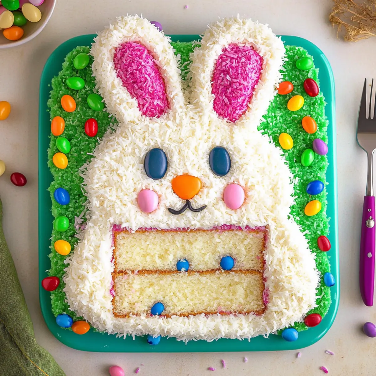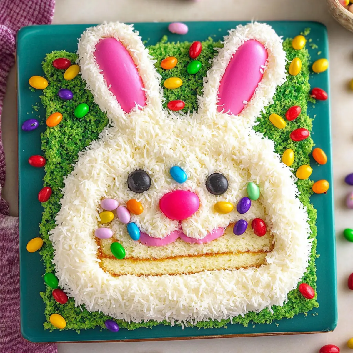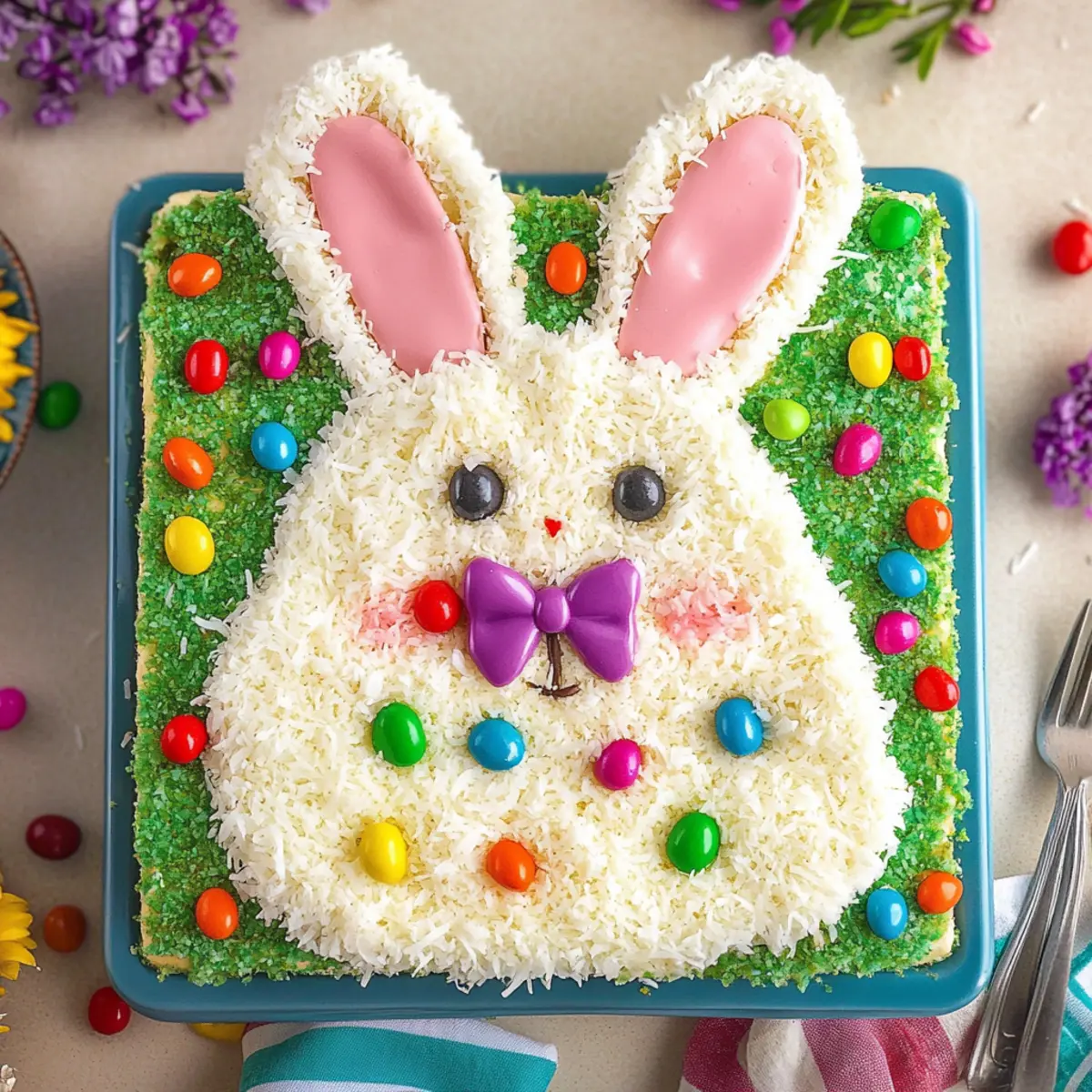 If you’re anything like me, the anticipation of Easter brings a flurry of sweet memories, especially when it comes to baking. This year, I’m excited to share my Easy Coconut Easter Bunny Cake—a playful dessert that is not only a feast for the eyes but also a delicious treat that’s incredibly simple to make. Combining the delightful flavors of vanilla and chewy shredded coconut, this cake promises to be a hit with both kids and adults alike. With just a few easy steps, you’ll create a whimsical centerpiece for your holiday gatherings. Plus, it’s a fantastic way to involve the little ones in the kitchen without spending hours on preparation. Ready to hop into some fun? Let’s get started on creating this delightful Easter Bunny Cake! Why is this cake a must-try? Visual Delight: The adorable bunny design will steal the show at your Easter celebration, making it a fun centerpiece that’s sure to impress. Kid-Friendly Fun: Involving the kids in the decorating process turns baking into a memorable family activity, creating sweet memories that will last a lifetime. Simple Ingredients: With just a box cake mix and easily accessible toppings, this recipe is both economical and worry-free. If you’re looking for more simple yet delightful creations, check out my Blueberry Buttermilk Pancake or Mini Loaf Cakes for family breakfasts! Quick Preparation: Save time on complex baking tasks—just bake, shape, frost, and decorate in a few easy steps! Deliciously Versatile: Choose your favorite cake flavor and frosting for a personalized treat, and feel free to swap jelly beans for your preferred candies to match your theme. Easter Bunny Cake Ingredients Discover the essential ingredients for an unforgettable Easter Bunny Cake! For the Cake • Box Cake Mix – Choose any flavor you love, like vanilla or chocolate, to create a personalized cake base. For the Frosting • Frosting – Use a canned frosting for quick prep or whip up a homemade version for a personal touch. For the Bunny Decoration • Shredded Coconut – Sweetened coconut adds an adorable fur-like texture to your bunny cake! • Jelly Beans – Brightly colored jelly beans are perfect for creating your bunny’s facial features. • Mini Chocolate Chips – These tiny treats can form a charming smile or other facial details. • Sour Candy Belts – Add a fun and chewy touch to your bunny with these strips that represent whiskers. • Food Gel Color – Use to dye your frosting and coconut for a vibrant, eye-catching look. With this delightful mix of ingredients, you’re just a hop away from creating an extraordinary Easter Bunny Cake that will bring joy to everyone at the table! Step‑by‑Step Instructions for Easter Bunny Cake Step 1: Bake the Cake Preheat your oven to 350°F (175°C). Prepare your box cake mix according to the package instructions and pour the batter evenly into two greased round cake pans. Bake in the preheated oven for 25-30 minutes, or until a toothpick inserted in the center comes out clean. Once baked, let the cakes cool in the pans for 10 minutes, then transfer them to wire racks to cool completely. Step 2: Shape the Cake Once the cakes are cool, take one cake and carefully cut it into shapes that will form the bunny head and ears. The second cake can be utilized for other shapes like the bunny’s bowtie. To make this process easier, you may want to freeze the shaped cake pieces for about 30 minutes; this will help minimize any crumbling during frosting. Step 3: Frost the Cake After shaping, take the frozen bunny pieces out of the freezer. Use room temperature frosting to generously cover the entire bunny head and ears, ensuring a smooth layer that will help the shredded coconut adhere nicely. This easy frosting step is crucial for creating the whimsical look of your Easter Bunny Cake, so take your time! Step 4: Coat with Coconut Once frosted, it’s time to create the bunny’s fur! Working quickly, press sweetened shredded coconut onto the frosted cake. Make sure the coconut covers all the frosted areas to give your cake that fuzzy bunny appearance. This step not only enhances the visual appeal but also adds a deliciously chewy texture, making your Easter Bunny Cake irresistible. Step 5: Decorate the Bunny Now for the fun part! Use jelly beans to create the bunny’s eyes, nose, and inner ears. Mini chocolate chips can be used to make an adorable smile. For added charm, take sour candy belts and cut them into strips to craft whiskers around the bunny’s face. Feel free to use any leftover jelly beans to decorate the base of the cake too. Step 6: Create the Grass To finish off your delightful Easter Bunny Cake, dye some extra shredded coconut using food gel color to create edible “grass.” Sprinkle this colorful coconut around the base of the bunny for a playful and festive touch. This grassy base adds to the overall theme and makes your cake stand out as a beautiful centerpiece for your Easter celebration. Step 7: Serve and Enjoy Your Easy Coconut Easter Bunny Cake is now complete! Place it on a decorative platter to showcase its charm and gather your family together to enjoy it. This whimsical cake is not only a treat for the eyes but also a delightful dessert that brings joy to everyone during the Easter festivities. What to Serve with Easy Coconut Easter Bunny Cake This whimsical dessert pairs wonderfully with a variety of side dishes and drinks to elevate your Easter celebration. Light Fruit Salad: Fresh, seasonal fruits add a refreshing contrast to the sweetness of the cake, offering a light and vibrant bite. Vanilla Ice Cream: A scoop of creamy vanilla ice cream complemented by the chewy coconut creates a decadent experience, perfect for balancing flavors. Minty Lemonade: This refreshing drink serves as a zingy counterpart to the cake, cutting through its sweetness while adding a delightful twist. Chocolate-Covered Strawberries: The richness of chocolate pairs beautifully with the fl