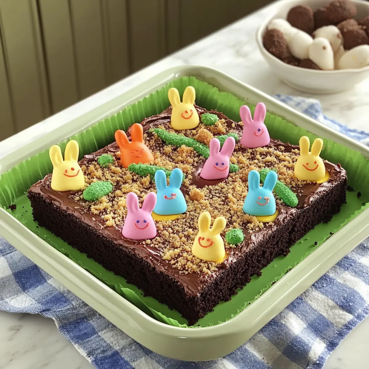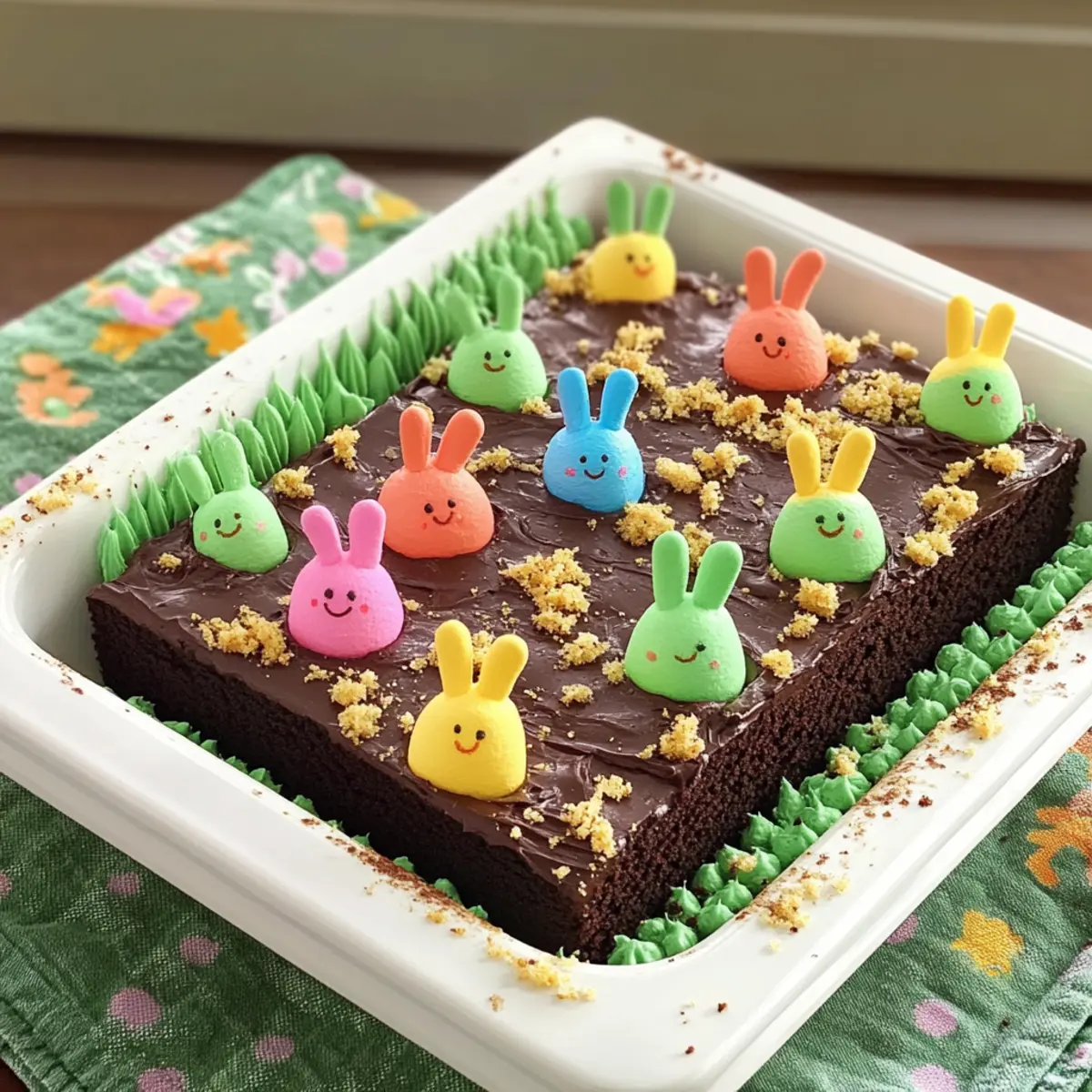 Ease of Preparation: With a convenient cake mix, you won’t need to be a baking pro to create this masterpiece. Family Fun: Making and decorating the cake is a delightful activity for all ages—perfect for a weekend baking session. Festive Appeal: The colorful PEEPS® bunnies and vibrant decorations bring a playful spirit that brightens any Easter celebration. Deliciously Chocolatey: The rich devil’s food cake paired with creamy frosting provides a decadent treat that chocolate lovers will adore. Be sure to serve it alongside a scoop of vanilla ice cream for an extra touch of indulgence!