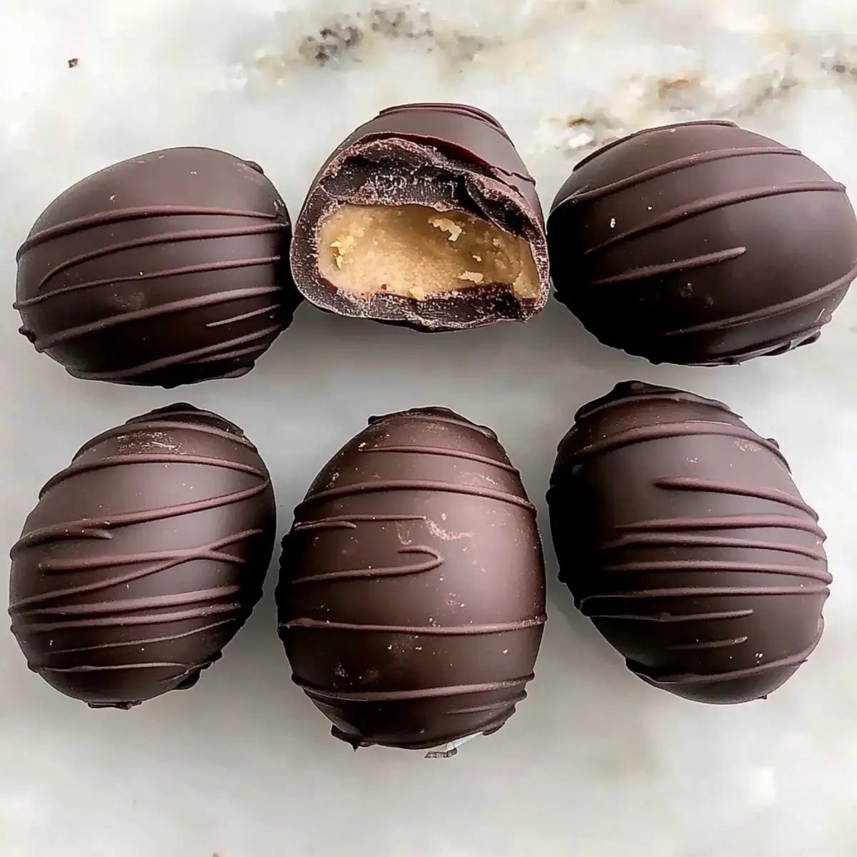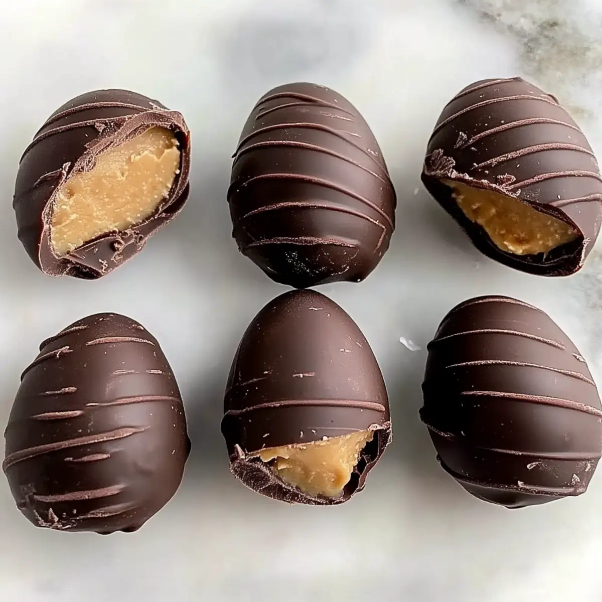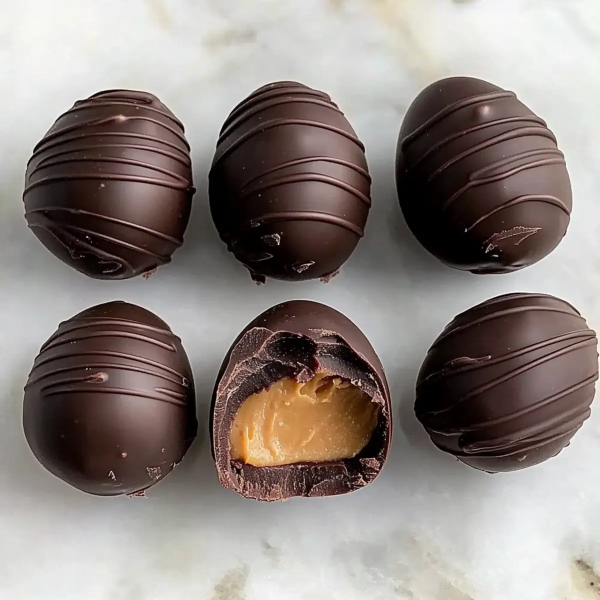 Easter is just around the corner, and I can practically smell the chocolate in the air! This year, I’m leaving the store-bought candies behind and embracing a homemade delight: No-Bake Chocolate Peanut Butter Eggs. These little treasures not only offer a creamy and rich combination of peanut butter and luscious chocolate, but they also shine as a gluten-free and vegan dessert. In just minutes, you’ll have a sweet treat ready to impress friends and family while keeping the guilt at bay. Plus, they’re a quick and easy option for all the busy holiday prep! Curious about how to create this perfect combination without turning on the oven? Let’s dive into the recipe together! Why Make These Peanut Butter Eggs? Irresistible Flavor: The combination of rich chocolate and creamy peanut butter creates a taste sensation that is sure to please everyone at your Easter gathering. Quick Convenience: With no baking required, these treats can be whipped up in just minutes, making them perfect for last-minute holiday preparations. Guilt-Free Indulgence: These eggs are gluten-free and vegan, allowing you to enjoy a sweet treat without the added worry. Versatile Variations: Feel free to swap in almond butter or add shredded coconut to customize the flavors to your liking. Crowd Pleaser: Whether served on a festive dessert table or as a homemade gift, these No-Bake Chocolate Peanut Butter Eggs will impress and delight! For more delightful treats, don’t forget to check out my recipes for Chewy Brown Butter Chocolate Chip Cookies and Slow Cooker Butter Chicken – they’re sure to be a hit too! Easter Peanut Butter Eggs Ingredients For the Filling Creamy Peanut Butter – Provides the filling’s base and creaminess; opt for natural peanut butter for the best flavor. Blanched Almond Flour – Adds structure to the filling; you can substitute with reduced amounts of coconut flour if needed. Maple Syrup – Acts as a natural sweetener; if you’re not strictly vegan, honey can be a great alternative. Vanilla Extract – Enhances the flavor; choose pure vanilla for optimal taste. Sea Salt – Balances the sweetness in the filling. For the Chocolate Coating Semi-Sweet Chocolate Chips – Forms the decadent chocolate coating; feel free to use dark chocolate for a richer flavor. Coconut Oil – Ensures a smooth consistency in the melted chocolate; vegetable oil or cocoa butter also work well if needed. Let the deliciousness of these Easter Peanut Butter Eggs unfold as you gather your ingredients and prepare to impress your loved ones with this no-bake treat! Step‑by‑Step Instructions for Easter Peanut Butter Eggs Step 1: Prepare the Filling In a food processor, combine creamy peanut butter, maple syrup, vanilla extract, almond flour, and a pinch of sea salt. Blend on medium speed for about 1-2 minutes until the mixture is crumbly yet well combined. You want a texture that holds together when pressed, signaling it’s ready to be shaped into the delightful filling for your Easter Peanut Butter Eggs. Step 2: Shape Filling Once the filling is ready, take small portions of the mixture and roll them into egg-shaped balls, roughly 1-2 inches long. Alternatively, flatten the mixture if you prefer using cookie cutters for cute shapes. Place the shaped eggs on a parchment-lined baking sheet, ensuring they are evenly spaced. Pop them into the freezer for about 15 minutes to firm up before coating them in chocolate. Step 3: Melt the Chocolate While the eggs chill, prepare the chocolate coating by placing semi-sweet chocolate chips and coconut oil in a microwave-safe bowl. Heat the mixture in the microwave in 30-second intervals, stirring in between until smooth and fully melted. This process should take about 1-2 minutes. Ensure the chocolate is glossy and fluid, making it perfect for dipping your Easter Peanut Butter Eggs. Step 4: Dip Eggs in Chocolate Remove the chilled eggs from the freezer and, using a fork, dip each egg into the melted chocolate, ensuring a thorough coating. Gently tap the fork on the edge of the bowl to let any excess chocolate drip off. Transfer the dipped eggs back to the parchment-lined baking sheet, arranging them nicely as you prepare to chill them again. Step 5: Chill and Serve After dipping, place the coated Easter Peanut Butter Eggs in the refrigerator for about 30 minutes, allowing the chocolate to set completely. Once firm, they are best enjoyed at room temperature. Serve these delightful treats at your Easter gathering, and watch your loved ones delight in this guilt-free indulgence! How to Store and Freeze Easter Peanut Butter Eggs Fridge: Store your Easter Peanut Butter Eggs in an airtight container in the fridge for up to 2 weeks. This keeps them fresh and ready for quick snacking! Freezer: For longer storage, freeze the eggs in a single layer on a baking sheet before transferring them to a freezer-safe container. They can be frozen for up to 3 months. Thawing: When you’re ready to enjoy, simply thaw the eggs at room temperature for optimal flavor and texture before serving. Reheating: There’s no need to reheat these treats; serve them chilled or at room temperature for the best taste experience. Easter Peanut Butter Eggs Variations Feel free to personalize these decadent treats with your own creative twists, making each bite uniquely yours! Nut-Free Substitute: Use sunflower seed butter instead of peanut butter to create a delicious, nut-free option that everyone can enjoy. Tropical Twist: Incorporate shredded coconut into the filling for a delightful texture and a hint of the tropics, giving your eggs a fun flair. Alternative Sweeteners: Swap maple syrup for agave syrup to cater to different sweetness preferences and enjoy a subtle flavor change. Mocha Variations: Add a teaspoon of instant coffee granules to the filling for a rich mocha flavor that beautifully complements the chocolate coating. Fruity Add-Ins: Fold in dried fruits like cranberries or chopped apricots to 