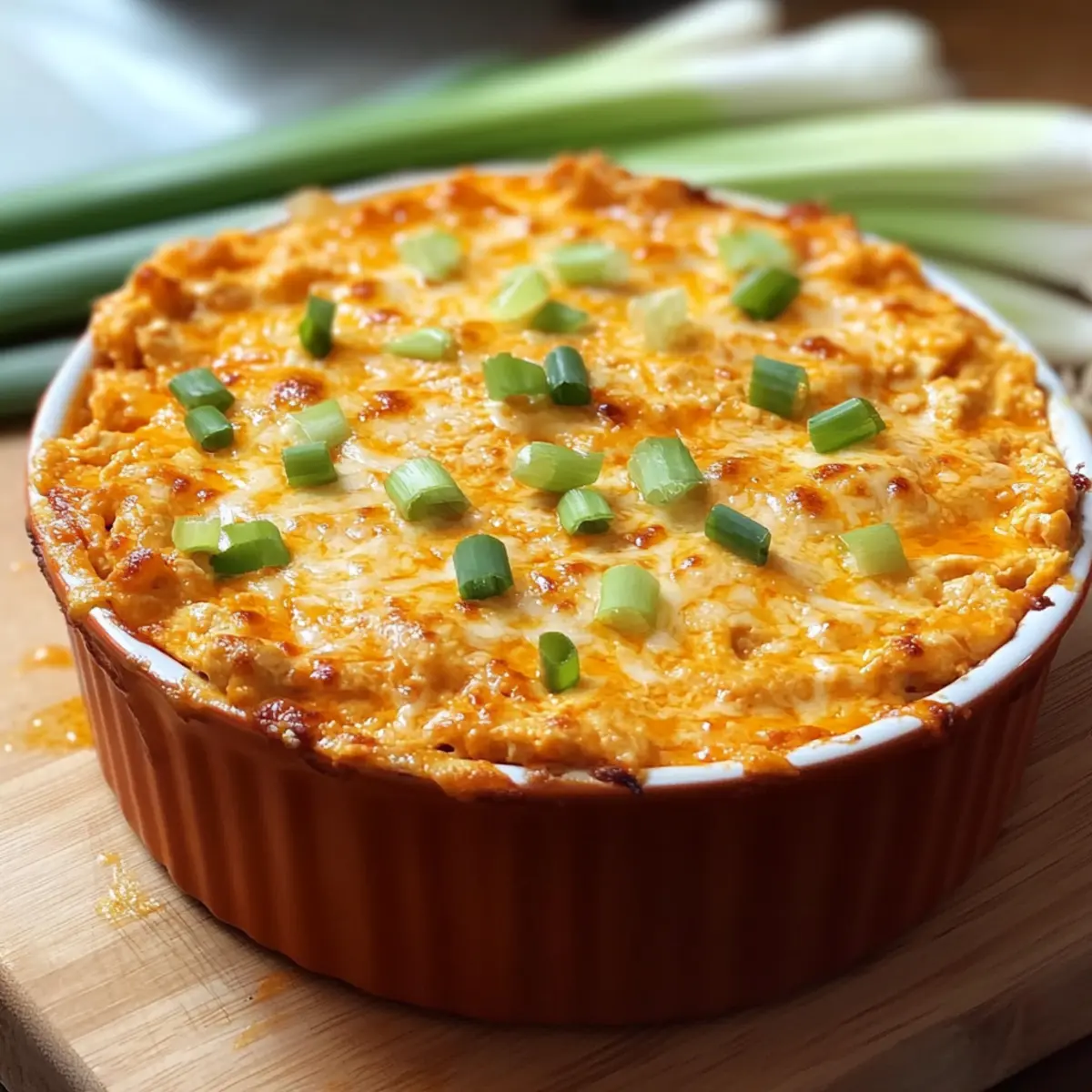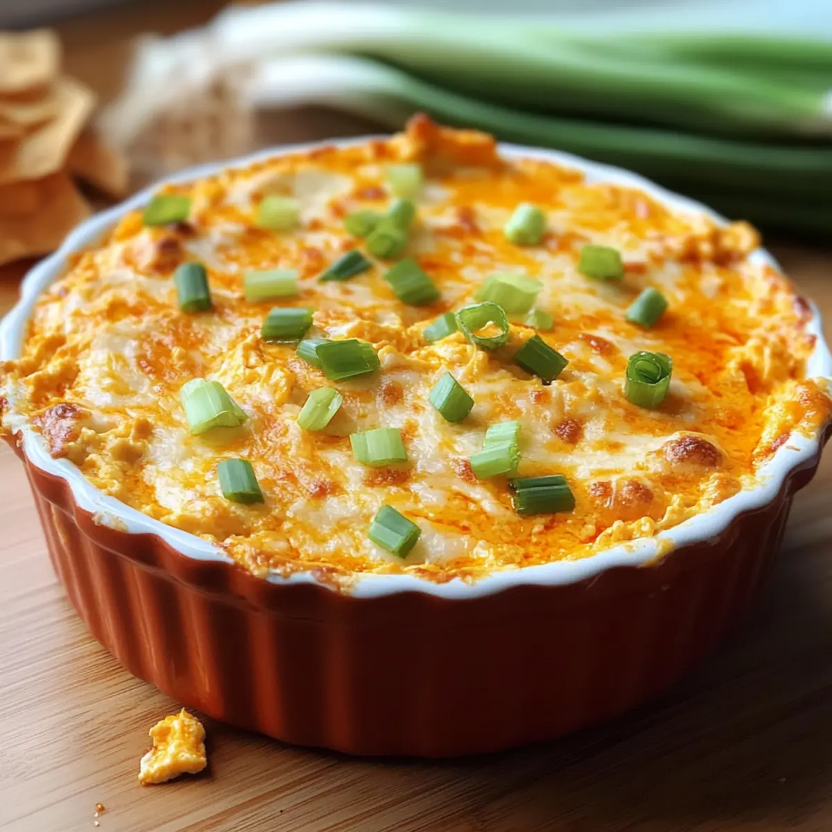 After removing the dip from the oven, let it rest for about 5 minutes. This helps all the flavors settle while cooling down slightly for easier scooping. Garnish your dip with freshly diced green onions for a pop of color and flavor before serving it up with your favorite dippers, like tortilla chips or celery sticks.