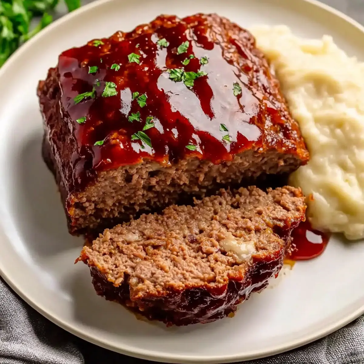 As I stood in the kitchen, I could practically hear the comforting whispers of home-cooked meals from my childhood. That’s when I stumbled upon my new favorite: Easy Venison Meatloaf with Tangy Glaze. This recipe not only transforms lean game meat into a deliciously moist dish but also offers a delightful twist on a classic comfort food. With just a handful of ingredients and minimal prep time, it’s the perfect weeknight meal for busy families craving something hearty and satisfying. Plus, it encourages everyone to embrace the unique flavors of game meat while still appealing to even the pickiest eaters at your table. Want to elevate your dinner game? Let’s dive into this savory adventure! Why is venison meatloaf a game-changer? Unique Flavor Profile: Venison brings a distinctive taste that elevates traditional meatloaf to something extraordinary. It’s a delicious way to explore game meat while keeping familiar comforts. Nutritionally Superior: Lean meat that’s lower in fat than beef, this meatloaf packs protein without the heaviness, making it an ideal choice for health-conscious families. Versatile Ingredients: Substitute with ground beef or turkey easily, allowing you to cater to varying dietary preferences and still enjoy that comforting flavor. Simple Preparation: With minimal prep time, you can whip up this dish quickly, freeing you up to enjoy quality time with loved ones while dinner bakes. Perfect for Leftovers: Enjoy the convenience of leftovers; meatloaf stays flavorful in the fridge and can also pack well for work lunches or picnics, making it as practical as it is tasty. Easy Venison Meatloaf Ingredients For the Meatloaf Ground Venison – The star of the dish offers a unique flavor that elevates your meatloaf; it can be substituted with ground beef if preferred. Dried Breadcrumbs – Acts as a binder, adding texture to your Easy Venison Meatloaf; panko is recommended for an even better crunch. Milk – Keeps the breadcrumbs moist and maintains a tender texture; you can opt for non-dairy milk if needed. Olive Oil – Used to sauté onions for added flavor; feel free to swap it with any neutral oil like canola. Onion – Provides sweetness and depth of flavor when sautéed; shallots can be a great alternative for a milder taste. Garlic – Infuses aromatic essence into the meatloaf; garlic powder can be used if fresh is unavailable. Eggs – Helps bind all the ingredients together; no substitutes are recommended, but a flax egg works for a vegan version. Italian Seasoning – Enhances the flavor profile; a homemade blend of dried herbs like oregano, basil, and thyme can also be used. Worcestershire Sauce – Adds savory umami; soy sauce is a suitable substitute if you’re in a pinch. For the Glaze Ketchup – Serves as the base for the sweet glaze, providing that delicious tang; you can switch it out with barbecue sauce for a twist. Brown Sugar – Sweetens the glaze nicely; honey or maple syrup can replace it for a different flavor profile. Dijon Mustard – Adds a delightful tang; yellow mustard can be used if that’s what you have on hand. Salt and Pepper – Essential for flavor enhancement; freshly ground pepper brings a vibrant kick. Enjoy whipping up this addictive and hearty dish that the whole family will love! Step‑by‑Step Instructions for Easy Venison Meatloaf Step 1: Preheat the Oven Start by preheating your oven to 375°F (190°C). This ensures that your Easy Venison Meatloaf bakes evenly, resulting in a deliciously tender and moist texture. Take this time to gather all the ingredients you’ll need and prepare your cooking equipment, such as a loaf pan or parchment paper for lining. Step 2: Sauté the Aromatics In a skillet, heat 2 tablespoons of olive oil over medium heat. Add 1 finely diced onion and sauté for about 4-5 minutes until it becomes translucent. Then, incorporate 2 minced garlic cloves and cook for an additional 2-3 minutes, stirring frequently, until fragrant. This step builds an amazing flavor base for your meatloaf. Step 3: Prepare the Breadcrumb Mixture In a mixing bowl, combine 1 cup of dried breadcrumbs with 1/2 cup of milk. Allow the breadcrumbs to soak in the milk for about 1 minute, which helps keep your Easy Venison Meatloaf moist. This mixture binds the ingredients together beautifully, ensuring a tender and fluffy meatloaf once baked. Step 4: Combine Ingredients Once the onion and garlic mixture has cooled slightly, add it to the breadcrumb mixture. Then, break in 2 eggs, drizzle with 2 tablespoons of Worcestershire sauce, and sprinkle in your favorite Italian seasoning. Finally, gently fold in 1 pound of ground venison without overmixing to maintain a light texture. Step 5: Shape the Meatloaf Transfer the mixed meatloaf ingredients into a lightly oiled loaf pan or a parchment-lined baking sheet, shaping it into a neat loaf. Make sure to press down gently to ensure it holds together while baking. This is where the magic of your Easy Venison Meatloaf begins to take shape! Step 6: Bake the Meatloaf Place your assembled meatloaf into the preheated oven and bake for 45 minutes. You’ll know it’s time to check on it when you start to see a beautiful golden-brown color on top. This initial baking allows for the flavors to meld together perfectly. Step 7: Add the Glaze While the meatloaf is baking, prepare the glaze by mixing 1/2 cup of ketchup, 1 tablespoon of brown sugar, and 1 teaspoon of Dijon mustard in a small bowl. After 45 minutes, carefully remove the meatloaf, brush the glaze over the top, and return it to the oven for an additional 15-20 minutes, until the internal temperature reads 160°F (71°C). Step 8: Rest and Slice Once your Easy Venison Meatloaf is baked to perfection, remove it from the oven and let it rest for 5-10 minutes. This resting period allows the juices to redistribute throughout the meatloaf, ensuring every slice is moist and flavorful. After resting, slice and serve to showcase your culinary pr
