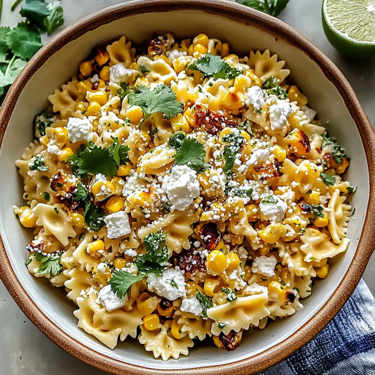 As I took my first bite of this Creamy Elote Pasta Salad, the memories of summer barbecues flooded back, each mouthful a delightful reminder of warm nights and good company. This Elote Pasta Salad recipe incorporates the sweet crunch of fire-roasted corn and a zesty lime dressing, making it the perfect go-to dish for gatherings or a satisfying dinner at home. Not only is this salad a crowd-pleaser, but it’s also incredibly versatile—choose gluten-free pasta or even a vegan twist to suit your dietary needs! Whether served as a main dish or as a side accompanying grilled meats, its creamy texture and fresh ingredients make it an instant favorite. Curious about how you can make it your own? Let’s dive into this vibrant recipe together! Why is this Elote Pasta Salad unique? Creamy, Dreamy Flavor: The luscious dressing, made with mayonnaise and zesty lime juice, delivers a rich creaminess that elevates the simple pasta and corn. Festive Ingredients: Fire-roasted corn brings a sweet, smoky twist that’s sure to impress at any gathering. Versatile Variations: Want to mix it up? Try using chickpea pasta or make it vegan with mashed avocado instead of mayo! Easy & Quick: With just a few steps, you can whip up this delightful salad in no time, perfect for last-minute gatherings. Crowd-Pleasing Appeal: Whether at a potluck or a cozy dinner, it’s a sure hit that brightens up any meal, just like a refreshing Cucumber Caprese Salad would. Elote Pasta Salad Ingredients • Get ready to create your own delicious Elote Pasta Salad with these vibrant ingredients! For the Dressing ½ cup mayonnaise – Adds creaminess to the dressing; substitute with Greek yogurt for a lighter option. 2 garlic cloves, minced – Provides aromatic depth; no direct substitute noted. Juice from 1 lime (about 2 tbsp) – Adds necessary acidity and brightness; fresh lime is preferred for best flavor. ½ tsp chili powder – Brings a touch of heat; adjust according to spice preference. ½ tsp cumin – Enhances the earthy flavor profile. ½ tsp paprika – Adds sweetness and color. ½ tsp kosher salt – For seasoning; adjust to taste. ¼ tsp black pepper – Adds a mild spice; adjust if needed. A pinch of cayenne pepper (optional) – For extra heat; omit for milder flavor. For the Pasta Salad 12 oz dry farfalle pasta – Acts as the base for the salad; can substitute with gluten-free pasta if desired. 16 oz frozen fire-roasted corn, thawed (or grilled fresh corn kernels) – Adds sweetness and smoky flavor; fresh corn provides better smokiness. ¼ cup chopped fresh cilantro – For a burst of freshness and color. ¼ cup chopped green onion (or red onion) – Adds sharpness and crunch. ⅓ cup crumbled cotija cheese (plus more for garnish) – Delivers a creamy, salty element; substitute with vegan cheese for dairy-free options. Step‑by‑Step Instructions for Elote Pasta Salad Recipe Step 1: Cook the Pasta Bring a large pot of salted water to a boil over high heat. Once boiling, add 12 oz of dry farfalle pasta and cook until al dente, about 8-10 minutes. To check doneness, taste a piece; it should be firm but tender. Drain the pasta and rinse it under cold water to stop the cooking process and cool it down. Step 2: Prepare the Dressing In a medium mixing bowl, whisk together ½ cup of mayonnaise, the juice of 1 lime, minced garlic, and the spices including chili powder, cumin, and paprika. Blend these ingredients until smooth and creamy, ensuring there are no lumps. This dressing is crucial for the Elote Pasta Salad, contributing a rich flavor that complements the other ingredients beautifully. Step 3: Combine Salad Base In a large bowl, combine the cooled farfalle pasta with 16 oz of thawed fire-roasted corn, ¼ cup of chopped fresh cilantro, and ¼ cup of green onions. Gently mix these ingredients with a spatula, allowing the pasta to absorb some of the corn’s sweetness and the freshness of the herbs. You’ll see a colorful and vibrant base coming together. Step 4: Mix the Dressing Pour the creamy dressing over the salad mixture and use a spatula to toss everything gently, ensuring the pasta and vegetables are well coated without breaking the pasta. The dressing should envelop the salad, creating a luscious layer that binds all the flavors together. Set it aside to let the flavors meld for a moment. Step 5: Incorporate the Cheese Fold in ⅓ cup of crumbled cotija cheese into the mixed salad. Use a gentle hand to avoid breaking apart the pasta too much. The cotija not only adds a creamy, salty burst but also enhances the overall taste of your Elote Pasta Salad. Feel free to reserve some cheese for garnishing later. Step 6: Garnish and Chill Sprinkle additional cotija cheese and fresh cilantro over the top of the Elote Pasta Salad for a pop of color and flavor. Cover the bowl with plastic wrap or a lid and refrigerate the salad for at least 30 minutes. This chilling time allows the flavors to develop, making each bite even more delightful when served cold. How to Store and Freeze Elote Pasta Salad Fridge: Store leftovers in an airtight container for up to 3 days. This will keep the salad fresh and prevent it from absorbing too much moisture. Freezer: It’s not recommended to freeze this Elote Pasta Salad as the pasta and vegetables can become mushy when thawed. Enjoy it fresh! Reheating: If you’ve chilled your salad and prefer it at room temperature, allow it to sit out for about 20 minutes before serving. If desired, mix in extra dressing to maintain creaminess. Tips: To keep it vibrant and delicious, add fresh cilantro and cotija cheese just before serving. Expert Tips for Elote Pasta Salad Taste as You Go: Make sure to sample the creamy dressing before adding it to the pasta. Adjust the flavors to your preference for the best Elote Pasta Salad experience. Cook Pasta Al Dente: Slightly undercook the pasta for a firm texture; it will soak up some dressing while chilling, ensuring it doesn’t become mushy. R