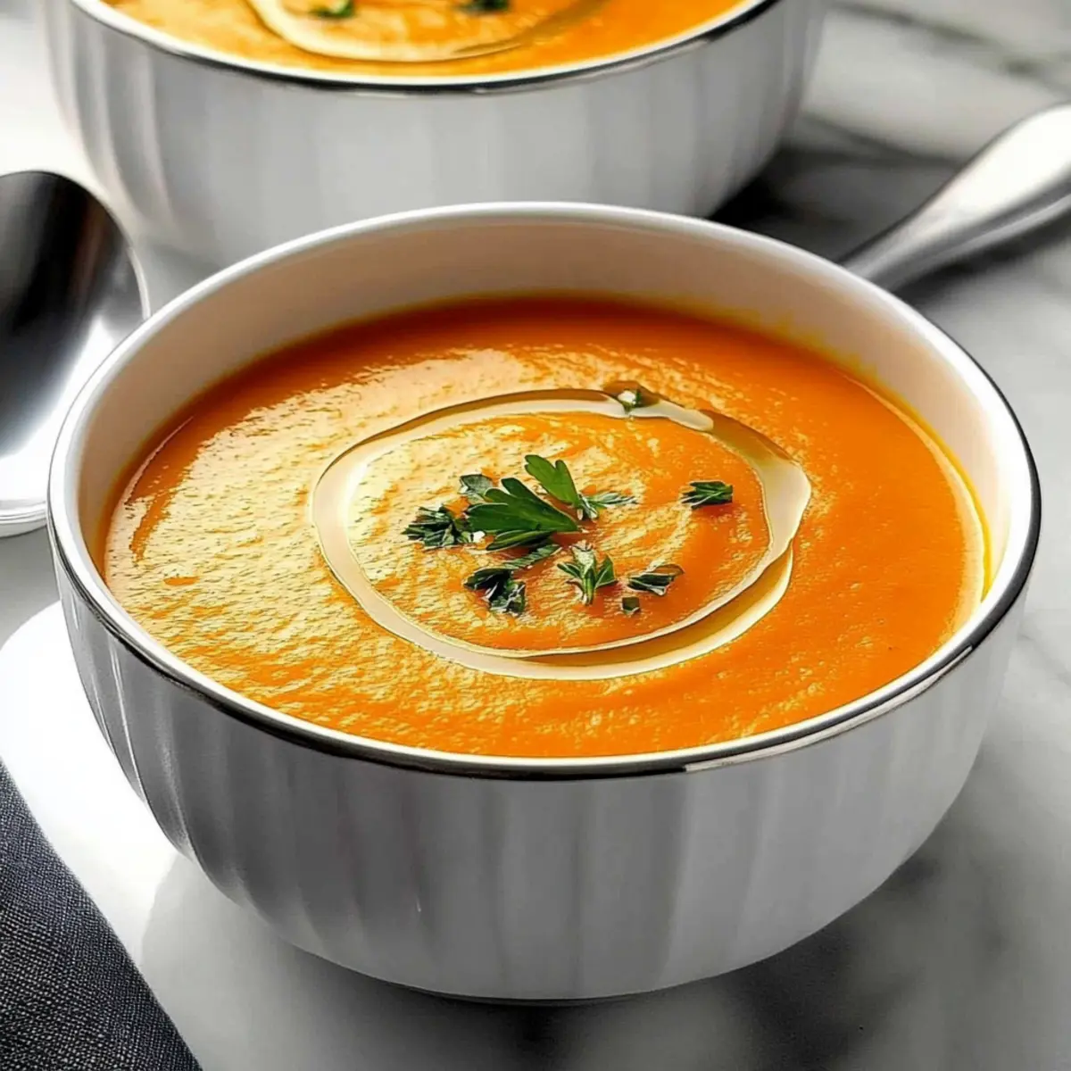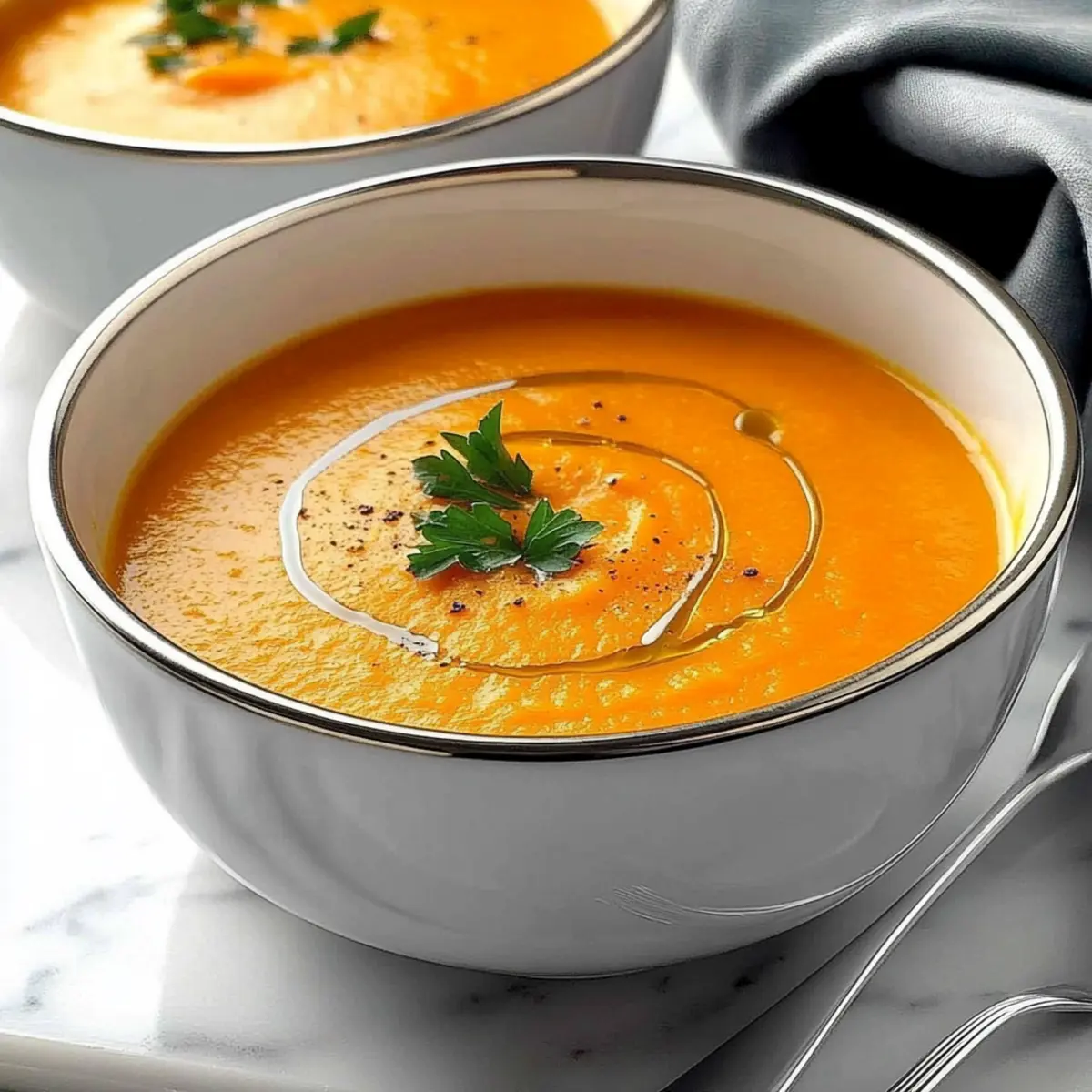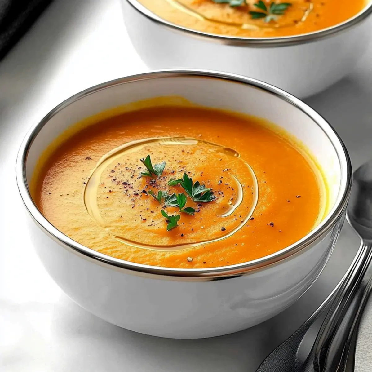 As I chased the chill away with a warm bowl of Fennel Carrot Soup, I was reminded that comfort can come in the form of nourishing ingredients. This delightful recipe showcases the harmonious blend of toasted fennel seeds with the natural sweetness of carrots, sweet potato, and a touch of apple. It’s not just a feast for the taste buds; it’s gluten-free, vegetarian, and brimming with health benefits, making it perfect for weeknight dinners or special occasions alike. In just under an hour, you can transform simple produce into a velvety, comforting soup that warms the heart. Curious about how to bring this blend of flavors to your table? Let’s dive into the recipe! Why is this soup a must-try? Comforting Flavor: This Fennel Carrot Soup delivers a delightful mix of flavors that will leave you craving more. The toasted fennel seeds create a distinctive profile that harmonizes beautifully with the sweetness of carrots and apples. Nutrient-Packed: Bursting with vitamins and minerals, this soup is not just delicious but nourishing, making it ideal for those prioritizing health. You can easily adjust ingredients based on your preferences, just like with my Red Pepper Soup. Quick and Easy: With just a handful of simple ingredients, you can whip up a wholesome meal in under an hour. Perfect for a busy weeknight or a relaxed weekend gathering! Family-Friendly: This recipe is sure to please both kids and adults, making it a great option for family dinners. No more fast food – embrace home cooking! Versatile Serving Suggestions: Pair it with crusty bread, or serve it as a starter to your next dinner party. This soup is a crowd-pleaser that fits seamlessly into any occasion! Fennel Carrot Soup Ingredients • Here’s everything you need for a delightful bowl of flavors! For the Base Butter – Adds richness and enhances flavor; substitute with olive oil for a vegan option. Fennel Seed – Provides aromatic sweetness and a unique flavor; essential for the soup’s character. Carrots – The primary ingredient for sweetness and vibrant color; use any variety you like. Sweet Potato – Adds creaminess and natural sweetness; can be replaced with regular potato if desired. Apple – Brings a hint of natural sweetness and acidity; try a tart variety like Granny Smith for added zest. For the Broth Vegetable Broth – The soup’s savory base; homemade or store-bought works perfectly. Long Grain Rice – Thickens the soup while providing substance; optional, can be substituted with quinoa. Bay Leaf – Infuses depth of flavor while cooking; remember to remove before blending. Curry Powder – Adds warmth and complexity; adjust to your taste for desired spiciness. For Flavor Enhancement Lemon Juice – Brightens the flavor just before serving, enhancing the overall taste experience. Salt – Essential for enhancing flavors; adjust to suit your palate. White Pepper – Offers mild heat without changing the soup’s color; black pepper can work as a substitution. For Garnish Fresh Parsley – Adds freshness and a pop of color; chives or other herbs can also be used for garnish. Step‑by‑Step Instructions for Fennel Carrot Soup Step 1: Melt the Butter In a large saucepan, melt 2 tablespoons of butter over medium-high heat. Once melted, watch for bubbling, indicating the butter is hot enough. Make sure not to let it brown as you prepare for the next steps. This will form the rich base for your Fennel Carrot Soup. Step 2: Toast the Fennel Seeds Add 1 tablespoon of fennel seeds to the hot butter. Cook and stir the seeds for about 2-3 minutes until they become aromatic and lightly toasted. Keep an eye on them to prevent burning; they should change to a golden hue and release their fragrant oils, enhancing the flavor profile of your soup. Step 3: Sauté the Vegetables Introduce 3 cups of chopped carrots, 1 medium sweet potato peeled and diced, and 1 chopped apple into the pan. Sauté these ingredients for approximately 5 minutes until they soften slightly and their vibrant colors become more pronounced. Stir frequently to ensure even cooking and to help meld the flavors together. Step 4: Add Broth and Simmer Pour in 4 cups of vegetable broth along with 1/2 cup of long grain rice, 1 bay leaf, and 1 tablespoon of curry powder. Increase the heat to bring the mixture to a boil, then reduce the heat and cover the pot. Let it simmer gently for about 30 minutes until the rice is tender and the vegetables are soft, contributing to the creamy texture of the Fennel Carrot Soup. Step 5: Cool and Discard the Bay Leaf After 30 minutes of simmering, remove the pan from the heat. Allow the soup to cool slightly for about 5 minutes before carefully discarding the bay leaf. This step is crucial as it removes any unwanted flavors and ensures a clean, delicious base for your soup. Step 6: Blend the Soup In batches, transfer the soup mixture to a blender, filling it no more than halfway to avoid overflow. Blend until smooth and creamy, allowing the warmth to escape. Return the blended soup to your saucepan, ensuring it’s velvety and well-mixed, making this Fennel Carrot Soup truly indulgent. Step 7: Final Seasoning Stir in the juice of 1 lemon, 1 teaspoon of salt, and 1/2 teaspoon of white pepper. Heat through over low to medium heat for an additional 5 minutes, stirring occasionally. This step brightens up the flavor and ensures the seasonings are well incorporated into the warm soup. Step 8: Garnish and Serve Ladle the finished Fennel Carrot Soup into bowls and garnish each serving with freshly chopped parsley. This not only enhances the presentation with a pop of color but also adds a fresh flavor that complements the creamy soup. Serve warm with crusty bread for a comforting meal. Expert Tips for Fennel Carrot Soup Toast Fennel Seeds: Always toast the fennel seeds until golden to enhance their aromatic flavor; avoid burning for best results. Blend in Batches: When blending, work in small batches to prevent overflow and