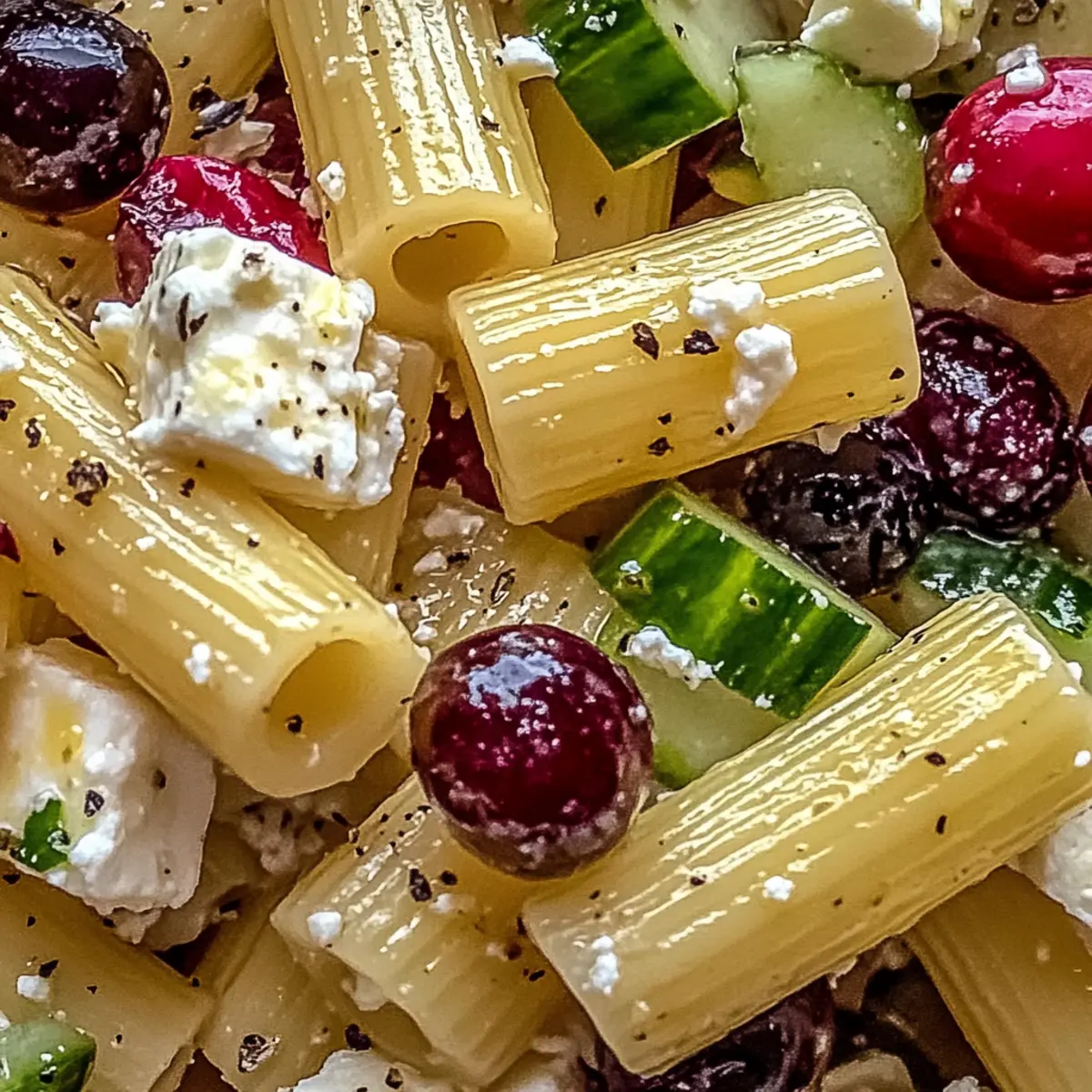 As I savored every bite of the Feta & Cranberry Rigatoni Salad with Lemon Vinaigrette, memories of sunlit picnics and vibrant summer gatherings came flooding back. This dish is not only a feast for the eyes with its colorful ingredients, but it also makes meal prep a delightful breeze—ready in just 20 minutes! Bursting with the savory richness of feta and the sweet, chewy cranberries, this Mediterranean-inspired salad is the perfect way to lighten up your lunch or impress your guests at a barbecue. Ideal for those who seek a refreshing twist on traditional pasta dishes, this recipe can easily become a staple in your kitchen. Are you ready to whip up this delightful summer celebration on your plate? Why is this salad a must-try? Quick and Easy: This Feta & Cranberry Rigatoni Salad requires just 20 minutes from kitchen to table, perfect for busy days. Vibrant Flavors: The zesty lemon vinaigrette pairs beautifully with the creamy feta and sweet cranberries, creating a refreshing taste that’s irresistible. Meal Prep-Friendly: Make it ahead of time and store in the fridge for up to three days; it’s a go-to for packed lunches! Crowd-Pleasing: Whether at a potluck or summer barbecue, this salad is sure to impress guests with its bright color and delightful tastes. Versatile Options: Mix in grilled chicken or extra veggies for a heartier meal—this salad can easily adapt to your cravings. Feeling inspired? Check out the Feta Avocado Salad or discover more great summer options like Grilled Zucchini Feta for a balanced meal! Feta & Cranberry Rigatoni Salad Ingredients For the Pasta • Rigatoni Pasta – Provides structure and heartiness to the salad; can substitute with penne or fusilli. For the Cheese • Feta Cheese – Adds creaminess and a tangy flavor that complements the sweetness of cranberries; fresh is recommended. For the Sweet Element • Dried Cranberries – Their sweetness and chewiness enhance the overall flavor profile; alternatives include raisins or chopped dried apricots. For the Freshness • Mixed Fresh Vegetables (bell peppers, cucumbers) – Contributes crunch and freshness; substitute with other crisp veggies like zucchini. For the Dressing • Lemon Vinaigrette – Adds acidity and zesty flavor; start with less dressing and adjust to taste. • Olive Oil – Essential for smooth dressing; using extra virgin yields the best flavor. For Seasoning • Salt & Pepper – Essential for flavor; adjust according to your taste preferences. This Feta & Cranberry Rigatoni Salad is not only a delicious choice but also packed with vibrant ingredients ready to brighten up your table! Step‑by‑Step Instructions for Feta & Cranberry Rigatoni Salad with Lemon Vinaigrette Step 1: Cook the Pasta Begin by bringing a large pot of salted water to a rolling boil. Add the rigatoni pasta and cook for about 10 minutes, or until al dente, stirring occasionally. Once cooked, drain the pasta and rinse it under cold water to halt the cooking process and prevent stickiness. Set the cooled pasta aside in a large mixing bowl. Step 2: Prepare the Dressing In a medium bowl, whisk together the fresh lemon juice, extra virgin olive oil, salt, and pepper until the mixture is well emulsified and slightly thickened. The lemon vinaigrette should be tangy and balanced, so feel free to adjust the seasoning to your taste. Once ready, set the dressing aside while you combine the other salad ingredients. Step 3: Combine the Ingredients In the bowl containing the cooled rigatoni, add the crumbled feta cheese, dried cranberries, and diced mixed vegetables such as bell peppers and cucumbers. Gently toss all the ingredients together, ensuring the feta and cranberries are evenly distributed throughout the pasta. This step is crucial for achieving a harmonious blend of flavors in your Feta & Cranberry Rigatoni Salad. Step 4: Dress the Salad Pour the prepared lemon vinaigrette over the pasta mixture, being careful not to add too much at once. Toss gently to coat all the ingredients evenly with the vinaigrette, making sure to preserve the integrity of the feta. The salad should appear vibrant and glistening, indicating that it’s ready for the next step. Step 5: Chill the Salad Cover the bowl with plastic wrap or a lid and place the salad in the refrigerator for at least 30 minutes. Chilling allows the flavors to meld beautifully, enhancing the taste of the Feta & Cranberry Rigatoni Salad. You’ll know it’s ready when the vegetables have slightly softened and absorbed some vinaigrette flavor. Step 6: Final Adjustments and Serve Before serving, taste the salad and make any final seasoning adjustments with salt and pepper if needed. If the salad seems too dry, add a splash more of the lemon vinaigrette. Transfer to a serving dish or individual bowls, showcasing the beautiful colors and ingredients. Your refreshing Feta & Cranberry Rigatoni Salad with Lemon Vinaigrette is now ready to be enjoyed! Expert Tips for Feta & Cranberry Rigatoni Salad Rinse Pasta: Always rinse your rigatoni after cooking to prevent it from becoming sticky. This keeps your Feta & Cranberry Rigatoni Salad light and fresh. Balance the Dressing: Start with a small amount of lemon vinaigrette and gradually add more until you find the perfect balance. Too much dressing can overwhelm the other flavors. Freshness Matters: Opt for fresh feta and crisp veggies; wilted ingredients can dull the vibrant taste of your salad. Chill for Flavor: Don’t skip the chilling time! Allowing the salad to rest enhances the flavors, making each bite even more delightful. Taste Test: Before serving, always taste and adjust your seasoning. Everyone’s palate is different, so a little extra salt or pepper can make a big difference! What to Serve with Feta & Cranberry Rigatoni Salad? Elevate your mealtime experience with these delightful pairings that perfectly complement this vibrant and refreshing dish. Grilled Chicken Skewers: Juicy, seasoned chicken adds protein