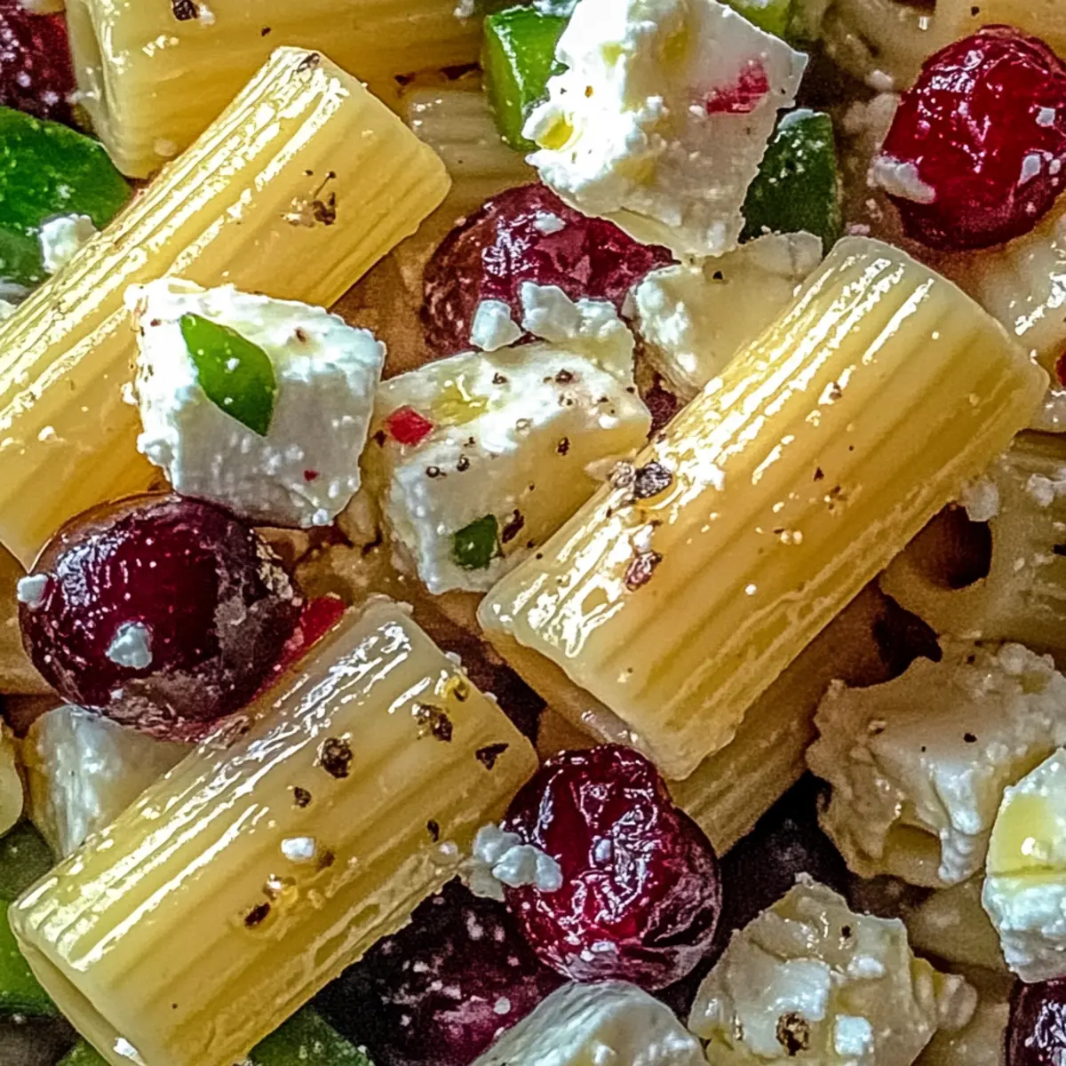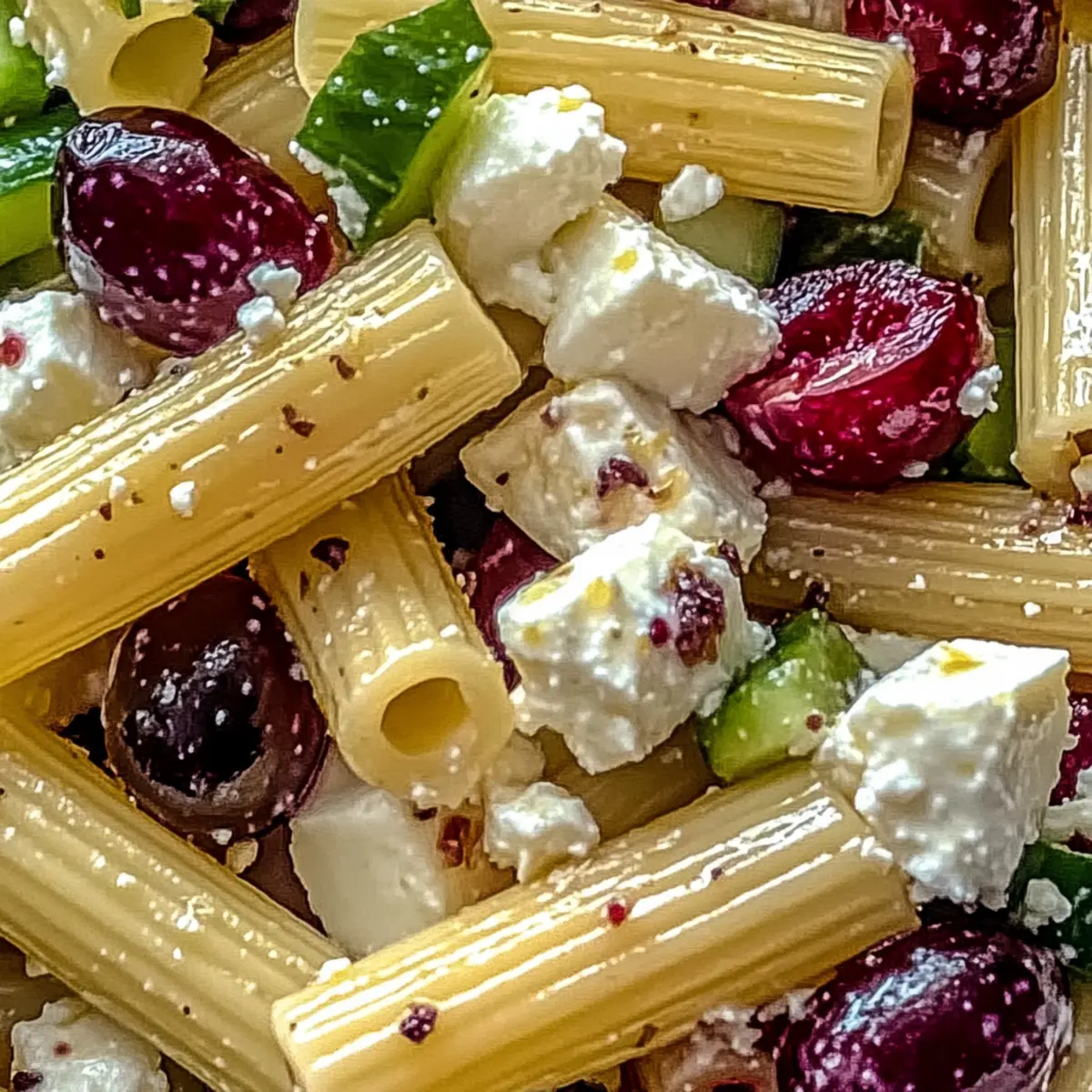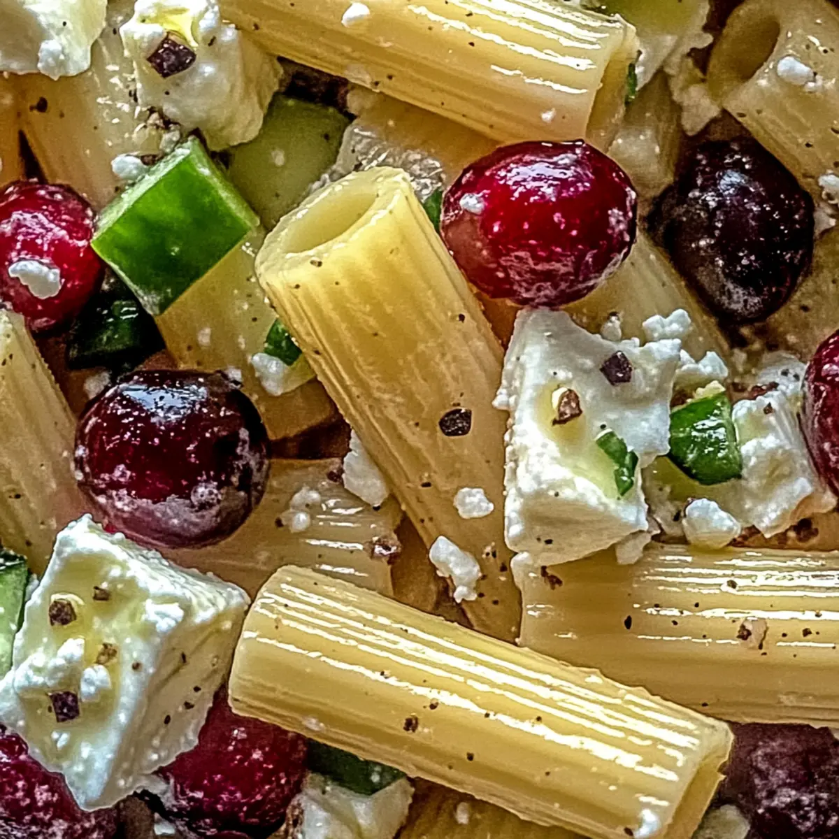 In my quest for light and refreshing summer flavors, I stumbled upon an unexpectedly delightful creation: Feta & Cranberry Rigatoni Salad with Lemon Vinaigrette. This salad marries creamy, tangy feta with the sweet pop of cranberries, all enveloped in a vibrant lemon vinaigrette that sings of sunshine. Not only is this dish quick to whip up—taking just 20 minutes—but it’s also customizable, making it a perfect option for anyone looking to escape the clutches of fast food. Whether you’re preparing for a picnic or a potluck, this salad offers a burst of Mediterranean flair that’s as pleasing to the eye as it is to the palate. Ready to dive into a world of delicious possibilities? Let’s explore how to make this refreshing dish your new summer staple! What Makes This Salad So Special? Simplicity: With just 20 minutes to prepare, this salad is the perfect solution for busy weeknights or last-minute gatherings. Customization: Always a crowd-pleaser, you can easily adapt it to suit your taste with various pastas and veggies. Health-Conscious: Light and nutrient-rich, it’s a fantastic alternative to heavier fare, perfect for your summer meals. Mediterranean Flair: Embrace the brightness of Mediterranean cuisine, infused with fresh ingredients and bold flavors, making every bite exciting. Plus, if you’re looking to store leftovers, this dish keeps well in the fridge—perfect for meal prep or enjoying later! Looking for a sweet finish to your meal? Check out this delicious Cranberry Pie with Streusel Topping for a delightful contrast to the savory goodness of this salad! Feta & Cranberry Rigatoni Salad Ingredients • Gather your fresh goods and delight in creating this delightful salad! For the Pasta Rigatoni – The sturdy base that holds all the flavors; you can substitute with penne or fusilli for a fun twist. For the Salad Feta Cheese – Adds a creamy texture and salty punch; make sure it’s fresh for the best flavor experience. Dried Cranberries – Provides a sweet contrast; feel free to swap with raisins or other dried fruits if desired. Fresh Vegetables (optional) – Boosts crunch and nutrition; consider bell peppers, zucchini, or cherry tomatoes for added color and flavor. For the Dressing Lemon Vinaigrette – Brightens the dish with a zing; start with a small amount and adjust to your taste preference. Olive Oil – Brings richness to the vinaigrette; can be replaced with avocado oil for a unique flavor. Seasoning (Salt & Pepper) – Elevates the overall taste; adjust according to your palate to create the perfect balance. Remember, the Feta & Cranberry Rigatoni Salad is all about personalization, so get creative with ingredient substitutions and let your taste buds guide you! Step‑by‑Step Instructions for https://www.foodiemoms.com/cranberry-pie-with-streusel-topping-a-sweet-tart-holiday-favorite/ Step 1: Cook the Rigatoni Begin by boiling a large pot of salted water over high heat. Once boiling, add the rigatoni and cook according to package instructions until al dente, usually around 10-12 minutes. Stir occasionally to prevent sticking. When finished, drain the pasta in a colander and rinse under cold water to stop the cooking process and cool it down, ensuring a perfect base for the Feta & Cranberry Rigatoni Salad. Step 2: Prepare the Salad Base In a large mixing bowl, combine the cooled rigatoni with crumbled feta cheese and your choice of dried cranberries. If you’re adding any optional fresh vegetables like bell peppers or cherry tomatoes, chop them into bite-sized pieces and toss them in as well. Gently mix until well combined, allowing the creamy feta to coat the pasta evenly, creating a flavorful base for the salad. Step 3: Make the Lemon Vinaigrette In a separate small bowl, whisk together freshly squeezed lemon juice, olive oil, salt, and pepper to create a zesty lemon vinaigrette. Start with a small amount of each seasoning, adjusting to your taste preferences. This dressing will add brightness to the Feta & Cranberry Rigatoni Salad. Continue whisking until the mixture is emulsified and smooth, ensuring the flavors are well incorporated. Step 4: Combine the Salad and Dressing Pour the prepared lemon vinaigrette over the rigatoni mixture in the large bowl. Using a spatula or large spoon, toss everything together gently until the pasta and vegetables are evenly coated in the dressing. Be careful not to break apart the feta too much; you want those creamy chunks to remain intact, enhancing the overall texture of the salad. Step 5: Chill and Serve Cover the bowl with plastic wrap or transfer the salad to an airtight container. Place it in the refrigerator for at least 30 minutes. This chill time allows the flavors of the Feta & Cranberry Rigatoni Salad to meld beautifully together, making every bite refreshing and delicious. Before serving, taste and adjust seasoning if needed, ensuring the salad is just right for your gathering. How to Store and Freeze Feta & Cranberry Rigatoni Salad Fridge: Store the salad in an airtight container for up to 3 days. This way, you can enjoy the refreshing flavors whenever you like! Freezer: It’s best not to freeze the salad, as the texture can become mushy when thawed. Fresh ingredients like feta and veggies lose their crunch. Reheating: If you plan to enjoy it cold, no need to reheat. Just toss it back in the fridge and serve chilled for a deliciously refreshing meal! Leftover Adjustments: You may want to adjust the seasoning and drizzle a bit more lemon vinaigrette before serving leftovers to brighten the flavors again. Expert Tips for Feta & Cranberry Rigatoni Salad Cool the Pasta: Rinse the rigatoni with cold water immediately after cooking to prevent a sticky mess; it helps keep the salad light and refreshing. Dress Wisely: Begin with a little vinaigrette and taste as you go; it’s better to add more later than to have an overdressed salad! Use Fresh Ingredients: Fresh feta and seasonal vegetables ensure vibra