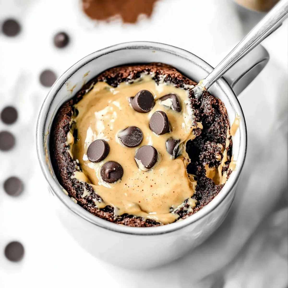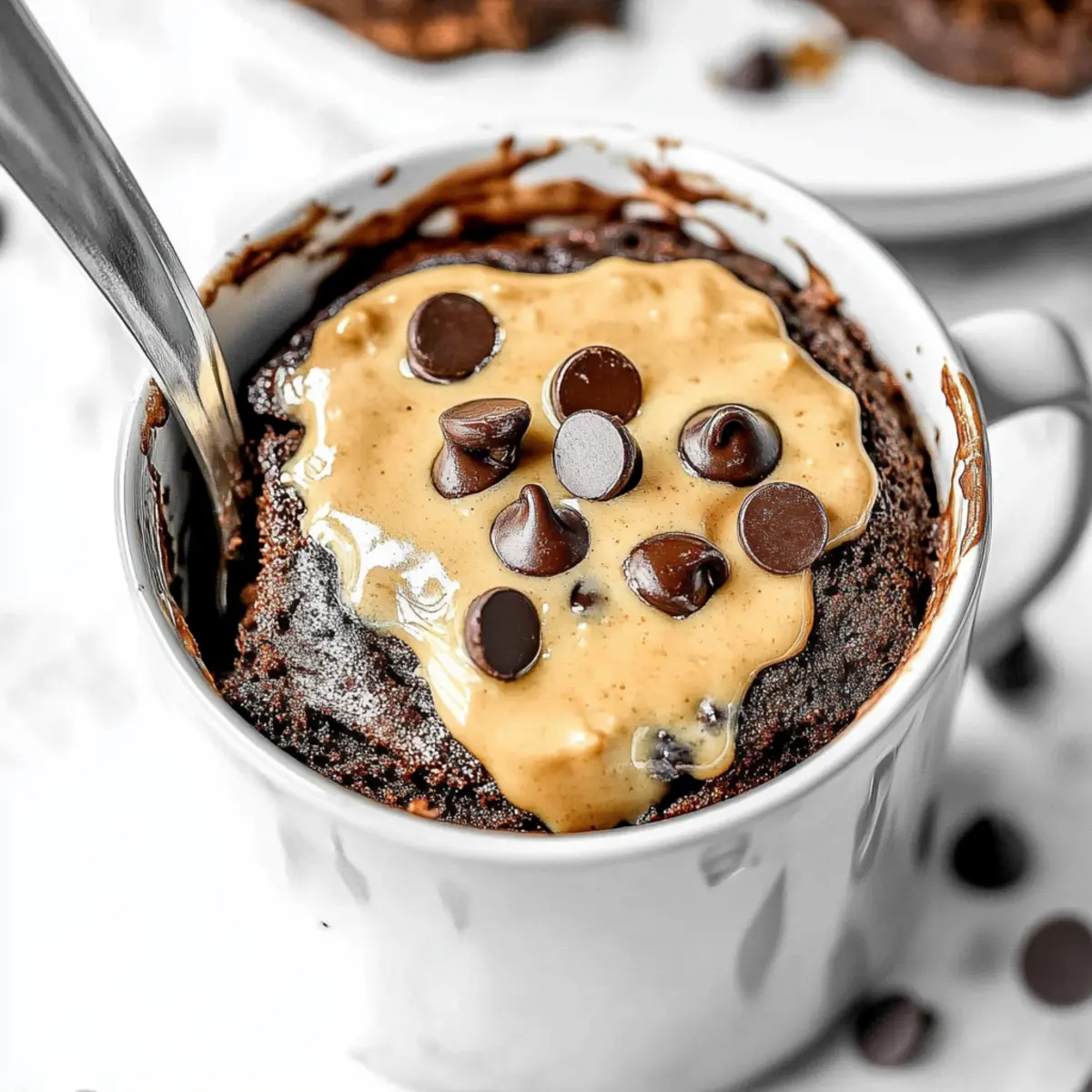 “Who knew that a simple mug could hold such a decadent secret? My journey into the world of quick, homemade desserts led me to create this delightful 5-Ingredient Flourless Peanut Butter Brownie Mug Cake. In less than three minutes, you can whip up a fudgy, rich cake that’s gluten-free, oil-free, and refined sugar-free! It’s the perfect indulgence for those of us craving a sweet treat without the guilt. This mug cake is not only a speedy solution for dinner-party desserts, but it also doubles as a nourishing snack when the chocolate cravings strike. Ready to elevate your dessert game with this effortless creation? Let’s dive into this wholesome recipe together!” Why is this mug cake a must-try? Simplicity at Its Finest: With only five ingredients, this mug cake is quick and easy to whip up, making it a perfect solution for those last-minute dessert cravings. Decadent Flavor: The rich chocolatey taste combined with creamy peanut butter creates an indulgent experience that satisfies even the strongest sweet tooth. Gluten-Free Goodness: No flour, no problem! This cake caters to those avoiding gluten while still delivering a delightful treat. Quick Cooking Time: In just under three minutes, your dessert is ready to enjoy—perfect for busy individuals always on the go. Crowd-Pleasing Delight: Serve it at gatherings or enjoy it alone; this mug cake is versatile and beloved by all! For more delicious quick desserts, check out Chewy Brown Butter Chocolate Chip Cookies that will wow your guests! Flourless Peanut Butter Brownie Ingredients • Ready to make this delicious Flourless Peanut Butter Brownie? Here’s what you need: For the Batter Ripe Banana – Adds moisture and natural sweetness, acting as a perfect substitute for oil or butter. Peanut Butter – Provides healthy fats and acts as a binder; almond or cashew butter can be swapped for different flavors. Cocoa Powder – Replaces flour while adding a rich chocolate flavor; use high-quality dark cocoa for the best results. Chocolate Chips – Adds gooey texture; opt for sugar-free chocolate chips if you’re looking for a sugar-free treat. Baking Powder – Aids in creating that fluffy, brownie-like texture you crave. Enjoy your journey into this flourless dessert indulgence! Step‑by‑Step Instructions for Flourless Peanut Butter Brownie Mug Cake Step 1: Mash the Banana Begin by peeling a ripe banana and placing it in a microwave-safe mug. Use a fork to thoroughly mash it until smooth, ensuring there are no lumps left. This banana will provide moisture and natural sweetness to your Flourless Peanut Butter Brownie Mug Cake. Aim for a smooth consistency in about one minute of mashing. Step 2: Mix in the Peanut Butter Add a generous scoop of peanut butter to the mashed banana in the mug. Use your fork to mix these two ingredients together until they are well combined and creamy. This should take about 30 seconds to one minute. You want the mixture to be cohesive and free of lumps, creating a delicious, rich base for your brownie. Step 3: Add Cocoa Powder and Baking Powder Sprinkle cocoa powder and baking powder into the banana and peanut butter mixture. Stir vigorously until all the ingredients are fully incorporated, creating a thick, chocolatey batter. This step should take about 30 seconds. The cocoa will give your Flourless Peanut Butter Brownie Mug Cake a rich flavor, while the baking powder adds a lightness to the texture. Step 4: Fold in the Chocolate Chips Now, it’s time to add a handful of chocolate chips to the batter for that gooey texture. Gently fold them into the mixture using your fork, ensuring they’re evenly distributed throughout the brownie batter. This step takes about 20 seconds. The chocolate chips will melt slightly during cooking, enhancing the dessert’s indulgent nature. Step 5: Microwave the Mug Cake Place the mug in the microwave and cook on high for 60 seconds. After this time, check the cake’s consistency; it should look set on the surface but remain fudgy in the center. If needed, microwave for additional 15-second intervals. Be careful not to overcook, as you want it to retain its moist texture. Step 6: Cool and Enjoy Once cooked, carefully remove the mug from the microwave (it will be hot!). Allow the Flourless Peanut Butter Brownie Mug Cake to cool for a minute before indulging. You can top it with a dollop of Greek yogurt or a scoop of ice cream, if desired, to make it even more delightful. Enjoy your creation warm for the best experience! Storage Tips for Flourless Peanut Butter Brownie Fridge: Store any leftover Flourless Peanut Butter Brownie mug cake in an airtight container in the refrigerator for up to 2 days. This helps maintain its fudge-like texture and flavor. Freezer: If you want to keep it longer, freeze the mug cake in a freezer-safe container for up to 1 month. Allow it to cool completely before wrapping it tightly to prevent freezer burn. Reheating: To enjoy a previously refrigerated or frozen mug cake, reheat in the microwave for 15-30 seconds until warm. Be cautious not to overheat, as this can dry out the cake. Serving Idea: Treat yourself to a cozy dessert by adding a dollop of whipped cream or a scoop of ice cream on top after reheating! Make Ahead Options These Flourless Peanut Butter Brownie Mug Cakes are perfect for meal prep enthusiasts! You can mash the ripe banana and mix it with peanut butter, cocoa powder, and baking powder in the mug up to 24 hours in advance. Simply refrigerate the prepared mug mixture, covered, to keep it fresh and prevent browning. When you’re ready to indulge, add the chocolate chips and microwave it for just 60 seconds, adjusting up to 15 seconds more if needed for a fudgy center. This method ensures that you can enjoy a delicious, guilt-free dessert without the stress of preparation on busy weeknights! Expert Tips for Flourless Peanut Butter Brownie Use Ripe Bananas: The riper the banana, the sweeter and more flavorful your mug cake