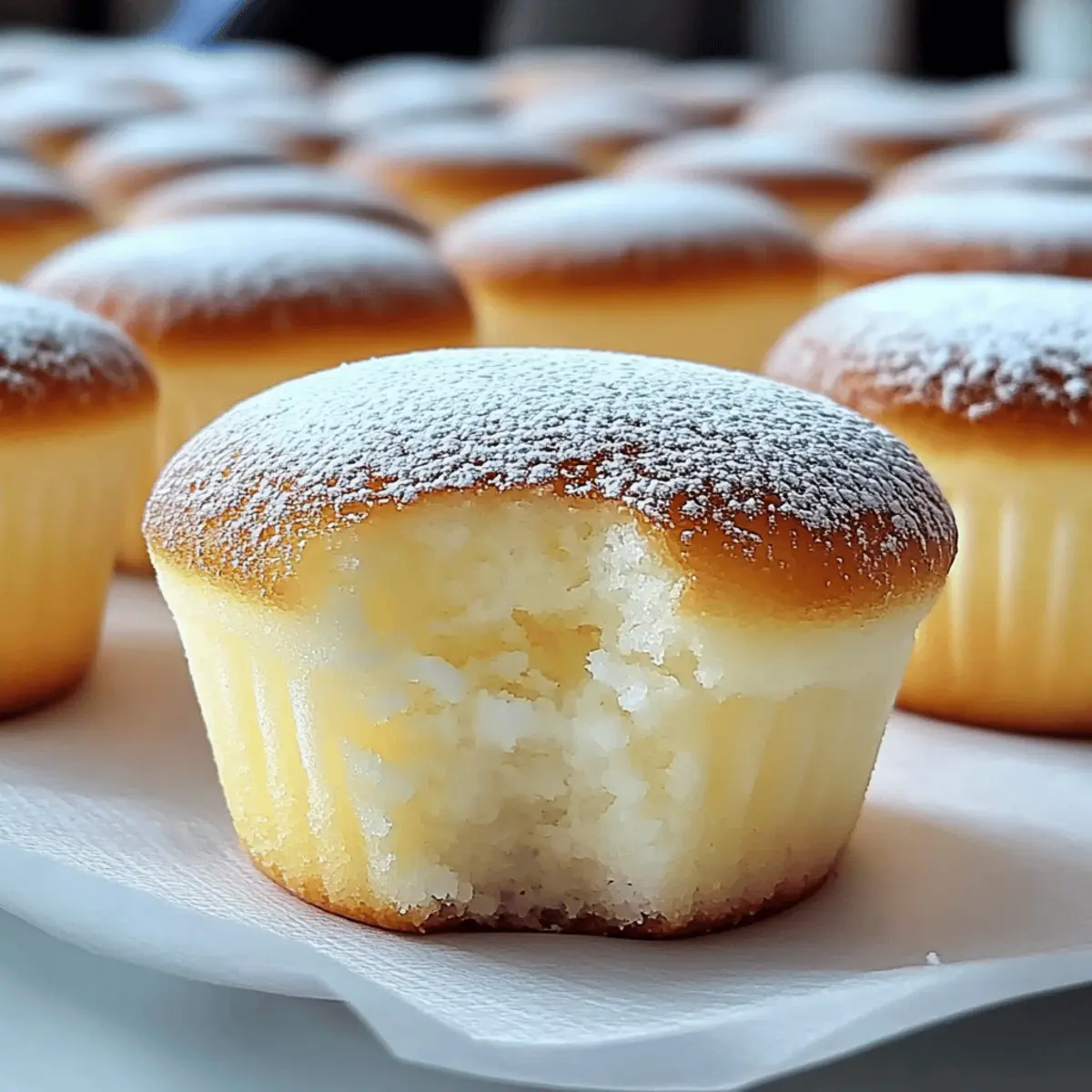 As the warm aroma of freshly baked cupcakes wafts through my kitchen, I find myself entranced by the delicate dance of flavors and textures that define these Fluffy Japanese Cotton Cheesecake Cupcakes. Made to feel like a cloud on your palate, they bring a light and airy sweetness that is simply irresistible. This recipe is a game-changer for those who crave a delightful homemade dessert without the fuss, taking just 40 minutes from start to finish. Perfect for impressing guests at your next gathering or treating yourself after a long day, these cupcakes embody effortless elegance. Have you ever wanted a dessert that feels fancy but is incredibly simple to make? Let’s dive into this heavenly creation that’s bound to become a favorite in your baking repertoire! Why Are These Cupcakes So Special? Fluffiness Beyond Compare: These cupcakes boast a light, airy texture that melts in your mouth, making every bite a delight. Quick and Easy: In just 40 minutes, you can create an impressive dessert that doesn’t skimp on flavor. Impressive Presentation: Perfect for gatherings or an exquisite treat just for you; they look as good as they taste! Versatile Indulgence: Feel free to mix in lemon zest or top with fresh fruit or chocolate for fun variations. Guilt-Free Pleasure: With moderate calories and low fat, indulge without the worry. Once you taste these Fluffy Japanese Cotton Cheesecake Cupcakes, you’ll be hooked, and they might just rival other favorites like Blackberry Lemon Cheesecake and Spiced Pumpkin Pancakes! Fluffy Japanese Cotton Cheesecake Cupcakes Ingredients Note: Let’s gather what you need for these delightful Fluffy Japanese Cotton Cheesecake Cupcakes! For the Batter Cream Cheese – Provides richness and creamy texture. Substitution: Ricotta cheese can be used, though it alters the texture slightly. Sugar – Adds sweetness to balance the cream cheese. No substitutions recommended for flavor consistency. Milk – Helps create a smooth batter. Substitution: Any milk variety can typically work, but whole milk is preferred for richness. Unsalted Butter – Adds moisture and richness. Substitution: Can use salted butter; reduce added salt in the recipe. Egg Yolks – Provides richness and structure. No substitutions; crucial for texture. For the Whipping Magic Egg Whites – Whipped to soft peaks for lightness. Do not substitute; whipped whites are essential for fluffiness. All-Purpose Flour – Gives structure to the cupcakes. Substitution: Cake flour may yield a lighter texture. Salt – Enhances flavors. No substitutions recommended for effectiveness. Step‑by‑Step Instructions for Fluffy Japanese Cotton Cheesecake Cupcakes Step 1: Preheat the Oven Begin by preheating your oven to 320°F (160°C). This ensures that by the time your Fluffy Japanese Cotton Cheesecake Cupcakes batter is ready, the oven is the perfect temperature for baking. A well-preheated oven helps achieve that light and airy texture we’re aiming for in these delightful treats. Step 2: Prepare the Muffin Tin While the oven heats, line a muffin tin with cupcake liners. This is essential for preventing the cupcakes from sticking and helps with easy removal once they’re baked. Ensure the liners are fitted snugly to hold the batter, giving your cupcakes that lovely, fluffy shape. Step 3: Mix Base Ingredients In a mixing bowl, combine the cream cheese, sugar, milk, and unsalted butter. Using an electric mixer, beat these ingredients on medium speed until the mixture is smooth and creamy, which should take about 2-3 minutes. This step is crucial as it forms the rich base for the Fluffy Japanese Cotton Cheesecake Cupcakes. Step 4: Add Egg Yolks Crack the egg yolks into the cream cheese mixture one at a time, blending after each addition. This helps incorporate the yolks fully, adding richness and structure to your batter. Make sure the mixture remains smooth and cohesive; it should have a light yellow hue when done. Step 5: Whip Egg Whites In a separate clean and dry bowl, whip the egg whites at medium speed until soft peaks form, which will take about 3-5 minutes. The egg whites should be glossy and hold a peak when lifted. This is key to achieving the airy texture in your cupcakes, so pay close attention to the consistency. Step 6: Fold Ingredients Gently fold the whipped egg whites into the cream cheese mixture using a spatula. Start by adding a small amount of the egg whites to lighten the mixture, then gradually incorporate the rest. Be careful not to deflate the whites; this step infuses your Fluffy Japanese Cotton Cheesecake Cupcakes with the necessary airiness. Step 7: Incorporate Flour Sift in the all-purpose flour and salt into the batter, gently mixing until just combined. Avoid overmixing, as this can lead to denser cupcakes. The batter should be smooth and have a slightly thick consistency, ready to pour into the prepared muffin tins. Step 8: Fill Muffin Liners Pour the batter into the cupcake liners, filling each about two-thirds full. This will allow room for the cupcakes to rise while baking. A scoop or measuring cup can help achieve even distribution among the liners, ensuring consistent baking. Step 9: Bake Place the filled muffin tin in the preheated oven and bake for 20-25 minutes. Keep an eye on them towards the end; the cupcakes should be lightly golden and a toothpick inserted into the center should come out clean. This ensures they are perfectly baked and ready for cooling. Step 10: Cool Once baked, remove the muffin tin from the oven and let the cupcakes cool in the tin for 10 minutes. This resting period allows them to set and makes removal easier. Afterward, gently transfer them to a wire rack to cool completely, ensuring a delightful fluffy texture as they cool. How to Store and Freeze Fluffy Japanese Cotton Cheesecake Cupcakes Airtight Container: Store cupcakes in an airtight container at room temperature for up to 2 days to maintain their light, fluffy texture. Fridge: If you n