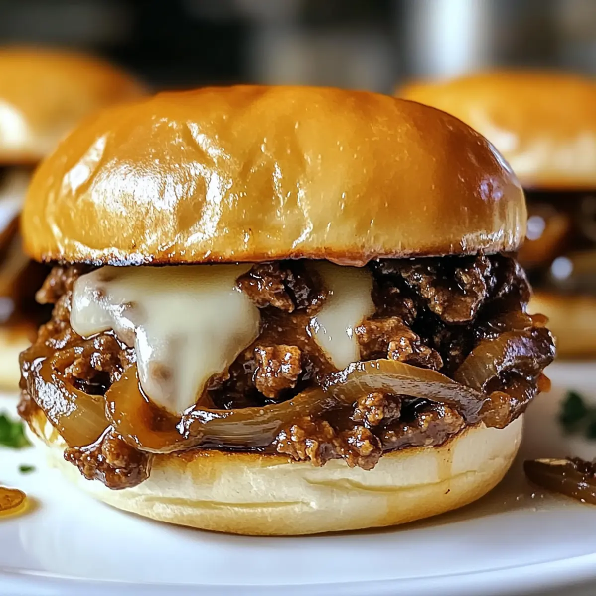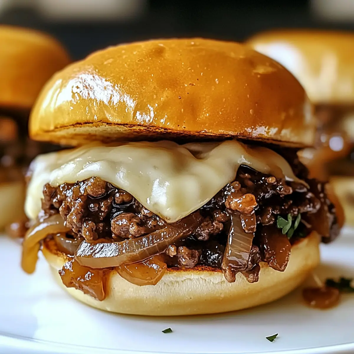 As the aroma of caramelized onions fills my kitchen, I can’t help but feel a sense of nostalgia mixed with excitement. The beloved comfort food, French Onion Beef Sloppy Joes, is making an entrance with a gourmet twist that’s hard to resist. This recipe elevates the classic sloppy joe with sweet, deeply flavored onions, rich ground beef, and melty cheese, all nestled in a soft bun. Not only is it quick to whip up in just 30 minutes, but it also satisfies cravings for something hearty without the guilt, especially if you opt for leaner ingredients. Whether you’re hosting friends or just feeding your family, this dish promises an unforgettable meal. Plus, you can easily make it your own with simple variations! Are you ready to savor the comforting goodness of French Onion Beef Sloppy Joes? Let’s dive in! Why are these Sloppy Joes special? Gourmet Twist: These French Onion Beef Sloppy Joes offer a delightful upgrade to the classic dish with caramelized onions and rich, melted cheese. Quick & Easy: Ready in just 30 minutes, they’re perfect for busy weeknights or impromptu gatherings! Versatile Options: Easily swap ground turkey for a leaner option or try different cheeses to suit your taste. Crowd-Pleaser: Perfect for family dinners or a lively game day, everyone will love this savory treat! Make-Ahead Friendly: Prepare the beef mixture in advance to enhance flavors, saving you time when it’s time to serve. French Onion Beef Sloppy Joes Ingredients • Get ready to whip up this savory delight! For the Beef Mixture • Ground Beef – A lean choice helps keep this dish low fat while still packing flavor. • Onions – Caramelized onions add a sweet, rich depth that transforms each bite. • Gluten-Free Soy Sauce – Adds an umami punch; substitute with coconut aminos for soy-free needs. • Seasonings (salt, pepper, garlic powder) – Adjust these essentials according to your taste for the best flavor. For the Cheese & Buns • Cheese (e.g., provolone or Swiss) – Melty goodness that binds the flavors; opt for lactose-free cheese if needed. • Buns – Soft, toasted buns are perfect; gluten-free versions work well too, or enjoy served over rice! Step‑by‑Step Instructions for French Onion Beef Sloppy Joes Step 1: Prep the Onions Slice the onions thinly and heat a large skillet over medium heat. Add a drizzle of oil and toss in the onions, stirring frequently. Caramelize them for about 10-15 minutes until they turn golden brown and fragrant. Keep a close eye on them to prevent burning, as they should turn soft and sweet in this time. Step 2: Brown the Beef Once the onions are caramelized, add the ground beef to the skillet, breaking it apart with a spatula. Cook for about 5-7 minutes, stirring occasionally, until the beef is browned and fully cooked. Season the mixture with garlic powder, salt, and pepper to enhance the flavor of your French Onion Beef Sloppy Joes. Step 3: Stir in Seasonings After the beef is nicely browned, pour in the gluten-free soy sauce and mix everything thoroughly. Let the mixture simmer for another 2 minutes, allowing the flavors to meld together beautifully. You should notice a delightful aroma wafting through your kitchen as the savory sauce infuses the beef and onions. Step 4: Melt the Cheese Sprinkle your choice of shredded cheese generously over the beef and onion mixture. Cover the skillet with a lid and reduce the heat to low. Allow the cheese to melt for about 2-3 minutes, checking occasionally until it looks gooey and reaches that perfect melty consistency. Step 5: Assemble the Sandwiches Remove the skillet from heat and prepare your toasted buns. Spoon generous servings of the flavorful beef and onion mixture onto each bun, ensuring to get plenty of the gooey cheese on top. Serve your delicious French Onion Beef Sloppy Joes hot, and enjoy the hearty warmth they bring! Make Ahead Options These Irresistible French Onion Beef Sloppy Joes are perfect for busy home cooks looking to save time! You can prepare the beef and onion mixture up to 3 days in advance. Simply caramelize the onions and brown the ground beef, then let the mixture cool before transferring it to an airtight container. Store it in the refrigerator until you’re ready to serve. To maintain quality, make sure to let the mixture come to room temperature before reheating on the stovetop or in the microwave until hot. When ready to enjoy, sprinkle with cheese, cover to melt, and assemble on toasted buns for a quick and delicious meal that feels gourmet! What to Serve with Irresistible French Onion Beef Sloppy Joes Pair these hearty sandwiches with sides that perfectly balance their rich flavors and textures, turning your meal into a delightful feast. Oven-Baked Fries: Crispy and golden, they offer a satisfying crunch that contrasts wonderfully with the soft, savory filling of the Sloppy Joes. A sprinkle of sea salt perfectly complements the flavors. Coleslaw: This creamy, tangy dish brings a refreshing crunch to the table, cutting through the richness of the beef. The combination of crunchy cabbage and carrots adds texture and a burst of color. Crisp Green Salad: A light salad featuring mixed greens, cherry tomatoes, and a zesty vinaigrette adds brightness and freshness, creating a delicious contrast to the savory sandwiches. Garlic Bread: Soft, buttery, and infused with fragrant garlic, it’s a comforting side that invites you to scoop up every bit of the Sloppy Joe filling. Enjoy it crisp on the outside and soft on the inside for added delight. Potato Chips: Crunchy potato chips provide a satisfying crunch with a salty kick, perfect for stimulating your appetite. They also make for a fun and casual side that appeals to all ages. Pickles: Tangy pickles are not just a great garnish; they bring a burst of acidity that elevates the overall flavor and adds a delightful crunch, creating the perfect bite. Iced Tea or Lemonade: Refreshing drinks like iced tea or lemonade enhance the mea