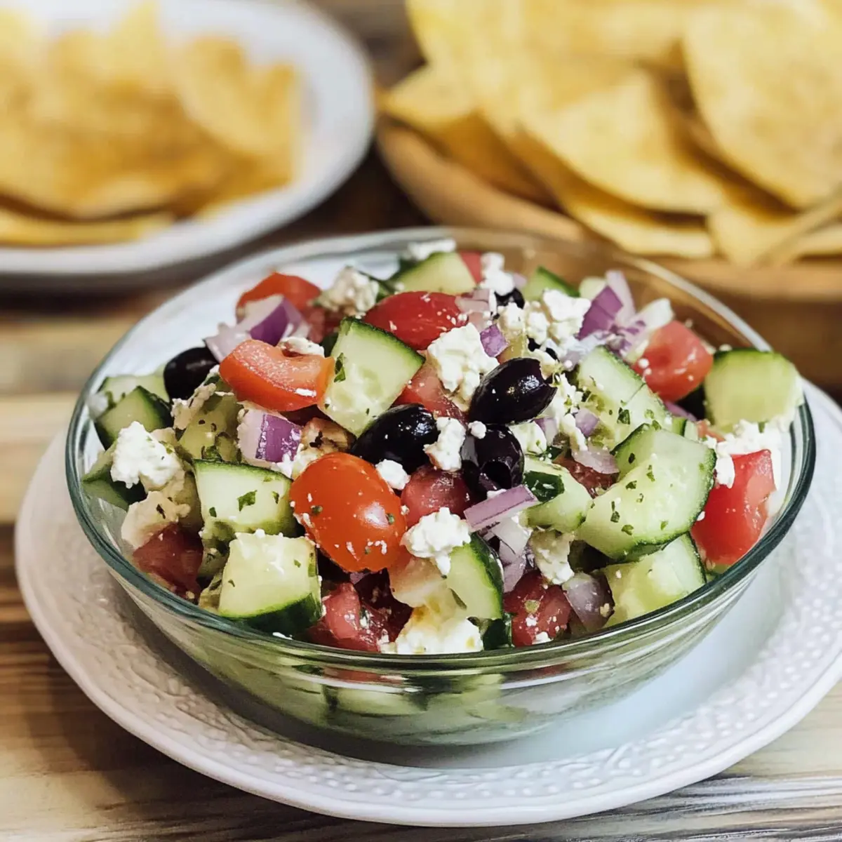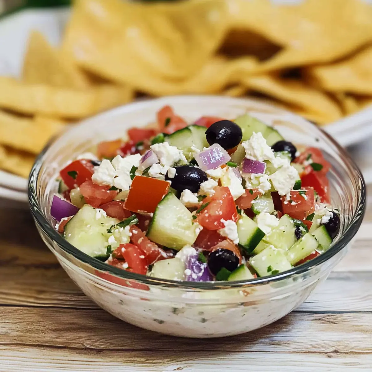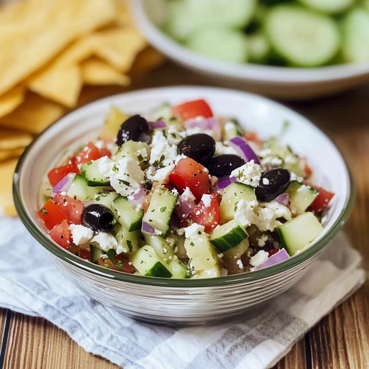 As I was mixing fresh ingredients in my kitchen, the aroma of herbs and vegetables instantly transported me to a sunlit Mediterranean terrace. That’s when I decided to whip up a Fresh Mediterranean Dip, a colorful and flavorful make-ahead appetizer that’s perfect for those warm evenings or spontaneous gatherings. This bright and refreshing dip showcases the zing of juicy tomatoes, the crunch of cucumbers, and the creamy delight of feta, making it a guilt-free choice that comes together in just 15 minutes. Imagine serving this vibrant dish at your next get-together—it’s not only a crowd-pleaser but also a healthy option that’ll impress your guests. Have you ever tried turning a classic dip into something uniquely yours? Let’s dive in! Why is this Mediterranean Dip a Must-Try? Bursting with flavor: The Fresh Mediterranean Dip combines crunchy cucumbers, juicy tomatoes, briny olives, and creamy feta for a delightful flavor explosion. Quick and easy: Whip this appetizer up in just 15 minutes—perfect for impromptu gatherings! Make-ahead convenience: Prep it ahead of time and let those flavors meld, saving you time on busy days. Crowd-pleaser: Its vibrant colors and fresh taste appeal to everyone, making it an instant favorite at any gathering. Versatile serving: Pair it with pita chips, fresh veggie sticks, or use it as a topping for grilled meats for an exciting twist! For more fresh ideas, check out my Cucumber Caprese Salad or add some zest with the Feta Avocado Salad. Fresh Mediterranean Dip Ingredients • Get ready to create a delicious, vibrant appetizer! For the Dip Cucumber – Provides crunch and freshness; look for 2 medium cucumbers, peeled and chopped. Tomatoes – Adds juiciness and sweetness; use 2 seeded and chopped tomatoes for optimal texture. Purple Onion – Offers a sharp, savory bite; finely chop 1 cup for balanced flavor. Sliced Black Olives – Contributes saltiness and richness; use 4 ounces from a can for convenience. Whole olives can be substituted if chopped. Garlic – Adds pungent flavor; use 2 minced cloves to enhance overall taste. Feta Cheese – Delivers creaminess and tang; 1 cup crumbled is ideal—block feta can be frozen for later use. Olive Oil – Enhances mouthfeel and richness; include 2 tablespoons for a smooth texture. Greek Herb Blend – Provides authentic Mediterranean flavor; use 2 teaspoons, easily found in the spice aisle. Feel free to mix and match these ingredients for your perfect Fresh Mediterranean Dip! Step‑by‑Step Instructions for Fresh Mediterranean Dip Step 1: Combine the Fresh Ingredients In a large mixing bowl, add the peeled and chopped cucumbers, seeded and chopped tomatoes, and finely chopped purple onion. Follow by pouring in the sliced black olives and minced garlic. This vibrant combination will be the base of your Fresh Mediterranean Dip, so make sure everything is fresh and colorful to set the stage for a delicious appetizer. Step 2: Add Creaminess and Flavor Next, incorporate 1 cup of crumbled feta cheese into the mixture. This creamy element will create a delightful contrast with the crunchy vegetables. Drizzle 2 tablespoons of olive oil over the ingredients, giving the dip a smooth texture. Finally, sprinkle in 2 teaspoons of Greek herb blend to infuse authentic Mediterranean flavors into your dip. Step 3: Stir to Combine Using a large spoon, gently stir all the ingredients together until they are evenly combined. Aim for a cohesive mixture, ensuring that the feta distributes well throughout the veggies. As you mix, take a moment to appreciate the vibrant colors and fresh aromas wafting through your kitchen—this Fresh Mediterranean Dip is already looking inviting! Step 4: Chill and Meld Flavors Cover the bowl with a lid or plastic wrap, and place it in the refrigerator to chill for at least 1 hour, or up to 8 hours if you want to enhance the flavors further. This resting time allows the ingredients to meld together beautifully, creating a more flavorful dip that will impress your guests when it’s served. Step 5: Prepare for Serving When you’re ready to serve your Fresh Mediterranean Dip, remove it from the refrigerator. Give the mixture a gentle stir to refresh the ingredients. You can also add a drizzle of olive oil on top for an appealing presentation. Consider serving it with crispy pita chips, fresh vegetable sticks, or even as a flavorful topping for grilled meats. Enjoy the delightful flavors and textures you’ve created! Expert Tips for Fresh Mediterranean Dip Fresh Ingredients: Use the freshest cucumbers and tomatoes for the best flavor. Wilted veggies can dull your vibrant dip. Herb Medley: Feel free to customize with fresh herbs like parsley or dill. Just remember, they should complement the Greek herb blend you use. Chill Time: Allowing the dip to chill for at least an hour enhances its flavors. Don’t skip this step for a truly delicious Fresh Mediterranean Dip. Remove Excess Water: If your cucumbers are very watery, lightly salt them before mixing. This helps prevent a soggy dip. Storage Tip: Keep leftovers in an airtight container; consume within two days for optimal freshness and flavor. How to Store and Freeze Fresh Mediterranean Dip Fridge: Store the Fresh Mediterranean Dip in an airtight container for up to 2 days to maintain its freshness and vibrant flavors. Freezer: While we recommend enjoying it fresh, you can freeze the dip for up to 3 months. Place it in a freezer-safe container, leaving space for expansion, and label it. Thawing: If frozen, thaw the dip in the refrigerator overnight before serving. Mix gently to restore creaminess. Serving After Storage: If the dip appears watery after storage, give it a stir and add a splash of olive oil to revive its delightful consistency. Make Ahead Options These Fresh Mediterranean Dips are perfect for meal prep enthusiasts looking to save time during busy weeknights! You can chop the cucumbers, tomatoes, purple onion, and garlic up 