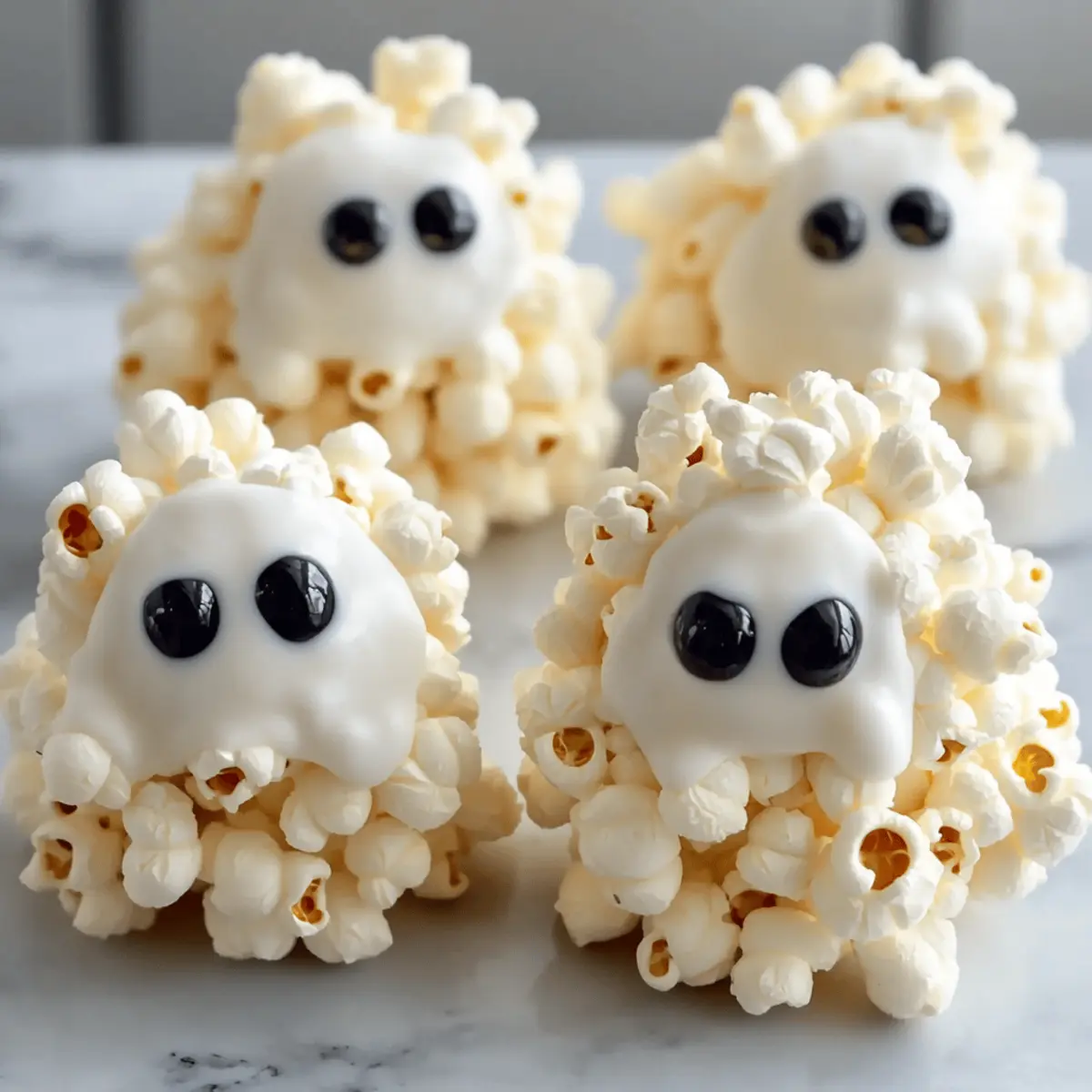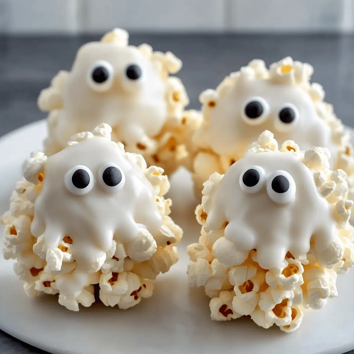 “Did you hear about the popcorn balls at the Halloween party?” If you’ve ever found yourself eagerly anticipating that crunch of popcorn wrapped in sweet marshmallow, you’re in for a treat! These Ghostly Halloween Popcorn Balls are not only a whimsical addition to your festive spread, but they also come together in just 20 minutes with minimal fuss. Perfect for both kids and adults, these treats are a crowd-pleaser that will keep everyone coming back for more. Imagine the delight of your guests as they sink their teeth into these light and airy snacks, decorated with adorable candy eyeballs. Whether you’re planning a lively Halloween bash or simply craving something fun to whip up at home, these popcorn balls are sure to ignite joy and laughter. Want to learn how to make them? Let’s dive in! Why Are These Ghost Popcorn Balls a Hit? Simplicity at Its Best: You only need a handful of simple ingredients to create these spooky delights in just 20 minutes! Kid-Friendly Fun: With their adorable candy eyeballs, these treats are not just delicious; they’ll have kids giggling with excitement. Crowd-Pleasing Snack: Perfect for Halloween parties, these popcorn balls are a delightful addition to any festive gathering, ensuring that no one will be able to resist. Customizable Treats: Feel free to get creative! Try adding colorful candy melts or sprinkles for a vibrant twist, or drizzle chocolate for an extra indulgent touch. Quick Prep, Maximum Joy: These ghostly snacks come together in a flash, giving you more time to enjoy the festivities with family and friends. If you love festive treats, you might also enjoy making delicious Oreo Balls Melt or savory Chicken Piccata Meatballs for your celebrations! Ghost Popcorn Balls Ingredients For the Popcorn Base • 16 cups popped popcorn – Use air-popped popcorn for a lighter treat, avoiding butter for better binding. For the Marshmallow Mixture • 10 ounces mini marshmallows – These provide the essential sweetness and sticky texture that holds the popcorn together. • ¼ cup butter – This adds a rich flavor and helps create a creamy marshmallow base. For the Ghostly Coating • 1 bag Wilton bright white candy melts – Gives the popcorn balls a spooky ghostly appearance; white chocolate chips can be substituted if necessary. For Decoration • As needed candy eyeballs – These add a fun, whimsical touch to your ghost popcorn balls that kids will love. These Ghost Popcorn Balls are not only easy to make but also a delightful treat for your Halloween festivities! Step‑by‑Step Instructions for Ghost Popcorn Balls Step 1: Pop Corn Begin by preparing 16 cups of popcorn using your preferred method—air-popping or microwave popping works best. Be sure to sift through the popped popcorn and remove any unpopped kernels. Transfer the fluffy popcorn to a large mixing bowl, creating the delightful base for your Ghost Popcorn Balls. Step 2: Melt Mixture In a large pot, melt 10 ounces of mini marshmallows and ¼ cup of butter over medium heat. Stir continuously for about 5 minutes until the mixture is smooth and glossy, ensuring it doesn’t stick to the bottom of the pot. This gooey blend will serve as the wonderful binding agent for your Ghost Popcorn Balls. Step 3: Combine Once melted, quickly pour the warm marshmallow mixture over the popped popcorn in the large mixing bowl. Use a spatula to gently fold and coat each piece of popcorn, ensuring every bit is covered with the sticky sweetness. Continue mixing until the popcorn is evenly coated, which should take about 2 to 3 minutes. Step 4: Shape Balls Lightly butter your hands to prevent sticking, then take small handfuls of the popcorn mixture and shape them into round balls about the size of a fist. Place each ball onto a lined baking sheet, leaving space between them to allow for any slight expansion as they cool. You should aim to make 10 to 12 hearty Ghost Popcorn Balls. Step 5: Set Allow the shaped popcorn balls to cool and firm up at room temperature. This process usually takes about 30 to 60 minutes, depending on your ambient conditions. You’ll know they are ready when they hold their shape and are no longer sticky to the touch, creating the perfect treat for your Halloween festivities. Step 6: Coat While the popcorn balls cool, melt the Wilton bright white candy melts according to the package instructions. Once melted, dip the tops of each cooled popcorn ball into the warm candy coating. Quickly sprinkle on candy eyeballs before the coating sets, giving your Ghost Popcorn Balls their adorable, spooky look. Step 7: Final Set Place the coated popcorn balls back onto the lined baking sheet and allow the candy coating to set completely, which may take an additional 15-20 minutes. Once firm, your delicious Ghost Popcorn Balls are finished and ready for serving at your Halloween party, providing joy and whimsy to all who partake. Make Ahead Options These Ghost Popcorn Balls are a fantastic choice for meal prep, allowing you to enjoy tasty treats without the last-minute rush! You can prepare and shape the popcorn balls up to 24 hours in advance; simply store them in an airtight container at room temperature to maintain their delightful crunch. If you’re looking to get even more organized, feel free to melt and dip them in candy coating up to 3 days ahead—just allow them to set fully before storing. When it’s time to serve, you can add fresh candy eyeballs for a festive touch, ensuring your treats remain just as delicious and captivating as when you first made them! Expert Tips for Ghost Popcorn Balls Constant Stirring: Always stir the marshmallow mixture continuously while melting to avoid burning, ensuring a smooth texture for your Ghost Popcorn Balls. Hands-On Help: If the marshmallow mixture gets too sticky while shaping, lightly butter your hands to make forming the balls easier and more manageable. Temperature Control: Allow the melted candy melts to cool slightly before di
