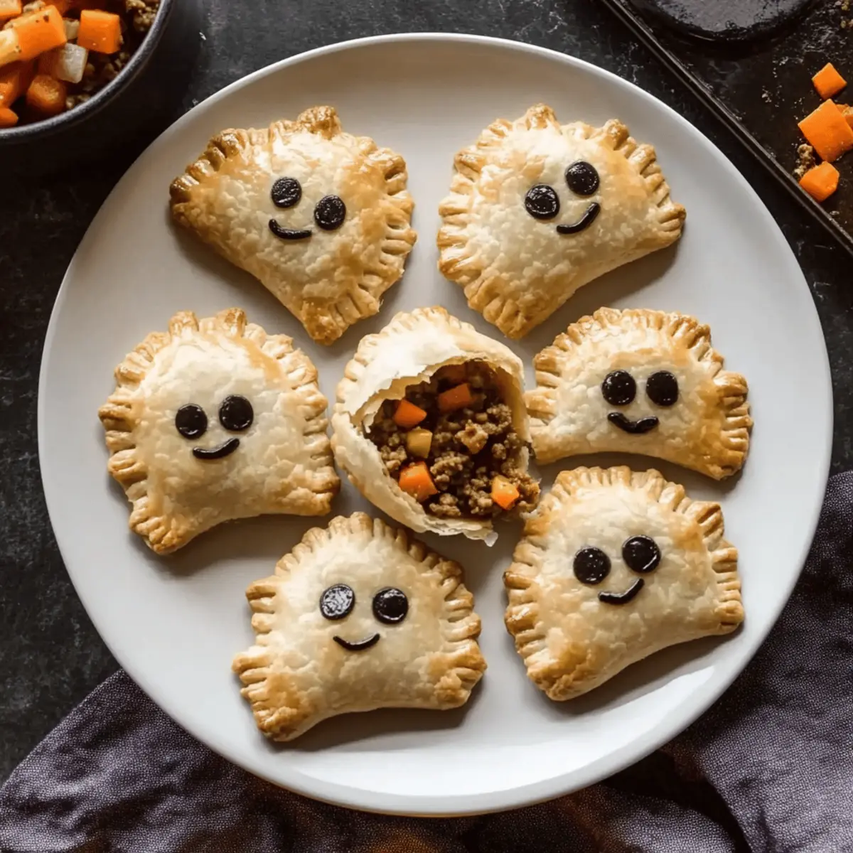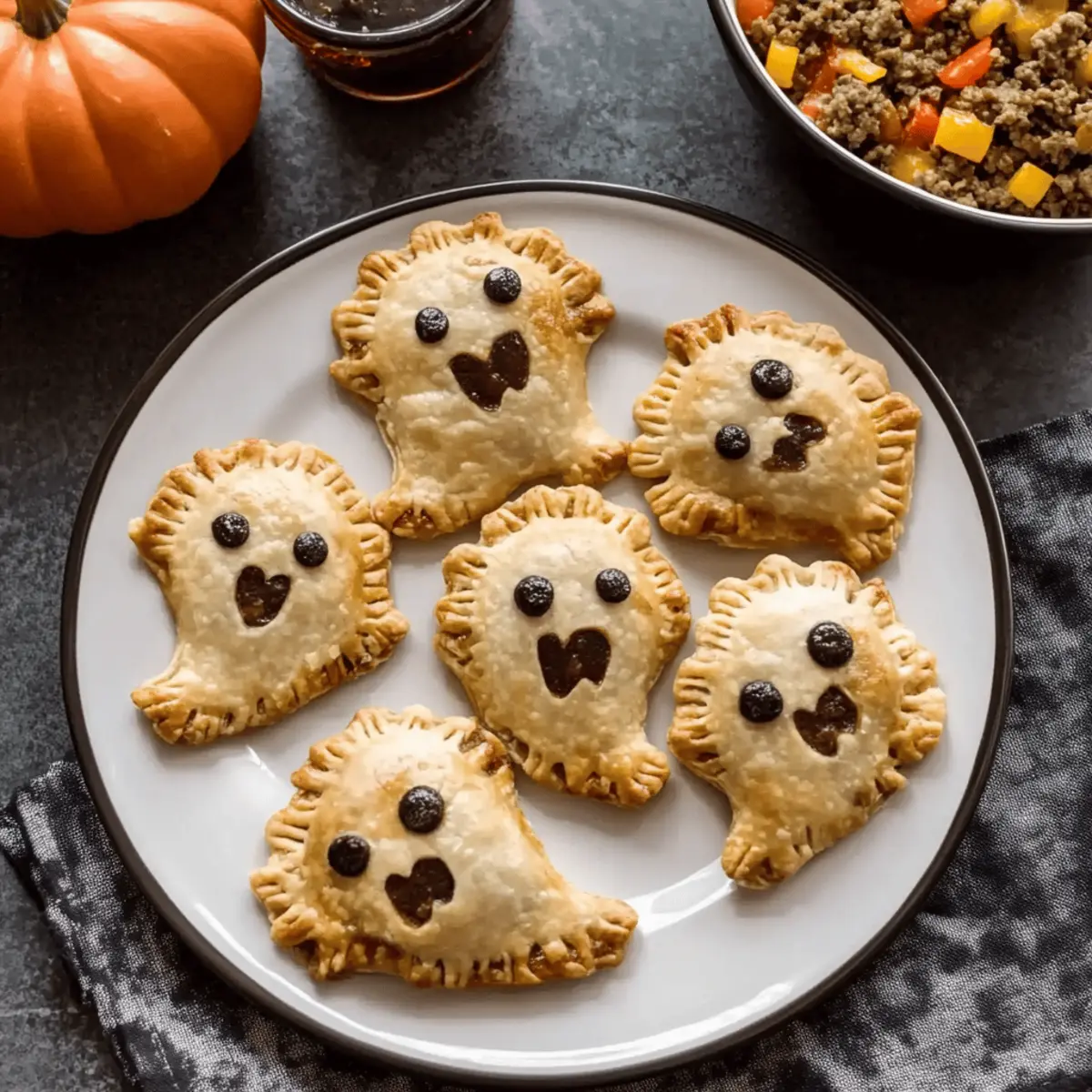 As I rummaged through my pantry, I stumbled upon some pie crust and a hankering for something spooky and fun. That’s when inspiration struck: Ghost Taco Hand Pies! Perfect for Halloween, these delightful bites blend delicious taco flavors with a whimsical twist that even the pickiest eaters won’t be able to resist. Quick and easy to whip up, they transform a regular dinner into a festive celebration, making them a must-have for family gatherings. Plus, you can dip them in salsa or guacamole for an extra kick! Ready to enchant your holiday table with these creative treats? Let’s dive in! Why are Ghost Taco Hand Pies a must-try? Whimsical Fun: These ghostly hand pies bring creativity to the table, making them a playful addition to your Halloween spread. Quick & Easy: Perfect for busy evenings, they can be ready in under 30 minutes, making family mealtime a breeze. Flavorful Fillings: Enjoy a fiesta of taco flavors that even kids adore—add their favorite veggies for a nutritious twist. Versatile Variations: Swap the filling with pizza ingredients or go vegetarian for an adaptable treat everyone will love! Serve with salsa or guacamole, just like in my Scramble Breakfast Tacos for an elevated experience! Crowd-Pleasing Appeal: Perfect for parties, these hand pies are fun finger foods that will wow your guests, ensuring that no one leaves hungry. Ghost Taco Hand Pie Ingredients For the Filling Lean Ground Beef – Provides a hearty protein base; feel free to substitute with ground turkey or chicken for a lighter option. Taco Seasoning – Infuses the filling with authentic flavors; a homemade mix can tailor it to your taste preferences! Shredded Carrot – Adds a hint of sweetness and nutrition; replace with finely chopped bell pepper or baby spinach as desired. Chopped Bell Pepper or Baby Spinach – Offers extra texture and vitamins; feel free to use what’s in your fridge! Shredded Mexican Cheese – Melts beautifully into the filling for that creamy texture we crave. For the Crust Pre-Made Pie Crusts – Save time with store-bought crusts; ensure they’re defrosted but unbaked before using. Egg – Use for the egg wash, giving each pie a golden, glossy finish. For Dipping Salsa (for dipping) – A tangy contrast that brightens the savory flavors of these Ghost Taco Hand Pies; guacamole is also a fantastic option! With these Ghost Taco Hand Pies ingredients, you’re on your way to a delightful, spooky feast that pairs perfectly with the festive spirit of Halloween! Step‑by‑Step Instructions for Ghost Taco Hand Pies Step 1: Prepare Taco Filling In a skillet over medium-high heat, add lean ground beef, breaking it apart as it cooks. Sprinkle in the taco seasoning along with optional shredded carrot and chopped bell pepper. Cook for about 5-6 minutes, or until the meat is browned and cooked through. Remove from heat and set aside, letting those vibrant flavors meld together as they cool slightly. Step 2: Roll and Cut Pie Crust On a lightly floured surface, roll out two pie crusts to your desired thickness. Use a ghost-shaped cookie cutter (or a knife) to cut out shapes, ensuring you have an equal number of tops and bottoms. The playful shapes will set the vibe for your Ghost Taco Hand Pies. Transfer the cutouts to a baking sheet lined with parchment paper for easy handling. Step 3: Fill Ghosts Take half of the ghost-shaped cutouts and place them on the prepared baking sheets. Spoon generous amounts of the taco filling onto each ghost, making sure to leave a little space at the edges. Sprinkle a small amount of shredded Mexican cheese over the filling, giving that gooey goodness we all love to each Ghost Taco Hand Pie. Step 4: Seal Pies Cut out eyes and mouths in the remaining ghost shapes, which will become the tops of your hand pies. Carefully place these over the filled ghost shapes, ensuring they align well. Use a fork to crimp the edges securely, sealing in all that delicious filling and preventing any leaks during baking. This adds both a decorative touch and a firm seal. Step 5: Apply Egg Wash In a small bowl, mix together an egg with a splash of water or milk to create your egg wash. Brush this mixture over the tops of each Ghost Taco Hand Pie using a pastry brush, giving them a nice, glossy finish. This step ensures they bake to a golden brown, enhancing their visual appeal as part of your festive Halloween spread. Step 6: Bake Preheat your oven to 425°F (220°C) and place the baking sheets with your prepared pies in the oven. Bake for about 10-14 minutes, or until the tops are golden brown and flaky. Keep an eye on them during the last few minutes of baking to ensure perfection, as the enticing aroma fills your kitchen, signaling they’re almost ready! Step 7: Serve Once baked, allow the Ghost Taco Hand Pies to cool for a few minutes on the baking sheet before transferring them to a serving platter. They are delightful served warm, alongside salsa or guacamole for dipping. Enjoy the festive fun as everyone gathers around to savor these spooky yet delicious treats! What to Serve with Ghost Taco Hand Pies Elevate your Halloween gathering with delightful accompaniments that enhance the fun and flavors of these spooky snacks. Creamy Guacamole: A cool and creamy dip that pairs perfectly with the savory filling, adding a refreshing element to each bite. Zesty Salsa: Fresh and tangy salsa balances the richness of the hand pies, offering a delightful flavor explosion with every dip! Spicy Black Bean Salad: This hearty dish adds a nutritious kick; its textures and flavors blend seamlessly with the pies’ taco elements. Jalapeño Cheese Dip: For the spice lovers, this cheesy dip will bring a warm, inviting heat that complements the hand pies beautifully. Roasted Corn on the Cob: Sweet and smoky, roasted corn adds a charming touch of autumn while enhancing the festive vibes of your meal. Chips and Queso: Crunchy tortilla chips and warm queso make for a fun side that will keep 