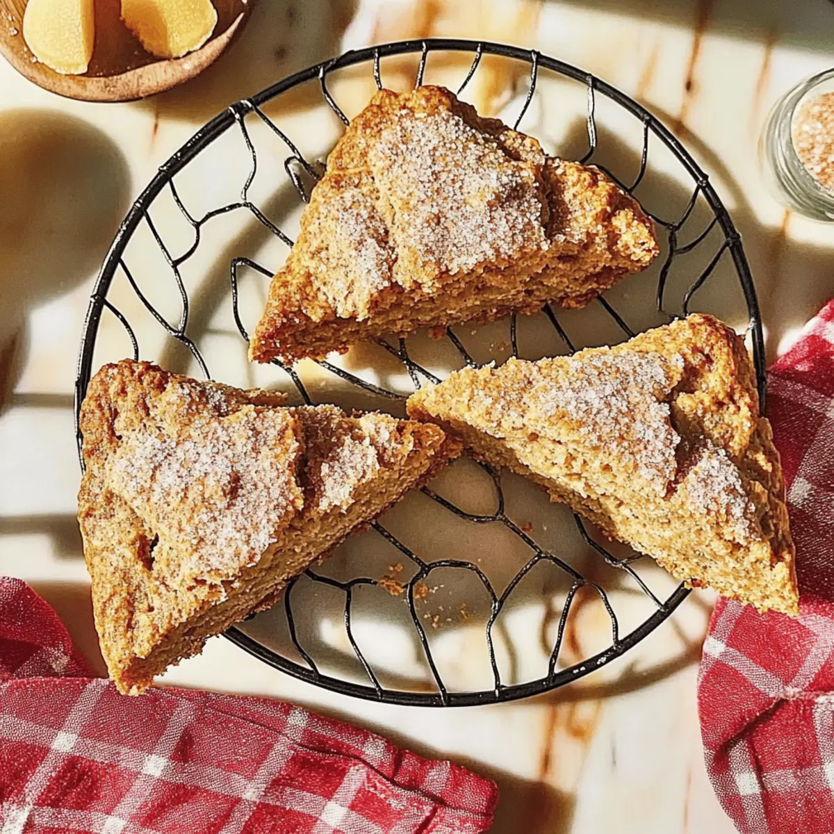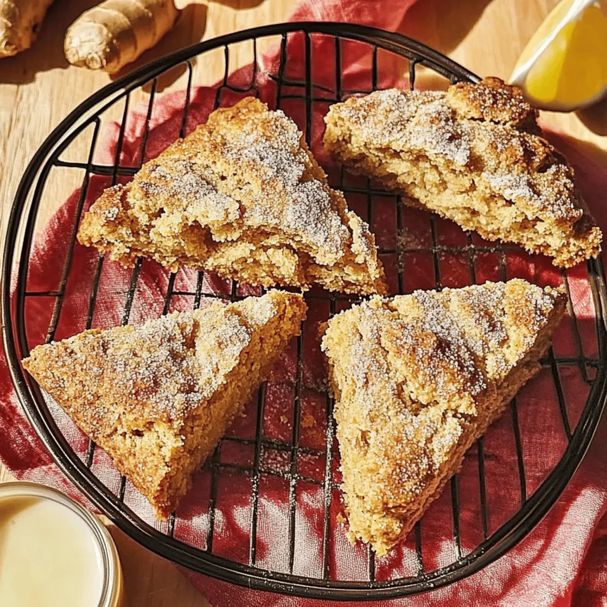 As I strolled through a quaint café in London, the scent of fresh ginger and warm spices dancing in the air captured my heart. This inspired me to whip up a batch of Ginger Scones that offer not just a delightful treat but also a comforting hug in the form of warm, flaky bites. These scones are incredibly versatile, perfect for breakfast or as an afternoon snack alongside your favorite tea. Plus, they’re quick to prepare, so you can enjoy a homemade delight without spending all day in the kitchen. If you’re looking to elevate your tea-time experience or impress guests with a cozy dessert, these aromatic ginger scones will do just the trick. Ready to infuse your kitchen with those irresistible aromas? Let’s dive into this delicious recipe! Why are Ginger Scones a Must-Try? Delightful warmth: The combination of ground and fresh ginger fills your kitchen with cozy, inviting aromas that evoke feelings of comfort. Versatile pairing: Perfectly suited for tea time, these scones can be enjoyed with clotted cream, butter, or your favorite jam. Quick and easy: With minimal hands-on time, you’ll have a batch ready in under 30 minutes, making them an ideal treat for last-minute gatherings. Customizable flavors: Don’t hesitate to experiment with spices or even add dried fruits for a unique twist! If you’re looking for more baking inspiration, check out our other articles for delightful treats. Crowd-pleaser: Their light, fluffy texture is sure to impress friends and family, making them perfect for any occasion! Ginger Scones Ingredients For the Dough All-Purpose Flour – Provides structure; can substitute with a gluten-free flour blend for those avoiding gluten. Baking Powder – A leavening agent for lightness; make sure it’s fresh for the best rise. Baking Soda – Reacts with acidity for added leavening; use 3 times the amount of baking powder if needed. Salt – Enhances flavor; consider using sea salt or kosher salt as tasty alternatives. Ground Ginger – The star flavor; fresh ginger can be used for an even bolder taste. Ground Cinnamon and Other Spices – Adds warmth and complexity; feel free to adjust the types and quantities based on your preferences. Cold Butter – Creates flakiness and rich flavor; swap for vegan butter for a dairy-free option. Fresh Ginger – Provides texture and extra ginger flavor; use more ground ginger if fresh isn’t available. Cream – Adds moisture and richness; can be substituted with milk or plant-based alternatives for a lighter touch. Brown Sugar – Offers sweetness and moisture; white sugar can be used, though the flavor may differ slightly. Egg – Acts as a binder and enriches the scones; a flax egg works as a vegan alternative. Coarse Sugar (for topping) – Adds a delightful crunch; feel free to omit if you prefer a simpler scone. The delectable aroma of ginger scones is bound to fill your home with warmth and comfort—let’s get started! Step‑by‑Step Instructions for Ginger Scones Step 1: Preheat the Oven Begin by preheating your oven to 425°F (220°C) while you prepare your baking tools. Line a baking sheet with parchment paper, ensuring you have a clean, non-stick surface ready for your ginger scones. This step sets the stage for perfectly baked scones that will rise beautifully and develop a lovely golden color. Step 2: Whisk the Dry Ingredients In a medium mixing bowl, whisk together the all-purpose flour, baking powder, baking soda, salt, and ground spices like ginger and cinnamon for about 1-2 minutes. This ensures an even distribution of the leavening agents and spices, which is vital for the perfect texture and flavor in your ginger scones. Set this mixture aside for the next step. Step 3: Incorporate the Butter Add cold butter to the flour mixture, using your fingers or a pastry cutter to blend until it resembles coarse crumbs with small flakes. This process should take around 3-5 minutes and is crucial for achieving flaky layers in your ginger scones. The mixture should look sandy, with visible pieces of butter throughout—this will create that delightful richness you desire. Step 4: Add Fresh Ginger Stir in the fresh ginger for added texture and an extra punch of flavor, tossing it gently into the flour mixture until it’s evenly dispersed. This extra step enhances the ginger flavor profile of your scones, creating a deliciously aromatic treat. Remember to keep the mixing light to preserve the tenderness of the dough. Step 5: Combine Wet Ingredients In a separate bowl, pour in the cream and add the brown sugar. Mix together until the sugar is fully dissolved, approximately 1-2 minutes. This sweet and creamy mixture will moisten your scone dough, so be sure it’s well combined before moving on to the next step. Step 6: Mix Wet and Dry Ingredients Now, gently combine the wet and dry mixtures, stirring until just combined. Aim for a thick dough; it’s okay if there are a few dry bits remaining, as this prevents overmixing and keeps your ginger scones tender. This should take about 1-2 minutes, so be patient and careful. Step 7: Shape the Dough Turn the dough out onto a lightly floured surface and shape it into a thick, round disc about 1-inch thick. If you want a firmer texture, consider refrigerating it for 15 minutes. The disk preparation is crucial not only for aesthetics but also for ensuring even baking throughout your ginger scones. Step 8: Cut and Prepare for Baking Use a sharp knife to cut the dough into wedges. Place them on the prepared baking sheet, ensuring they are spaced apart. Brush the tops lightly with an egg wash for a golden finish and sprinkle coarse sugar over the tops for added crunch. This step will enhance both the appearance and taste of your ginger scones. Step 9: Bake to Perfection Bake the ginger scones in the preheated oven for 18-22 minutes, or until they turn lightly golden and feel firm to the touch. Keep an eye on them as they bake; their golden edges are a great visual cue for don