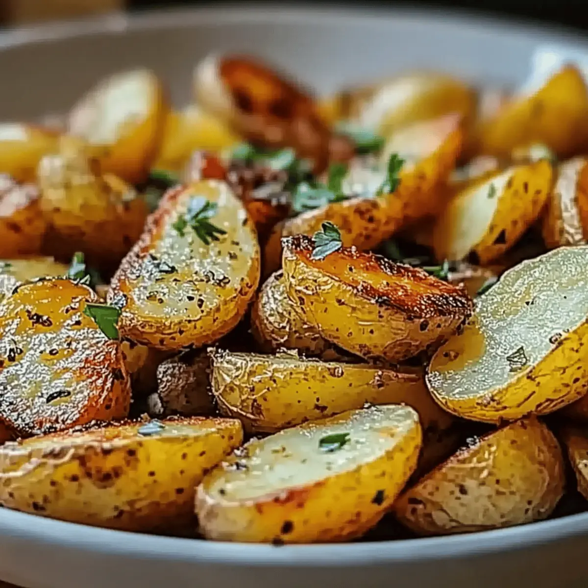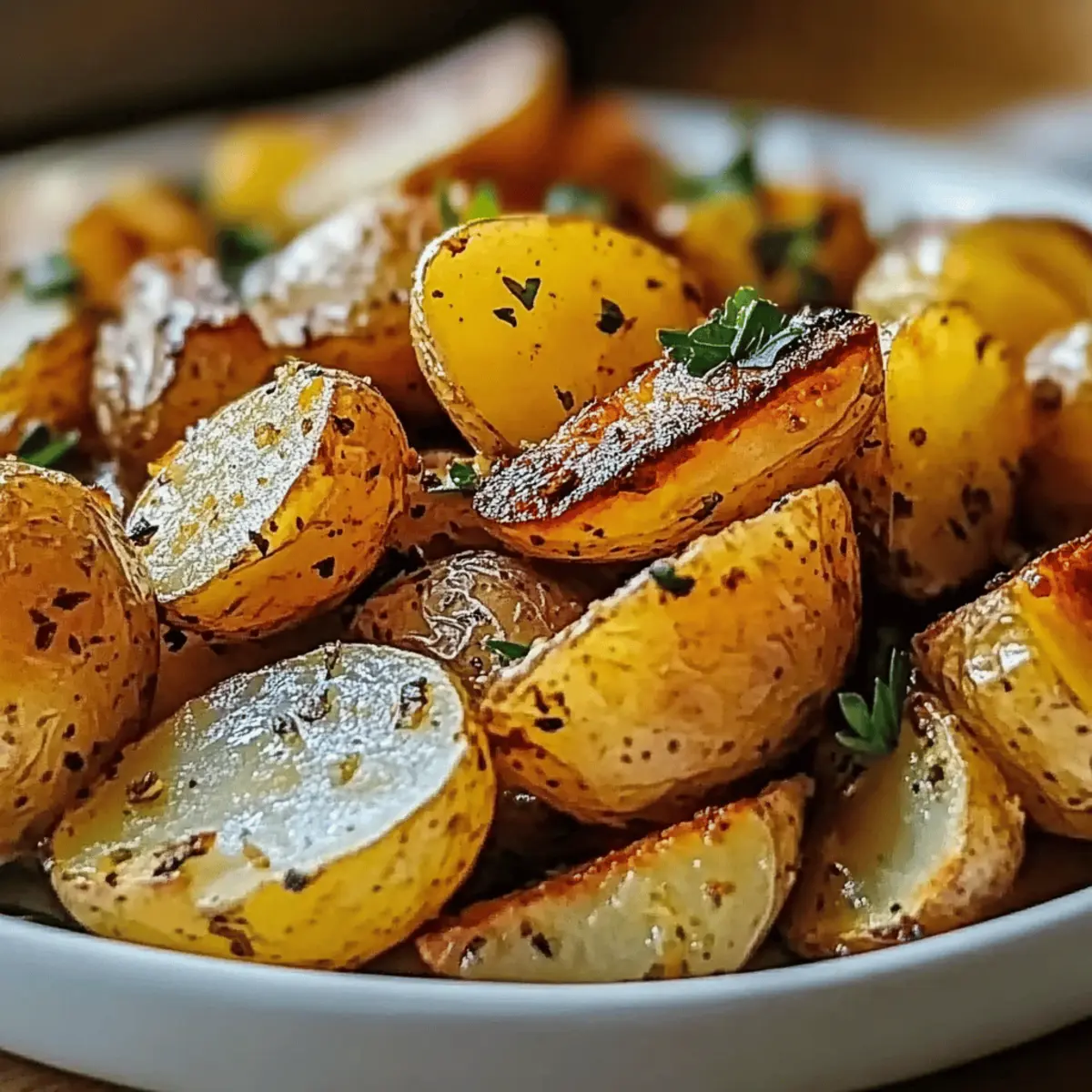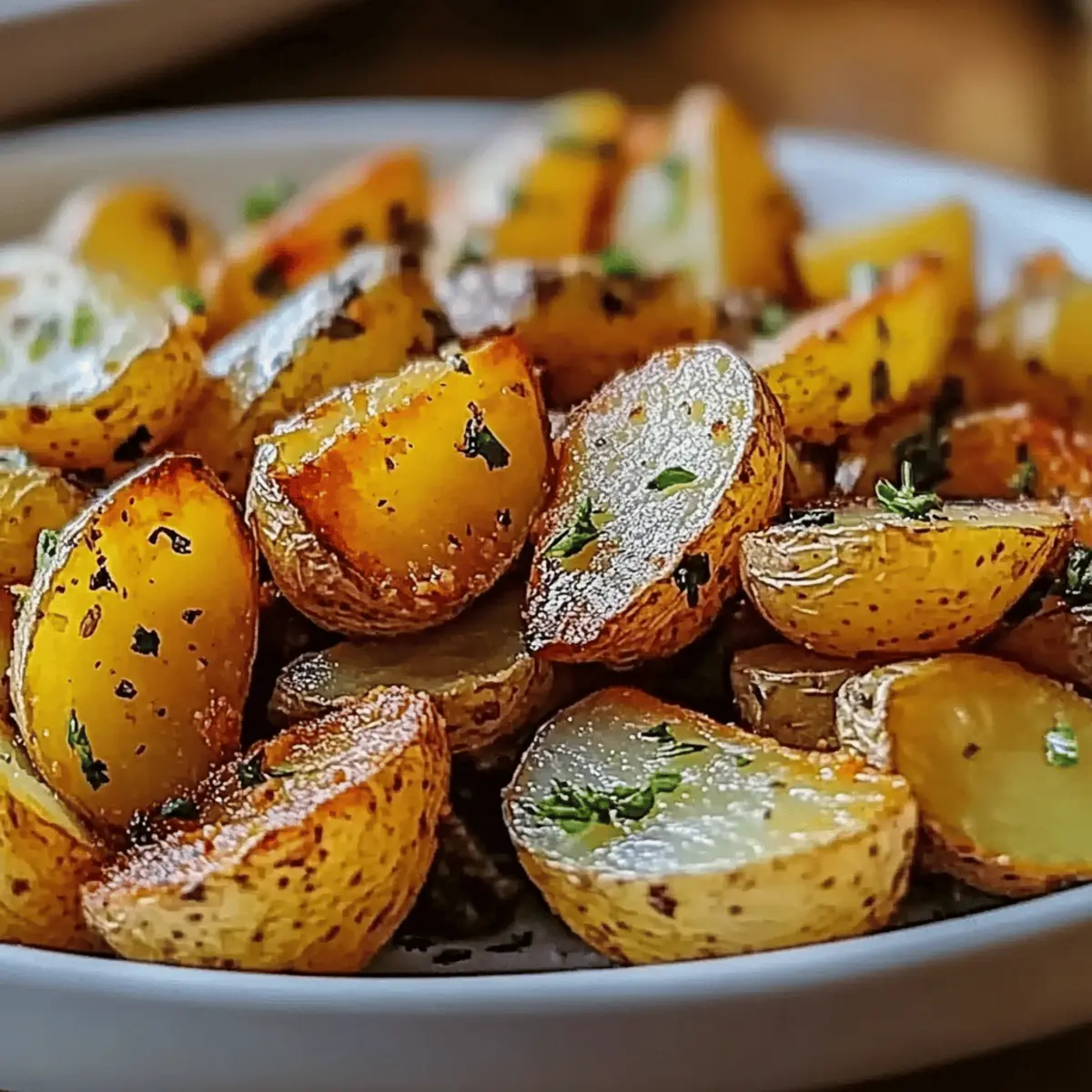 As I pulled the hot tray of Golden Ranch Roasted Potatoes from the oven, the inviting scent of savory ranch seasoning wafted through my kitchen, making my mouth water with anticipation. This delightful side dish is such a gem—imagine crispy edges giving way to a fluffy interior, each bite bursting with a flavor that dances on your taste buds. The best part? It’s incredibly easy to prepare, perfect for family meals or when you want to impress guests without breaking a sweat. Plus, these potatoes are a fantastic blank canvas for creativity, allowing you to explore variations like cheesy, spicy, or herb-infused treats. Are you ready to elevate your dinner table with this deliciously simple recipe? Let’s dive in! Why Are Golden Ranch Roasted Potatoes So Irresistible? Deliciously Simple: The preparation is quick and requires minimal ingredients, making it perfect for busy weeknights. Crowd-Pleasing Flavor: The savory ranch seasoning elevates plain potatoes into a flavorful delight that’s sure to please every palate. Versatile Options: Explore variations! Try adding cheese for a gooey twist or incorporate spicy elements for a kick that’ll excite your taste buds. Perfect for Any Occasion: Whether it’s a cozy family dinner or a gathering with friends, these potatoes fit seamlessly into any menu. Colorful Presentation: Garnish with fresh parsley for an eye-catching touch that elevates your dish to a new level. If you love roasted veggies, consider pairing them with my Garlic Roasted Vegetables for a feast that dazzles on every plate! Golden Ranch Roasted Potatoes Ingredients For the Potatoes • Baby Potatoes (2 pounds) – These small, tender potatoes provide the perfect texture and are highly flavorful; use Yukon Gold or red varieties for the best results. • Olive Oil (3 tablespoons) – Essential for achieving a rich, golden-brown finish; opt for high-quality oil to enhance the dish. For the Seasoning • Ranch Seasoning Mix (2 tablespoons) – This is the star ingredient that infuses your potatoes with savory goodness; you can substitute with a homemade mix using dried herbs for customization. • Garlic Powder (1 teaspoon) – A must for flavor enhancement; fresh garlic can be used if you prefer a bolder taste. • Onion Powder (1 teaspoon) – Adds depth of flavor; finely chopped fresh onions are a great alternative if you want a fresh touch. • Salt and Pepper – Essential seasonings; adjust according to your taste preferences. Garnishing • Fresh Parsley (for garnish) – A touch of color and freshness once your Golden Ranch Roasted Potatoes are ready; it beautifully brightens up the presentation. Step‑by‑Step Instructions for Golden Ranch Roasted Potatoes Step 1: Preheat the Oven Begin your delicious journey by preheating your oven to 425°F (220°C). This temperature is key for achieving those perfectly crispy edges on your Golden Ranch Roasted Potatoes. Allow at least 10–15 minutes for the oven to reach the right temperature before you begin preparing the potatoes. Step 2: Prepare the Potatoes While the oven is heating, rinse and dry the baby potatoes thoroughly to remove any residual dirt. Next, cut them in half or quarters to ensure they cook evenly. Uniform size is crucial here; they should all be about the same size to achieve that golden-brown perfection as they roast. Step 3: Make the Seasoning Mix In a mixing bowl, combine the ranch seasoning mix, garlic powder, onion powder, salt, and pepper. This fragrant blend will elevate your Golden Ranch Roasted Potatoes, infusing them with flavor. Stir the mixture well, ensuring all ingredients are evenly distributed for the best results. Step 4: Coat the Potatoes Drizzle the olive oil over your seasoning mix, stirring it to create a smooth coating. Add the cut potatoes to the bowl, tossing them gently until every piece is well coated in the savory seasoning. This step is essential for that flavorful crust you’ll love on your roasted potatoes. Step 5: Arrange on Baking Sheet Spread the seasoned potatoes in a single layer on a lined baking sheet. Make sure they are not overcrowded; this allows hot air to circulate and promotes even roasting. You will want to see some space between the potatoes for that golden color and crispy finish. Step 6: Roast the Potatoes Place the baking sheet in your preheated oven and roast the potatoes for 30–35 minutes. Halfway through, give them a gentle stir with a spatula to ensure even browning. Watch for the golden color and the fork-tender texture to signify that they are ready to come out. Step 7: Garnish and Serve Once your Golden Ranch Roasted Potatoes are crispy and golden, remove them from the oven. Garnish with fresh parsley for a pop of color and added freshness. Serve them immediately while hot, allowing everyone to enjoy their delightful crunch as a perfect side dish at family meals or gatherings. Make Ahead Options Golden Ranch Roasted Potatoes are a fantastic option for those busy weeknights when you want deliciousness with minimal effort! You can wash and cut the baby potatoes up to 24 hours in advance and store them in a bowl of cold water in the refrigerator to prevent browning. The seasoning mix can also be prepared ahead of time, stored in an airtight container, and will retain its flavor for up to 3 days. When you’re ready to serve, simply drain the potatoes, toss them in the prepared seasoning mix, and follow the roasting instructions as usual. This way, you’ll enjoy crispy, restaurant-quality potatoes with every meal without the last-minute rush! Expert Tips for Golden Ranch Roasted Potatoes Uniform Size: Ensure all potatoes are cut to the same size for even cooking and golden-brown perfection. This avoids any overcooked or undercooked pieces. Preheat is Key: Always preheat your oven for crispy edges. Putting potatoes in a cold oven can result in sogginess instead of that delightful crunch. High-Quality Oil: Use a good quality olive oil to enhance flavor; it