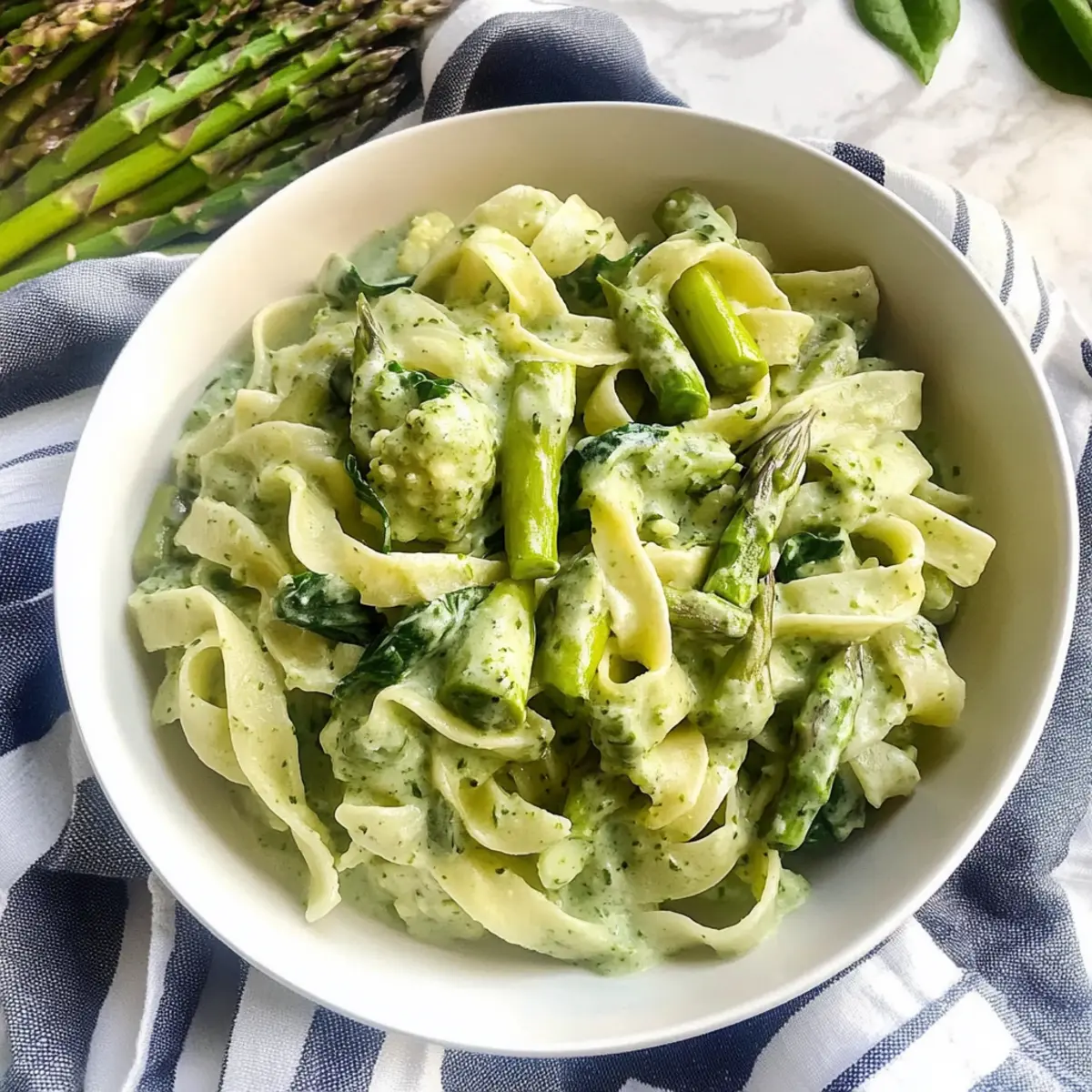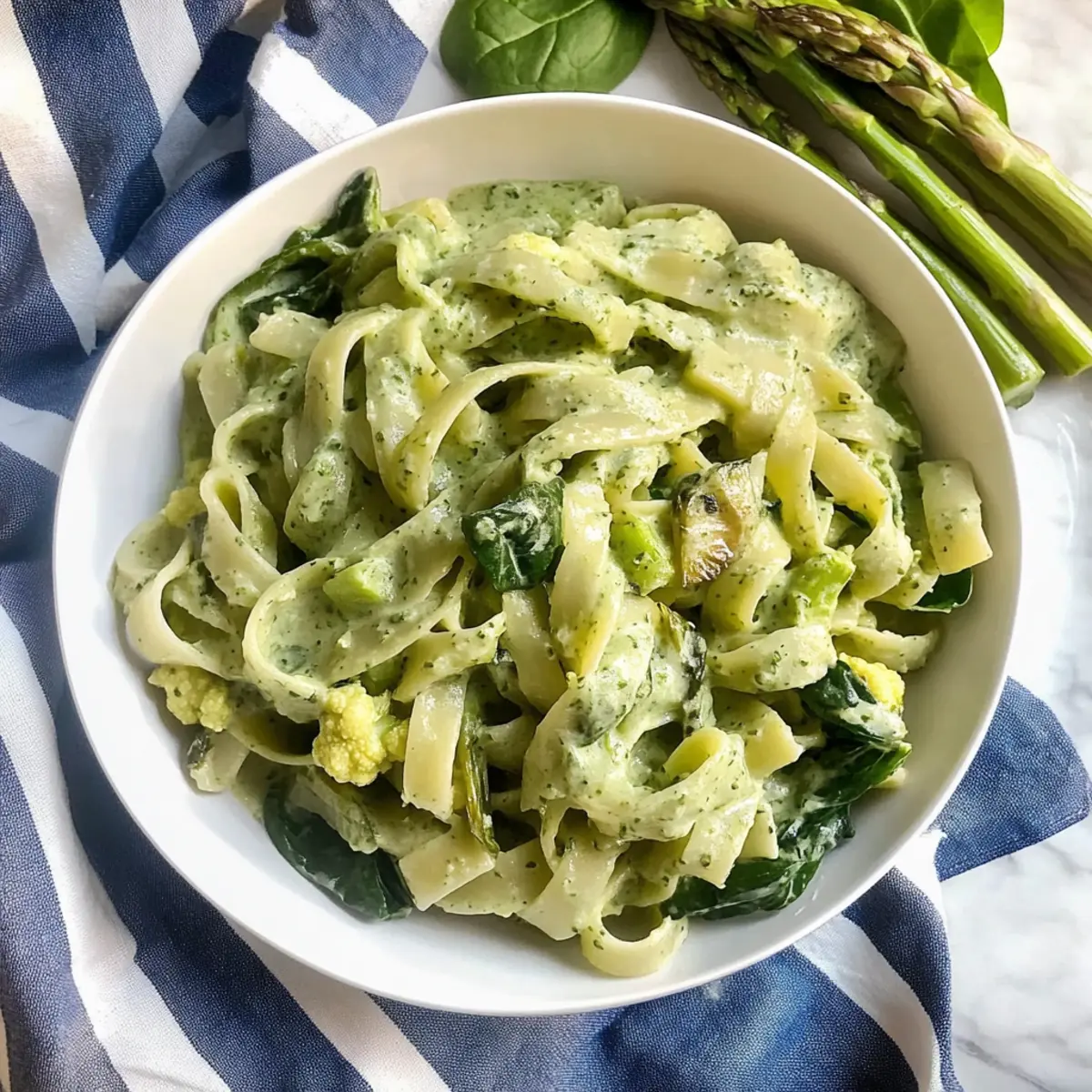You know that feeling when you crave a comforting pasta dish but want something lighter and healthier? Enter my Green Cauliflower Cream Fettuccine—a delightful twist on traditional fettuccine that’s both gluten-free and dairy-free! This dish captures the essence of spring with its vibrant green hues from fresh spinach and tender asparagus. Not only is it a wholesome option for the whole family, but it’s also quick to prepare, making it perfect for busy weeknights. Plus, you’ll love how creamy and satisfying it feels, without the heaviness. Are you ready to elevate your home-cooked meals and impress your loved ones with this nutritious, delectable dish? Why is Green Cauliflower Fettuccine a Must-Try? Satisfying, Creamy Texture: The luscious sauce delivers a comforting mouthfeel without the heaviness of traditional cream. Nutritious Ingredients: Packed with wholesome veggies like cauliflower, spinach, and asparagus, this dish supports a healthy lifestyle. Quick & Easy: Ready in under 30 minutes, it’s perfect for busy weeknights when you crave homemade comfort. Gluten-Free Friendly: A delightful choice for those following a gluten-free diet, making it accessible for everyone at the table. Crowd-Pleasing Appeal: This vibrant dish is sure to impress guests and family alike, giving your meals a fresh upgrade! Plus, if you’re looking to explore more vegetable-focused recipes, check out my Garlic Cauliflower Mushroom for another delicious option. Green Cauliflower Cream Fettuccine Ingredients • Discover the fresh flavors that make this dish delightful! For the Sauce Cauliflower florets – Creates a smooth, creamy sauce; substitute with broccoli for a different twist. Water – Used for steaming the cauliflower and thinning the sauce to desired consistency. Garlic – Adds depth of flavor; fresh is preferred, but frozen garlic cubes are a handy backup. Extra Virgin Olive Oil – Adds richness when sautéing the garlic and spinach in the sauce. Vegetable Base – Enhances the sauce flavor; Better than Bouillon is highly recommended. Fresh Ground Pepper – A touch of seasoning; adjust to your preference for a personalized kick. Salt – Essential for enhancing all flavors; use to taste, especially as the vegetable base can be salty. For the Pasta Baby Spinach Leaves – Infuses the sauce with nutrition and vibrant color; can be swapped with kale if desired. Wide Rice Noodles – The main carbohydrate foundation; can substitute with gluten-free pasta or spiralized vegetables. Asparagus – Provides a delightful crunch and flavor; can be replaced with green beans or sweet peas. Let these ingredients transform mealtime into a wholesome experience with the delicious Green Cauliflower Cream Fettuccine! Step‑by‑Step Instructions for Green Cauliflower Cream Fettuccine Step 1: Prep Cauliflower Begin by steaming 3 cups of cauliflower florets in a pot with a steamer insert. Heat the water to a gentle boil covered, and steam the florets for about 8-10 minutes, or until they are fork-tender. Once done, strain the cauliflower and set aside, ensuring they are ready to create a creamy sauce for your Green Cauliflower Cream Fettuccine. Step 2: Make Sauce In a high-speed blender, combine the steamed cauliflower with 1 cup of water, a few cloves of garlic, and a generous spoonful of vegetable base. Blend until smooth and creamy, about 30-60 seconds. Next, gently fold in the sautéed baby spinach leaves and pulse a couple of times, leaving some texture. This will enhance the sauce’s flavor and color, making it the heart of your dish. Step 3: Cook Noodles In a large pot, bring salted water to a rolling boil and add the wide rice noodles of your choice. Cook according to package instructions, stirring frequently for about 5-7 minutes to prevent sticking. Once al dente, drain the noodles and return them to the pot, keeping them warm as you prepare the finishing touches for your Green Cauliflower Cream Fettuccine. Step 4: Roast Asparagus Preheat your oven to 375°F (190°C). While it’s heating, trim and cut asparagus into bite-sized pieces. Toss the asparagus on a baking sheet with a drizzle of extra virgin olive oil, salt, and fresh ground pepper. Roast for approximately 10 minutes until tender and slightly crisped, allowing the asparagus to enhance the dish with its bright flavor and crunch. Step 5: Combine Once your noodles are drained and asparagus roasted, pour the creamy green cauliflower sauce over the warm noodles in the pot. Gently mix until the noodles are evenly coated, and then folding in the roasted asparagus for a colorful and nutritious addition. Serve your Green Cauliflower Cream Fettuccine hot, garnished with any extra asparagus for an inviting presentation. What to Serve with Green Cauliflower Cream Fettuccine Creating a delightful meal is simple when you know the perfect pairings to elevate your culinary experience. Garlic Bread: The warm, buttery flavor of garlic bread complements the creamy richness of the fettuccine, making every bite satisfying. Light Salad: A fresh garden salad with citrus vinaigrette provides a bright, crunchy contrast to the creamy pasta. The mix of textures is simply refreshing. Roasted Vegetables: Colorful roasted seasonal vegetables add nutrients and a delightful caramelization that enhances the dish’s flavors. Try zucchini, bell peppers, and cherry tomatoes! Herb-Infused Quinoa: This nutrient-packed side dish offers a nutty flavor and fluffy texture, keeping the meal light and healthy while adding a lovely bite. Sparkling Water with Lime: A refreshing drink choice that cleanses the palate and pairs wonderfully with the rich flavors of the fettuccine. Lemon Sorbet: For a light dessert, cool down with lemon sorbet; it’s a sweet and tangy finish that refreshes your taste buds after the pasta. These selections will not only enhance your Green Cauliflower Cream Fettuccine experience but create a beautifully balanced meal everyone will enjoy! How to Sto