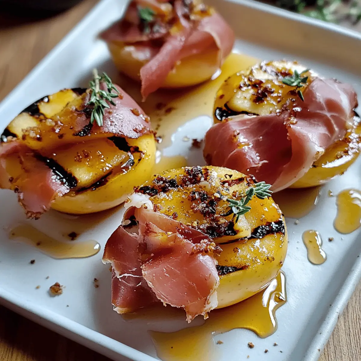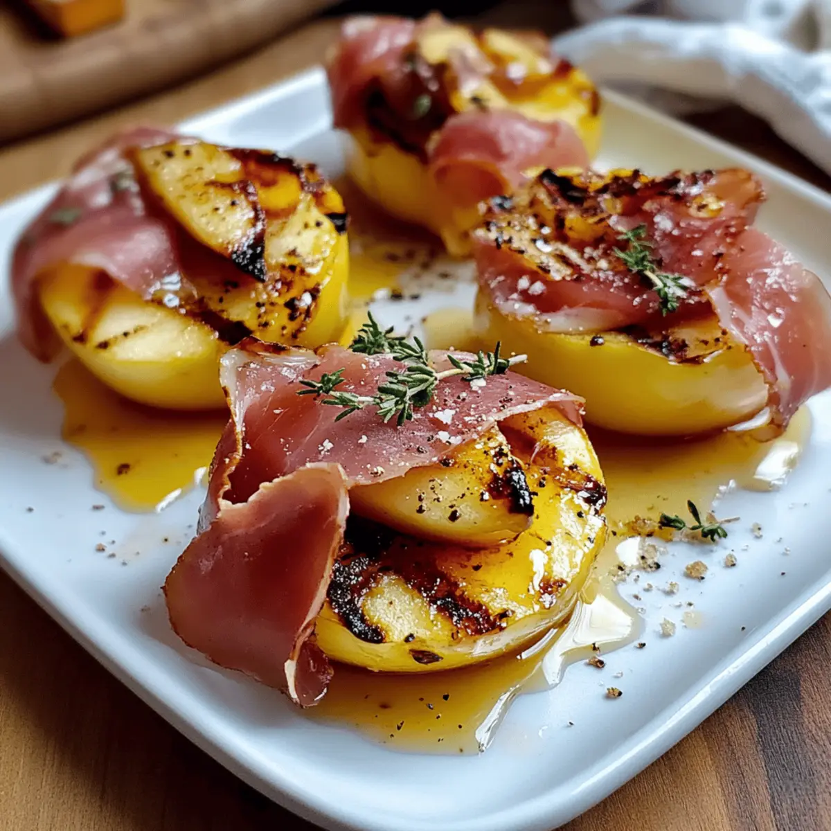 As I stood at my grill, a tantalizing aroma filled the air, blending the sweetness of apples with the salty allure of prosciutto. That’s when I knew I had uncovered something special: Grilled Apples with Prosciutto and Honey. This upscale appetizer combines tender, caramelized apples with the richness of prosciutto, all tied together with a drizzle of honey that transforms a simple dish into a gourmet delight. What I love most about this recipe is not just the exquisite flavor contrast but also its quick prep time, making it the perfect choice for entertaining or a cozy night in. Whether served as a stunning starter or a unique side to your favorite grilled meats, this dish is sure to impress and spark conversation at your table. Curious about how to recreate this delightful balance of sweet and savory? Let’s dive into the recipe! Why Are Grilled Apples with Prosciutto Divine? Irresistible Flavor Fusion: The combination of juicy grilled apples and salty prosciutto creates a match made in heaven. Quick Preparation: With minimal ingredients and prep time, you can whip this upscale appetizer together in no time. Versatile Serving Options: Serve it as a chic starter, a side dish at your barbecue, or as part of a stunning charcuterie board alongside Grilled Zucchini Feta for a delightful flavor journey. Customizable Additions: Elevate the experience with creamy cheeses like goat or brie, or even a drizzle of balsamic glaze for extra tang. Crowd-Pleasing Appeal: This dish is not only impressive but also guaranteed to spark conversation and excitement around your table! Grilled Apples with Prosciutto Ingredients For the Apples • Firm Apples – Honeycrisp, Fuji, or Pink Lady work best to maintain structure while grilling. • Olive Oil or Melted Butter – Brush on apple slices to prevent sticking; cooking spray is a great substitute. For the Prosciutto • Thinly-Sliced Prosciutto – High-quality options like Prosciutto di Parma add a rich, salty flavor that complements the sweetness of the grilled apples. For the Honey Drizzle • Raw Honey – Opt for raw honey for a purer taste; alternative flavored honey can provide unexpected depth. Optional Add-ons • Creamy Cheese – Goat cheese or brie enhances richness and creates a delightful creaminess. • Chopped Nuts – Adds a satisfying crunch; consider walnuts or pecans for a delicious contrast. • Fresh Herbs – Rosemary or thyme introduce a fragrant aroma that elevates your dish. • Balsamic Glaze – Drizzle over the assembly for an extra layer of tangy sweetness. Now, you have everything you need to recreate the magic of Grilled Apples with Prosciutto and Honey! Step‑by‑Step Instructions for Grilled Apples with Prosciutto and Honey Step 1: Preheat the Grill Begin by preheating your grill to medium-high heat, around 400°F (200°C). While the grill heats, use a grill brush to clean the grates thoroughly. This ensures that nothing sticks to your grilled apples, allowing for perfect grill marks and easy removal when done. A hot grill is crucial for achieving that delectable caramelization on the apples. Step 2: Prepare the Apples While the grill is heating, wash and core your firm apples. Slice them into rounds or wedges, about ¼ to ½ inch thick, keeping the skin on for added texture and flavor. Lay the apple slices flat, and visually check for even thickness to ensure even grilling. This preparation sets the stage for your Grilled Apples with Prosciutto and Honey dish. Step 3: Brush with Oil Next, lightly brush both sides of each apple slice with olive oil or melted butter. This step is important as it prevents sticking and enhances the caramelization process while grilling. Ensure an even coat on all slices for optimal grilling results. You can also use a cooking spray if it’s more convenient, keeping your grilling hassle-free. Step 4: Grill the Apples Place the apple slices on the preheated grill, ensuring they are spaced apart to allow even cooking. Grill each side for 2 to 3 minutes, or until you see beautiful grill marks and feel them becoming tender, yet still holding their shape. The goal is to have a slightly softened texture with grill marks that enhance the visual appeal of your dish. Step 5: Add the Prosciutto Once the apples are nicely grilled, it’s time to add the prosciutto. If you prefer, wrap a slice of prosciutto around each grilled apple slice for a delightful sweet and savory contrast. Alternatively, you can place the prosciutto directly atop the apples. Grill for an additional 1 to 2 minutes, just until the prosciutto crisps up and exudes its rich, salty flavor. Step 6: Drizzle with Honey After grilling, remove the apple-prosciutto assembly from the grill and arrange them on a serving platter. Generously drizzle raw honey over the warm apples and prosciutto, allowing the honey to pool beautifully around each piece. This final touch adds both sweetness and a glossy finish that elevates your Grilled Apples with Prosciutto and Honey into a showcase dish. Step 7: Garnish and Serve For an extra burst of flavor, consider adding optional garnishes like crumbled goat cheese, chopped nuts, or fresh herbs such as rosemary or thyme. Serve immediately while warm to enjoy the best texture and flavor contrast. These elegant bites can be enjoyed as a stunning appetizer or a unique addition to your charcuterie board. How to Store and Freeze Grilled Apples with Prosciutto Fridge: Store any leftover grilled apples in an airtight container in the fridge for up to 2 days. The flavor might slightly diminish, but they will still be delicious! Freezer: If you want to freeze the apples, make sure they are completely cooled first. Place them in a freezer-safe container or bag and freeze for up to 3 months. Reheating: To enjoy the apples again, gently reheat them in the microwave or on a skillet over low heat, taking care not to overcook them. Prosciutto Storage: Keep prosciutto separate and wrapped tightly in the fridge for 