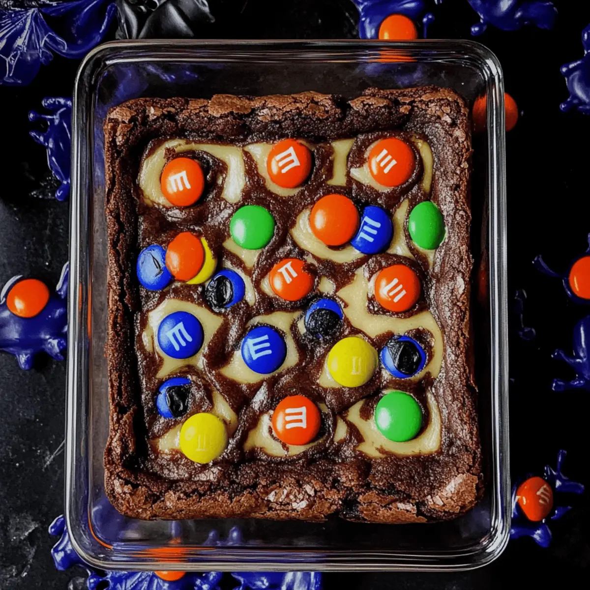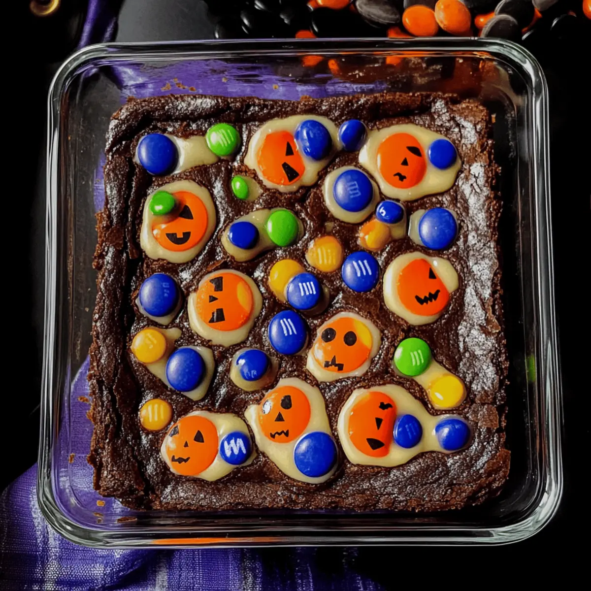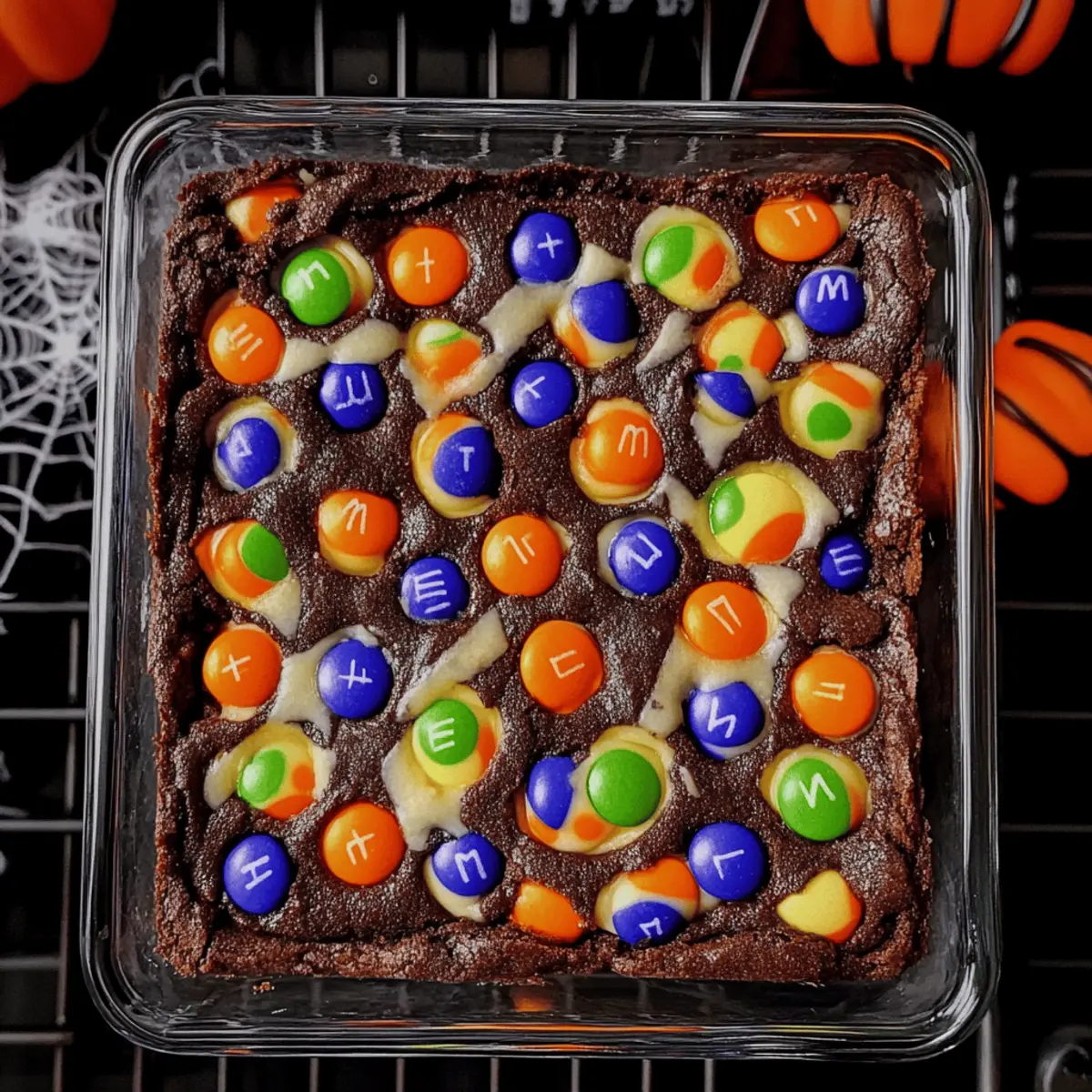 Halloween Brookies are a delightful combination of gooey brownies topped with festive cookies and M&M's, perfect for Halloween gatherings.