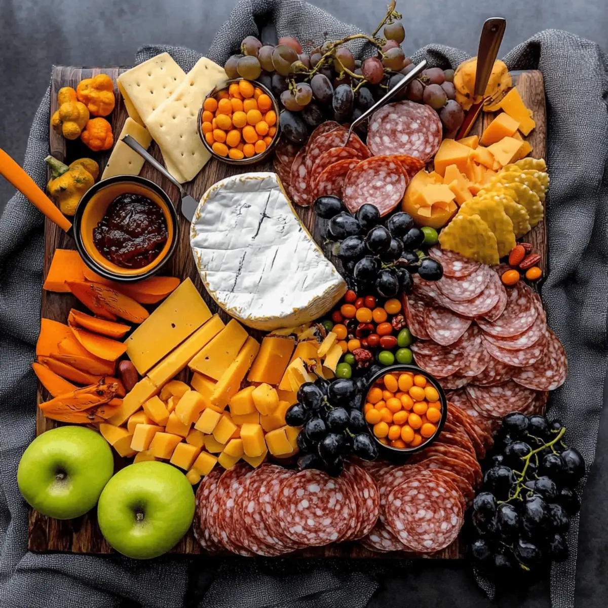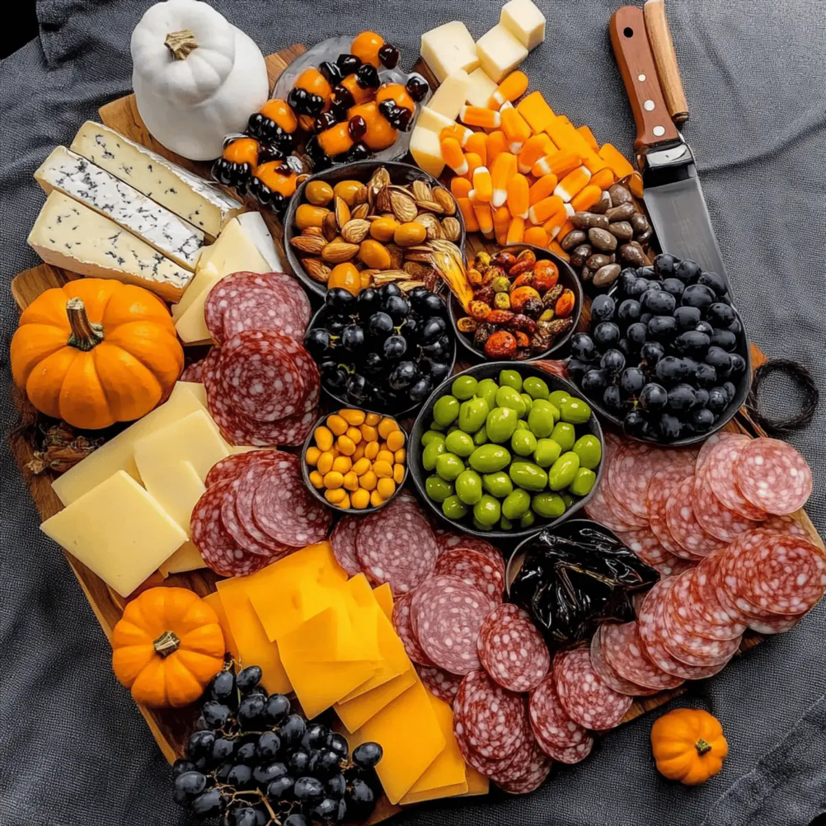 The sun dips lower, washing the kitchen in golden light, and I can already smell the comforting blend of cheeses and spices wafting through the air. This Halloween Cheese Board is my go-to for embracing the festive spirit, providing not just a delicious appetizer, but also a stunning centerpiece for gatherings. It’s an effortless way to impress guests—customizable to suit any palate and perfect for those who crave homemade goodness over fast food. Picture vibrant colors mingling on your table, with creamy cheeses, savory meats, and a playful touch of Halloween candy. Whether you’re hosting a spooky soirée or a cozy night in, this deliciously easy recipe is bound to delight. Are you ready to create your own bite-sized masterpiece? Why is a Halloween Cheese Board a must? Visually Striking: This Halloween Cheese Board transforms any gathering into a festive event with its vibrant colors and creative arrangement. Customizable Delights: It offers endless options for personalization—swap in your favorite cheeses and fruits to suit your taste. Crowd-Pleasing Appeal: Perfect for both kids and adults, this board tempts every palate with a variety of flavors, textures, and even a bit of sugary fun. Effortless Preparation: With minimal assembly required, you’ll be spending less time in the kitchen and more time enjoying the spooky season. Perfect for Any Occasion: Whether it’s a Halloween party or a cozy family night, these delightful bites are sure to impress and satisfy. Why not check out similar ideas like our Grilled Cheese Burrito or Broccoli Cheese Rounds for more hearty inspiration? Halloween Cheese Board Ingredients For the Cheeses Sharp or Smoked Cheddar – Adds a robust flavor and vibrant orange color; substitute with regular cheddar if unavailable. Wine Soaked Cheese (e.g., Purple Moon Cheddar) – Introduces a unique purple hue and rich taste; swap with any other wine-soaked cheese for variety. Red Leicester – Contributes a nutty flavor and crumbly texture; use any similar cheese if unavailable. Pub Cheese – A creamy addition perfect for autumn flavors; look for similar cheese spreads if substituting. Goat Gouda – Offers a milder, creamy taste with a white color; substitute with any preferred white cheese. For the Meats Dry Cured Spanish Chorizo – Gives a spicy kick and dark red color; ensure it’s Spanish for the best flavor and use any dry cured sausage as a substitute. Salami (e.g., Calabrese) – Provides a savory component that pairs well with cheeses; any type of salami is acceptable as a swap. Prosciutto – A classic favorite with delicate flavor; substitute with any cured ham if necessary. For the Snacks Pumpkin Seeds – Add seasonal crunch and fall flavor; roast your own or use pre-packaged for convenience. Fresh Fruit (e.g., green apples, black grapes) – Balances the board with sweetness and color; choose any seasonal fruits to match the color scheme. Dried Fruit (e.g., apricots) – Adds chewy texture and a splash of orange; other dried fruits can be substituted based on preference. Halloween Candy (e.g., candy corn, black licorice) – Fun additions for a festive touch; choose any seasonal candy if preferred. Pimento Olives – Contributes a fun visual element, resembling eyeballs; any olives can work if you prefer. Okra Snacks – Crispy treats adding unique flavor and texture; use similar snacks if not available. Mini Pretzels or Soft Pretzel Bites – Ideal for dipping into pub cheese; substitute with any favorite crunchy snack. Crackers – Provide textural contrast; use any preferred crackers for serving. With these delicious ingredients, your Halloween Cheese Board is sure to be a hit! Step‑by‑Step Instructions for Halloween Cheese Board Step 1: Arrange the Cheeses and Meats Start by selecting a large, dark serving board to enhance the visual appeal of your Halloween Cheese Board. Place the sharp or smoked cheddar, wine-soaked cheese, red Leicester, and goat gouda in a circular formation at the center of the board. Surround them with dry cured Spanish chorizo, salami, and prosciutto, ensuring that each element is visually distinct and accessible to guests. Step 2: Add Fresh Fruits and Crackers Next, fill the spaces around the cheeses with fresh fruits like green apples and black grapes, creating a vibrant contrast. Scatter your favorite crackers across the board in varied arrangements to provide a crunchy texture. Take a moment to step back and ensure everything feels balanced, with colors and shapes complementing each other beautifully. Step 3: Incorporate Pub Cheese and Dipping Snacks Place a small bowl filled with pub cheese on the board, making sure it’s easily reachable. Surround it with mini pretzels or soft pretzel bites for dipping, elevating the indulgence factor. The creamy texture of the pub cheese combined with the crunch of the pretzels creates a delightful combination that guests will love. Step 4: Arrange Extra Snacks To enhance the festive atmosphere, incorporate bowls of pumpkin seeds and dried fruits like apricots along the edges of the board. Add fun touches with Halloween candy, such as candy corn and black licorice, to create a playful aesthetic. Ensure these extras are spaced out evenly, bringing each section of the Halloween Cheese Board to life. Step 5: Garnish with Olives and Unique Snacks Scatter some pimento olives across the board for a whimsical touch that resembles “eyeballs.” You can also add crispy okra snacks to introduce an unexpected flavor twist. Make sure they are strategically placed among the meats and cheeses, coaxing guests to explore all the delightful offerings available on your Halloween Cheese Board. Step 6: Final Touches and Serving For a polished finish, add cheese knives and cocktail forks throughout the board for easy serving. If desired, you can include small Halloween decorations to enhance the playful theme. Position the board in a well-lit area to showcase its vibrant colors, read