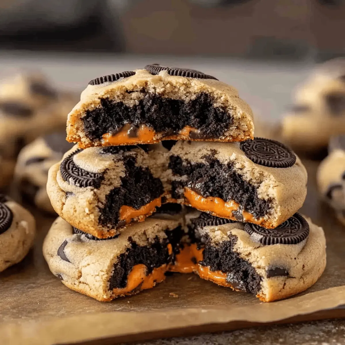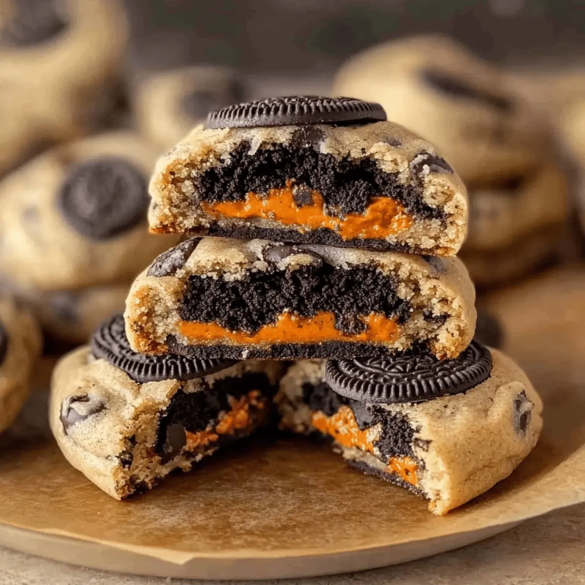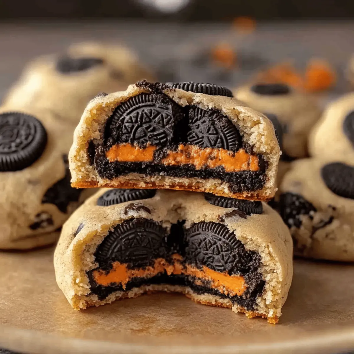 As I balanced a platter of cookies adorned with ghostly sprinkles, the kids couldn’t contain their excitement. These Spooky Halloween Oreo Stuffed Chocolate Chip Cookies have become a delightful new tradition in my home, celebrating the season with every scrumptious bite. Imagine soft, chewy chocolate chip cookies hugging a creamy, seasonal Oreo—this treat is not just a visual spectacle but also a quick and easy baking success that will impress everyone at your Halloween gathering. Not only are they perfect for satisfying sweet cravings, but they also let you channel your inner creative spirit, transforming a classic cookie into a festive masterpiece. Are you ready to treat your loved ones to ghoulishly good delights that will disappear faster than you can say “Boo!”? Why Are These Cookies So Special? Bold, Fun Flavor: The combination of Halloween Oreos with chocolate chip cookies creates a mouthwatering treat that’s both spooky and delicious. Quick and Easy: Perfect for busy bakers, this recipe comes together in no time, making it ideal for last-minute Halloween festivities. Visual Appeal: The vibrant Halloween sprinkles add an eye-catching touch, turning each cookie into a spooky showstopper for your dessert table. Crowd-Pleasing Delight: These cookies are sure to impress family and friends at any gathering, making them a hit with kids and adults alike. Versatile Options: Feel free to swap in your favorite Oreos or add unique mix-ins like nuts or flavored chips for a personal twist—no one will be able to resist! If you’re exploring more fun ways to elevate your baking, consider trying these Cinnamon Roll Cookies or even our delicious Oreo Balls Melt. Halloween Oreo Stuffed Chocolate Chip Cookies For the Cookie Dough Butter – Adds rich flavor and moisture; be sure it’s slightly softened for easy mixing. Brown Sugar – Provides depth and moisture; light brown can be used as a substitute. Granulated Sugar – Sweetens and helps in cookie browning; opt for regular white sugar or alternatives. Egg – Binds the ingredients together and ensures moisture; for a vegan option, use 1/4 cup unsweetened applesauce instead. Vanilla Extract – Elevates the cookie’s flavor; pure vanilla extract is always the best choice. All-Purpose Flour – Gives structure to the cookies; you can use a gluten-free blend if preferred. Corn Starch – For a softer texture; can be omitted, but the cookies will be less chewy. Baking Soda – Helps the cookies rise; ensure it’s fresh for the best results. Salt – Balances sweetness and enhances flavor; sea salt or kosher salt works wonders. For the Chocolate and Treats Semi-Sweet Chocolate Chips – Infuses chocolatey goodness; feel free to swap for dark or milk chocolate chips. Halloween Oreo – The star of the show, bringing a festive flavor and flair; regular Oreos work year-round. Halloween Sprinkles – Add a fun and festive touch; omit if preferred, though they do bring charm to your cookies. These Halloween Oreo Stuffed Chocolate Chip Cookies are not only a treat for the taste buds but also a feast for the eyes, ensuring a delightful experience for Halloween gatherings! Step‑by‑Step Instructions for Halloween Oreo Stuffed Chocolate Chip Cookies Step 1: Preheat the Oven Start by preheating your oven to 350°F (175°C) while you prepare your cookie dough. Line a large baking sheet with parchment paper to prevent sticking, ensuring your Halloween Oreo Stuffed Chocolate Chip Cookies come out beautifully from the oven. Step 2: Cream the Butters and Sugars In a medium mixing bowl, combine softened butter, brown sugar, and granulated sugar. Using a hand mixer or a wooden spoon, cream them together until the mixture is smooth and fluffy, which should take about 2-3 minutes. This step creates a rich base for your cookies, enhancing their flavor and texture. Step 3: Add Egg and Vanilla Next, mix in one egg and 1 teaspoon of vanilla extract to your creamed mixture. Blend until thoroughly incorporated, making sure there are no streaks of egg visible. This addition will bind your ingredients and enrich the flavor of the Halloween Oreo Stuffed Chocolate Chip Cookies. Step 4: Combine Dry Ingredients In a separate bowl, whisk together all-purpose flour, corn starch, baking soda, and salt. Gradually add this dry mixture to your wet ingredients, stirring gently until just combined. This method keeps your cookies soft and chewy, so be careful not to overmix. Step 5: Fold in Chocolate Chips and Sprinkles Now it’s time to bring some fun into your dough! Gently fold in the semi-sweet chocolate chips and Halloween sprinkles until evenly distributed. This colorful touch not only makes your cookies festive but also adds extra chocolatey goodness to each bite. Step 6: Prepare the Cookie Dough Balls Using a large cookie scoop (approximately 1/4 cup), scoop a generous portion of dough. Flatten the dough slightly, place a Halloween Oreo in the center, and then wrap the dough around the cookie, sealing it securely. This creates a delightful surprise inside your Halloween Oreo Stuffed Chocolate Chip Cookies. Step 7: Bake the Cookies Place the stuffed cookie dough balls on your prepared baking sheet, spaced apart to allow for spreading. Bake in your preheated oven for about 10 minutes. The cookies may look slightly underdone when you pull them out, but they will firm up as they cool, creating that perfect chewy texture. Step 8: Add Toppings and Cool As soon as your cookies are out of the oven, sprinkle extra chocolate chips on top to enhance their visual appeal and add more chocolate flavor. Let them cool on the baking sheet for about 5 minutes before gently transferring them to a cooling rack, allowing them to set completely for that perfect bite. What to Serve with Halloween Oreo Stuffed Chocolate Chip Cookies Savoring these Halloween Oreo Stuffed Chocolate Chip Cookies can be perfectly paired with delightful additions for a festive treat spread. Milk: Classic 
