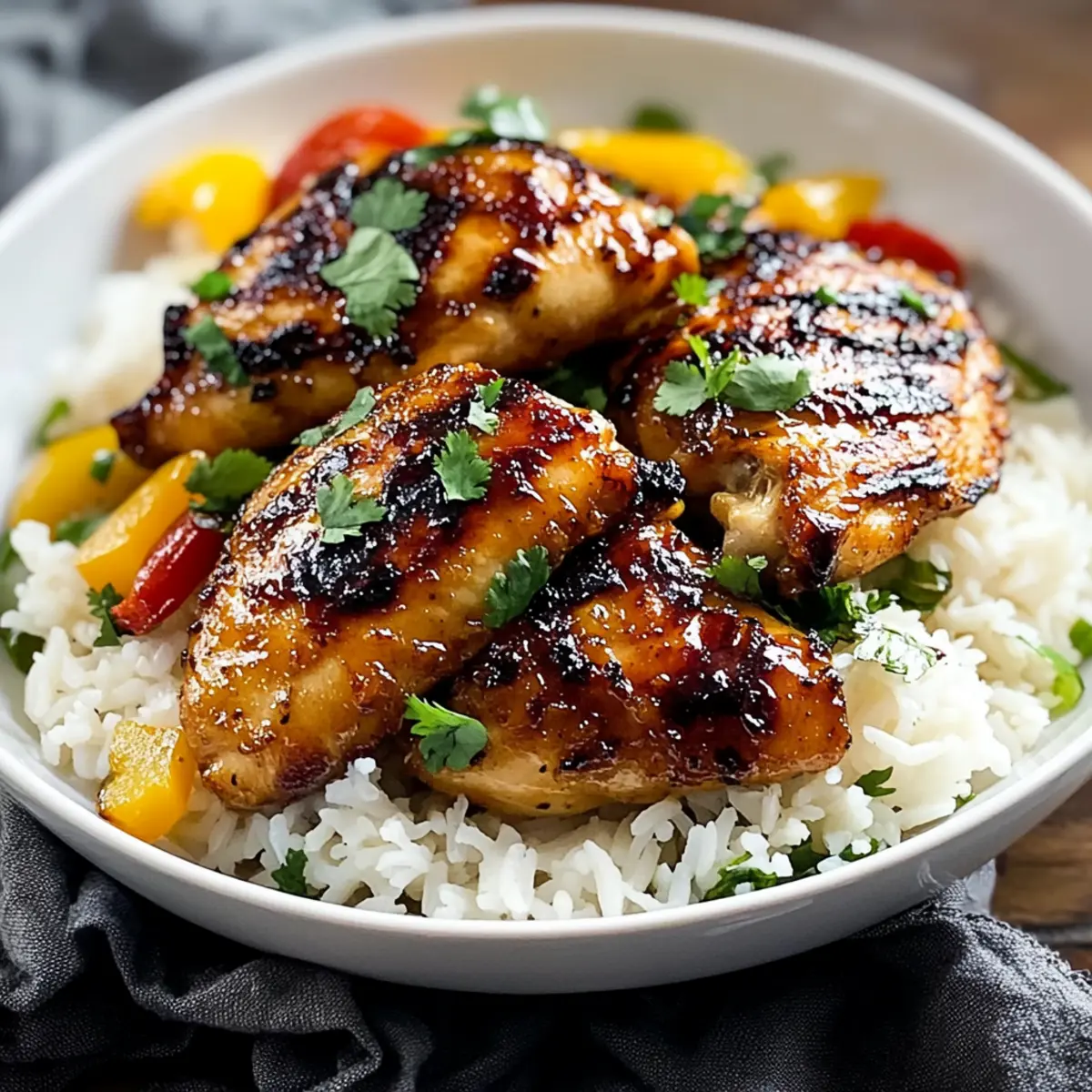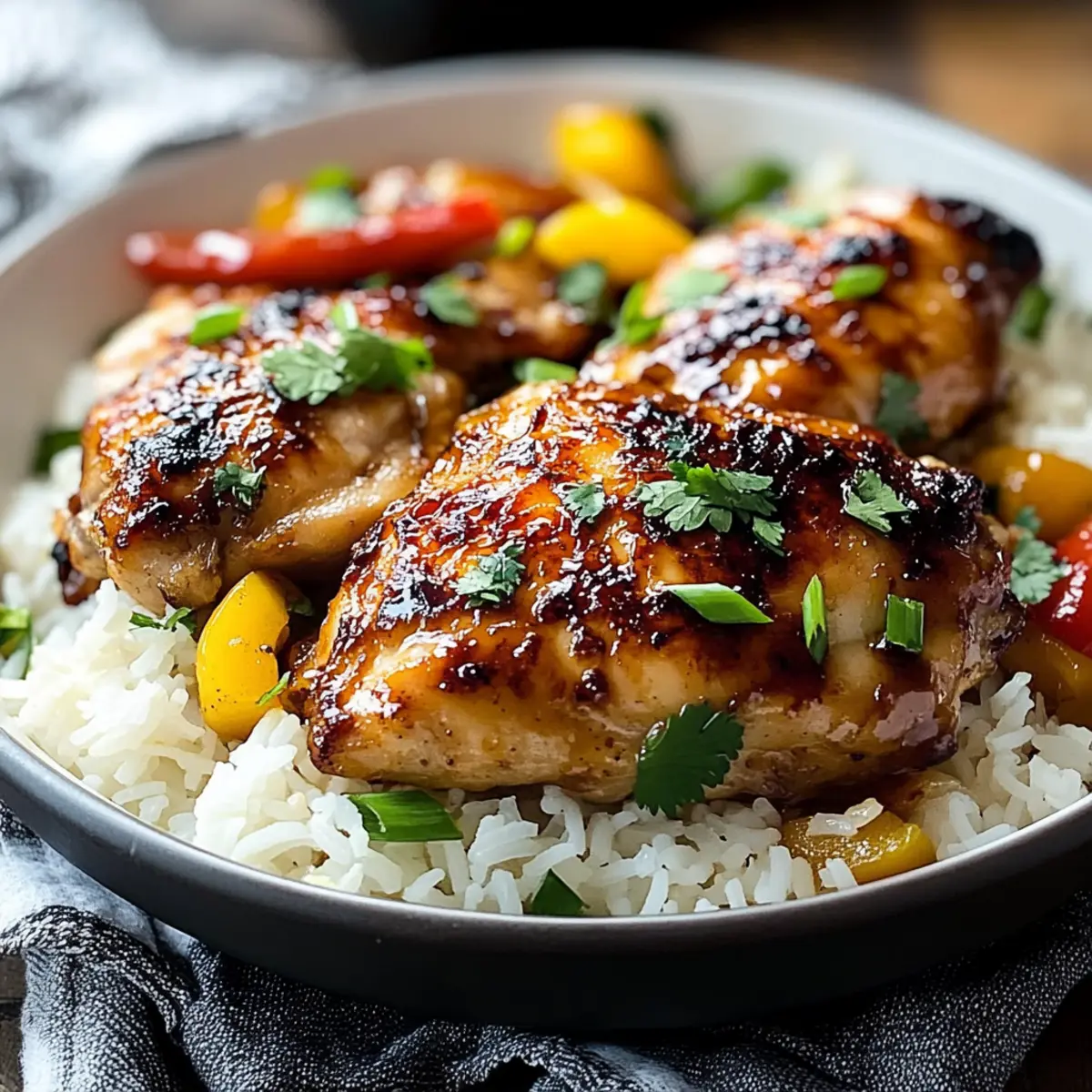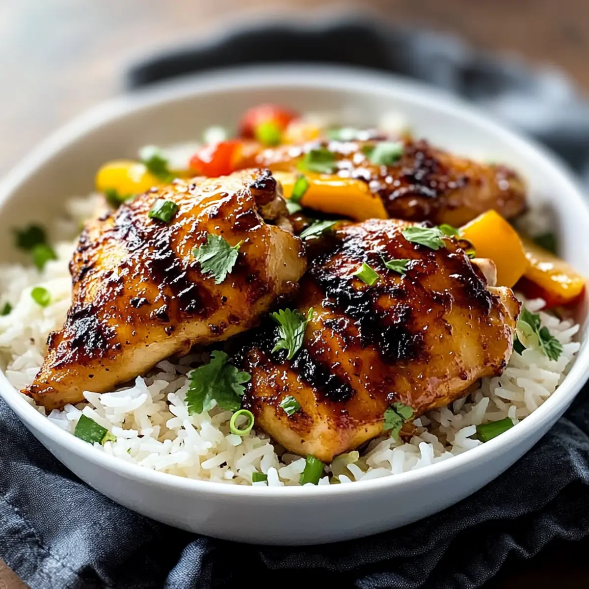 As I stood in my kitchen, the warm, tropical breeze wafted through the open window, carrying hints of pineapple and coconut, instantly transporting me to a sun-soaked Hawaiian paradise. This Hawaiian Chicken and Coconut Rice recipe is my go-to for a quick weeknight meal that feels like a mini getaway. Loaded with vibrant flavors and a delightful texture, it’s both comforting and versatile—perfect for impressing guests or snuggling in for a cozy dinner at home. Whether you’re a chicken lover or looking to switch things up with shrimp or tofu, this dish accommodates any palate and dietary preference, making it a true crowd-pleaser. Are you ready to dive into this delicious tropical escapade? Why Will You Love This Tropical Dish? Simplicity at Its Best: This recipe is easy enough for weeknight dinners but impressive enough for guests, allowing anyone to cook like a pro with just a few ingredients. Versatile Options: Whether you prefer chicken, shrimp, or even tofu, this dish adapts beautifully to satisfy any craving or dietary need. Exotic Flavor Profile: The harmonious mix of sweet pineapple, fragrant coconut, and savory garlic creates a delightful explosion of tropical flavors you won’t forget. Quick Cook Time: Whip up this delicious meal in less than an hour, so you can spend more time enjoying a cozy dinner instead of being in the kitchen. Crowd-Pleaser: With its vibrant colors and delicious taste, this Hawaiian Chicken with Coconut Rice is sure to impress everyone at the table—perfect for family gatherings or a simple date night. If you’re looking for more easy weeknight meals, check out my recipes for Garlic Parmesan Chicken or Spicy Maple Chicken for tasty yet simple options! Hawaiian Chicken & Coconut Rice Ingredients • To make your tropical experience even more delightful, I’ve broken down the essential ingredients to help you prepare this mouthwatering meal with ease! For the Marinade Chicken thighs – A tender choice that absorbs flavors well; boneless, skinless preferred. Soy sauce – The backbone of the marinade for umami richness; tamari is a great gluten-free substitute. Pineapple juice – Brings sweetness and acidity; use fresh for the best flavor, but canned works too. Brown sugar – Adds warmth and helps to caramelize; honey or coconut sugar can also be used. Rice vinegar – Balances the flavors in the marinade; feel free to use apple cider vinegar if needed. Sesame oil – Infuses depth of flavor; vegetable oil is a fine alternative. Garlic & ginger – Aromatics that enhance the dish; fresh is ideal, but ground can suffice if you’re in a rush. For the Coconut Rice Jasmine rice – Our fluffy base for this meal; basmati or brown rice can be good substitutes depending on your preference. Coconut milk – Provides that delightful creaminess and tropical touch; light coconut milk is an option for fewer calories. For the Stir-Fried Vegetables Bell peppers and red onion – Adds a splash of color and nutrients; you can swap in any seasonal veggies you have on hand. For Garnishing Cilantro – Brightens the dish with freshness; feel free to adjust based on your taste. Toasted sesame seeds – For that perfect crunch and additional flavor. Green onions – Adds a touch of bite and color to the dish. Embrace this tropical delight of Hawaiian Chicken and Coconut Rice, and let the careful blend of ingredients whisk you away on a culinary journey! Step‑by‑Step Instructions for Hawaiian Chicken & Coconut Rice Step 1: Marinate the Chicken In a medium bowl, whisk together soy sauce, pineapple juice, brown sugar, rice vinegar, sesame oil, minced garlic, and ginger to create a rich marinade. Place the boneless, skinless chicken thighs into a resealable bag and pour the marinade over. Seal it tightly, ensuring the chicken is well-coated, and refrigerate for 30 minutes to 4 hours to infuse delightful tropical flavors. Step 2: Prepare the Glaze While the chicken marinates, take a small saucepan and add leftover marinade. Bring it to a gentle simmer over medium heat. In a separate bowl, mix a tablespoon of cornstarch with water to make a slurry, then stir it into the simmering marinade. Cook for about 5 minutes, or until the mixture thickens into a glossy glaze, perfect for drizzling over the finished dish. Step 3: Cook the Jasmine Rice Rinse 1 cup of jasmine rice under cold water until the water runs clear, removing excess starch. In a saucepan, combine the rinsed rice, 1 cup of coconut milk, 1 cup of water, a pinch of salt, and a teaspoon of sugar. Bring the mixture to a boil, then reduce the heat to low, cover, and let it simmer for 18 minutes or until the rice is tender and fluffy. Allow it to rest for another 5 minutes off the heat. Step 4: Sauté the Vegetables While the rice is cooking, heat a skillet over medium-high heat. Add sliced bell peppers and red onion, sautéing them for about 4-5 minutes until they are tender-crisp and vibrant in color. Stir occasionally to prevent sticking. Once done, transfer the vegetables to a plate and set aside, allowing the flavors to meld while you prepare the chicken. Step 5: Cook the Chicken Remove the marinated chicken thighs from the refrigerator and drain the marinade. In the same skillet, heat a splash of oil over medium-high heat. Sear the chicken for about 6-7 minutes on each side until golden brown and cooked through, reaching an internal temperature of 165°F. Discard the used marinade to ensure your dish remains fresh and flavorful. Step 6: Combine Ingredients Once the chicken is cooked, return the sautéed vegetables to the skillet with the chicken. Pour the thickened glaze over the mixture and toss everything gently to coat with that irresistible combination of flavors. Cook for an additional 2-3 minutes until everything is warmed through and well combined, showcasing the vibrant colors of your Hawaiian Chicken & Coconut Rice. Step 7: Serve Your Dish To serve your Hawaiian Chicken & Coconut Rice, take a genero