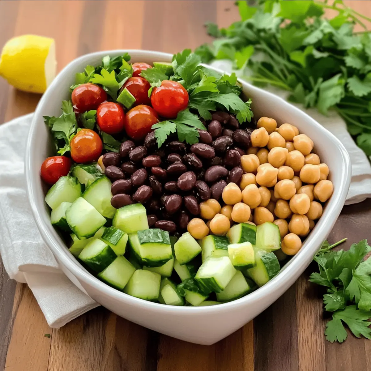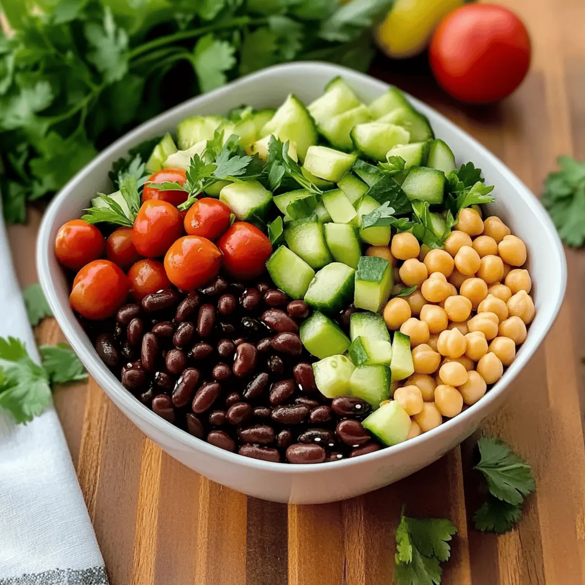 You won’t believe how quickly this Healthy Bean Salad comes together! With its vibrant mix of black beans, chickpeas, and cherry tomatoes tossed in a zesty dressing, it transforms mealtime into a colorful celebration on your plate. This recipe isn’t just a feast for the eyes; it’s plant-based, high in protein, and fiber-rich—perfect for a busy weeknight dinner or as a crowd-pleasing side at your next gathering. Plus, it’s easily adaptable, inviting you to swap in your favorite beans or seasonal veggies for a personalized touch. Ready to dig into this protein-packed delight? Let’s get cooking! Why Try This Healthy Bean Salad? Vibrant flavors: This salad bursts with a colorful mix of beans and fresh vegetables that invigorate your taste buds. Quick to prepare: With only 15 minutes of prep time, you can whip up a nutritious meal perfect for busy weekdays. Nutritious goodness: Packed with protein and fiber, it’s ideal for health-conscious eaters looking to fuel their day. Complete versatility: Feel free to swap in your favorite beans or seasonal veggies for endless variations that keep things exciting. Crowd favorite: Whether served as a main dish or a side, this salad is sure to impress guests, just as it does alongside dishes like Hamburger Green Bean or Crustless Broccoli Quiche. Healthy Bean Salad Ingredients • Discover how easy it is to create a delicious and nutritious Healthy Bean Salad with these simple ingredients. For the Beans • Black Beans – Provides a hearty base and is packed with protein; use canned beans rinsed to reduce sodium. • Chickpeas – Adds creaminess and fiber; can substitute with white beans for a different taste. • Kidney Beans – Contributes depth and protein; swap with other beans, though kidney beans are recommended for their robust flavor. For the Vegetables • Cherry Tomatoes – Offers sweet acidity; you can replace them with diced bell pepper for extra crunch. • Cucumber – Adds a refreshing crispness; zucchini or celery are great lighter alternatives. • Red Onion – Provides sharpness and vibrant color; green onions make for a milder option. • Fresh Parsley – Essential for brightness; consider cilantro for a more pungent herbaceous flavor. For the Dressing • Extra Virgin Olive Oil – Acts as a base with healthy fats; avocado oil works as a tasty alternative. • Fresh Lemon Juice – Adds tanginess that balances flavors; lime juice is a fantastic substitute. • Apple Cider Vinegar/Red Wine Vinegar – Enhances the dressing’s acidity; any mild vinegar can work too. • Honey or Maple Syrup – Optional for added sweetness; agave syrup is a great alternative, or omit for a sugar-free version. • Salt & Pepper – Essential for flavor enhancement; opt for sea salt or fresh cracked pepper for best results. This Healthy Bean Salad is a delightful mix of colors and tastes that will brighten up your table! Enjoy tailoring it to your personal preferences! Step‑by‑Step Instructions for Healthy Bean Salad Step 1: Prepare the Base In a large mixing bowl, gather 1 can each of rinsed black beans, chickpeas, and kidney beans. Add diced cherry tomatoes, chopped cucumber, finely sliced red onion, and freshly minced parsley. Use a spatula to gently mix these ingredients until everything is well combined, creating a vibrant foundation for your healthy bean salad. Step 2: Whisk the Dressing In a separate small bowl or jar, whisk together 1/4 cup of extra virgin olive oil, the juice of one lemon, 2 tablespoons of vinegar, and 1-2 teaspoons of honey (if desired). Use a fork or a lid to shake until the mixture is smooth and emulsified. This zesty dressing will amplify the flavors of the Healthy Bean Salad. Step 3: Combine and Toss Pour the freshly whisked dressing over the bean mixture in the large bowl. Using a large spoon, gently toss everything together until the beans and veggies are evenly coated with the dressing. Look for a glistening sheen on the salad—this means your ingredients are perfectly dressed and ready to impress. Step 4: Taste and Adjust Seasoning Take a moment to taste your Healthy Bean Salad and assess the flavors. If you desire more acidity, add an extra squeeze of lemon juice or a sprinkle of salt and pepper to elevate the taste. Adjust to your preferences; this is your chance to make it just right. Step 5: Chill and Serve For optimal flavor melding, let your salad chill in the fridge for about 30 minutes before serving. This resting time allows the ingredients to absorb the dressing fully. When ready to serve, give it a quick toss, and present it in a beautiful serving bowl—it’s time to enjoy your delicious, nutritious creation! Expert Tips for Healthy Bean Salad Rinse Beans Thoroughly: Always rinse canned beans before adding to your salad. This reduces sodium content and enhances flavor. Dress Right Before Serving: To maintain the crunchiness of your vegetables, keep the dressing separate until just before serving your Healthy Bean Salad. Taste as You Go: Don’t hesitate to sample your salad. Adjust the acidity with lemon juice or the seasoning with salt and pepper to suit your palate. Experiment With Variations: Feel free to swap out beans or add in seasonal veggies, keeping the essence of a Healthy Bean Salad while adding personal flair. Chill for Flavor: Letting your salad rest for 30 minutes in the refrigerator allows the flavors to meld beautifully, enhancing your dining experience. Start Small with Beans: If you’re new to beans, start with smaller portions to avoid any digestive discomfort. Enjoy the nutritious benefits gradually! How to Store and Freeze Healthy Bean Salad Fridge: Store your Healthy Bean Salad in an airtight container in the refrigerator for up to 3 days. Keeping the dressing separate until serving helps maintain the crispness of the vegetables. Freezer: If you need to freeze the salad, it’s best to omit the dressing and only freeze the bean and vegetable mix in a freezer-sa