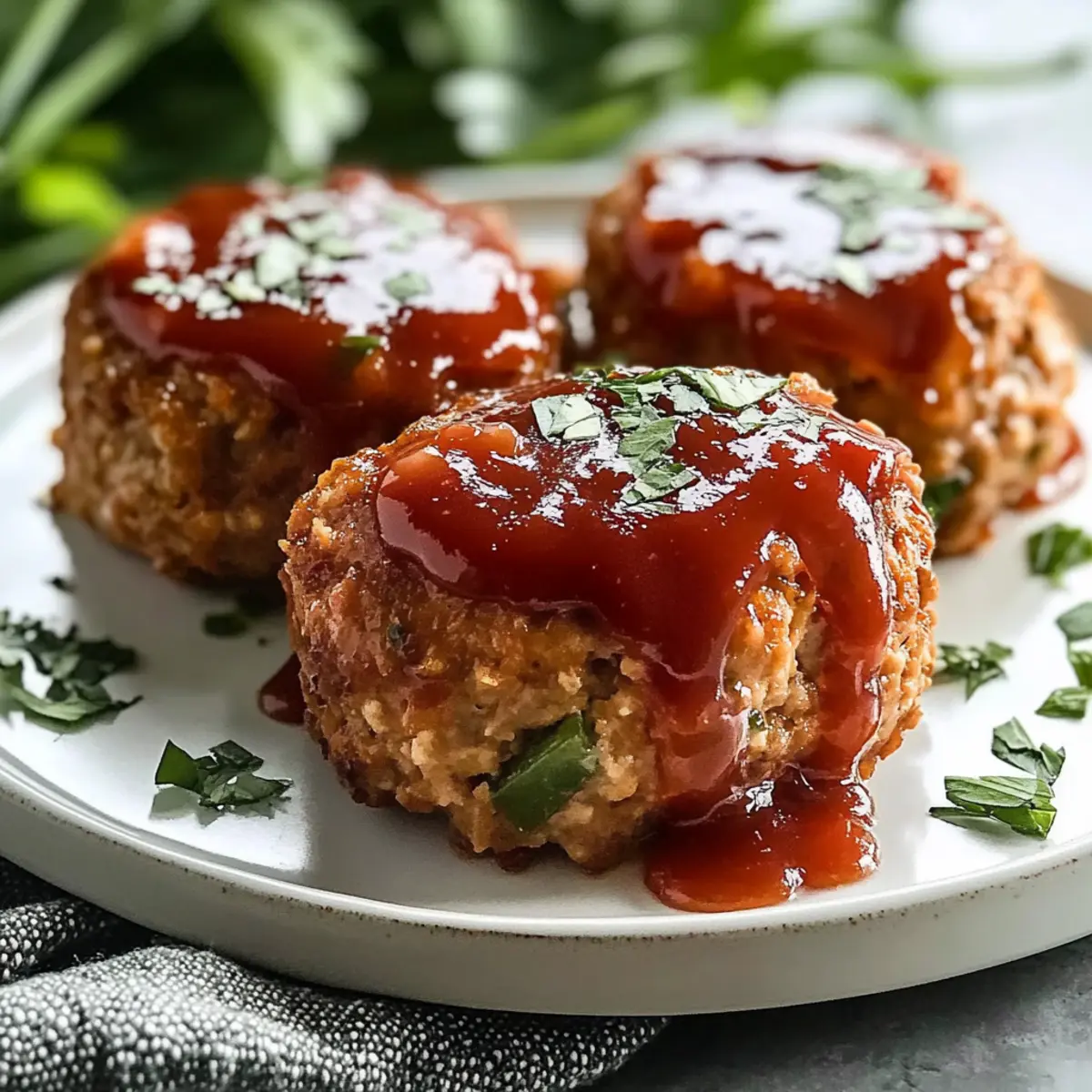 “Why can’t dinner be exciting?” I overheard a friend sigh during our recent catch-up, which got me thinking about the same old meals we often fall back on. That’s where my Healthy Mini Turkey Meatloaf comes in—a quick and scrumptious solution that stays true to health-conscious cooking without sacrificing taste! In under 30 minutes, you’ll prep and bake these delightful mini loaves, perfect for busy weeknights. Packed with lean turkey and colorful veggies, they cater to even the pickiest eaters, appealing to both adults and kids alike. Plus, they’re easily customizable with options for gluten-free or egg-free diets! Ready to make dinnertime a little more exciting with these tender bites? Let’s dive in! Why is this meatloaf a family favorite? Quick Preparation: In just 30 minutes, you’ll have a delicious meal ready to serve, making it ideal for those busy weeknights. Healthy Ingredients: Packed with lean ground turkey and colorful veggies, this dish ensures you’re putting wholesome food on the table. Kid-Approved: With a sweet and tangy glaze, these mini meatloaves will satisfy even the fussiest eaters in your home. Customizable Flavors: Mix in your favorite ingredients—whether it’s cheese or spicy jalapeños, the options are endless! Leftover Champion: These mini meatloaves taste just as good reheated, making them perfect for meal prep or lunch boxes. Looking for more family-friendly ideas? Try serving these with Turkey Cranberry Pinwheels for a fun twist! Healthy Mini Turkey Meatloaf Ingredients • For the Meatloaf: Olive Oil – Adds moisture and enhances flavor; substitute with avocado oil for a different taste. Green Bell Pepper – Provides crunch and sweetness; red bell pepper can be used for a sweeter touch. Onion – Adds depth of flavor; shallots can be a milder alternative. Ground Turkey (93/7) – A lean protein source for keeping it healthy; substitute with ground chicken or lean beef if desired. Egg – Binds ingredients together; for an egg-free option, use flaxseed meal mixed with water. Breadcrumbs – Provides structure and texture; opt for gluten-free breadcrumbs to cater to dietary needs. Ketchup – Adds sweetness and moisture; BBQ sauce can replace it for a fun flavor twist. Dijon Mustard – Contributes tanginess; yellow mustard is a good substitute if you prefer a milder taste. Worcestershire Sauce – Adds umami flavor; soy sauce can work in a pinch. Garlic Powder – Enhances overall taste; use fresh garlic for a stronger flavor kick. Italian Seasoning – Infuses savory herb notes; substitute with a blend of oregano and basil if unavailable. Kosher Salt & Black Pepper – Essential for seasoning; adjust to your personal taste. • For the Glaze: Ketchup – Adds a sweet and tangy topping; mixing in chili sauce can add an exciting kick. Chili Sauce – Provides a zing; omit for a milder glaze if preferred. Maple Syrup – Adds natural sweetness; honey can be used instead for a subtle twist. These Healthy Mini Turkey Meatloaf ingredients come together to create a mouthwatering dish that’s not just quick but also appealing to the entire family! Step‑by‑Step Instructions for Healthy Mini Turkey Meatloaf Step 1: Preheat the Oven Begin by preheating your oven to 400°F (200°C). Line a baking sheet with parchment paper to prevent sticking and ensure easy cleanup later. While the oven warms up, set everything you need on the counter, so you’re ready to create your Healthy Mini Turkey Meatloaf. Step 2: Sauté the Vegetables In a skillet over medium heat, add a splash of olive oil. Sauté the diced green bell pepper and onion for about 3-4 minutes, or until they soften and become fragrant. Look for the vegetables to take on a slightly translucent appearance. Once done, remove from heat and let them cool, as you don’t want to cook the turkey mixture with hot veggies. Step 3: Prepare the Turkey Mixture In a large mixing bowl, combine the ground turkey, egg, breadcrumbs, ketchup, remaining olive oil, Dijon mustard, Worcestershire sauce, garlic powder, Italian seasoning, kosher salt, and black pepper. Stir gently with a spatula until all ingredients meld together, being careful not to overmix. Once incorporated, add the cooled sautéed vegetables, and mix just until blended. Step 4: Form the Mini Loaves With clean hands, take portions of the turkey mixture and form them into 4-5 mini loaves, approximately ½ cup each. Place each mini loaf on the prepared baking sheet, ensuring they have space between them for even cooking. Use your fingertips to shape them smoothly, and feel free to adjust sizes based on your preference. Step 5: Create the Glaze In a small bowl, whisk together ketchup, chili sauce, maple syrup, Worcestershire sauce, kosher salt, and black pepper to make the glaze. The mixture should be vibrant and smooth. Brush this sweet and tangy glaze generously over each mini turkey meatloaf, allowing it to soak into the meat as it cooks. Step 6: Bake the Meatloaf Slide the baking sheet into your preheated oven and bake for 20-25 minutes. Keep an eye on them; the mini turkey meatloaves should reach a golden brown color, and a meat thermometer should read 165°F (74°C) at the center. This ensures your Healthy Mini Turkey Meatloaf is cooked through and juicy. Step 7: Rest and Serve Once baked, remove the mini meatloaves from the oven and let them rest for about 5 minutes. This resting period helps the juices redistribute throughout the meatloaf. After resting, plate them up and serve with your favorite sides for a comforting, healthy dinner! Expert Tips for Healthy Mini Turkey Meatloaf • Avoid Overmixing: Mixing too much can lead to a dense meatloaf; keep it gentle for a light, tender texture. • Enhance Moisture: Incorporate grated vegetables or soaked breadcrumbs to improve moisture content and flavor depth in your Healthy Mini Turkey Meatloaf. • Check Doneness: Use a meat thermometer to ensure the internal temperature reaches 165