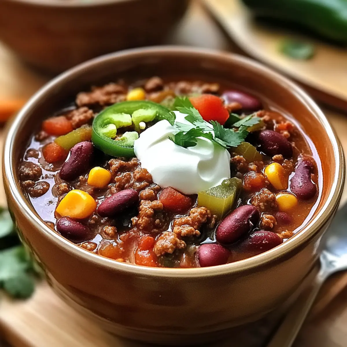 As the wind howls outside, I’m reminded that comfort food is just a slow cooker away. Today, I’m excited to share my Hearty Crockpot Chili—a dish that not only warms up chilly evenings but also fills your home with the inviting aroma of savory spices. With a blend of tender ground beef and Italian sausage, this chili is both versatile and quick to prepare, making it perfect for busy weeknights or cozy gatherings. Best of all, it accommodates various tastes, offering gluten-free options and a delicious meatless version for those who prefer a plant-based meal. Ready to dive into a bowl of warmth and flavor? Let’s get cooking! Why is This Chili So Special? Satisfying Comfort: This hearty recipe warms the soul and fills the stomach, making it perfect for chilly evenings or family gatherings. Culinary Flexibility: Easily adapt it to meet your dietary needs with gluten-free options and a delicious meatless version that even meat-lovers will adore. Quick Prep: With a simple assembly and slow cooker convenience, you can set it and forget it—perfect for busy lifestyles! Flavor Explosion: A blend of spices and savory ingredients creates a rich depth of flavor that brings everyone to the table, enhancing gatherings just like my Cheesy Hamburger Casserole. Crowd-Pleasing Appeal: Whether it’s game day or a cozy family dinner, this chili is bound to impress, garnished with your favorite toppings! Hearty Crockpot Chili Ingredients For the Base • Bacon – Adds richness and savory flavor; substitute with turkey bacon for a lighter version. • Ground Beef – Provides protein and heartiness; use 80/20 blend or ground turkey for a leaner option. • Italian Sausage – Contributes spiciness and depth; can be omitted for a meatless version or swapped with vegetarian sausage. • Tomato Paste – Thickens the chili; can be replaced with crushed tomatoes if desired. For the Vegetables • Red Bell Pepper – Offers sweetness and color; yellow or orange bell pepper are great substitutes. • Green Bell Pepper – Adds crunch and flavor; any similar bell pepper varieties work well. • Celery – Adds texture and depth; feel free to omit for a low-carb choice. • Yellow Onion – Enhances the flavor base and adds sweetness; substitute with shallots if you prefer. • Jalapeño – Provides heat and zest; optional or swap for extra bell pepper for a milder taste. • Garlic – Infuses aromatic depth; use fresh or powdered garlic based on availability. For the Beans and Tomatoes • Chili Beans – A key ingredient for richness; use pinto beans in chili sauce (3×16 oz cans). • Diced Tomatoes – Adds acidity and texture; use 2×28 oz cans or fresh diced tomatoes for a fresher taste. For the Spices • Chili Powder – The core seasoning for heat; adjust according to your preferred spice level. • Dried Oregano – Contributes earthy notes; can substitute with mixed Italian herbs. • Cumin – Adds warm, earthy flavor; coriander can serve as an alternative. • Dried Basil – Enhances aroma; fresh basil can be substituted for a lively finish. • Seasoned Salt – Intensifies flavors; regular salt combined with garlic powder works if you’re out. • Pepper – Adds heat; adjust to taste, especially if adding cayenne. • Cayenne Pepper – Optional; customize according to desired spice level. • Paprika – Provides a subtle smoky flavor; consider smoked paprika if you want more intensity. • Granulated Sugar – Balances the acidity of the tomatoes; honey or agave work as alternatives. • Worcestershire Sauce – Adds deep flavor; use gluten-free soy sauce for a gluten-free version. • Beef Bouillon Cubes – Enhances flavor; can be replaced with homemade broth if preferred. Get ready to transform your cooking experience with this Hearty Crockpot Chili—it’s sure to become a favorite in your household! Step‑by‑Step Instructions for Hearty Crockpot Chili Step 1: Cook Bacon In a large skillet, cook chopped bacon over medium heat for about 8–10 minutes, or until crispy and golden brown. Watch for the fat to render and listen for that delightful sizzle. Once cooked, transfer the bacon to a paper towel-lined plate to drain, allowing it to absorb excess grease while reserving the flavorful drippings in the skillet. Step 2: Sauté Vegetables Using the same skillet with the bacon drippings, sauté finely diced red and green bell peppers, celery, yellow onion, and minced garlic over medium heat for 5–8 minutes. Stir occasionally until the vegetables soften and become fragrant, creating a colorful, aromatic base for your Hearty Crockpot Chili. The vibrant hues will brighten up your kitchen! Step 3: Add Spices Stir in the chili powder, dried oregano, cumin, and dried basil into the sautéed vegetables and cook for an additional 1–3 minutes. This step enhances the aroma, allowing the spices to bloom and release incredible flavors. Watch for the sizzling to intensify, signaling a fragrant blend ready to kick up the chili’s taste profile. Step 4: Transfer to Slow Cooker Carefully move the seasoned vegetable mixture into your slow cooker. Scrape every bit from the skillet to ensure no delicious components are left behind—every morsel counts in your Hearty Crockpot Chili! Spread it evenly across the bottom of the slow cooker. Step 5: Add Beans and Tomatoes Into the slow cooker, add in the chili beans, diced tomatoes, granulated sugar, Worcestershire sauce, and crumbled bouillon cubes. Mix everything thoroughly to ensure all ingredients are well combined and coated in that flavorful spice base. The colors will be vivid and inviting, embodying the warmth of comfort food. Step 6: Brown Meat In the same skillet, brown ground beef and Italian sausage over medium-high heat for about 6–8 minutes, breaking up any clumps. Once the meat is browned and cooked through, drain any excess fat and add it to the slow cooker along with the reserved crispy bacon. This hearty combination will deepen 