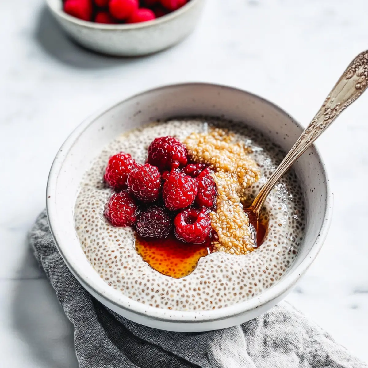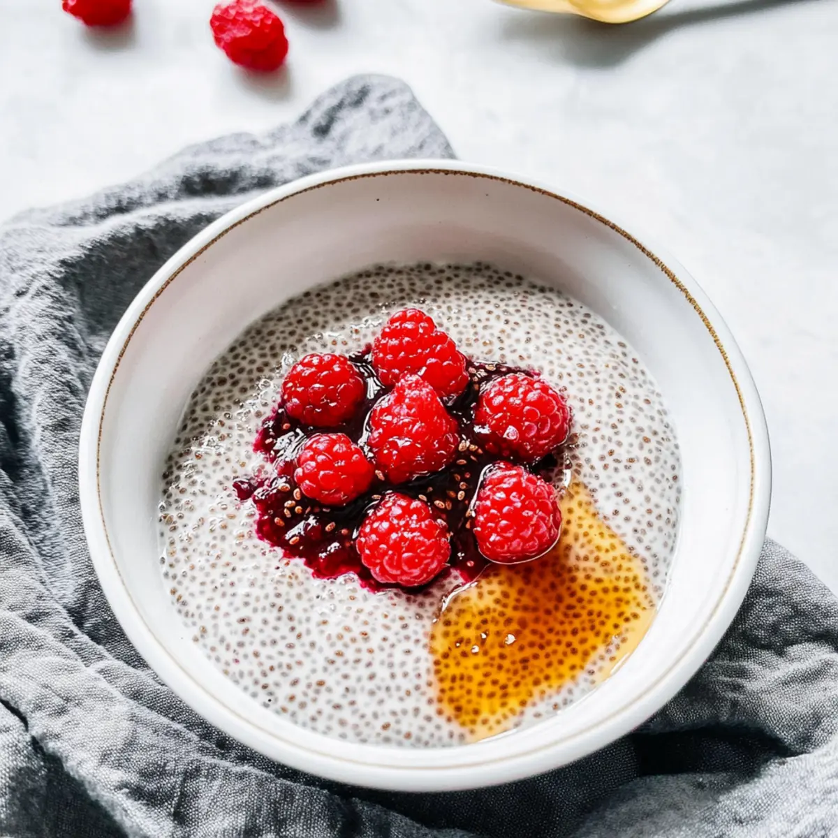 There’s nothing quite like that first warm bite of breakfast on a chilly morning, and my Warm Hemp Chia Seed Pudding is here to cozy up your early hours! With just five simple ingredients, this comforting grain-free dish bursts with nutrition and flavor, making it an ideal choice for anyone tired of the usual fast-food options. Packed with healthy omega-3s and plant-based goodness, a bowl of this pudding not only fuels your day but also keeps it gluten-free and deliciously satisfying. Plus, it’s quick to prepare—perfect for busy mornings when you still crave that homemade touch. Ready to elevate your breakfast game? Let’s dive into how to whip up this delightful treat together! Why is this pudding a breakfast favorite? Creamy Comfort: The Warm Hemp Chia Seed Pudding delivers a rich, velvety texture that feels indulgent, yet is guilt-free. Nutrient-Packed: With healthy omega-3s and plenty of fiber, it’s a nourishing start to your day. Quick and Easy: This recipe comes together in just a few minutes, making it perfect for busy mornings. Versatile Toppings: Customize with your favorite nut butter, fruit, or spices for endless flavor combinations. Grain-Free Goodness: Say goodbye to traditional cereals and enjoy this wholesome alternative that aligns with your dietary goals! Hemp Chia Seed Pudding Ingredients For the Base • Non-Dairy Milk – This provides a creamy base for the pudding; coconut milk gives a rich texture, but almond or oat milk works too! • Chia Seeds – The main thickening agent packed with fiber and omega-3s; essential for a satisfying start to your day. • Hemp Hearts – Adds a nutty flavor and a boost of healthy fats and protein; a fantastic source of calcium and iron. For Flavor • Vanilla Extract – Enhances the overall flavor without added sugars; opt for pure extract for the best results. • Pure Maple Syrup – A natural sweetener that brings subtle sweetness; can be adjusted or omitted for lower sugar intake. Step‑by‑Step Instructions for Warm Hemp Chia Seed Pudding Step 1: Heat the Milk In a medium saucepan, pour in 1 cup of your favorite non-dairy milk, such as coconut milk, and heat it over medium heat. Stir occasionally, bringing the milk to a gentle simmer, which should take about 3-5 minutes. Look for small bubbles forming around the edges to indicate that it’s ready for the next step. Step 2: Combine the Seeds Once the milk reaches a simmer, add 2 tablespoons each of chia seeds and hemp hearts into the saucepan. Stir vigorously to combine all the ingredients thoroughly, ensuring there are no clumps of chia seeds. The mixture will start to thicken slightly as the chia seeds absorb the liquid. Step 3: Simmer to Thicken Lower the heat to a gentle simmer and continue to cook the mixture for about 5 minutes. Stir frequently to prevent the pudding from sticking to the bottom of the pan and to promote even thickening. You’ll notice the pudding becoming creamier and achieving a lovely gel-like texture during this time. Step 4: Let It Sit Remove the saucepan from the heat after 5 minutes and let the pudding sit for an additional 3-5 minutes. This resting period will allow the chia seeds to swell even more, thickening the Warm Hemp Chia Seed Pudding to the desired consistency. Keep an eye on it—if it looks too thick, you can stir in a splash of non-dairy milk. Step 5: Sweeten to Taste After letting it rest, taste your pudding and decide if it needs a bit of sweetness. If desired, stir in 1-2 teaspoons of pure maple syrup for a touch of natural sweetness. Mix well until the syrup is fully incorporated, enhancing the flavor of the hemp chia seed pudding without overpowering it. Step 6: Serve and Enjoy Finally, serve your Warm Hemp Chia Seed Pudding in bowls. Top with your favorite nut butter, fresh fruits, or a sprinkle of cinnamon for extra flavor. The pudding is best enjoyed warm, offering you a comforting start that’s both nutritious and satisfying. Hemp Chia Seed Pudding Variations Feel free to get creative with your Hemp Chia Seed Pudding to suit your tastes and dietary needs! Almond Milk: Swap coconut milk for almond or oat milk for a lighter flavor. This change adds a subtler, nutty backdrop to the pudding. Sweetener Swap: Try agave syrup or honey instead of maple syrup for a different sweetness alternative. Each sweetener has its own unique flavor profile that can enhance your pudding. Flavor Boost: Mix in cocoa powder or matcha for a flavorful twist that not only alters the taste but also adds a fun color presentation! Just a spoonful can elevate your breakfast experience. Fruit-Filled: Top your pudding with a medley of fresh fruit, such as strawberries or mangoes, for added sweetness and texture. The juicy burst of fruit complements the creamy base beautifully. Nutty Crunch: Sprinkle chopped nuts on top, like almonds or walnuts, for a delightful crunch. This simple addition brings more complexity and heartiness to your spoonfuls. Protein Punch: Incorporate a scoop of your favorite protein powder into the mix. This addition enhances the nutritional value while supporting your energy levels throughout the morning. Spicy Touch: A dash of cinnamon or nutmeg can warm up the flavor profile, creating a cozy and aromatic breakfast experience. These spices pair well with the nutty flavors of hemp seeds. Warm and Cozy: For those cooler days, gently reheat your pudding before serving and add a splash of non-dairy milk if necessary. Nothing beats a warm meal straight from the stove! With these variations, you’ll never get bored of your Hemp Chia Seed Pudding. Explore the flavors, and make it truly yours! If you’re looking for more delicious ideas, check out my post on Healthy Breakfast Alternatives to continue your culinary adventure. How to Store and Freeze Hemp Chia Seed Pudding Fridge: Store your Hemp Chia Seed Pudding in an airtight container for up to 3 days. Make sure to let it cool down completely before sealing. Freezer: For long