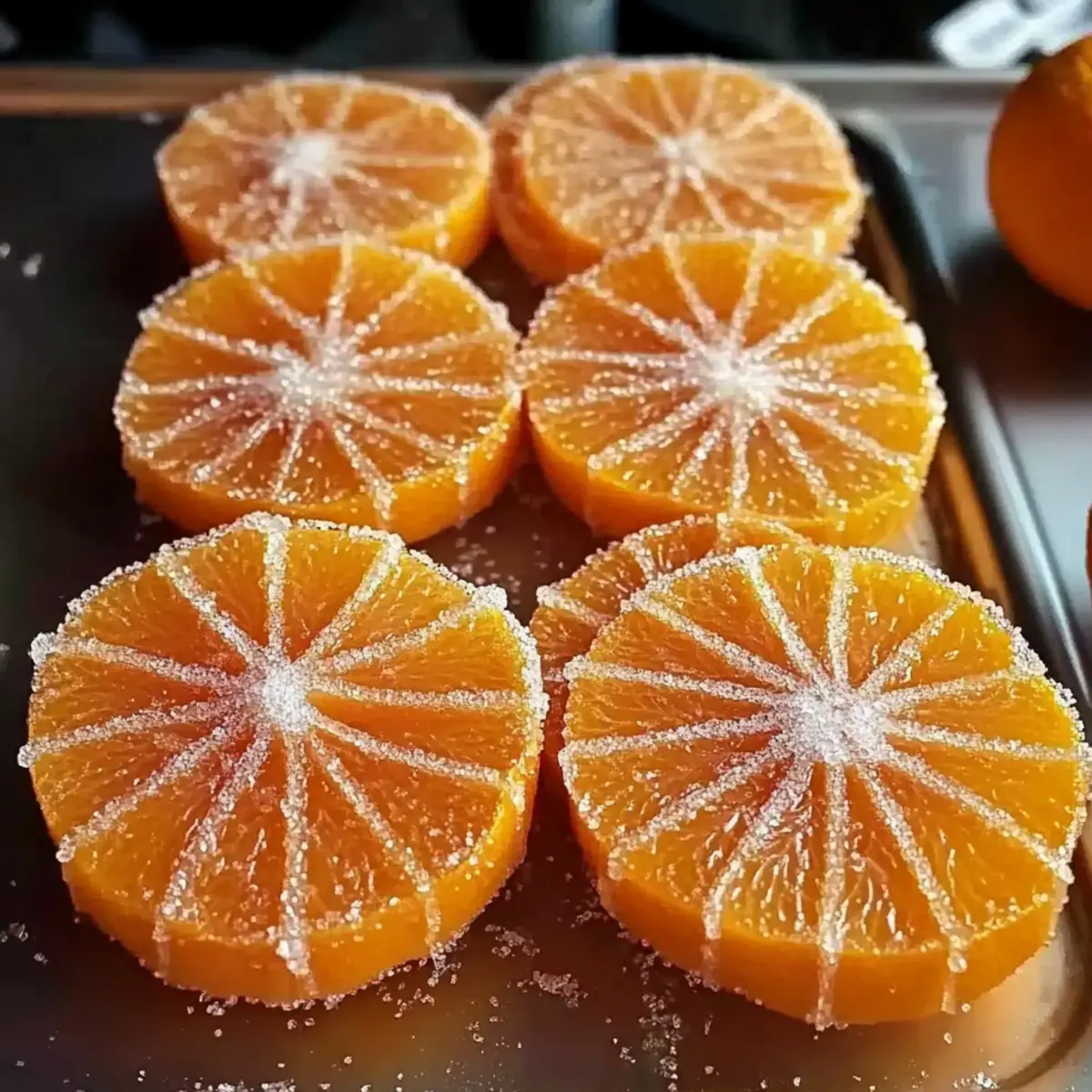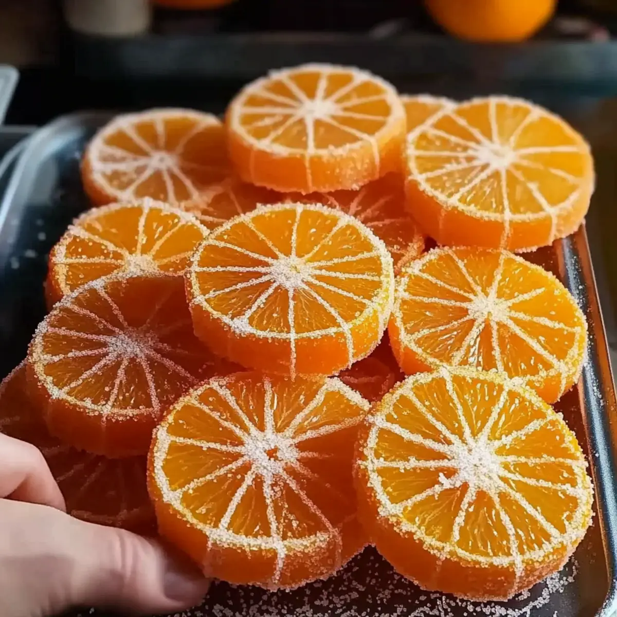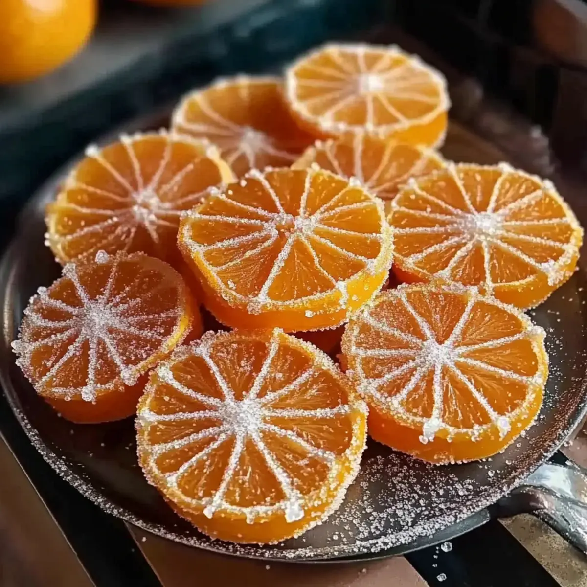 Stepping into my kitchen during citrus season feels like entering a sun-drenched orchard. The zestful aroma of fresh oranges mingles with the promise of something sweet. Today, I’m thrilled to share my Homemade Orange Candy Recipe, an elegant treat that brings together the sweet and tangy flavors of oranges into delightful candied slices. This recipe is not just about indulging in a sugary snack; it’s a fun and straightforward activity that even kitchen novices can master. Crafted from just three simple ingredients—fresh oranges, sugar, and water—these slices are vegan, gluten-free, and perfect for make-ahead treats. Whether you’re snacking on them solo or using them to elevate your desserts and cocktails, these candied beauties are sure to impress! Curious about how to add your own twist, like a chocolate dip or a frosted finish? Let’s dive in! Why Make Homemade Orange Candy? Simple and Fun: Making your own orange candy is an enjoyable kitchen project that’s perfect for all skill levels. Only Three Ingredients: With just oranges, sugar, and water, this recipe is both straightforward and budget-friendly. Versatile Treat: These delightful slices can be enjoyed as a sweet snack or used as stunning garnishes for desserts or cocktails. Customizable Options: Feel free to experiment with variations—try chocolate dipping or rolling in sugar to suit your taste preferences! Ideal for Sharing: Homemade treats are always a hit at gatherings; these candied slices will impress friends and family alike. Looking for more sweet creations? Check out this delicious Banana Bread Chocolate or the easy-to-make Homemade Fried Rice for more delightful recipes! Homemade Orange Candy Ingredients • Curious about what goes into this Homemade Orange Candy Recipe? Here’s what you’ll need! For the Orange Candy Fresh Oranges – The star of our candy; choose juicy, brightly colored oranges for the sweetest flavor. Granulated Sugar – Provides sweetness and helps preserve the slices; it’s essential for achieving that perfect candy texture. Water – Necessary for dissolving sugar to create the syrup that simmers our orange slices. Optional Finishes Granulated Sugar (for coating) – Adds a frosted appearance and extra sweetness to your candy. Dark or Milk Chocolate (for dipping) – Elevates the flavor with a rich contrast to the tangy orange; choose dairy-free options for a vegan treat. These simple ingredients come together to create a delightful treat that can brighten your day or impress your guests! Step‑by‑Step Instructions for Homemade Orange Candy Recipe Step 1: Prepare Oranges Start by washing 3 small oranges thoroughly to remove any wax. Using a sharp knife or a mandoline, slice the oranges into thin ¼-inch rounds, ensuring uniformity for even candying. Lay the slices out on a clean surface, and marvel at their vibrant colors; this is the first step in creating your delightful homemade orange candy. Step 2: Make Syrup In a large skillet or saucepan, combine 3 cups of granulated sugar with 3 cups of water. Heat the mixture over medium-high heat, stirring consistently until the sugar fully dissolves and the syrup begins to boil. You’ll know it’s ready when the liquid is clear and shimmering—this sweet syrup will be the heart of your homemade orange candy recipe. Step 3: Simmer Oranges Once the syrup is boiling, reduce the heat to maintain a gentle simmer. Carefully add the orange slices in a single layer, making sure not to overcrowd the pan. Let them simmer for 45–60 minutes, turning occasionally. You’ll know they’re done when the peels become translucent and soft—this transformation creates the perfect texture for your candy. Step 4: Dry Slices Using tongs, gently remove the candied orange slices from the syrup and transfer them to a wire rack. Allow them to dry uncovered for 24–48 hours until they become tacky but firm. This drying process is crucial for achieving the delightful chewy consistency in your homemade orange candy, giving it that signature candy texture. Step 5: Optional Finishes Once your candied slices are fully dried, you can enhance their appearance and flavor. For a frosted finish, roll the dried slices in granulated sugar. Alternatively, melt dark or milk chocolate and dip your orange slices for a decadent treat. These variations not only elevate the aesthetic but also add a delicious twist to your homemade orange candy. Homemade Orange Candy Variations Feel free to explore these delicious twists on your homemade orange candy, making it truly your own! Citrus Swap: Use lemons, limes, or blood oranges instead of regular oranges for a unique flavor profile. Each fruit brings its own delightful zest and personality to the candy. Miniature Wonders: Cut smaller citrus fruits, like clementines or mandarins, for bite-sized treats that are perfect for popping in your mouth. Flaky Salt Finish: After dipping in chocolate, sprinkle a touch of flaky sea salt for an exciting sweet-salty kick. The contrast amplifies the sweetness and makes each bite memorable. Herb-Infused: Add a few sprigs of rosemary or mint to the syrup for an aromatic twist that pairs beautifully with the citrus sweetness. Infusion adds an unexpected depth to the flavors! Spicy Heat: For a little kick, incorporate a pinch of cayenne paprika into the sugar mixture. The subtle heat will surprise and delight your taste buds. Chocolate Variations: Experiment with white, dark, or even ruby chocolate for dipping. Each chocolate offers a different flavor experience, perfect for catering to various preferences! Flavorful Dips: Coat your slices not only in chocolate but also in a mix of crushed nuts or coconut flakes for extra crunch and a luscious finish. The texture variation is divine! Garnish Addition: Use your candied orange slices to top cocktails, cheesecakes, or layer cakes. They also pair wonderfully with a rich chocolate dessert like my Banana Bread Chocolate! These variations invite cre
