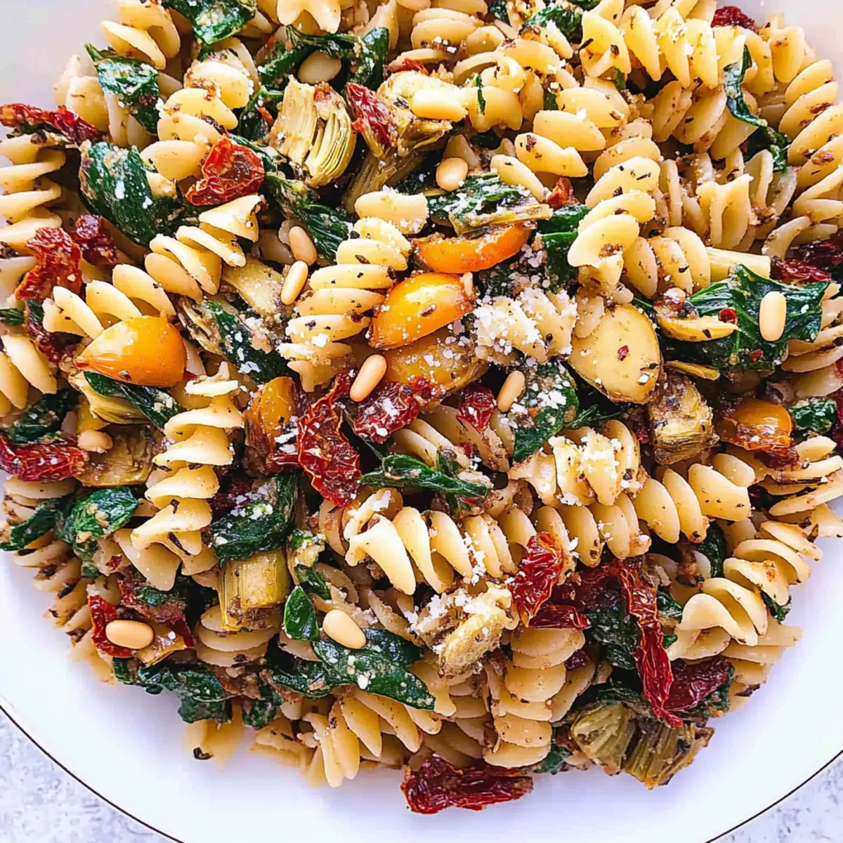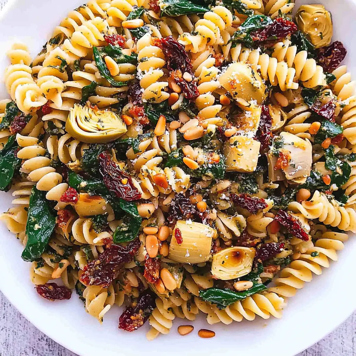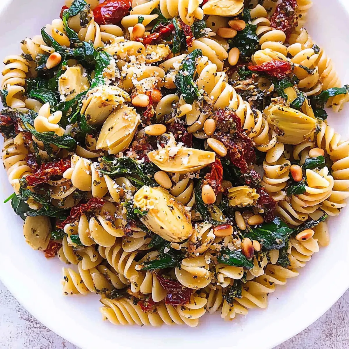 As I savored the vibrant colors of my veggie garden, a delicious idea sprang to mind: a delightful Italian Fusilli Vegetarian Pasta that would elevate my weeknight dinners. This scrumptious dish features the delightful combination of fresh spinach, tender artichokes, and tangy sun-dried tomatoes, all tossed together in just 30 minutes! Not only is this recipe perfect for those craving a quick, meatless meal, but it also serves as a wonderful crowd-pleaser for family and friends. With its appealing spiral pasta and crunchy pine nuts, each bite delivers a satisfying crunch and a burst of Mediterranean flavors. Ready to share a plateful of happiness? Let’s dive into this easy pasta recipe that will surely become your go-to for any occasion!