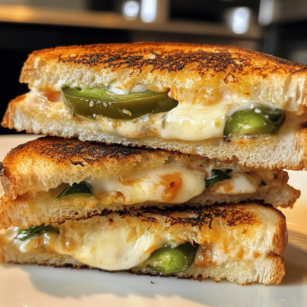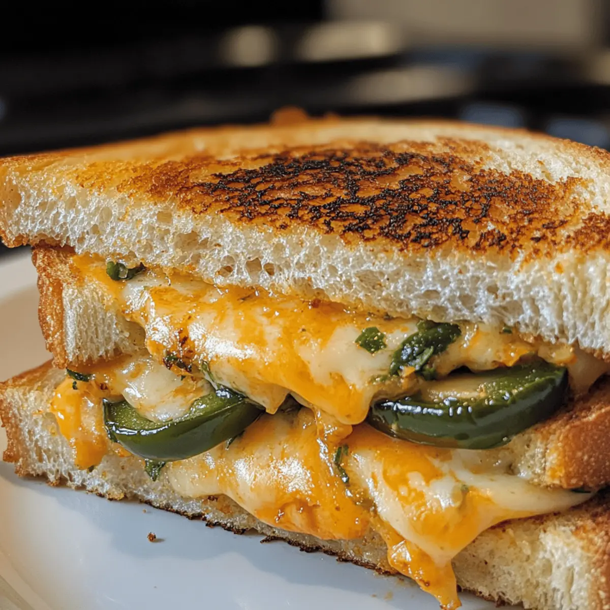As I stood in my kitchen, the aroma of sizzling bacon mingling with the rich scent of melting cheese transported me to the heart of comfort food bliss. This Spicy Jalapeño Popper Grilled Cheese is a delightful twist on a classic that will awaken your taste buds and satisfy that cheesy craving. With creamy jalapeño poppers nestled between toasted bread and a mix of gooey cheeses, this sandwich boasts both irresistible crunch and a spicy kick. The best part? It’s incredibly adaptable—tailor the heat to suit your palate and whip it up in no time. Whether you’re enjoying a cozy lunch at home or impressing friends at a weekend gathering, this recipe promises to be a crowd-pleaser. Are you ready to turn your ordinary grilled cheese into a fiery masterpiece? Why is this grilled cheese so special? Bold flavors are the star in this Spicy Jalapeño Popper Grilled Cheese, making it a standout among comfort foods. Customization is easy—adjust the heat by choosing mild or spicy jalapeños, or switch up the cheeses for a unique twist. Quick and satisfying, it comes together in less than 30 minutes! Plus, it’s a great way to impress guests or treat yourself to a comforting lunch. Enjoy it alongside a warm bowl of tomato soup, or get even more adventurous with this Grilled Cheese Burrito for a fun variation! Jalapeño Popper Grilled Cheese Ingredients Ready to dive into a satisfying, cheesy experience? Here’s everything you need to whip up this sensational dish! For the Sandwich Jalapeños – Provides spice and flavor; for a milder version, use mild jalapeños or bell peppers. Cream Cheese – Adds creaminess and richness; substitute with goat cheese for a tangy twist. Thick White Bread – Acts as the base, providing structure; whole wheat or sourdough can add a unique flavor. Cheddar Cheese – Offers sharpness and meltability; swap with Gouda for a smokier flavor. Monterey Jack Cheese – Contributes to the creaminess; consider using pepper jack for an extra kick. Crispy Bacon – Adds a savory, smoky flavor; you can substitute with tempeh bacon for a vegetarian option. Butter – Ensures a golden, crispy exterior; use olive oil for a dairy-free version. For Garnish (Optional) Chopped Cilantro – Provides freshness and enhances flavor; feel free to omit if it’s not your favorite. Now you’re all set to create this Jalapeño Popper Grilled Cheese delight that’s sure to tantalize your taste buds! Step‑by‑Step Instructions for Jalapeño Popper Grilled Cheese Step 1: Prepare the Jalapeños Preheat your oven to 375°F (190°C) while you prepare the jalapeños. Wearing gloves, carefully slice each jalapeño in half and remove the seeds and membranes for a less spicy bite. Fill the hollowed halves with cream cheese, ensuring they are generously packed. Place them on a baking sheet and bake for 25–30 minutes until they are soft, bubbly, and slightly golden. Step 2: Assemble the Sandwiches Once the jalapeños are ready, let them cool slightly before chopping them into small pieces. Take two slices of thick white bread and layer cheddar cheese on one side and Monterey Jack on the other. Distribute the chopped jalapeños evenly over the cheddar layer, followed by crispy bacon strips on the Monterey Jack side. Optionally, sprinkle chopped cilantro over the filling before closing the sandwiches. Step 3: Grill the Sandwiches Heat a skillet over medium-low heat and butter the outer sides of each sandwich for that golden, crispy finish. Carefully place each sandwich in the skillet, cooking them for about 3-4 minutes on each side. Press down gently with a spatula to ensure even cooking and watch for a beautifully toasted exterior and melty cheese inside. Step 4: Serve and Enjoy Once both sides are golden brown and the cheese is deliciously gooey, remove the Jalapeño Popper Grilled Cheese from the skillet and let them rest for a minute. Cut the sandwiches in half and serve them warm, perhaps with a side of tomato soup for dipping. The combination of spicy, cheesy goodness will surely delight your taste buds! Jalapeño Popper Grilled Cheese Variations Feel free to put your personal spin on this spicy delight and explore exciting variations that will elevate your grilled cheese experience! Cheese Swap: Experiment with different cheeses like Gouda for a smoky flavor or pepper jack for an extra kick. Cheese is your playground! Bread Choices: Try using whole wheat or sourdough for unique textures and flavors; brioche can add a rich, sweet note. Vegetarian Delight: Replace bacon with crispy tempeh bacon or simply omit it for a delightful vegetarian option without sacrificing flavor. Cream Cheese Twists: Substitute the cream cheese with goat cheese for a tangy twist or herb-infused cream cheese for added freshness. Heat Level Adjustments: Looking for less heat? Swap jalapeños for bell peppers or use mild jalapeños. You control the spice! Herb Infusion: Adding fresh herbs like basil or parsley can brighten up the flavor profile, bringing a fresh twist to this classic dish. Avocado Addition: Slice fresh avocado to add creaminess and a nutritional boost; it complements the spicy flavors splendidly. Dipping Sauce: Serve with a side of spicy mayo or ranch dipping sauce for an extra layer of flavor. It’s the perfect match! For a delightful twist on grilled cheese, don’t forget to check out the Grilled Shrimp Bowl for even more inspiring ideas! Whether you’re experimenting with flavors directly in your Jalapeño Popper Grilled Cheese or whipping up something entirely new like my favorite Grilled Cheese Burrito, endless possibilities await! Make Ahead Options These Jalapeño Popper Grilled Cheese sandwiches are perfect for busy weeknights and meal prep enthusiasts! You can prepare the jalapeños up to 24 hours in advance by baking them, allowing for advanced preparation. Once baked and cooled, store the jalapeños in an airtight container in the refrigerator. You can also assemble the sandwiches (