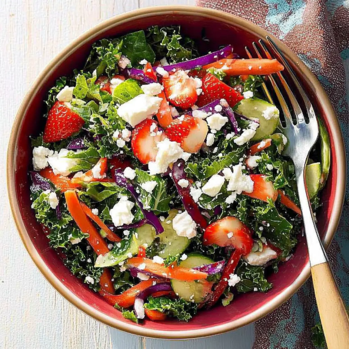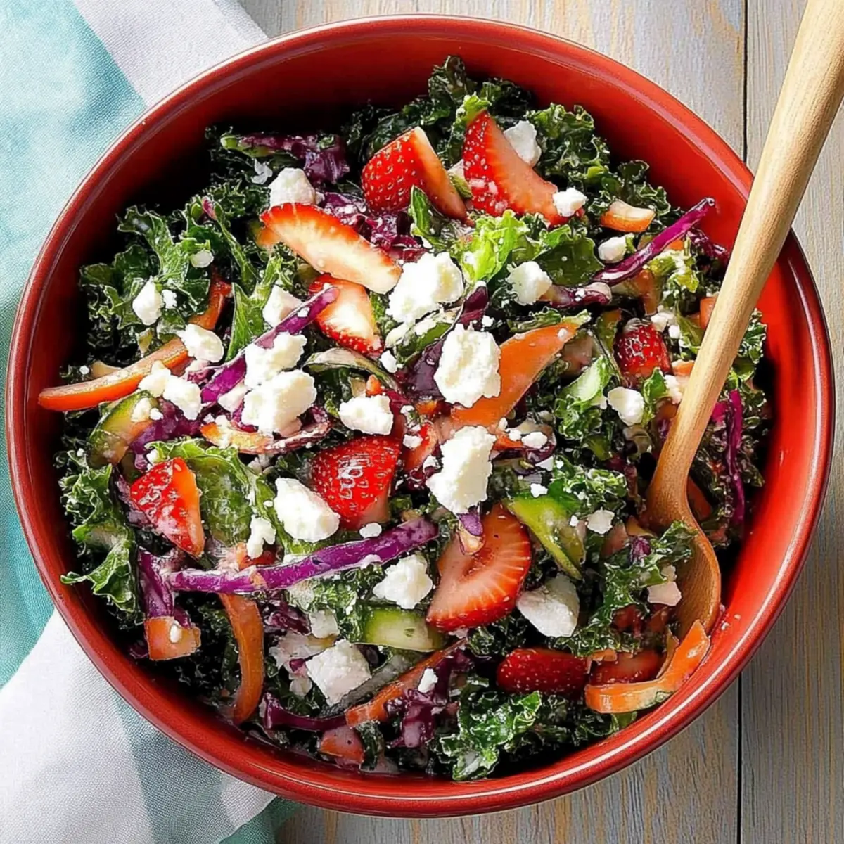 Spring has a delightful way of coaxing vibrant flavors and fresh ingredients from our gardens—or, in my case, the local farmer’s market. One of my favorite ways to celebrate this season is with a crisp Kale Slaw Spring Salad, bursting with lively textures and a hint of tangy sweetness from strawberries. Not only is this salad a cinch to prepare, but it also offers a healthy low-calorie option that can easily be dressed up or down for any occasion. The creamy feta and crunch of sesame seeds elevate the flavors, making it a go-to dish for gatherings or a light lunch any day of the week. Ready to transform your spring menu? Let’s dive into this refreshing recipe! Why Is This Salad So Refreshing? Vibrant, Fresh Ingredients: This Kale Slaw Spring Salad showcases the irresistible crunch of fresh vegetables blended with sweet strawberries, making every bite a burst of springtime bliss. Easy and Quick: With minimal chopping and mixing, this dish comes together in just minutes—perfect for a busy weeknight or last-minute gathering. Health-Conscious Delight: Low in calories yet rich in nutrients, this salad is a guilt-free choice that satisfies hunger without sacrificing flavor. Versatile Base: Build upon the kale slaw with grilled chicken or shrimp, or swap feta for a vegan cheese to cater to your guests’ preferences—there’s no limit to its adaptability! Eye-Catching Colors: Featuring a rainbow of ingredients, this salad not only tastes great but also looks stunning on your table, making it an instant crowd-pleaser. Make-Ahead Convenience: Prep it a few hours in advance and store the dressing separately for an effortless, fresh addition to your meal prep. Transform your spring dining experience with this refreshing salad, perfect alongside dishes like a Creamy Cajun Crab Pasta Salad or as a standalone light lunch! Kale Slaw Spring Salad Ingredients For the Salad Kale – A robust base that holds up well; ensure it’s thoroughly chopped for easy eating. Romaine – Adds a light crunch; feel free to substitute with your favorite leafy greens for variety. Coleslaw Mix – Provides an extra layer of crunch and flavor; you can easily swap it for shredded cabbage. Fennel Bulb – Offers a distinctive anise flavor; skip it if you can’t find one or desire a milder taste. Broccoli – Nutrient-dense and adds a nice crunch; consider using snap peas or green beans as a substitute. Red Cabbage – Brings vibrant color and additional crunch; green cabbage works too for a gentler flavor. Feta Cheese – Creamy and salty, it enhances the salad; goat cheese can be an excellent alternative for a tangy kick. Sesame Seeds – Adds nutty flavor and texture; sunflower seeds can be used for more crunch. For the Dressing Extra Virgin Olive Oil – The primary oil for richness; avocado oil is a great alternative if you prefer. Sesame Oil – Offers a unique depth of flavor; use only if you want to enhance the sesame notes. Honey – Adds a natural sweetness; agave syrup is a good vegan substitute if needed. Cider Vinegar – Provides the necessary acidity; white wine vinegar can also work well. Lemon Juice – Brightens up the salad; lime juice can impart a lively twist. Pureed Strawberries – Infuses the dressing with fruity goodness; swap this out for your favorite berry puree if desired. Sliced Fresh Strawberries – Perfect for garnish, adding a burst of fresh taste; blueberries can be a colorful alternative. Enjoy creating this delightful Kale Slaw Spring Salad that epitomizes the flavors of the season! Step‑by‑Step Instructions for Kale Slaw Spring Salad Step 1: Prepare the Base Begin by washing the kale and romaine thoroughly under cold water. Pat them dry with a salad spinner or paper towels, then finely chop the kale into bite-sized pieces and tear the romaine into smaller strips. Place both in a large mixing bowl as the robust foundation of your Kale Slaw Spring Salad, ready to absorb all the wonderful flavors to come. Step 2: Add Crunchy Vegetables Now, incorporate the coleslaw mix, thinly sliced fennel, chopped broccoli, and shredded red cabbage into the bowl. Gently toss the ingredients together using tongs or your hands, ensuring all the vibrant colors and textures mingle beautifully. This mix of crunchy vegetables will keep your salad light and refreshing, perfect for spring dining. Step 3: Include the Creamy Feta Sprinkle crumbled feta cheese over the top of your salad mix, distributing its creamy goodness evenly. Follow this by adding toasted sesame seeds for an extra layer of nutty flavor and delightful crunch. The feta not only enhances the taste but also adds a beautiful contrast against the vivid greens of your Kale Slaw Spring Salad. Step 4: Whisk Together the Dressing In a separate bowl, whisk together the extra virgin olive oil, sesame oil, honey, cider vinegar, lemon juice, and pureed strawberries. Aim for a smooth and creamy consistency, ensuring all ingredients are fully combined. This dressing will balance the salad’s flavors beautifully, with a sweet and tangy profile that complements the freshness of the greens. Step 5: Dress the Salad Just before serving, pour the homemade dressing over your mixed salad. Gently toss everything together, being careful to coat each ingredient without bruising the greens. This moment is crucial for your Kale Slaw Spring Salad, as the dressing will elevate the dish, enhancing the flavors of every crunchy bite. Step 6: Garnish and Serve Finish the salad by topping it with sliced fresh strawberries for a burst of color and sweetness. Serve immediately to retain the crispness of the vegetables and enjoy the delightful flavors you’ve created. This refreshing Kale Slaw Spring Salad is perfect for any spring occasion, offering a tasty and healthy gathering on your table. How to Store and Freeze Kale Slaw Spring Salad Fridge: Store leftovers in an airtight container for up to 3 days. Keep the dressing separate until you’re ready to serve to