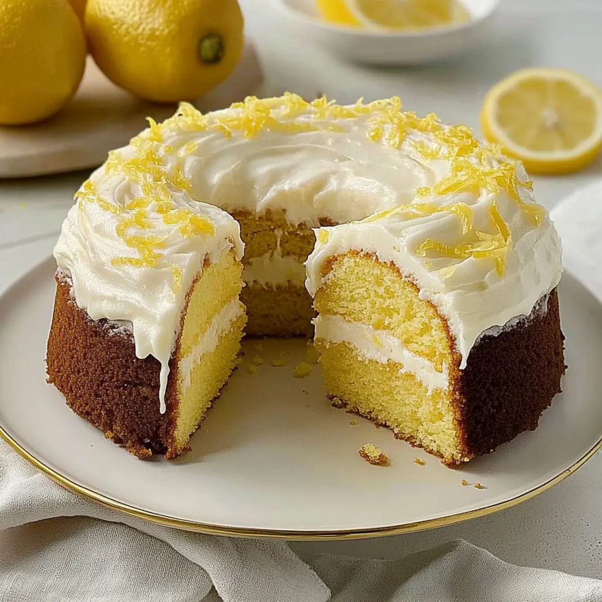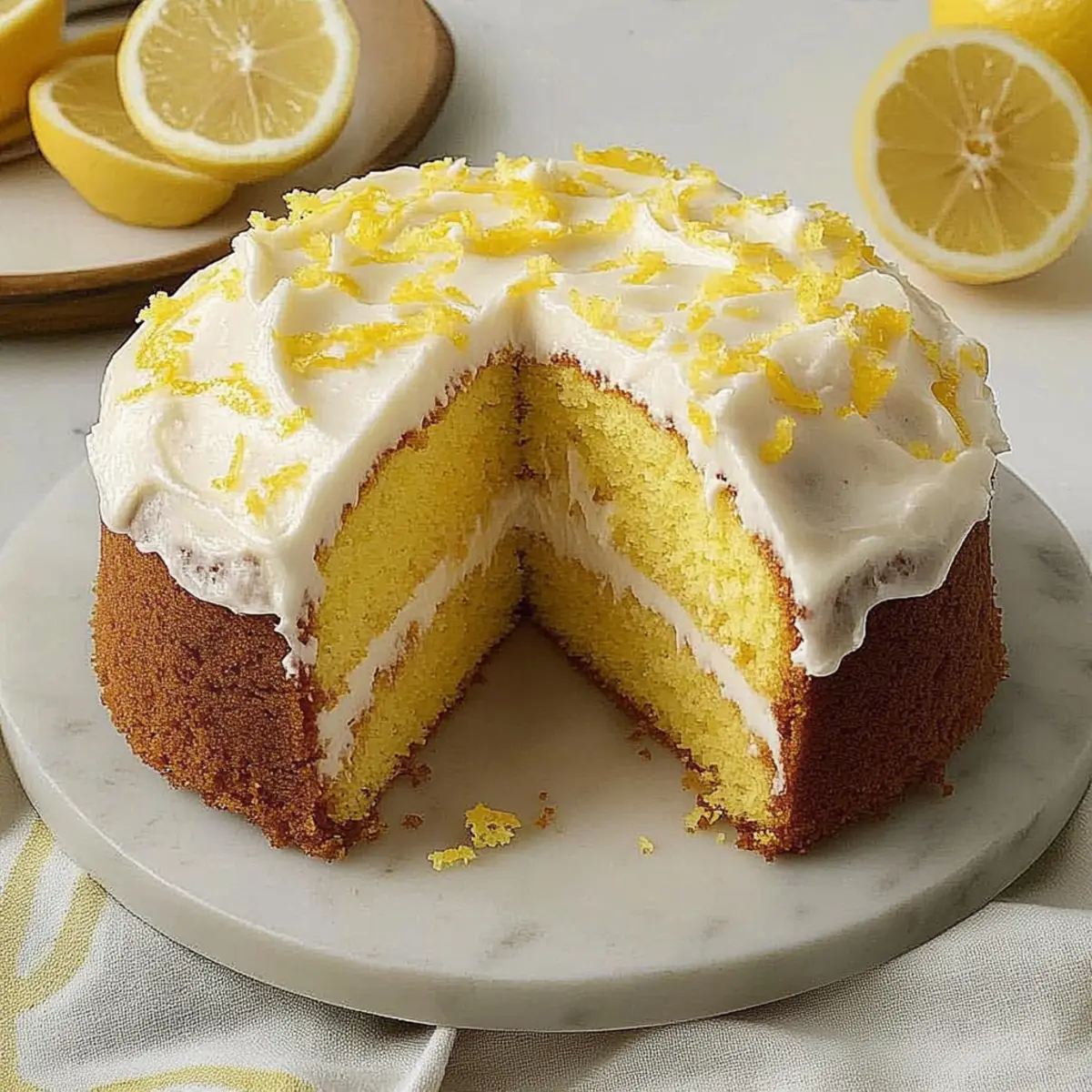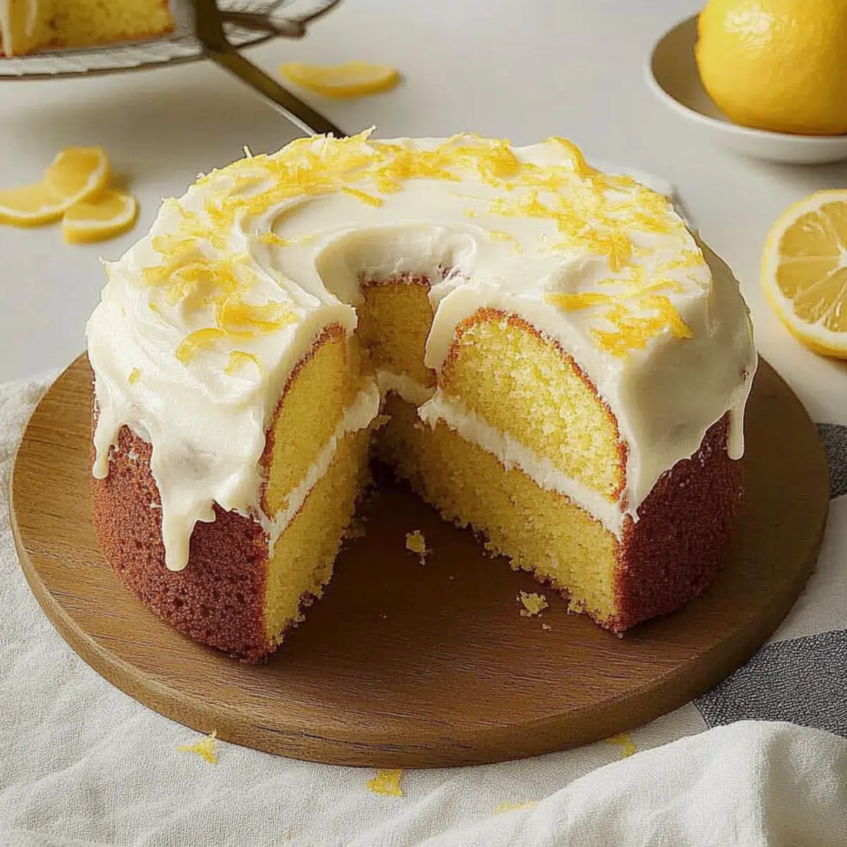 As I unwrapped the zest of a freshly picked lemon, the bright and invigorating aroma swept through my kitchen, transporting me to sun-drenched orchards. This Lemon Pound Cake is where that beloved citrus makes its grand entrance, creating a delightful balance of sweet and tangy flavors that simply beckons a slice. Known for its irresistibly moist texture, this easy recipe yields a cake so tender it feels like a warm hug after a long day. Perfect for tea parties or as the star of any gathering, this cake stays fresh for days, making it a superb choice for meal prep or sharing with loved ones. With endless variations—from poppy seeds to fresh berries—there’s always a new twist to explore. Ready to brighten up your baking routine? Let’s dive into making this sunny delight! Why is Lemon Pound Cake so irresistible? Moisture, this Lemon Pound Cake is guaranteed to impress with its tender, fluffy texture, leaving each bite feeling luxurious. Bright flavors from fresh lemon zest and juice create a refreshing twist that perfectly complements the sweetness. Versatile options allow you to customize it with poppy seeds or berries, making it a delightful choice for every occasion. Easy to make, it comes together quickly, ideal for busy bakers who still want to indulge. Crowd-pleasing and stunning, it’s perfect for gatherings, whether paired with tea or served at celebrations. Don’t forget to check out our Blueberry Buttermilk Pancake recipe for more fruity goodness! Lemon Pound Cake Ingredients This easy and delightful recipe calls for basic ingredients that can be easily found in your kitchen! For the Cake Butter – provides richness and moisture; be sure it’s softened for easy creaming. Shortening – contributes to a lighter texture and prolongs freshness; can be substituted with additional butter for a richer flavor. Sugar – sweetens the cake and helps achieve that fluffy texture when creamed with the butter and shortening. Eggs – lighten the batter and create structure; make sure they are at room temperature for best incorporation. Lemon Zest – adds an intense lemon flavor and aroma; freshly grated zest is preferable for maximum zestiness. Lemon Extract – provides concentrated lemon flavor; substitute with fresh lemon juice if needed, but adjust liquid ratios accordingly. All-Purpose Flour – serves as the main structure of the cake; use a kitchen scale for accuracy to avoid a dense texture. Salt – enhances overall flavor; a pinch is crucial for balance among the sweet ingredients. Baking Powder – ensures the cake rises properly, creating that light and airy feel. Whole Milk – adds necessary moisture to the batter; a milk alternative can be used if desired. For the Frosting Butter – softened, to create a smooth frosting. Confectioners’ Sugar – sweetens the frosting and gives it a light, fluffy consistency. Lemon Juice – adds tang and complements the sweet and creamy aspects of the frosting. Lemon Zest – brightens the frosting with an extra burst of lemon flavor. Each of these ingredients plays a vital role in crafting your delicious Lemon Pound Cake, ensuring it’s a standout for any gathering! Step‑by‑Step Instructions for Lemon Pound Cake Step 1: Preheat and Prepare Begin by preheating your oven to 350°F (175°C). While it heats, generously grease a 10-inch fluted tube pan with shortening, ensuring every crevice is covered to prevent sticking. For added assurance, lightly dust the greased pan with flour, tapping out any excess. This preparation is key for your Lemon Pound Cake to release beautifully once baked. Step 2: Cream the Butters and Sugar In a large mixing bowl, combine softened butter, shortening, and sugar. With an electric mixer on medium speed, beat them together for about 5 minutes until the mixture is light and fluffy, gaining volume. This process introduces air into the batter, creating that soft texture your Lemon Pound Cake is known for. Take a moment to enjoy the sweet aroma filling your kitchen! Step 3: Incorporate the Eggs Add eggs to the creamed butter mixture one at a time, allowing each egg to fully incorporate before adding the next. Beat on medium speed until the batter appears smooth and slightly glossy. This step ensures a well-emulsified mixture, which is essential for a moist and tender Lemon Pound Cake. Don’t rush; each egg should meld seamlessly into the batter. Step 4: Add Lemon Flavors Gently stir in the freshly grated lemon zest and lemon extract, allowing the flavors to meld. Use a spatula to scrape down the sides of the bowl to ensure all ingredients are mixed well. The zest adds vibrant color and intense flavor, making your Lemon Pound Cake irresistibly refreshing. Step 5: Mix Dry Ingredients In a separate bowl, whisk together all-purpose flour, salt, and baking powder. Gradually add this dry mixture to the wet batter while alternating with the whole milk, beginning and ending with the flour mixture. Mix on low speed just until combined; over-mixing may lead to a dense cake, so stop as soon as no flour pockets remain. Step 6: Pour and Bake Carefully pour the batter into the prepared tube pan, smoothing the top with a spatula for an even surface. Place the pan in the preheated oven and bake for about 70 minutes. Check for doneness by inserting a toothpick into the center; it should come out clean or with a few moist crumbs. This is when your kitchen will be filled with delightful baking aromas! Step 7: Cool Before Serving Once baked, remove the Lemon Pound Cake from the oven and let it cool in the pan for 10 minutes. Use a flexible plastic knife to gently loosen the edges before inverting the pan onto a wire rack. Let the cake cool completely to ensure a perfect slice. The exterior should appear golden brown, inviting you to taste your beautiful creation. Step 8: Make the Frosting While the cake is cooling, prepare the frosting. In a small bowl, combine softened butter, confectioners’ sugar, lemon juice, and 