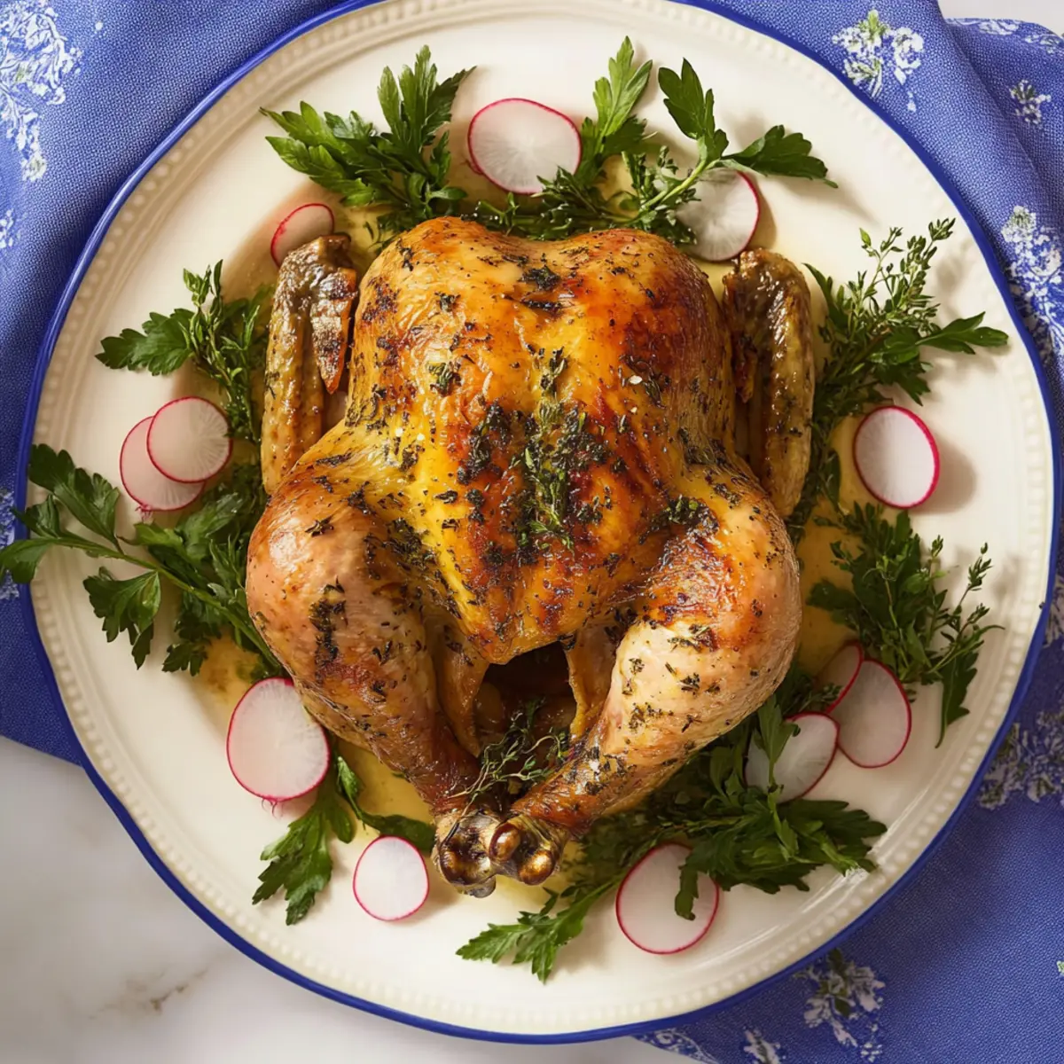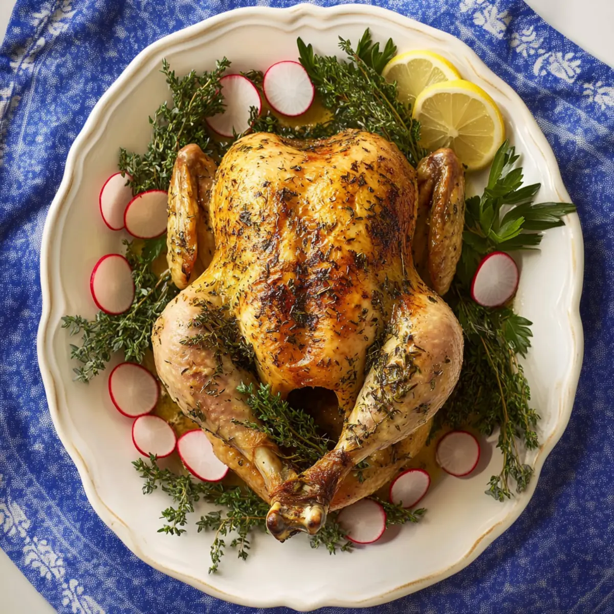 As I stood in my kitchen, the delightful aroma of herbs and citrus wafted through the air, instantly transporting me to sunlit orchards and cozy family dinners. Today’s recipe for Lemony Herb Roast Chicken is my flavorful tribute to comfort food that is both wholesome and satisfying. This high-protein dish, with zesty lemon zest and fragrant thyme, comes together in just 1 hour and 20 minutes, making it an excellent choice for busy weeknights or a special Sunday feast. Not only does this roasted chicken promise tender, juicy bites, but it also doubles as a meal prep gem, leaving you with delicious leftovers for days. Are you ready to impress your taste buds and elevate your cooking game? Let’s dive into this mouthwatering recipe that you won’t be able to resist! Why is Lemony Herb Roast Chicken a must-try? Flavors That Sing: The zesty lemon and aromatic thyme come together in a beautiful melody, making every bite an explosion of flavor in your mouth. Easy to Prepare: This recipe is user-friendly and perfect for home cooks looking to elevate their culinary skills without spending hours in the kitchen. Meal Prep Friendly: With leftovers galore, this dish marries convenience and taste, perfect for busy weeknights when you want something wholesome without the hassle. Appealing Presentation: The golden-brown, crispy skin, paired with colorful radishes, creates a feast for the eyes, sure to impress family and guests alike. Perfect for Any Occasion: Whether it’s a casual dinner or a special celebration, this Lemony Herb Roast Chicken adapts seamlessly to any setting—just like my Garlic Butter Chicken or Garlic Parmesan Chicken. Once you’ve tasted this delightful roast, it may just become your go-to dish for any gathering! Lemony Herb Roast Chicken Ingredients For the Chicken • Whole Chicken (4 to 5 lbs.) – The star of the dish; opt for organic for better flavor and tenderness. • Softened Butter or Olive Oil – Provides moisture and richness to the skin; choose olive oil for a healthier option. For the Flavor Base • Finely Grated Lemon Zest – Crucial for that bright, zesty punch; fresh lemons yield the best results. • Cloves Garlic (Crushed) – Adds an aromatic depth that elevates the overall flavor; fresh garlic is always best. • Fresh Thyme (Chopped) – Complements the lemon beautifully and adds a herby note; substitute with half the amount of dried thyme if needed. • Medium Onion (Thinly Sliced) – Brings sweetness and aroma; shallots can offer a milder alternative. For the Color and Crunch • Bunch Radishes (Trimmed, Quartered) – Their peppery flavor and vibrant color enhance the dish; try substituting with carrots or potatoes if desired. This Lemony Herb Roast Chicken recipe is not just about nourishment; it’s an experience filled with flavor and joy that brings loved ones together. Let’s get cooking! Step‑by‑Step Instructions for Lemony Herb Roast Chicken Step 1: Preheat the Oven Begin by preheating your oven to 425°F (220°C). This temperature is perfect for achieving that golden-brown crust while keeping the meat tender and juicy. Once heated, get your roasting pan ready by placing it on a stable surface, making sure it’s positioned where it’s easy to access. Step 2: Prepare the Herb Mixture In a large mixing bowl, combine the softened butter or olive oil with finely grated lemon zest, crushed garlic, and chopped fresh thyme. Stir this aromatic blend thoroughly until well mixed—this will be the flavorful rub that makes your Lemony Herb Roast Chicken shine. The buttery mixture should be creamy and fragrant, inviting you to add it to the chicken. Step 3: Season the Chicken Now it’s time to give that whole chicken some love! Generously rub the herb mixture all over the chicken, including under the skin where possible. Ensure every bit of chicken is coated in this flavorful paste to lock in moisture and flavors as it roasts. The skin will glisten, and the aroma will already begin to fill your kitchen. Step 4: Arrange the Vegetables Place the seasoned chicken breast-side up in your roasting pan. Surround the chicken with the thinly sliced onions and quartered radishes. These vegetables not only add a beautiful presentation but also infuse additional flavors into the chicken as it roasts. The onions will caramelize while the radishes provide a delightful crunch. Step 5: Roast the Chicken Transfer the roasting pan into the preheated oven and let the Lemony Herb Roast Chicken cook for approximately 1 hour and 5 minutes. Keep an eye on the chicken; it should reach an internal temperature of 165°F (74°C) for perfectly cooked meat. The skin will become a stunning golden brown, signaling that it is ready to be taken out. Step 6: Rest Before Carving Once the chicken is done roasting, remove it from the oven and let it rest for 10 to 15 minutes. This resting period allows the juices to redistribute throughout the meat, making for juicy, tender slices when you carve it. The enticing aromas will linger in the air, tantalizing everyone around as they anticipate the first bite. Storage Tips for Lemony Herb Roast Chicken Fridge: Store leftover Lemony Herb Roast Chicken in an airtight container for up to 3 days to maintain its moistness and flavor. Freezer: For longer storage, wrap the chicken tightly in plastic wrap and then foil or place it in a freezer-safe bag. It will last up to 3 months in the freezer. Reheating: To reheat, place the chicken in a preheated oven at 350°F (175°C) until warmed through, about 20-25 minutes, to preserve the juicy texture. Room Temperature: Let any leftovers cool to room temperature before refrigerating; this helps maintain quality and safety. Lemony Herb Roast Chicken Variations Customize your Lemony Herb Roast Chicken to discover delightful twists and flavors that will surprise your taste buds! Dairy-Free: Use olive oil instead of butter to keep it creamy but completely dairy-free. This maintains the luscious texture