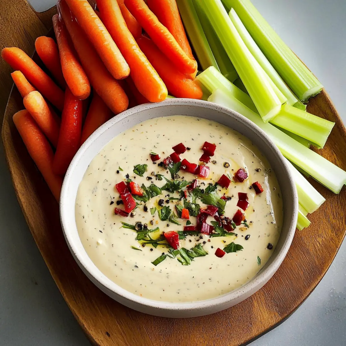 As I stirred the vibrant green herbs into the creamy mix, the aroma instantly transported me to a sunlit Mediterranean terrace, where every meal begins with laughter and a shared dip. This Light & Creamy Savory Herb Dip is more than just a spread; it’s a celebration of flavors that brings people together, whether you’re hosting a casual get-together or simply enjoying a quiet night in. With just a handful of wholesome ingredients and minimal prep time, you’ll have an impressive appetizer that even the busiest chefs can whip up in a flash. And the best part? It’s a versatile companion to fresh veggies, crusty bread, or hearty crackers, ensuring it pleases every palate. Ready to elevate your snacking game and impress your loved ones? Let’s dive into this deliciously simple recipe! Why is this dip a must-try? Effortless Preparation: With only a handful of ingredients and minimal prep time, this dip is perfect for busy home cooks looking to impress. Irresistible Flavor: The vibrant blend of fresh herbs provides a burst of flavor that’s truly unforgettable. Versatile Pairing: Ideal with fresh veggies, crusty bread, or crackers, making it the ultimate crowd-pleaser. Perfect for Any Occasion: Elevate your gatherings or enjoy a cozy night in without the fuss! For more delightful recipes, check out my Creamy Cajun Chicken Pasta or Dijon Chicken. Healthy Indulgence: Light yet creamy, this dip caters to both flavorful cravings and health-conscious choices. Light & Creamy Savory Herb Dip Ingredients For the Base • Greek Yogurt – a creamy foundation that’s healthier than sour cream and adds protein. • Cream Cheese – for that luscious, rich texture that balances the tanginess of yogurt. • Lemon Juice – brightens the flavors and adds a zesty kick to the dip. For the Herbs • Fresh Dill – imparts a fresh, fragrant taste, making this dip extraordinary. • Chives – lend a mild onion flavor that complements the creaminess beautifully. • Parsley – brings a burst of color and herbal freshness, enhancing the overall taste. For Seasoning • Garlic Powder – adds depth and a warm aroma without overpowering the other flavors. • Salt – enhances all the ingredients to create a cohesive and delightful flavor. • Black Pepper – a hint of spice that elevates the dip and keeps your taste buds engaged. This Light & Creamy Savory Herb Dip is ready to be the star of your next gathering! Step‑by‑Step Instructions for Light & Creamy Savory Herb Dip Step 1: Whisk the Base In a large mixing bowl, combine the Greek yogurt and softened cream cheese. Using a whisk, blend these ingredients until smooth and creamy, which should take about 2-3 minutes. Ensure there are no lumps for a velvety texture. The result should be a thick and homogeneous mixture, ready to absorb the flavorful additions. Step 2: Add the Zing Next, squeeze in the fresh lemon juice and sprinkle in the garlic powder, salt, and black pepper. Stir vigorously for another 1-2 minutes until everything is well-incorporated. The acidity of the lemon will enhance the overall flavor of your Light & Creamy Savory Herb Dip, making it zingy and alive. Step 3: Fold in Fresh Herbs Now, finely chop the fresh dill, chives, and parsley before folding them into the dip. Use a spatula to gently mix the herbs into the cream mixture, being careful not to over-mix. Within 3-5 minutes, the herbs will combine beautifully, bringing vibrant color and a fresh aroma to your dip. Step 4: Chill for Flavor Fusion To allow the flavors to meld, cover the bowl with plastic wrap and refrigerate the dip for at least 30 minutes. This step is crucial for achieving that harmonious blend of tastes. You’ll notice the transition to an enticingly aromatic dip perfect for serving. Step 5: Prepare for Serving While the Light & Creamy Savory Herb Dip chills, wash and cut your chosen vegetables into bite-sized pieces. Carrots, celery, and bell peppers are fantastic options. This prep time makes dipping easy and delightful, ensuring a satisfying crunch with each bite. Step 6: Final Touch and Serve After chilling, give the dip a gentle stir and taste for seasoning adjustments—add more salt or pepper if desired. Transfer it to a beautiful serving bowl and arrange the fresh vegetable dippers around it. Serve immediately, and watch your guests relish every creamy, herb-infused bite! What to Serve with Light & Creamy Savory Herb Dip As you gather around the table, the inviting aroma of fresh herbs blends with the creamy dip, creating an experience that’s impossible to resist. Crunchy Veggie Platter: A medley of crisp bell peppers, cucumbers, and carrots offers an invigorating crunch that complements the dip’s smooth texture. An eye-catching assortment makes for a delightful centerpiece. Whole Grain Crackers: These earthy, nutty crackers lend a satisfying crunch while adding a wholesome element to your snack spread. Their hearty flavor balances well with the herb-infused creaminess of the dip. Toasted Pita Chips: Serve warm, golden pita chips that provide a delightful contrast to the cool dip. Their lightness and subtle flavor enhance the vibrant notes of the herbs. Roasted Potatoes: Crispy roasted baby potatoes with a sprinkle of sea salt are unexpectedly delicious when dipped into the creamy concoction. This pairing elevates the snack to a comfort food level. Cheese Platter: Include a selection of soft cheeses, such as goat or feta, to enjoy alongside the dip. The richness of the cheese, paired with the dip’s brightness, creates a lovely harmony on the palate. Light White Wine or Sparkling Water: A chilled glass of Sauvignon Blanc or a refreshing sparkling water can brighten up the flavors and cleanse the palate, enhancing the overall tasting experience. Light & Creamy Savory Herb Dip Swaps Feel free to get creative with this recipe and make the Light & Creamy Savory Herb Dip uniquely yours! Vegan Version: Substitute sour cream with vegan mayo or coconut