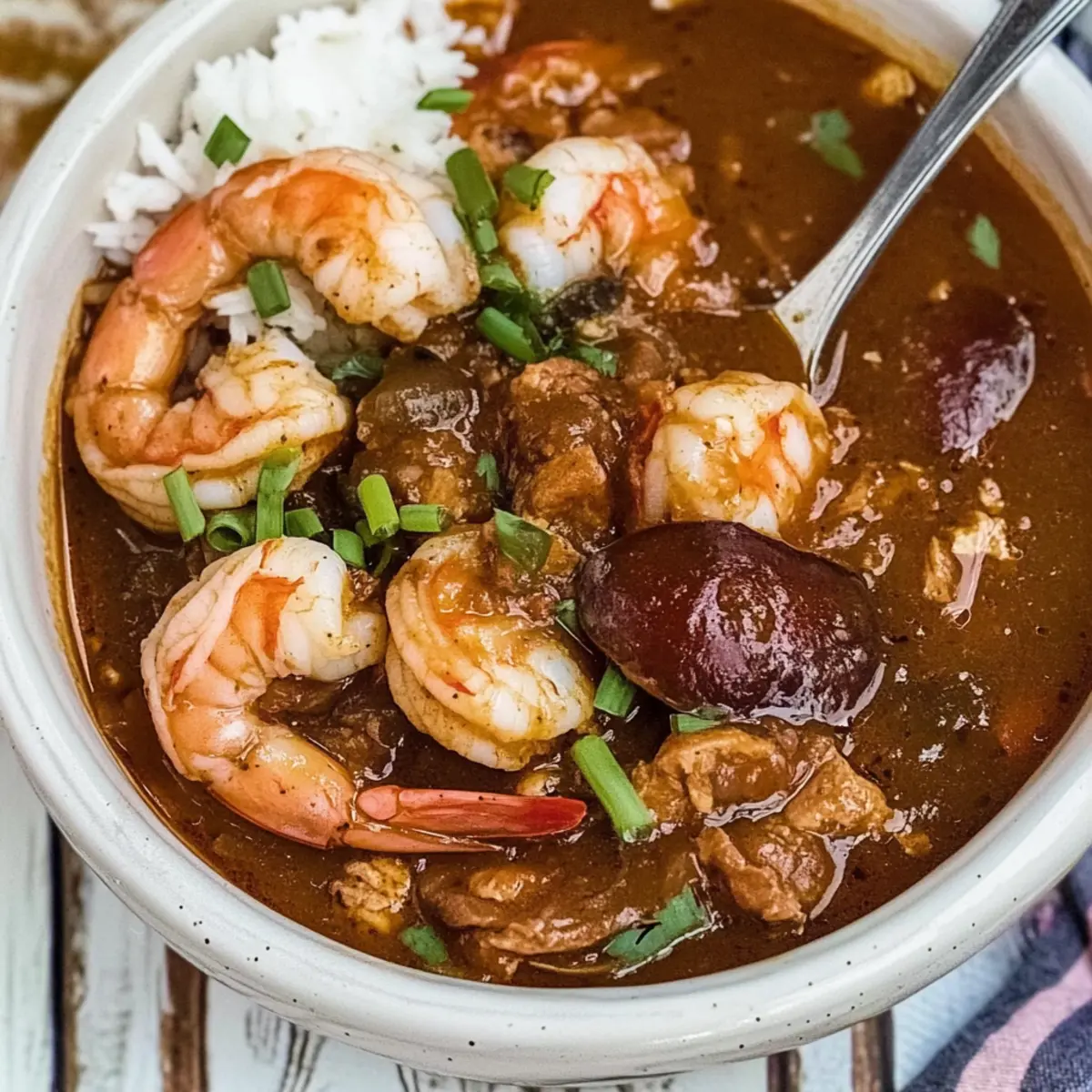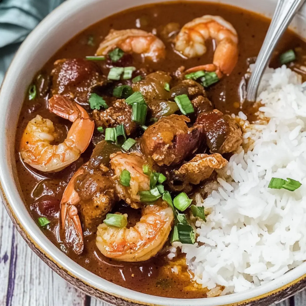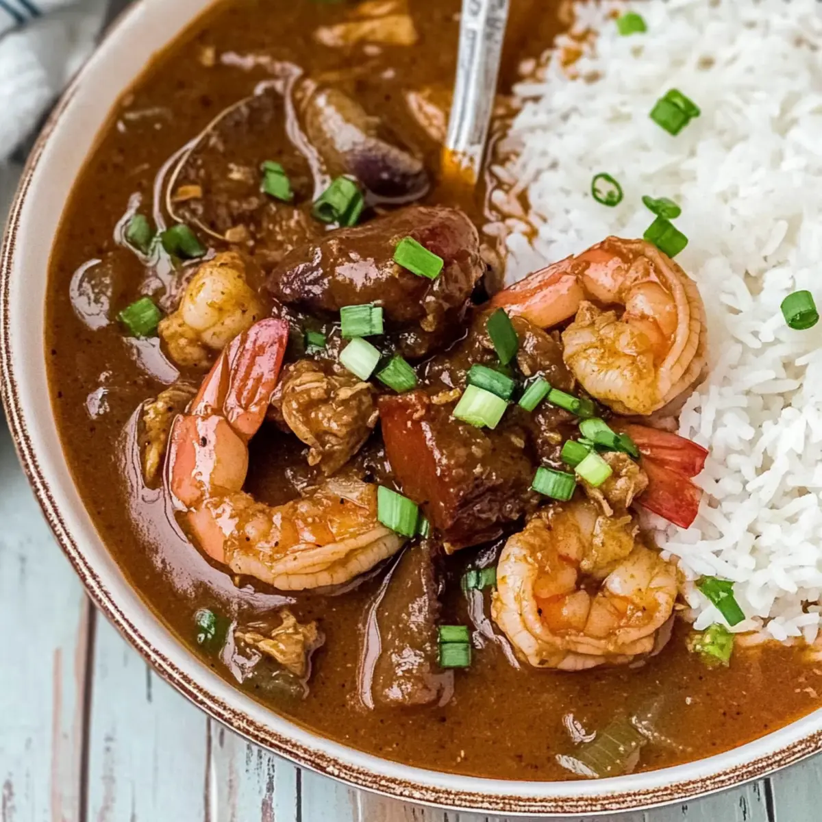 There’s an undeniable magic in a pot of bubbling Louisiana Seafood Gumbo, where soulful flavors of the bayou come alive. As I stir the smoky roux to a deep, seductive brown, the aroma wafts through my kitchen, transporting me straight to the vibrant streets of New Orleans. This Authentic Louisiana Seafood Gumbo isn’t just a dish; it’s comfort food at its best, perfect for bringing family and friends together around the table. With a medley of fresh seafood, hearty sausage, and a big splash of love, this recipe is not only a quick way to impress but also a fantastic crowd-pleaser that will please even the pickiest eaters. Curious how to bring this Cajun delight to your home? Dive in and let’s create a spectacular gumbo experience together! Why is this gumbo a must-try? Soulful Comfort: Each bowl of this gumbo offers a cozy warmth, embodying the heart of Cajun cooking. Aromatic Journey: The smoky roux combined with fresh seafood creates a mouthwatering perfume that fills your kitchen. Crowd-Pleasing Delight: This dish easily impresses family and friends, making it perfect for gatherings or even a cozy night in. Quick & Easy: Unlike many complex dishes, this gumbo comes together effortlessly, allowing you to savor the moments spent with loved ones! Versatile Variations: Make it your own by trying vegetarian options or adjusting the spice levels with our variation ideas. Hearty and Satisfying: Each serving is packed with flavor, giving you a comforting meal that truly nourishes the soul! Louisiana Seafood Gumbo Ingredients Note: Get ready to create delicious Louisiana Seafood Gumbo that will warm your heart! For the Roux All-Purpose Flour – Essential for creating the thick, smoky roux that gives gumbo its rich texture. Substitution: Can use gluten-free flour for a gluten-free version. Canola Oil – Used to cook the roux and sauté vegetables. Substitution: Vegetable oil or olive oil can be used. For the Trinity Yellow Onions (2 cups, chopped) – Adds sweetness and depth of flavor. No substitutions required. Green Bell Peppers (1 cup, chopped) – Contributes to the “holy trinity” of Cajun cooking, adding flavor and color. No substitutions required. Celery (1 cup, chopped) – Complements the onions and peppers to build foundational flavor. No substitutions required. For the Meats Andouille Sausage (2 links, sliced) – Provides smoky, spicy flavor essential to gumbo. Alternative: Substitute with kielbasa for a milder taste. Smoked Sausage (2 links, sliced) – Adds additional depth and smokiness. Alternative: Increase amount of Andouille sausage if desired. For Flavoring Creole Seasoning (1 tablespoon) – A blend that enhances the gumbo’s spiciness and flavor. Note: Adjust quantity based on spice preference. Dried Thyme (1 teaspoon) – Adds aromatic flavor. Alternative: Use fresh thyme (increase amount). Garlic Powder and Onion Powder (1 tablespoon each) – Enhances overall flavor. No substitutions required. Fresh Minced Garlic (2 tablespoons) – Provides a robust flavor. Alternative: Use garlic powder in a pinch. Bay Leaves (4 whole) – Adds herbal depth during the simmering process. Remove before serving. For the Broth Seafood Stock (5 cups) and Chicken Broth (5 cups) – Forms the base of the gumbo; using both deepens flavor. Substitutions: Use all seafood stock for richer flavor. Fresh Parsley (½ cup, chopped) – Adds freshness and color. Substitution: Cilantro can be used. Green Onions (⅔ cup, chopped) – Provides a fresh garnish. No substitutions required. For the Seafood Whole Crabs (2 pounds) – Adds a delicious seafood component. Substitution: Use additional shrimp or other seafood if preferred. Large Shrimp (2 pounds) – Key seafood element for flavor and texture. Substitution: Can use frozen shrimp, thawed before use. Fresh Lump Crab Meat (8 ounces) – Enhances flavor and adds a premium touch. Note: Can omit if not available; replace with more shrimp. Step‑by‑Step Instructions for Authentic Louisiana Seafood Gumbo Step 1: Make the Roux In a heavy pot, heat 1 cup of canola oil over medium heat. Gradually whisk in 1 cup of all-purpose flour, stirring constantly for about 20-30 minutes until the mixture reaches a dark chocolate color, reminiscent of rich coffee. This crucial step creates the flavor base for your Louisiana Seafood Gumbo, so stay attentive and avoid burning! Step 2: Sauté Vegetables Once your roux is dark and fragrant, add 2 cups of chopped onions, 1 cup of chopped green bell peppers, and 1 cup of chopped celery. Sauté for 5-7 minutes, stirring occasionally until the vegetables are softened and fragrant. Next, stir in 2 tablespoons of minced garlic, cooking for an additional 2 minutes to infuse the garlic’s robust flavor into the gumbo. Step 3: Combine Ingredients Slowly pour in 5 cups of seafood stock and 5 cups of chicken broth, stirring to blend everything harmoniously. Then, add 4 whole bay leaves, 1 tablespoon of Creole seasoning, 1 teaspoon of dried thyme, 1 tablespoon of garlic powder, and 1 tablespoon of onion powder. Each spice will enrich the flavors of your Authentic Louisiana Seafood Gumbo, so mix well. Step 4: Simmer Bring the gumbo mixture to a low boil over medium heat. Once boiling, cover the pot and reduce the heat to low, allowing it to simmer for 90 minutes. Stir occasionally, watching as the flavors meld beautifully together, creating a deeply aromatic stew that is the essence of Cajun comfort food. Step 5: Add Seafood After the gumbo has simmered, it’s time to introduce the seafood. Stir in 2 pounds of whole crabs, 2 pounds of large shrimp, and 8 ounces of fresh lump crab meat, along with ⅔ cup of chopped green onions. Increase the heat to bring it back to a gentle boil and cook for another 15-20 minutes until the seafood is tender and cooked through. Step 6: Serve Before serving your delicious Louisiana Seafood Gumbo, remove the bay leaves from the pot. Ladle the steaming gumbo over fluffy white rice on e