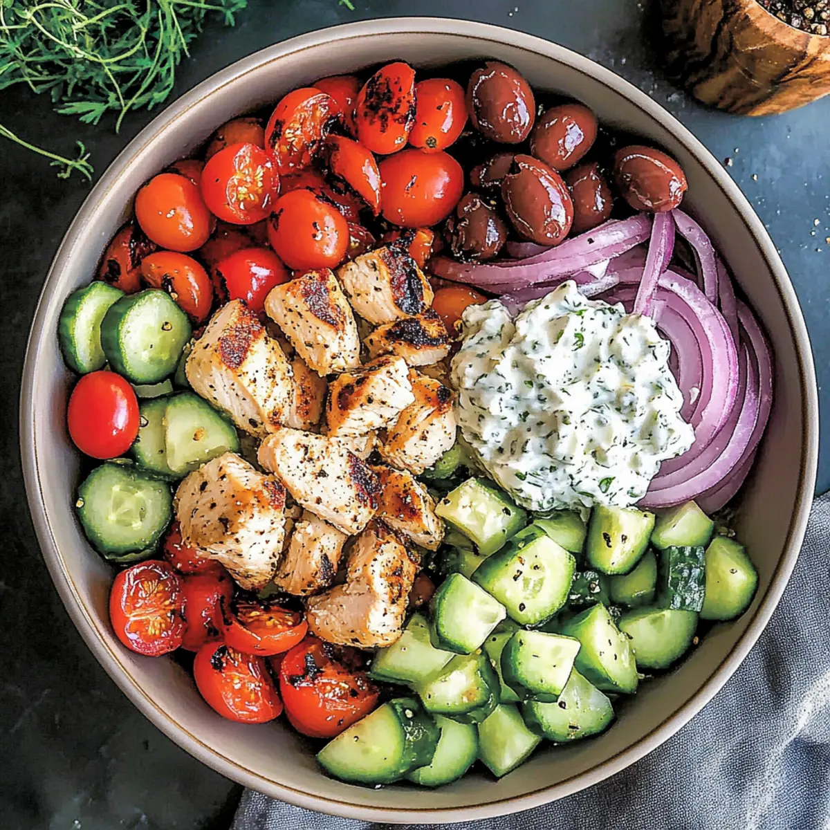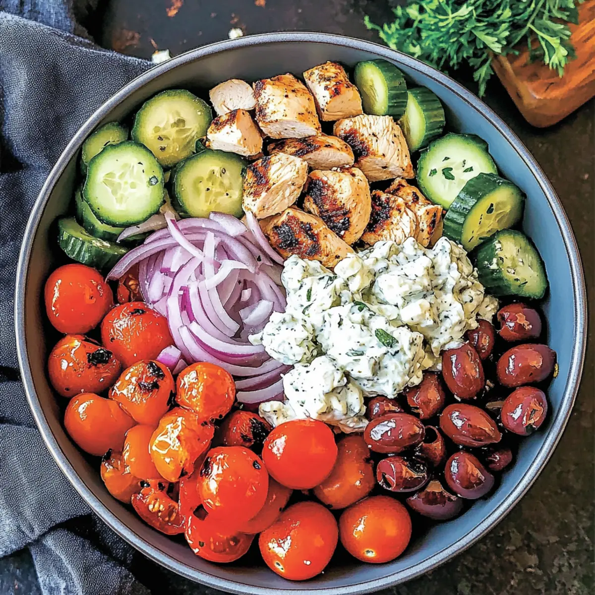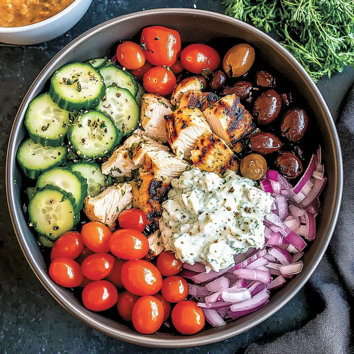 The sizzling sound of seasoned chicken hitting a hot skillet always brings back memories of summer evenings spent in the kitchen, experimenting with bold Mediterranean flavors. Today, I’m thrilled to share my recipe for Low-Carb Greek Chicken Bowls with Tzatziki Sauce, a delightful meal that perfectly balances taste and health. This dish not only checks all the boxes for keto enthusiasts but also makes meal prep a breeze. Packed with vibrant veggies, salty olives, and creamy feta, each bite is a refreshing escape to the sunny shores of Greece. Plus, the homemade Tzatziki sauce adds a cooling twist that makes this bowl a crowd-pleaser for any occasion. Are you ready to elevate your weeknight dinners with these delicious, wholesome flavors? Why are Low-Carb Greek Chicken Bowls a must-try? Satisfying Freshness: Each bowl bursts with vibrant colors from fresh veggies, making it as pleasing to the eye as it is to the palate. Health-Conscious Delight: These bowls boast a keto-friendly profile with only 9g of carbs per serving, keeping your health goals in check. Quick Cooking: With a marinade time of just 30 minutes, you can have a flavorful meal ready fast, perfect for busy weeknights. Versatile Ingredients: Feel free to mix and match with ingredients like bell peppers or tofu to suit your tastes or dietary needs. Classic Mediterranean Taste: The combination of seasoned chicken and creamy Tzatziki takes your taste buds on a delicious adventure, reminiscent of warm Greek summers. For more delicious chicken dishes, check out my Garlic Parmesan Chicken or indulge in the flavors of Cheesy Garlic Chicken. Low-Carb Greek Chicken Bowls Ingredients For the Chicken Marinade • Chicken Breast – Boneless, skinless, cut into 1-inch cubes for even cooking. • Olive Oil – Adds richness and moisture while marinating the chicken. • Lemon Juice – Fresh juice brightens up the dish, enhancing the overall flavor. • Red Wine Vinegar – Provides a tangy profile to the marinade. • Greek Seasoning – This spice blend infuses the chicken with authentic Mediterranean flavors. • Sea Salt – Adjust to taste for optimal seasoning. For the Tzatziki Sauce • Greek Yogurt – A creamy base for the sauce; full-fat offers the best texture. • Persian Cucumber – Provides freshness and crunch; grated for Tzatziki adds flavor. • Garlic – Adds depth to the Tzatziki sauce with its robust flavor. • Fresh Dill – Offers an aromatic essence; substitute with mint if necessary. For the Salad Bowl • Cherry Tomatoes – Their sweetness and juiciness complement the other ingredients. • Red Onion – Adds sharpness and crunch, enhancing the texture of the bowl. • Kalamata Olives – Pitted for convenience, they lend a salty richness. • Feta Cheese – Crumbled on top for a creamy, tangy finish reminiscent of Greek flavors. Feel free to savor these Low-Carb Greek Chicken Bowls as a colorful, healthy meal option, perfect for meal prep or quick dinners! Step‑by‑Step Instructions for Low-Carb Greek Chicken Bowls Step 1: Marinate the Chicken In a sealable container, combine the chicken breast cubes with olive oil, fresh lemon juice, red wine vinegar, Greek seasoning, and sea salt. Ensure all the pieces are well-coated in the marinade. Seal the container and refrigerate for at least 30 minutes, or overnight for a more intense flavor. This step enhances the taste of your Low-Carb Greek Chicken Bowls. Step 2: Prepare Tzatziki Sauce While the chicken marinates, prepare the Tzatziki sauce. In a mixing bowl, combine Greek yogurt, grated Persian cucumber, minced garlic, lemon zest, fresh lemon juice, chopped dill, salt, and black pepper. Stir until well blended. For optimal flavor, cover and chill the Tzatziki in the refrigerator until you’re ready to serve your delectable Greek Chicken Bowls. Step 3: Cook Chicken Heat a cast-iron skillet over medium-high heat until hot, approximately 3 minutes. Carefully add the marinated chicken, ensuring to place it in a single layer. Cook the chicken for 3-4 minutes per side until it turns golden brown and reaches an internal temperature of 165°F (74°C). This step locks in the flavors and ensures juicy chicken for your bowls. Step 4: Make Red Wine Vinegar Dressing In a small bowl, whisk together olive oil, red wine vinegar, oregano, and a pinch of salt. This dressing will bring a tangy and flavorful kick to your Low-Carb Greek Chicken Bowls. Set aside while you assemble the rest of the ingredients. The dressing complements the fresh vegetables beautifully. Step 5: Assemble Bowls To create your stunning Low-Carb Greek Chicken Bowls, start by dividing the cooked chicken evenly among serving bowls. Then, top each portion with diced cucumber, halved cherry tomatoes, thinly sliced red onion, Kalamata olives, and crumbled feta cheese. Drizzle the prepared dressing over the top and add a generous dollop of Tzatziki sauce, bringing all the vibrant flavors together. Expert Tips for Low-Carb Greek Chicken Bowls Marination Matters: Ensure the chicken marinates for at least 30 minutes; an overnight soak will make it even more flavorful and tender. Searing Secrets: For a nice crust on the chicken, use a cast-iron skillet over medium-high heat. This provides an ideal sear without steaming the meat. Tzatziki Timing: Prepare the Tzatziki sauce a few hours in advance to allow the flavors to meld, resulting in a more robust flavor for your Low-Carb Greek Chicken Bowls. Fresh is Best: Use fresh, high-quality ingredients, especially herbs like dill and olive oil, which will enhance the overall taste and quality of the dish. Ingredient Flexibility: Feel free to mix and match veggies based on your preference or what’s in season. Adding bell peppers or spinach can offer even more flavor and nutrients. Low-Carb Greek Chicken Bowls Variations Customize your Low-Carb Greek Chicken Bowls to suit your tastes and dietary preferences, making every meal unique and delightful! Vegetarian Option: 