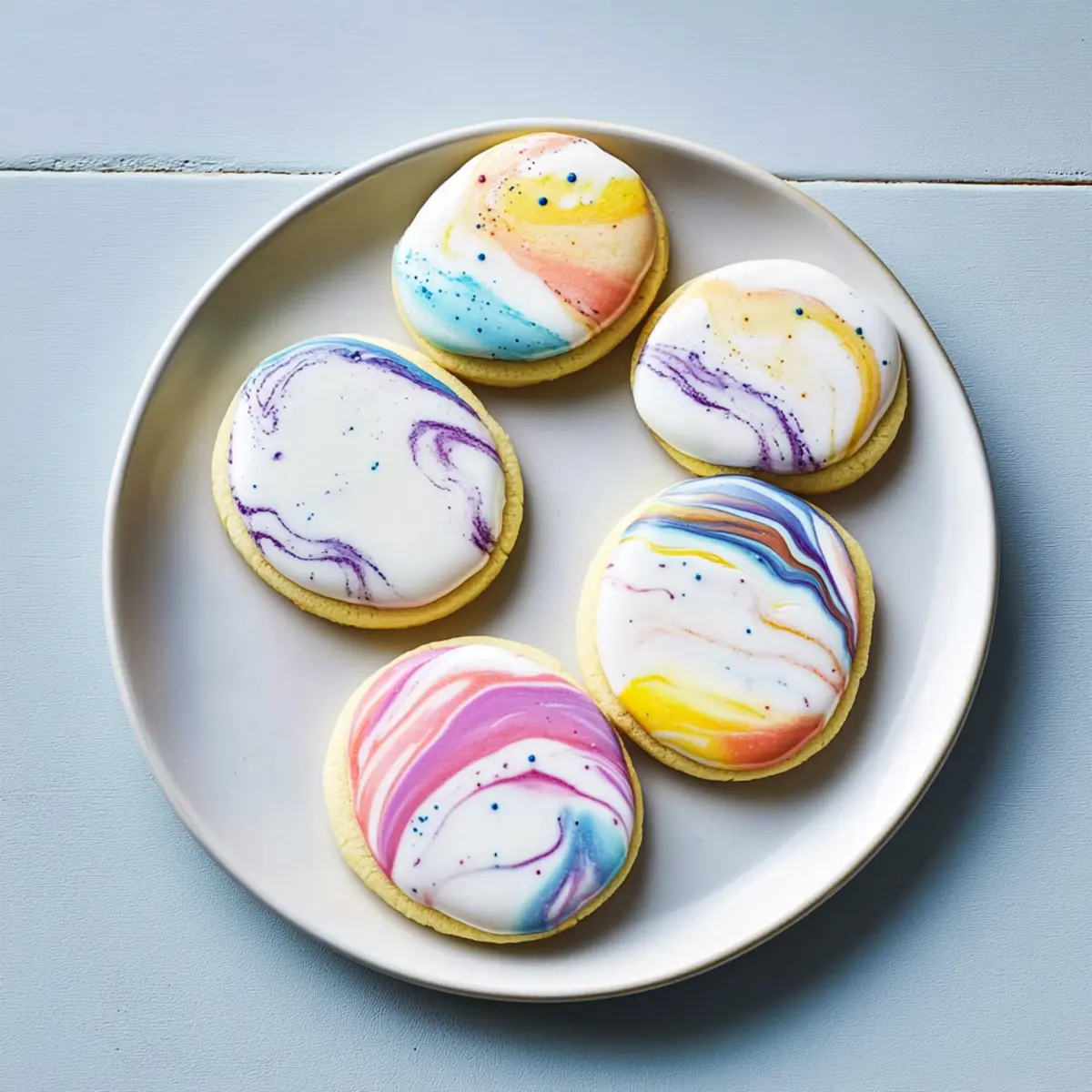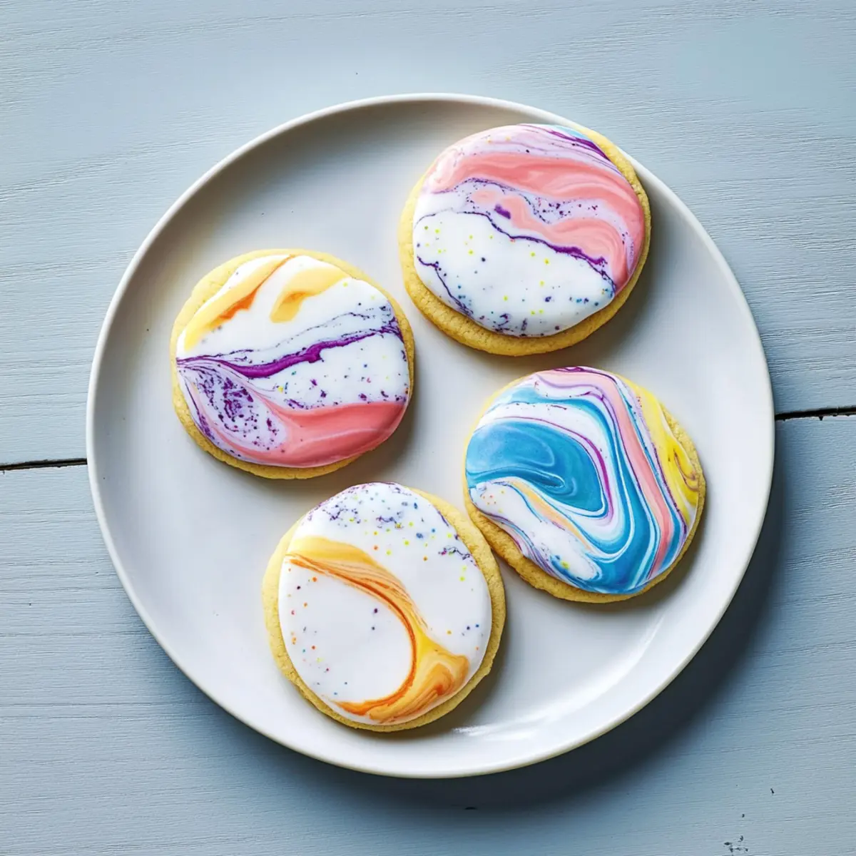 As I mixed the vibrant shades of gel food coloring into the dough, a wave of excitement washed over me. These Marbled Egg Sugar Cookies aren’t just a delicious treat; they’re also an artistic outlet that brings joy to both bakers and lucky recipients. Sporting a beautifully marbled appearance, each cookie bursts with a soft, buttery texture that will surely delight friends and family. The best part? This quick and easy recipe makes these colorful confections perfect for any occasion—from festive gatherings to cozy weeknight treats. Grab your mixing bowl and let’s dive into this fun cookie-making adventure—are you ready to sprinkle some magic into your kitchen? Why are Marbled Egg Sugar Cookies special? Colorful Creation: These Marbled Egg Sugar Cookies are a feast for the eyes! The vibrant swirls of color not only make them a perfect centerpiece for any occasion, but they also inspire creativity in the kitchen. Quick and Easy: This recipe requires minimal effort—perfect for busy bakers or those new to cookie making. With just a few simple steps, you’ll have a batch of mouthwatering cookies ready in no time. Versatile Treat: Whether you’re celebrating a holiday, hosting a party, or just want to indulge, these cookies can be tailored to fit any theme. Try pairing them with a refreshing glass of milk or even adding a scoop of ice cream to elevate the experience! Soft and Chewy Texture: Each bite melts in your mouth, delivering a heavenly mix of buttery goodness that’s simply irresistible. If you loved our Cinnamon Sugar Cruffins, you’re in for a delightful surprise with these cookies! Perfect for Any Age: Baking these cookies is an engaging project for both kids and adults alike—gather your loved ones around the kitchen and enjoy a delightful afternoon of decorating and baking together. Marbled Egg Sugar Cookies Ingredients For the Cookie Dough • All-purpose flour – Provides structure; substitute with a gluten-free flour blend for a gluten-free version. • Baking powder – A leavening agent for fluffy cookies; ensure it’s fresh for best results. • Kosher salt – Enhances flavors; regular salt can be used in a pinch, but adjust quantity to taste. • Unsalted butter (2 sticks) – Adds richness and moisture; use room temperature for easy creaming. • Granulated sugar – Sweetens the cookies and contributes to a crisp texture; can substitute with a sugar alternative for lower sugar content. • Large egg – Binds ingredients together; substitute with a flax egg or applesauce for vegan options. • Vanilla extract – Adds flavor; use pure extract for a more robust taste. • Large egg whites – Creates a meringue-like texture when whipped; no substitute suggested for this purpose. • Cream of tartar – Stabilizes egg whites during whipping; can replace with lemon juice or vinegar if unavailable. For the Icing • Confectioners’ sugar – Used for icing and decoration; can substitute with homemade powdered sugar for a healthier option. • Gel food coloring – Adds vibrant color to the cookies, perfect for customizing; liquid food color may not provide the same intensity. Step‑by‑Step Instructions for Marbled Egg Sugar Cookies Step 1: Preheat the Oven Begin your cookie-making journey by preheating your oven to 350°F (175°C). This ensures that your Marbled Egg Sugar Cookies bake evenly and reach that perfect golden edge. As the oven warms, gather your baking sheets and line them with parchment paper for easy cleanup and a non-stick surface when you place the cookies. Step 2: Prepare the Dry Ingredients In a medium bowl, whisk together 2 ½ cups of all-purpose flour, 1 teaspoon of baking powder, and ¼ teaspoon of kosher salt. This mixture lays the foundation for your cookie dough. The combined dry ingredients help the cookies rise and achieve that lovely fluffy texture. Set the bowl aside, and prepare for the next step. Step 3: Make the Cookie Dough In a large mixing bowl, cream together 1 cup of unsalted butter (softened) and 1 cup of granulated sugar using an electric mixer. Beat on medium speed until the mixture is light and fluffy, about 2-3 minutes. This step is crucial to incorporate air into the butter, giving your Marbled Egg Sugar Cookies a delightful melt-in-your-mouth quality. Step 4: Add Eggs and Vanilla Once the butter and sugar are fluffy, beat in 1 large egg and 1 teaspoon of vanilla extract until fully incorporated. This enriches the dough with flavor and moisture. Make sure to scrape down the sides of the bowl to ensure everything is well mixed, which is key to achieving a homogenous cookie dough. Step 5: Combine the Dry and Wet Ingredients Gradually add the dry ingredient mixture into the wet mixture while mixing on low speed. Continue mixing until just combined—be careful not to overmix, as this can lead to tough cookies. The dough should be soft and slightly sticky. You’re now ready to bring some color into the dough! Step 6: Tint the Dough Divide the cookie dough into portions, placing them in separate bowls according to how many colors you wish to create. Add a few drops of gel food coloring to each portion and knead the dough until the color is evenly distributed. Feel free to mix and match colors to create vibrant marbled effects for your Marbled Egg Sugar Cookies. Step 7: Shape and Marble the Dough Take small portions from each colored dough and roll them into balls. Flatten the balls slightly, then stack and swirl them together to create a marbled effect. Using a knife, gently slice through the dough to enhance the pretty swirls. Aim for a beautiful blend of color while maintaining a chunky texture. Step 8: Bake the Cookies Place the marbled cookie shapes onto the prepared baking sheets, spacing them about 2 inches apart. Bake the Marbled Egg Sugar Cookies in your preheated oven for 10-12 minutes or until the edges are lightly golden. Keep an eye on them, as they’ll be soft initially but will firm up as they cool. S
