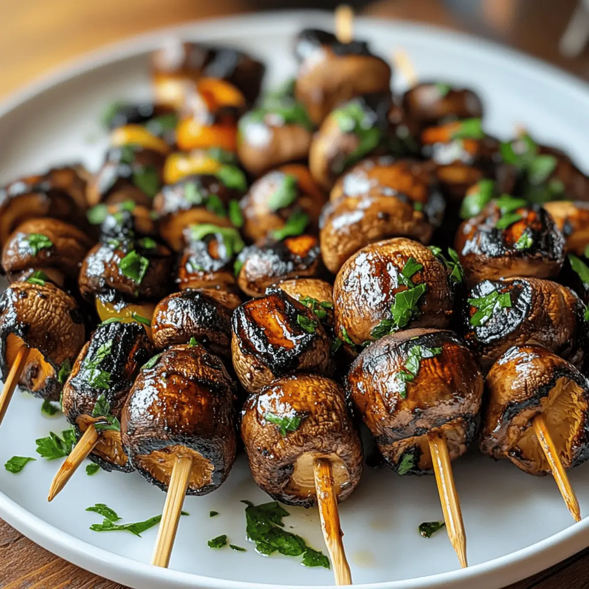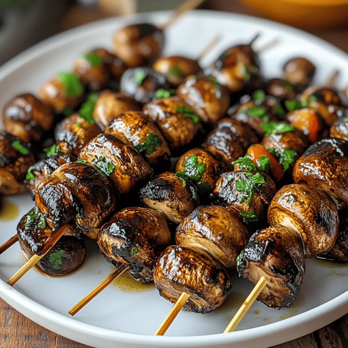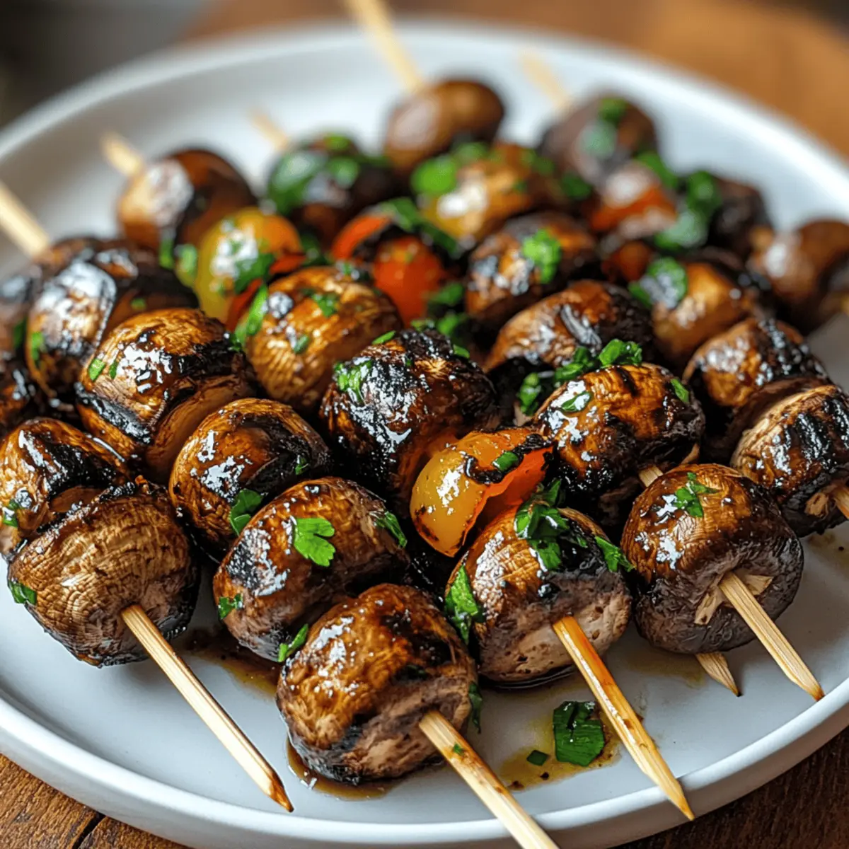 As the sun begins to set, the smell of smoky goodness fills the air, igniting my senses and summoning memories of countless summer barbecues. Today, I’m excited to share my recipe for Marinated Grilled Mushroom Skewers, a vibrant dish that effortlessly brings people together. This vegan-friendly delight may surprise even the most fervent meat lovers with its rich umami flavors, thanks to a bold marinade that transforms humble mushrooms into something truly special. Not only are these skewers simple to whip up, they’re also customizable with your favorite veggies, making them a perfect crowd-pleaser for any gathering. Ready to elevate your grilling game and impress friends and family? Let’s dive in! Why Are These Skewers So Irresistible? Unforgettable flavor: Each bite of these Marinated Grilled Mushroom Skewers is bursting with smoky, savory goodness—ideal for impressing any guest. Customization options: Tailor the skewers to your palate by adding seasonal vegetables like zucchini or colorful bell peppers. Quick prep time: With just a few easy steps and minimal hands-on time, you’ll have a delicious meal ready in no time. Vegan delight: Perfect for plant-based diets, making them a go-to choice for gatherings with mixed dietary preferences. Grill-friendly: Easily prepare these skewers for barbecues, picnics, or cozy dinner nights with family. Check out Grilled Cheese Burrito for another fun grilling option! Marinated Grilled Mushroom Skewers Ingredients For the Marinade Olive Oil – The base of the marinade for moisture and richness; substitute with avocado oil for a different flavor profile. Soy Sauce – Adds umami flavor and saltiness; use tamari for a gluten-free option. Balsamic Vinegar – Provides sweetness and acidity to balance flavors; red wine vinegar can be used if needed. Worcestershire Sauce – Enhances the savory flavor; make sure to choose a vegan version if desired. Minced Garlic – Contributes aroma and richness; fresh garlic will yield the best flavor. Dijon Mustard – Adds tang and depth; yellow mustard works if you prefer a milder flavor. Honey/Maple Syrup – Provides natural sweetness to balance the acidity; agave syrup is a good substitute for stricter vegans. Thyme & Rosemary (dried or fresh) – Deliver herbal notes and complexity; Italian seasoning can be a great alternative. Smoked Paprika – Infuses a smoky flavor, reminiscent of grilling; use regular paprika with a dash of cayenne for extra heat. Salt & Pepper – Enhances all the flavors; adjust to your preference. For the Skewers Mushrooms (e.g., cremini or portobello) – The star ingredient that provides texture and flavor; always choose firm, fresh mushrooms. Optional Vegetables Bell Peppers, Cherry Tomatoes, Zucchini, Red Onion – Customize your skewers with these veggies for added flavor and color; go seasonal for the freshest taste! Remember, these Marinated Grilled Mushroom Skewers are customizable to match your favorite flavors, ensuring everyone leaves your gathering with satisfied taste buds! Step‑by‑Step Instructions for Marinated Grilled Mushroom Skewers Step 1: Prepare Marinade In a medium bowl, whisk together ¼ cup of olive oil, ¼ cup of soy sauce, 2 tablespoons of balsamic vinegar, 1 tablespoon of Worcestershire sauce, and 3 minced garlic cloves until well blended. Add 1 tablespoon each of Dijon mustard and honey (or maple syrup), along with 1 teaspoon of dried thyme, 1 teaspoon of rosemary, and 1 teaspoon of smoked paprika. Season with salt and pepper to taste, ensuring a smooth and fragrant marinade. Step 2: Marinate Mushrooms Clean 16 ounces of firm cremini or portobello mushrooms and place them in a resealable bag or shallow dish. Pour the prepared marinade over the mushrooms, ensuring they are evenly coated. Seal the bag or cover the dish, then refrigerate for at least 30 minutes, allowing the flavors to infuse—ideally, let them marinate for 2-3 hours for the best results. Step 3: Prepare Skewers If using wooden skewers, soak them in water for at least 30 minutes to prevent burning while grilling. This step is crucial for ensuring that your Marinated Grilled Mushroom Skewers cook evenly without charred sticks. After soaking, drain the skewers and set them aside, ready for threading. Step 4: Preheat Grill Preheat your grill to medium-high heat—aim for around 400°F. For a charcoal grill, wait until the coals are ashy and glowing. If you’re using a gas grill, close the lid for a few minutes to build heat. Lightly oil the grates to prevent sticking, ensuring that your skewers will have those beautiful grill marks. Step 5: Thread Mushrooms Remove the marinated mushrooms from the fridge and gently thread them onto the soaked skewers. Optionally, alternate the mushrooms with your choice of colorful vegetables, such as bell peppers, cherry tomatoes, or zucchini, to add visual appeal and flavor. Make sure to leave a little space between ingredients for even cooking. Step 6: Grill Skewers Carefully place the skewers on the grill and cook for about 10-12 minutes, turning occasionally to ensure all sides are tender and slightly charred. Brush the skewers with any leftover marinade during the cooking process for extra flavor. Look for a golden color and a slight char to indicate they are perfectly cooked. Step 7: Serve Once grilled to perfection, transfer the Marinated Grilled Mushroom Skewers to a serving platter. Garnish them with fresh parsley or chives for a pop of color. Serve warm, and consider pairing them with dips like tahini or vegan ranch for an added touch of flavor. Enjoy the wonderful blend of smoky and savory goodness! What to Serve with Marinated Grilled Mushroom Skewers As you savor the delightful smoky flavors of these skewers, let’s explore some perfect accompaniments to create a memorable meal experience. Creamy Garlic Mashed Potatoes: The velvety texture and rich flavor of garlic mashed potatoes add warmth and a comforting element to your meal. Zest