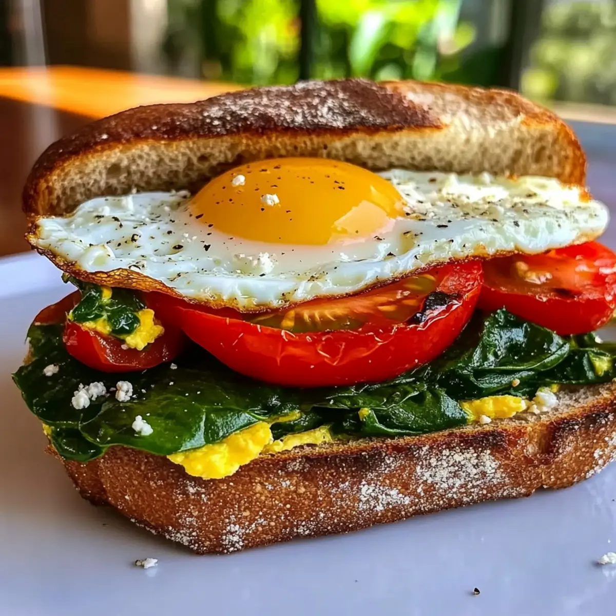 In the same skillet where you cooked the egg, add a handful of fresh spinach and a handful of halved cherry tomatoes. Stir them around for about 1-2 minutes until the spinach wilts and the tomatoes soften slightly. This method keeps the flavors vibrant and fresh, enhancing your Mediterranean Breakfast Sandwich.