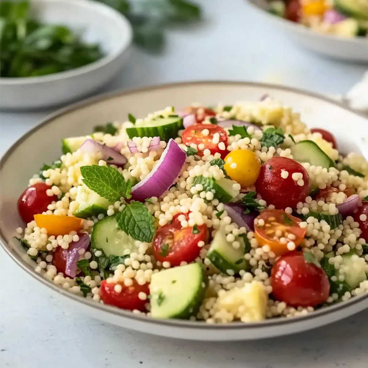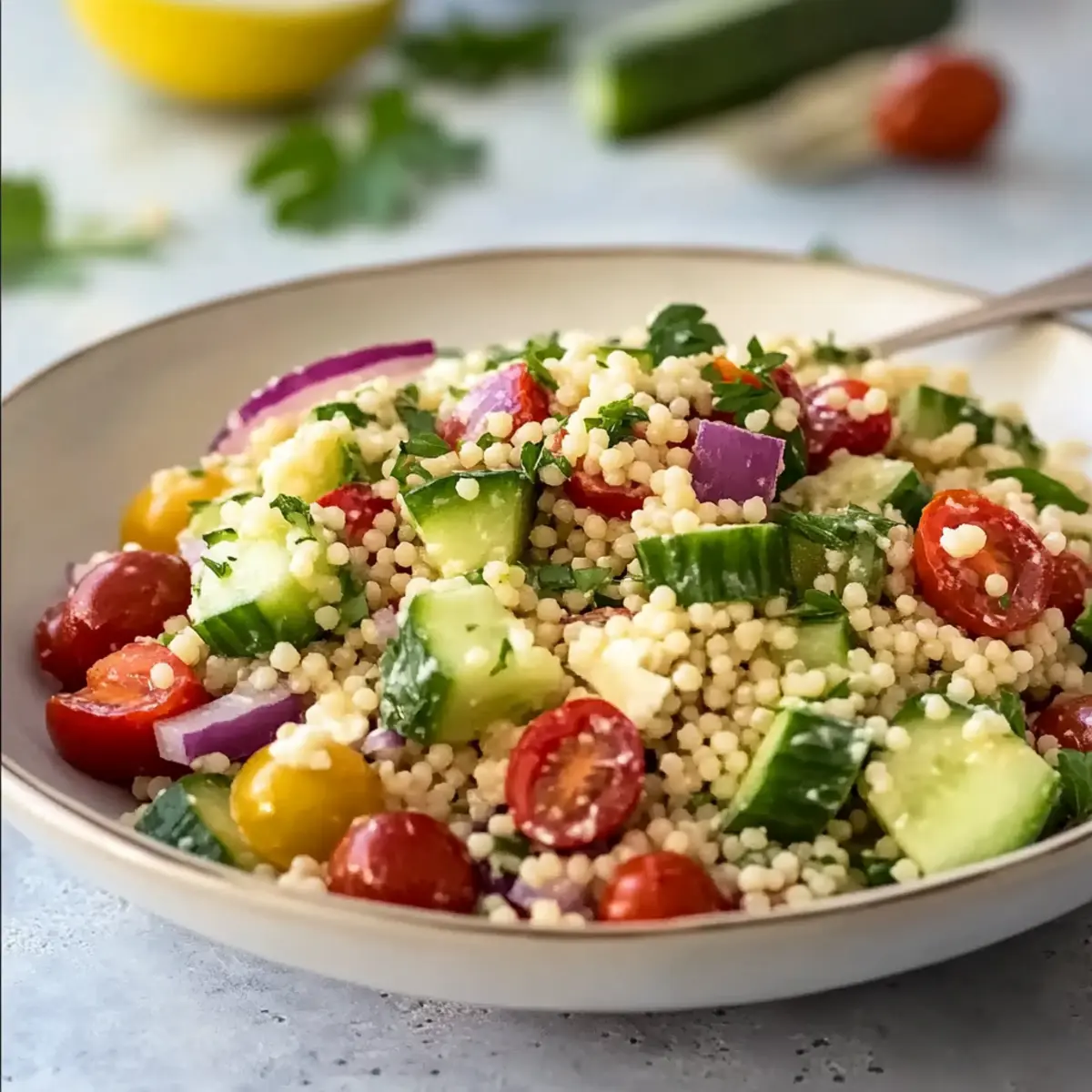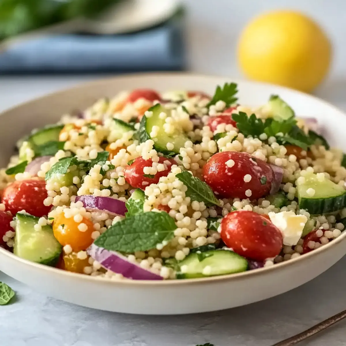 As the summer sun begins to set, the vibrant colors of a Mediterranean market come to mind, filled with the freshest produce and aromatic herbs. This Mediterranean Couscous Salad brings that sun-drenched vibe right to your kitchen, combining chewy pearl couscous with a burst of crunchy vegetables and tangy feta. It’s the perfect dish for busy weeknights or for impressing friends at picnics. Not only is this salad a healthy, vegetarian option, but it’s also make-ahead friendly, allowing you to savor those rich Mediterranean flavors any time you please. Are you ready to bring a taste of the coast to your table? Why is this Salad a Game Changer? Freshness at its finest: This Mediterranean Couscous Salad bursts with vibrant ingredients that make every bite a joy. Healthy & Wholesome: Packed with vitamins and healthy fats, it’s a guilt-free option that keeps you fueled throughout your day. Versatile: Customize easily with proteins like grilled chicken or chickpeas, or try quinoa for a twist. Make-Ahead Magic: Prep in advance and allow the flavors to meld, ensuring a delicious option even on your busiest days! Crowd-Pleaser: Serve it as a standalone dish or an enticing side to grilled meats, leaving your guests impressed and satisfied. Discover delicious variations like the Feta Avocado Salad or refreshing Cucumber Caprese Salad to pair alongside this salad for even more Mediterranean flair! Mediterranean Couscous Salad Ingredients For the Couscous • Pearl Couscous – The chewy base of the salad, providing a delightful texture; regular couscous can be a substitute, but the chewiness will differ. For the Vegetables • English Cucumber – Adds a refreshing crunch; can replace with any firm cucumber variety you prefer. • Cherry Tomatoes – Provide sweetness and juiciness; halving them creates a better texture. You can swap these for grape tomatoes if you like. • Red Onion – Delivers sharpness and color; finely diced for best results. Green onions work as a milder alternative. For the Cheese and Herbs • Feta Cheese – Creamy and tangy, use block feta in brine for optimal texture; goat cheese offers a distinct flavor if you’re looking to mix it up. • Fresh Parsley – Bright and herbal, opt for fresh for the best flavor. • Fresh Mint – Adds a refreshing lift; substitute with fresh basil if mint is not on hand. For the Vinaigrette • Lemon Juice – Provides acidity for brightness; freshly squeezed is highly recommended for the best flavor. • Olive Oil – Richness that helps emulsify the vinaigrette; choose extra virgin olive oil for a flavor boost. • Garlic – Adds depth and complexity; adjust the amount to suit your taste. • Dried Oregano – Provides an aromatic touch; substitute with Italian seasoning if needed. • Salt & Black Pepper – Essential for seasoning; adjust to your preference. Explore the refreshing flavors of this Mediterranean Couscous Salad, and feel free to adapt it to suit your palate! Step‑by‑Step Instructions for Mediterranean Couscous Salad Step 1: Cook the Couscous Begin by bringing a large pot of salted water to a rolling boil. Once boiling, add the pearl couscous, cooking for 8–10 minutes until tender but not mushy. Once done, drain the couscous in a colander and spread it out on a baking sheet to cool, ensuring it fluffs up nicely for your Mediterranean Couscous Salad. Step 2: Prepare the Vegetables While the couscous cools, dice the English cucumber into bite-sized pieces for a satisfying crunch. Halve the cherry tomatoes to enhance their sweetness and juiciness, and finely dice the red onion to add a bit of sharpness and color. Keep your veggies fresh and crisp, as they are essential for the perfect Mediterranean Couscous Salad. Step 3: Make the Vinaigrette In a small bowl, whisk together the fresh lemon juice, extra virgin olive oil, minced garlic, dried oregano, salt, and black pepper. Combine these ingredients until they form a smooth and emulsified vinaigrette. This zesty dressing will bring your Mediterranean Couscous Salad alive with flavor, so taste and adjust seasoning as needed. Step 4: Combine Ingredients In a large serving bowl, combine the cooled couscous, diced cucumber, halved cherry tomatoes, and finely diced red onion. Gently fold in the crumbled feta cheese, chopped parsley, and fresh mint to distribute the flavors evenly throughout your Mediterranean Couscous Salad. Step 5: Toss with Vinaigrette Pour the prepared vinaigrette over the couscous and vegetable mixture, tossing gently until everything is well coated. The vinaigrette should beautifully glaze each ingredient, enhancing the vibrant colors and flavors of the Mediterranean Couscous Salad, making it irresistible. Step 6: Chill and Enhance Flavors Cover the salad with plastic wrap and refrigerate for at least 30 minutes to allow the flavors to meld together. This chilling step is crucial for a refreshing Mediterranean Couscous Salad that’s full of zesty, harmonious tastes that pop with every bite. Make Ahead Options These Mediterranean Couscous Salad preparations are perfect for busy home cooks looking to save time! You can cook the pearl couscous and chop the vegetables up to 24 hours in advance, storing them separately in airtight containers in the refrigerator to maintain their crispness and freshness. To keep the salad vibrant, mix the vinaigrette just before serving for optimal flavor. When you’re ready to enjoy, simply combine the couscous, vegetables, feta, and herbs in a large bowl, toss with the vinaigrette, and let it chill for about 30 minutes. This way, you’ll have a stunning Mediterranean Couscous Salad bursting with flavor and ready to impress! How to Store and Freeze Mediterranean Couscous Salad Fridge: Keep your Mediterranean Couscous Salad in an airtight container for up to 3 days. Make sure to store it properly to maintain its vibrant flavors and freshness. Make-Ahead: You can prepare the salad a day in advance. This allows the 