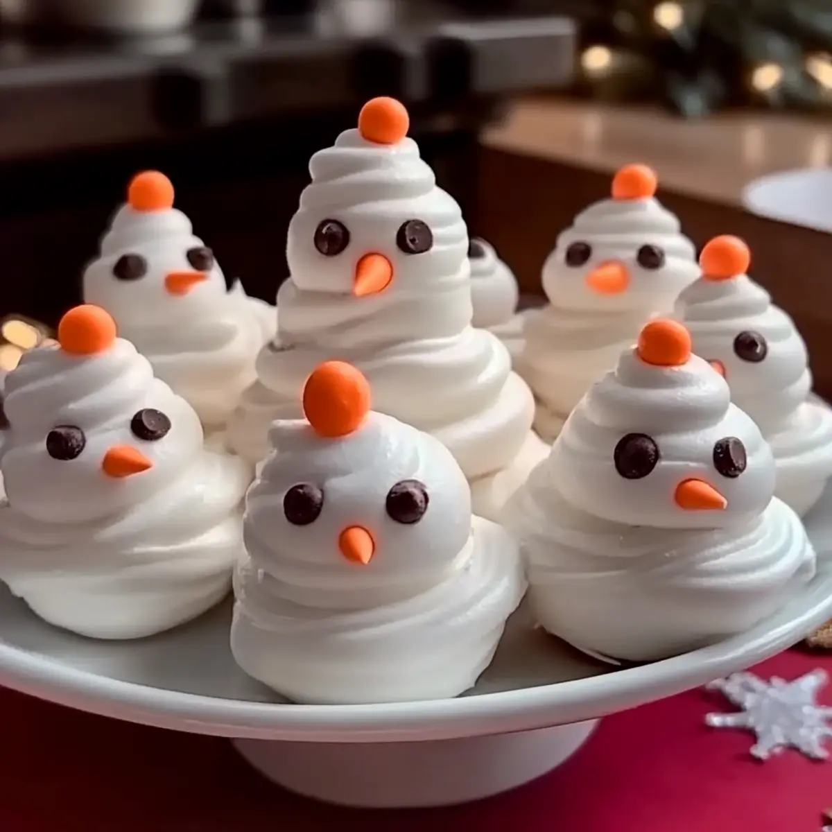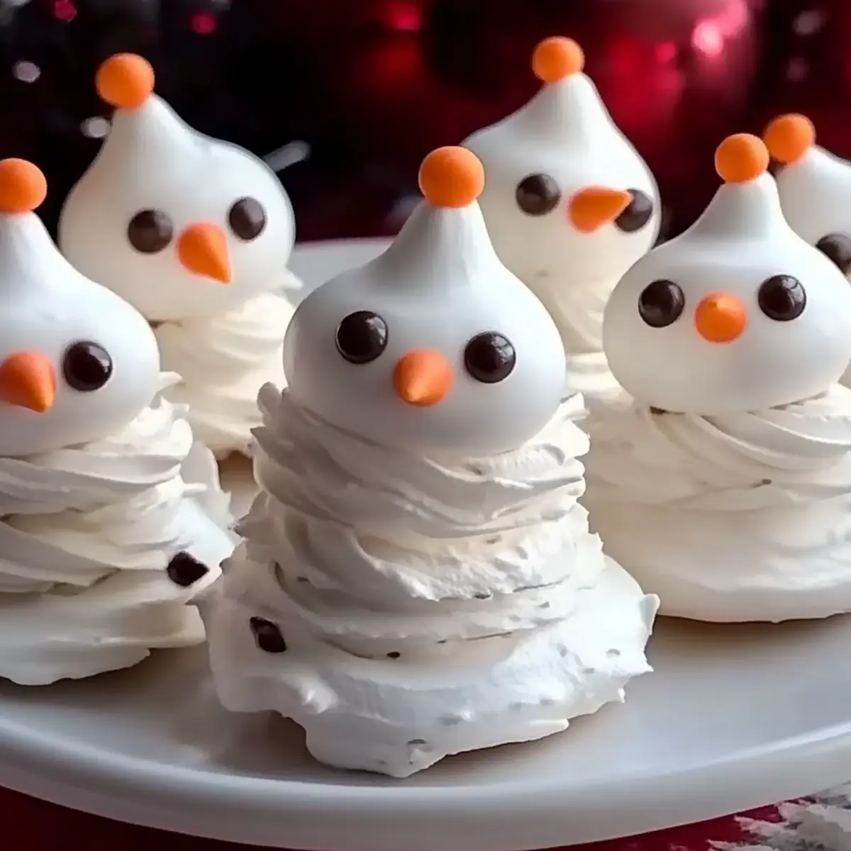 A gentle chill lingers in the air, beckoning for cozy moments spent in the kitchen. This holiday season, I found myself enchanted by the idea of creating Meringue Snowmen Cookies—little edible figures that seem almost too cute to eat! These airy and whimsical treats not only elevate any festive gathering but also invite playful creativity in their decoration. Plus, they offer a surprisingly light sweetness that delights both kids and adults, making them a perfect alternative to heavier desserts. Best of all, the easy preparation means you can whip them up in no time, leaving you more moments to bask in the holiday spirit. Ready to bring a sprinkle of joy and a dash of fun to your festivities? Let’s dive into the world of meringue magic and make some delightful snowmen! Why Make Meringue Snowmen Cookies? Festive Fun: These delightful cookies are a whimsical addition to any holiday spread, instantly brightening up your festivities. Kid-Friendly: Perfect for little hands to help decorate, making them a hit with the whole family. Light and Sweet: With their airy texture, these cookies provide just the right sweet touch without being overwhelming. Customizable: Feel free to swap out decorations—think bright sprinkles or colorful candies—to match your festive theme! If you love sweet treats, consider pairing them with dessert ideas like Cinnamon Roll Cookies or Chewy Brown Cookies. Quick to Make: They come together quickly, ensuring you spend more time enjoying the season than in the kitchen. Memorable Presentation: Their unique snowman shape makes them not just a treat, but a conversation starter at any gathering! Meringue Snowmen Cookies Ingredients For the Meringue • Egg Whites – Provides structure and volume; ensure they’re completely clean for best results. • Granulated Sugar – Adds sweetness and stability; add gradually for maximum air incorporation. • Cream of Tartar – Stabilizes egg whites for stiff peaks; lemon juice can be a handy substitute. • Vanilla Extract – Enhances flavor; optional, but it brings warmth to the meringue. • Almond Extract – Adds a delightful nutty note; can be swapped with extra vanilla if preferred. For the Decoration • Mini Chocolate Chips – Perfect for cute eyes; consider dark chocolate or dried fruit as fun alternatives. • Orange Candy – Serves as the snowman’s adorable nose; gummy candies work well here too. • Mini Marshmallows – Used for buttons and hats; these can be easily replaced with soft candies of your choice. • Colored Sprinkles/Edible Glitter – Adds festive flair to your creations; sprinkle on for a magical touch! Step‑by‑Step Instructions for Meringue Snowmen Cookies Step 1: Preheat and Prepare Start by preheating your oven to 200°F (93°C). While the oven warms, line a baking sheet with parchment paper to prevent sticking. This step is essential for creating the perfect base for your Meringue Snowmen Cookies, allowing them to bake evenly without browning. Step 2: Beat the Egg Whites In a clean mixing bowl, beat the egg whites on medium speed until they become frothy and bubbly. This initial mixing will add volume, which is crucial for light and airy meringues. It should take about 2-3 minutes to reach this state, ensuring that your mixture is well on its way to fluffy perfection. Step 3: Add Stabilizer Once you see foam, add in the cream of tartar, which helps stabilize the egg whites. Continue beating until soft peaks start to form, typically another 2 minutes. The mixture should be noticeably thicker and hold its shape lightly on a whisk, signaling you’re getting closer to the ideal texture for your Meringue Snowmen Cookies. Step 4: Incorporate Sugar Gradually add the granulated sugar while increasing your mixer speed to high. Beat the mixture for about 5-7 minutes until it becomes glossy and stiff peaks form. This is a vital step for meringue stability, and your meringue should stand tall and firm when you remove the whisk, ensuring your cookies will hold their shape. Step 5: Flavor the Meringue With your meringue ready, gently mix in the vanilla and almond extracts. This step adds a warm, inviting flavor that elevates your Meringue Snowmen Cookies. Take care not to over-mix; a gentle fold will maintain the airy structure you’ve worked hard to achieve. Step 6: Pipe the Meringue Transfer the meringue into a piping bag fitted with a round tip. Pipe 1.5-inch circles for the snowman’s body and smaller 1-inch circles for the head on the prepared baking sheet. If you wish to create hats, pipe additional smaller circles as well. This fun shaping is where the magic begins! Step 7: Bake the Meringues Place your baking sheet in the preheated oven and bake for approximately 2 hours. Keep an eye on them—your Meringue Snowmen Cookies should be completely dry and easily lift off the parchment when done. After baking, turn off the oven and let them cool inside for an hour to prevent cracking. Step 8: Assemble and Decorate Once cooled, it’s time to assemble your snowmen! Stack the smaller meringue heads on the bodies, securing them with melted chocolate or icing. Get creative with decorations by using mini chocolate chips for eyes, orange candy for noses, and mini marshmallows for buttons and hats. Let your imagination shine in these festive treats! Make Ahead Options These Meringue Snowmen Cookies are ideal for meal prep, allowing you to enjoy the festive spirit without the last-minute rush! You can whip up the meringue and pipe the cookie shapes up to 24 hours in advance. Just bake and let them cool inside the oven as directed; this prevents any cracking. Store the cooled meringues in an airtight container to keep them crisp and airy, and they’ll stay delightful for up to a week. When you’re ready to assemble, simply stack the heads on the bodies and decorate right before serving, ensuring your Meringue Snowmen Cookies retain their crunchy texture and whimsical charm! How to Store and Freeze