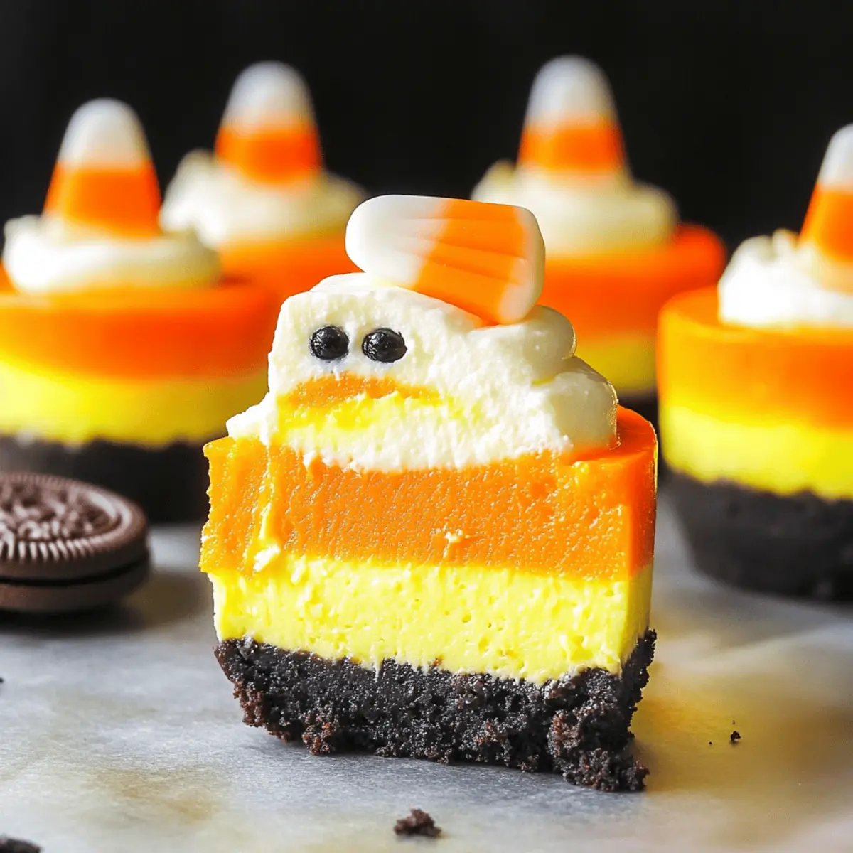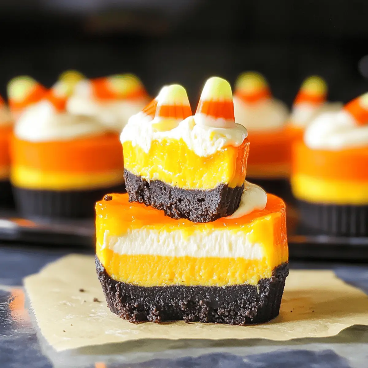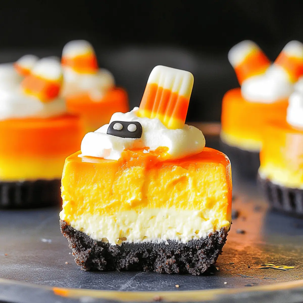 As the crisp autumn air settles in and the leaves start to dance with colors, I can’t help but think of all the sweet treats that come with Halloween. These Mini Candy Corn Cheesecakes are my go-to dessert for this season, combining creamy goodness with a playful twist that brings smiles to friends and family alike. With their crunchy Oreo crust and vibrant layers of yellow, orange, and white, they not only taste delightful but also add a festive flair to any gathering. What I love most is that they are easy to whip up, making them perfect for those spontaneous Halloween parties when you want to impress without spending hours in the kitchen. Ready to indulge in a spooktacular dessert that’s sure to enchant? Let’s dive into this recipe! Why Are These Mini Cheesecakes Irresistible? Creepy, Cute Presentation: These Mini Candy Corn Cheesecakes feature vibrant layers that mirror the iconic Halloween treat, instantly bringing festive charm to your dessert table. Easy to Make: The recipe is simple and quick, allowing you to whip them up in no time, ensuring you have more moments to enjoy the festivities with friends. Crowd-Pleaser: Their delightful combination of creamy filling and crunchy Oreo crust means they’re loved by adults and kids alike—perfect for any Halloween gathering! Versatile Flavors: Feel free to experiment with flavor by swapping the crust or adding unique extracts for a custom touch. You might also enjoy serving them alongside Mini Tropical Pavlovas for a festive dessert display. Make-Ahead Friendly: Prepare them in advance and store in the fridge so they’re ready to impress your guests right when you need them! Bring these to your next gathering, and watch as they disappear in minutes. Mini Candy Corn Cheesecakes Ingredients For the Crust Oreo Cookies – Perfect for a crunchy base; swap for graham crackers for a different flavor profile. Unsalted Butter – Binds the crust beautifully; coconut oil works for a dairy-free option. For the Cheesecake Filling Cream Cheese – This is your creamy filling hero; ensure it’s softened for easy blending. Granulated Sugar – Sweetens your batter; brown sugar can add a touch of richness. All-Purpose Flour – Stabilizes the filling; feel free to omit for a gluten-free version. Sour Cream – Adds moisture and a tangy bite; Greek yogurt can be used as a great substitute. Vanilla Extract – Enhances overall flavor; always opt for pure vanilla for the best results. Large Eggs – Provides that essential structure; consider flax eggs for a vegan alternative. For the Color Gel Food Coloring (Yellow & Orange) – Essential for the vibrant layers; avoid liquid coloring as it can change the texture. For the Topping Whipped Cream – Adds a luscious finish; whip until stiff peaks form for the best results. Powdered Sugar – Sweetens the whipped cream perfectly; enhance with extra vanilla. Decorative Toppings – Get playful with Halloween-themed sprinkles or candy garnishes for that festive touch. These Mini Candy Corn Cheesecakes are not only a delight to the senses but also a spooktacular treat that is easy to prepare for your Halloween festivities! Step‑by‑Step Instructions for Mini Candy Corn Cheesecakes Step 1: Preheat and Prepare Preheat your oven to 325°F (162°C). While the oven is warming, line a cupcake pan with festive cupcake liners and lightly spray them with non-stick cooking spray. This will ensure your Mini Candy Corn Cheesecakes come out easily once they’re baked. Having everything ready from the start will make the process seamless! Step 2: Make the Crust In a medium bowl, combine crushed Oreo cookies with melted unsalted butter, mixing until well combined. Spoon an even amount into each cupcake liner, pressing down firmly to form a solid base. Place the crusts in the oven to bake for 5 minutes until set, then remove and let them cool while you prepare the filling. Step 3: Mix the Cheesecake Filling Lower the oven temperature to 300°F (148°C). In a large mixing bowl, beat softened cream cheese, granulated sugar, and all-purpose flour on low speed until smooth. Gradually add in sour cream and vanilla extract, mixing until well incorporated. Carefully blend in the large eggs one at a time; take care not to overmix to create a smooth, crack-free filling. Step 4: Color the Batter Divide the cheesecake batter evenly into three separate bowls. Using gel food coloring, tint one bowl yellow, the second bowl orange, and leave the third bowl white. This will create vibrant layers for your Mini Candy Corn Cheesecakes. Mixing until fully colored will ensure each layer is as bright as a candy corn treat! Step 5: Layer the Filling Spoon 1 tablespoon of yellow batter into each cooled crust, followed by a layer of orange batter and then a layer of white batter. Carefully fill each liner nearly to the top, being cautious not to overflow. The layered aesthetic will resemble sweet candy corn, making them visually enticing right from the start! Step 6: Bake the Cheesecakes Place the filled cupcake pan in the preheated oven and bake for 15 minutes. After this time, turn off the oven while leaving the cheesecakes inside with the door closed for an additional 10 minutes. This gentle cooling process will help prevent cracking and maintain a creamy texture as they finish setting. Step 7: Cool Gradually After the cheesecake has rested in the oven, crack the oven door slightly and let them cool for 15-20 minutes. This gradual cooling will ensure they do not shock when exposed to cooler air. Once cool, transfer the Mini Candy Corn Cheesecakes to the refrigerator to chill for at least 2 hours, or until fully set. Step 8: Prepare the Whipped Cream Topping While the cheesecakes chill, make the whipped cream. In a mixing bowl, whip heavy cream with powdered sugar and extra vanilla extract until stiff peaks form. Once the cheesecakes are set and chilled, tint the whipped cream orange using gel food coloring for a fun Halloween touch. S