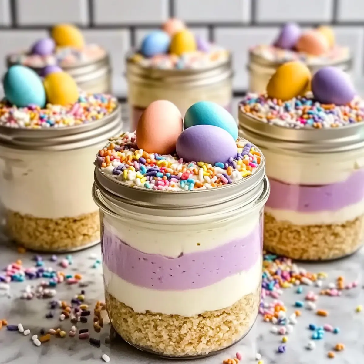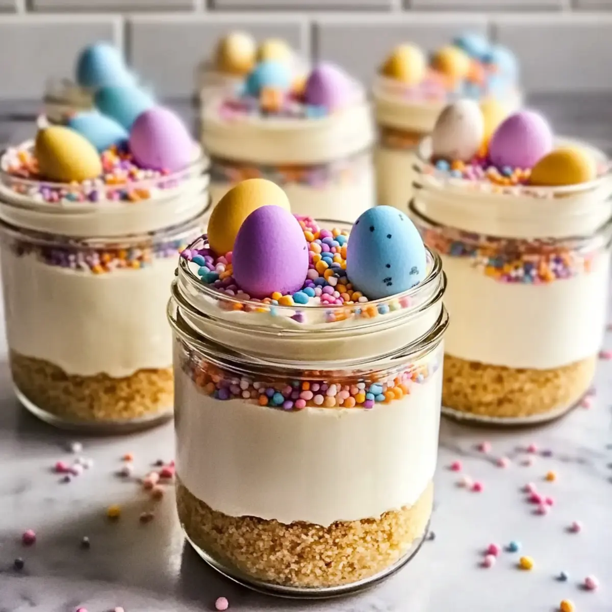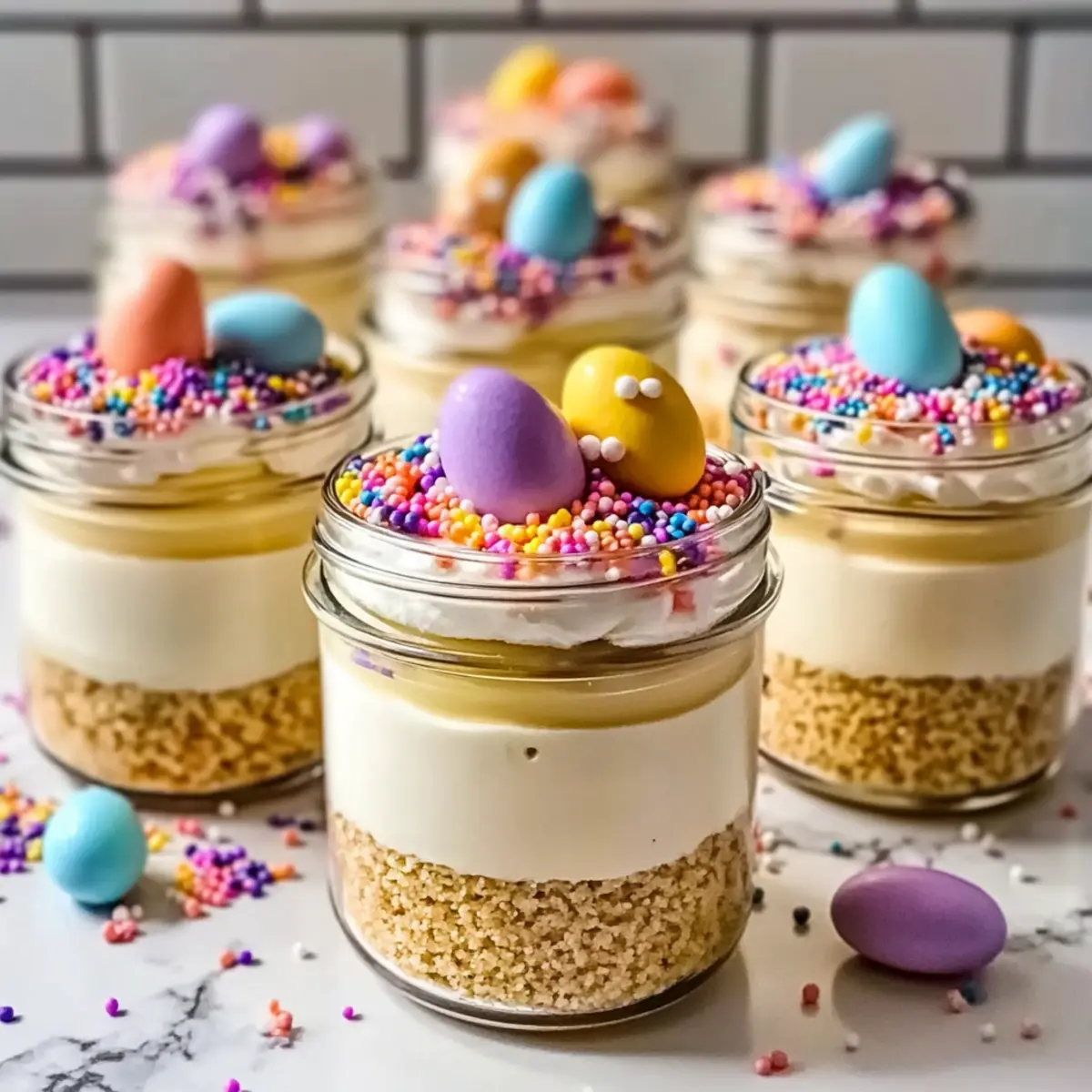 A sudden craving hit me—something festive yet simple to whip up for the upcoming spring gatherings. Thus, the idea of Mini Easter Cheesecake Jars sparked joy in my kitchen! These delightful no-bake treats are the perfect blend of a crunchy graham cracker crust and a creamy cheesecake filling, all nestled in charming little jars. Not only are they a hit with kids and adults alike, but they also save you time as they can be prepared ahead of your celebration. Customize them with your favorite toppings for a personal touch, leaving you free to mingle and savor the moment with loved ones. Ready to create a dessert that shines as brightly as your Easter decorations? Let’s get started! Why Are Mini Easter Cheesecake Jars So Fun? No-Bake Convenience: These Mini Easter Cheesecake Jars are a breeze to whip up, perfect for busy celebrations without sacrificing flavor or fun. Customizable Delight: Tailor them to your taste with various toppings! From chocolate sprinkles to fresh berries, the possibilities are endless, making them a hit for every palate. Kid-Approved: Little hands love these charming jars! They’re not just tasty; they’re a special treat that kids can help decorate. Make-Ahead Magic: Prepare them ahead of time, giving you more time to enjoy your guests’ company. Just a quick chill and they’re ready to impress! Festive Presentation: Their delightful appearance adds a touch of whimsy to your spring gatherings, perfect for any Easter table alongside other favorites like Mini Tropical Pavlovas or Burnt Basque Cheesecake. Embark on this sweet adventure and create memories to savor! Mini Easter Cheesecake Jars Ingredients • Dive into the delightful world of Mini Easter Cheesecake Jars with this essential ingredient list! For the Crust Graham Cracker Crumbs – Gives a solid, crunchy base; feel free to swap with digestive biscuits if desired. Unsalted Butter – Binds the crust ingredients together; melted coconut oil can be used for a dairy-free twist. Sugar – Adds a touch of sweetness to the crust; using brown sugar deepens the flavor profile. For the Filling Cream Cheese – Forms the creamy filling; make sure it’s softened for easy blending. Powdered Sugar – Sweetens the cheesecake filling; reducing it slightly can adjust sweetness to your preference. Vanilla Extract – Enhances the flavor profile; almond extract offers an exciting alternative. Lemon Juice – Balances flavors with brightness and tang; lime juice can act as a tasty substitution. Heavy Whipping Cream – Contributes lightness to the filling; replace with mascarpone for a rich option. For Topping & Decor Gel Food Coloring – Optional for adding playful color; consider using natural food colors for a healthier choice. Toppings (Mini chocolate eggs, jelly beans, sprinkles, shredded coconut) – Use to creatively enhance appearance and taste; seasonal candies provide perfect embellishments. Get your ingredients ready and let the fun of making these festive Mini Easter Cheesecake Jars begin! Step‑by‑Step Instructions for Mini Easter Cheesecake Jars Step 1: Prepare the Crust In a medium bowl, combine 1 cup of graham cracker crumbs, 2 tablespoons of sugar, and a pinch of salt. Pour in 5 tablespoons of melted unsalted butter, mixing until the mixture resembles wet sand. Make sure to evenly distribute the ingredients for a consistent crust. Step 2: Pack the Crust Divide the crust mixture among 4-6 small jars or dessert cups. Use the back of a spoon or your fingers to firmly pack the crust down, creating a solid base. A consistent layer will hold everything together beautifully, providing that delightful crunch in your Mini Easter Cheesecake Jars. Step 3: Whip the Cream In a large, chilled mixing bowl, whip 1 cup of heavy whipping cream using an electric mixer. Beat on medium-high speed until medium-stiff peaks form, about 3 to 5 minutes. Keep the whipped cream in the refrigerator while you prepare the cream cheese mixture to maintain its fluffiness. Step 4: Beat Cream Cheese In a separate mixing bowl, use an electric mixer to beat 8 ounces of softened cream cheese along with ½ cup of powdered sugar, 1 teaspoon of vanilla extract, and 1 tablespoon of lemon juice. Mix until smooth and creamy, about 2 to 3 minutes, ensuring all lumps are gone for a velvety filling in your Mini Easter Cheesecake Jars. Step 5: Combine Mixtures Gently fold the whipped cream into the cream cheese mixture in three parts, using a spatula to maintain its airy consistency. This blending creates a light and fluffy cheesecake filling that perfectly balances the crunchy crust. Be careful not to overmix to avoid a dense texture. Step 6: Optional Tinting If you’d like to add a fun splash of color to your cheesecake filling, divide the mixture into portions and add gel food coloring as desired. Stir gently to achieve a pastel hue for a festive touch in your Mini Easter Cheesecake Jars—it’s an exciting way to celebrate spring! Step 7: Fill the Jars Spoon the cheesecake mixture into each jar, layering it over the prepared crust. Fill each jar almost to the top, leaving a little room for toppings. This creates visually appealing layers in your Mini Easter Cheesecake Jars, inviting everyone to dig in. Step 8: Chill Cover the jars with lids or plastic wrap, and place them in the refrigerator to chill for at least 2 hours or up to 24 hours. Chilling is essential for setting the filling and allows the flavors to meld beautifully, ensuring each bite of your Mini Easter Cheesecake Jars is utterly delightful. Step 9: Decorate Just before serving, remove the jars from the refrigerator and add your choice of toppings like mini chocolate eggs, jelly beans, sprinkles, or shredded coconut. This final touch enhances the visual appeal and makes your Mini Easter Cheesecake Jars a truly festive treat for everyone to enjoy! Expert Tips for Mini Easter Cheesecake Jars Choose the Right Cream Cheese: Make sure to use full-fat, softened cream cheese to e