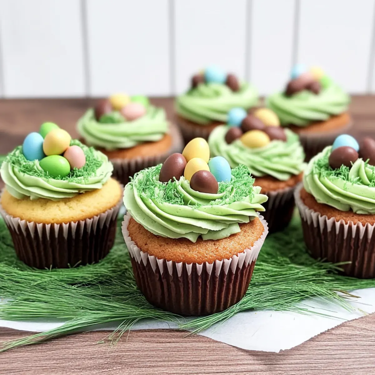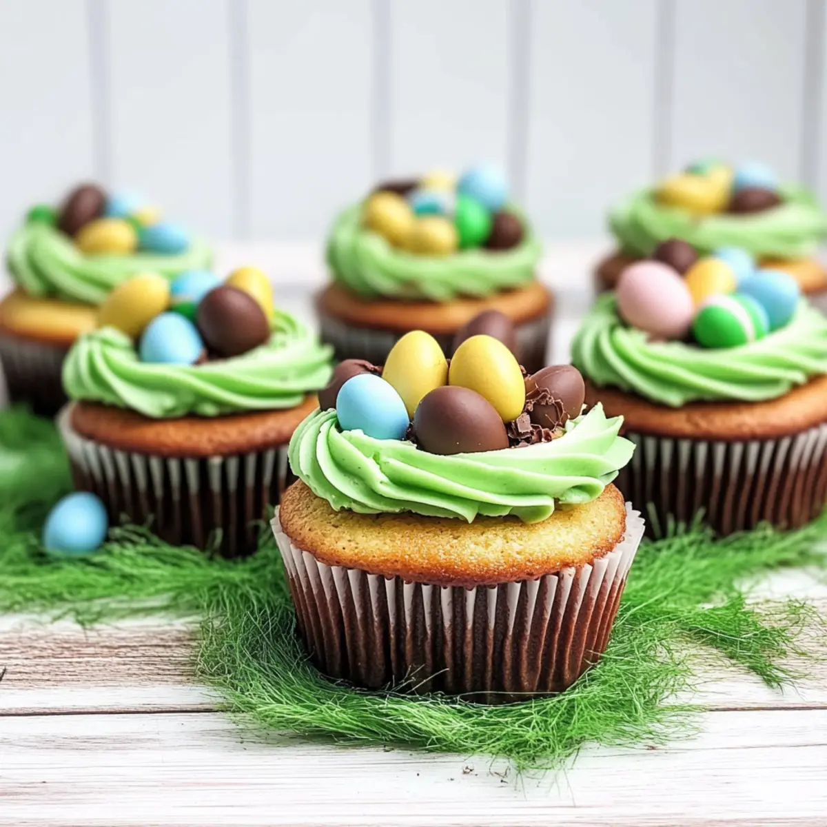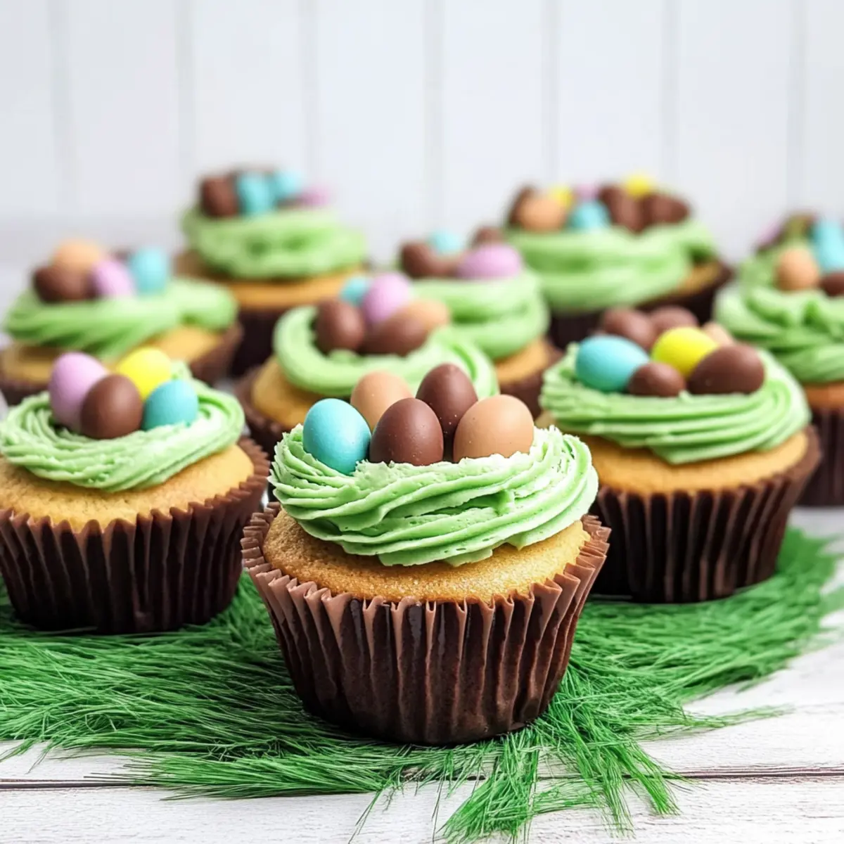 As I stood in my kitchen, a flurry of color and sweetness whirled around me, promising a whimsical culinary adventure. Today, I’m thrilled to share my Easter Mini Egg Nest Cupcakes—a delightful treat that not only brightens your holiday table but also tickles your taste buds with the perfect mix of chocolate and vanilla. These cupcakes are not just eye-catching; they’re incredibly easy to whip up from scratch, making them a perfect project for family gatherings or a festive celebration at home. Plus, with tips for gluten-free options, everyone can join the fun! Ready to make your Easter sweeter and more colorful than ever? Let’s dive into this deliciously creative treat! Why make Mini Egg Nest Cupcakes? Festive Appeal: These cupcakes are a showstopper, bringing vibrant colors and playful designs to your Easter celebration. Easy to Make: With simple ingredients and straightforward steps, enjoying homemade treats has never been easier. Delicious Flavors: A delightful combination of chocolate and vanilla ensures every bite is a flavor explosion. Gluten-Free Options: Satisfy all guests, as gluten-free alternatives can easily be incorporated. Perfect for Sharing: Delight family and friends with these charming treats, or serve alongside Smores Mini Loaf and Mini Tropical Pavlovas for a festive dessert platter. Get ready to gather around and enjoy this sweet addition to your holiday! Mini Egg Nest Cupcake Ingredients For the Cupcakes • All-Purpose Flour – Provides structure for the cupcakes; you can substitute with gluten-free flour for a gluten-free version. • Granulated Sugar – Adds sweetness; essential for a delightful flavor. • Unsalted Butter – Adds moisture and richness; feel free to replace with dairy-free butter if preferred. • Milk – Moisture and richness; substitute with heavy cream or non-dairy milk for a lactose-free option. • Baking Powder – Ensures the cupcakes rise for that light, fluffy texture; no substitutes needed. • Salt – Enhances flavors and balances sweetness; an essential ingredient. • Vanilla Extract – Provides depth of flavor; consider using another flavor extract if desired. • Eggs – Bind ingredients and contribute texture; for a vegan version, try flax eggs. • Chocolate Eggs (Cadbury Mini Eggs) – Mixed into the batter and used decoratively; ensure age-appropriate options if substituting. For the Buttercream Frosting • Icing Sugar – Sweetens and gives structure to the frosting; no alternatives mentioned. • Green Food Coloring – Optional for coloring the frosting; you can omit if you prefer a classic look. • Cocoa Powder – Added to create a chocolate flavor in the buttercream; gives that extra richness. Get ready to indulge in these delightful mini egg nest cupcakes! Step‑by‑Step Instructions for Mini Egg Nest Cupcakes Step 1: Preheat the Oven Start by preheating your oven to 350°F (175°C). While it warms up, line a cupcake pan with your favorite cupcake liners to prevent sticking. A colorful array will not only make the cupcakes delightful but also perfectly festive for Easter. This step sets the stage for your Mini Egg Nest Cupcakes to bake beautifully. Step 2: Prepare Cupcake Batter In a large mixing bowl, use an electric mixer to combine the all-purpose flour, granulated sugar, unsalted butter, milk, baking powder, salt, vanilla extract, and eggs. Start mixing on low speed for about 30 seconds to avoid a flour cloud, then increase to medium speed for 1 minute until fully combined and smooth. The batter should be thick and creamy, with no lumps remaining. Step 3: Bake the Cupcakes Carefully fill each cupcake liner about three-quarters full with the prepared batter. Place the cupcake pan in the preheated oven and bake for 20 to 25 minutes, or until a toothpick inserted in the center comes out clean. Keep an eye on the cupcakes—they should rise beautifully and have a golden-brown top as a sign of doneness. Once baked, remove from the oven and let them cool completely in the pan. Step 4: Make Buttercream Frosting While the cupcakes cool, prepare the buttercream frosting. In a mixing bowl, beat together the icing sugar, unsalted butter, and a splash of milk until the mixture is smooth and fluffy. Separate the icing into two bowls; add green food coloring to one for that fresh grass effect and incorporate cocoa powder into the other for a rich chocolatey hue. Aim for a spreading consistency, adjusting with milk or icing sugar as necessary. Step 5: Decorate the Cupcakes Once the cupcakes are completely cool, it’s time to assemble your Mini Egg Nest Cupcakes! Using a piping bag fitted with a star tip, pipe the green frosting generously on top to mimic grass. Then, use the cocoa-flavored frosting to create a nest-like swirl in the center. Finally, top each cupcake with 3-4 Cadbury mini eggs, arranging them playfully to evoke the true spirit of Easter and delight everyone at your gathering. Expert Tips for Mini Egg Nest Cupcakes Use Quality Ingredients: Ensure your ingredients, especially eggs and butter, are fresh for the best flavor and texture in your mini egg nest cupcakes. Avoid Overmixing: Mix the batter until just combined; overmixing can lead to dense cupcakes. Light and fluffy is the goal! Cool Completely: To prevent your frosting from melting, allow the cupcakes to cool completely before decorating. Check Oven Temperature: Use an oven thermometer to ensure your oven is preheated accurately; this helps achieve the perfect rise and texture. Taste as You Go: Feel free to taste the frosting as you add ingredients; adjust sweetness with icing sugar as needed for your preference. Storage Tips for Mini Egg Nest Cupcakes Room Temperature: Keep unfrosted cupcakes in an airtight container at room temperature for up to 3 days to maintain freshness. Fridge: If frosted, store in the fridge in an airtight container, where they will remain good for about 5 days. Let them sit at room temperature for a bit before ser